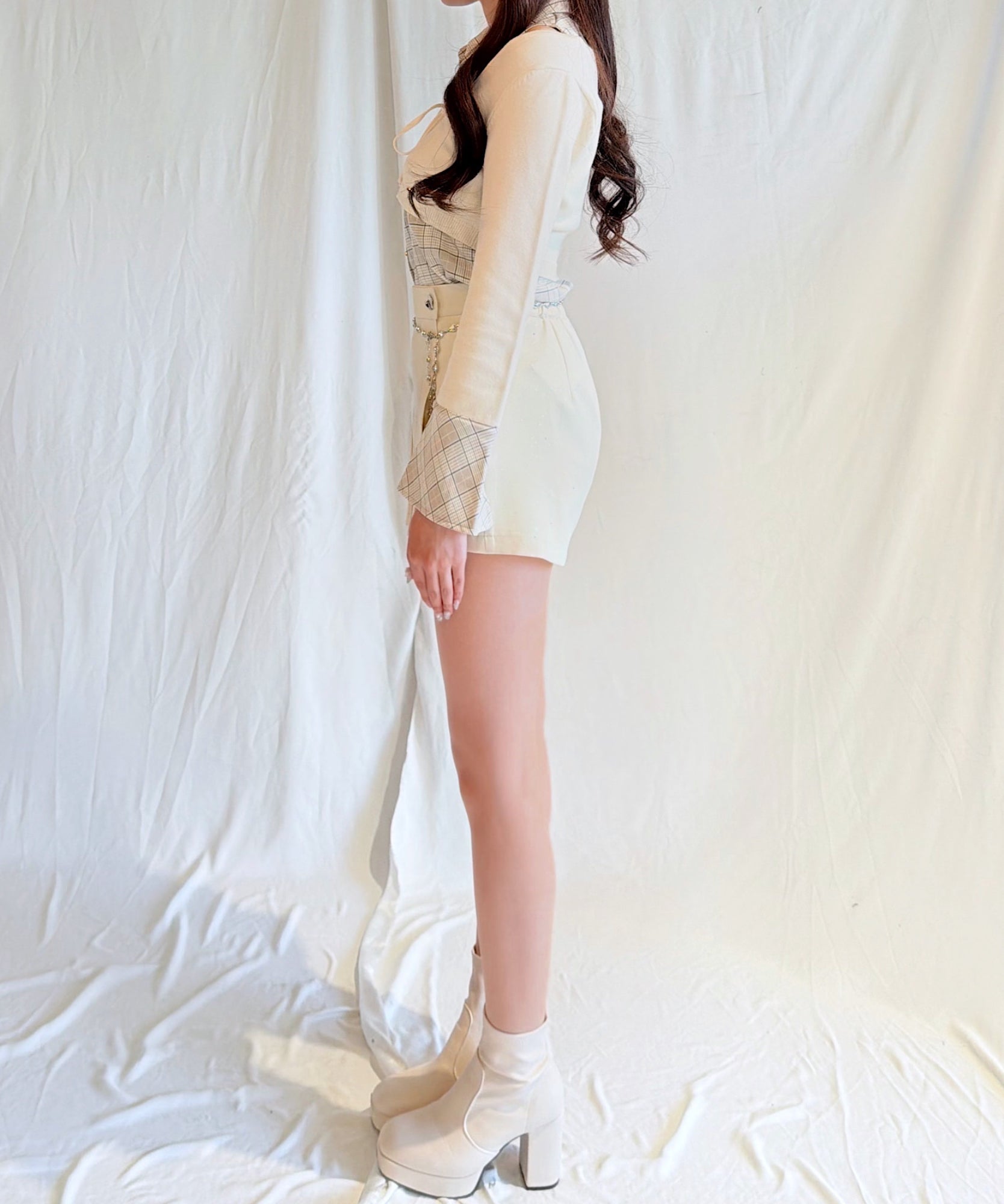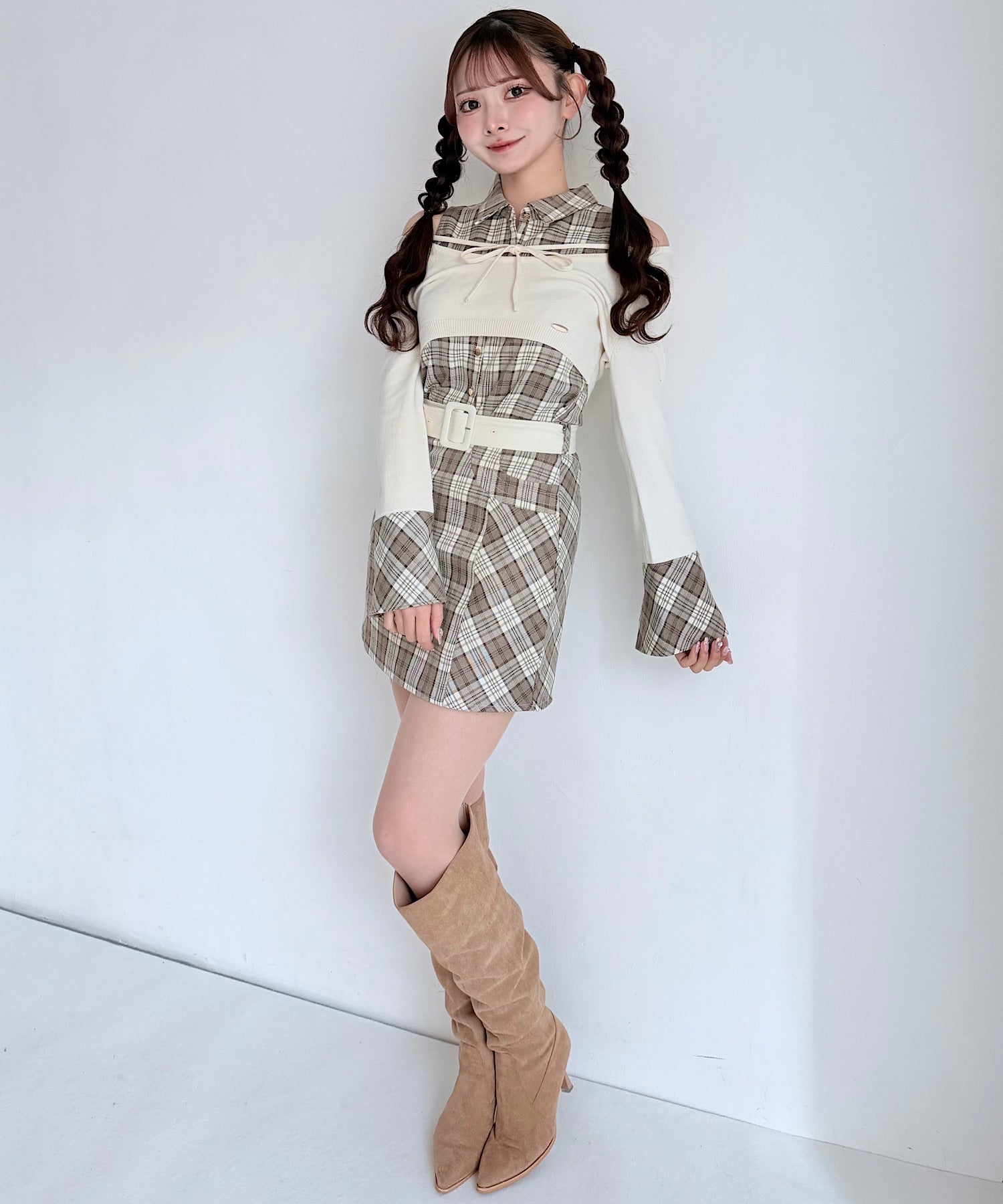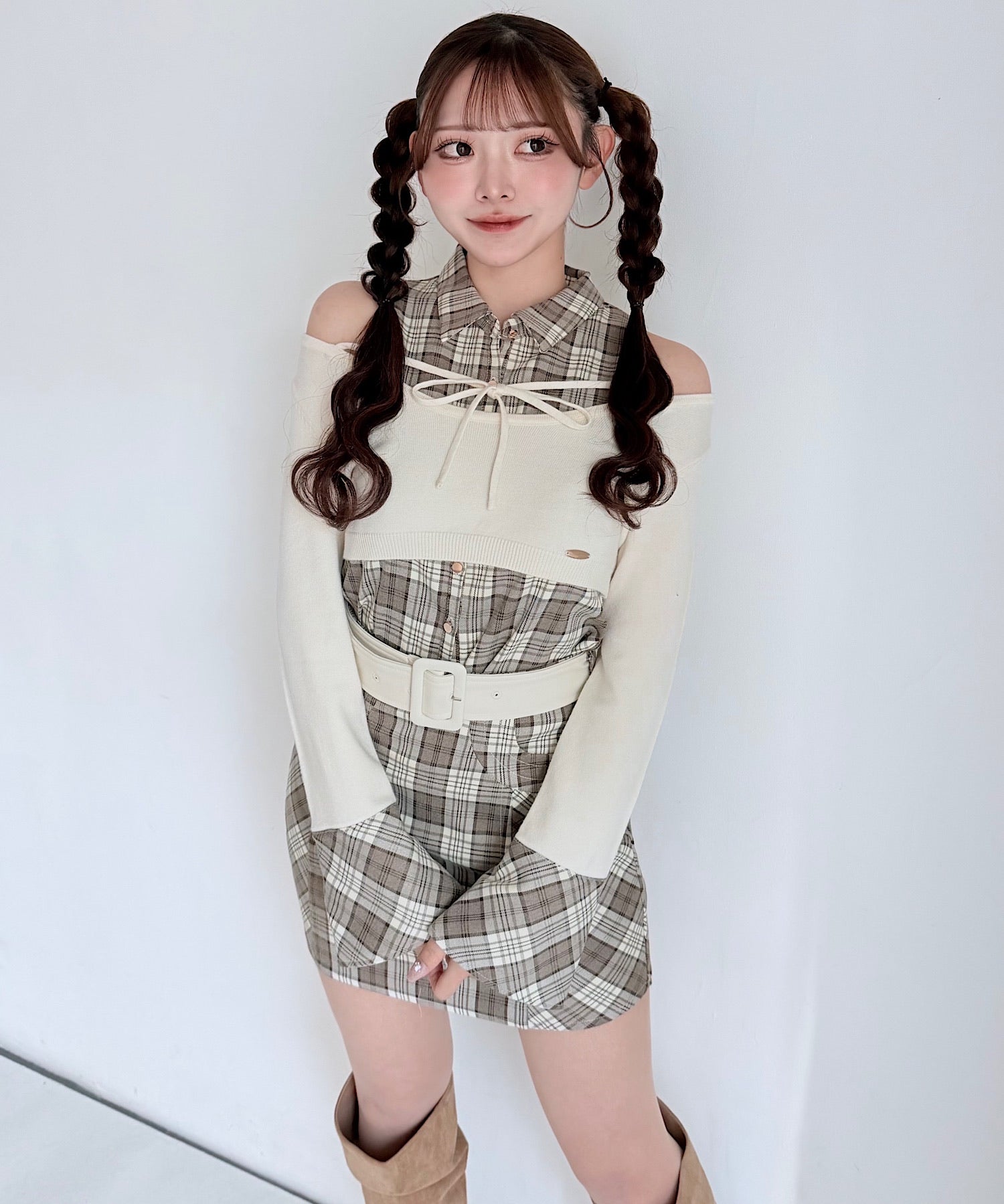 ・レイヤードのショート丈ニットで、スタイルアップ効果抜群♡