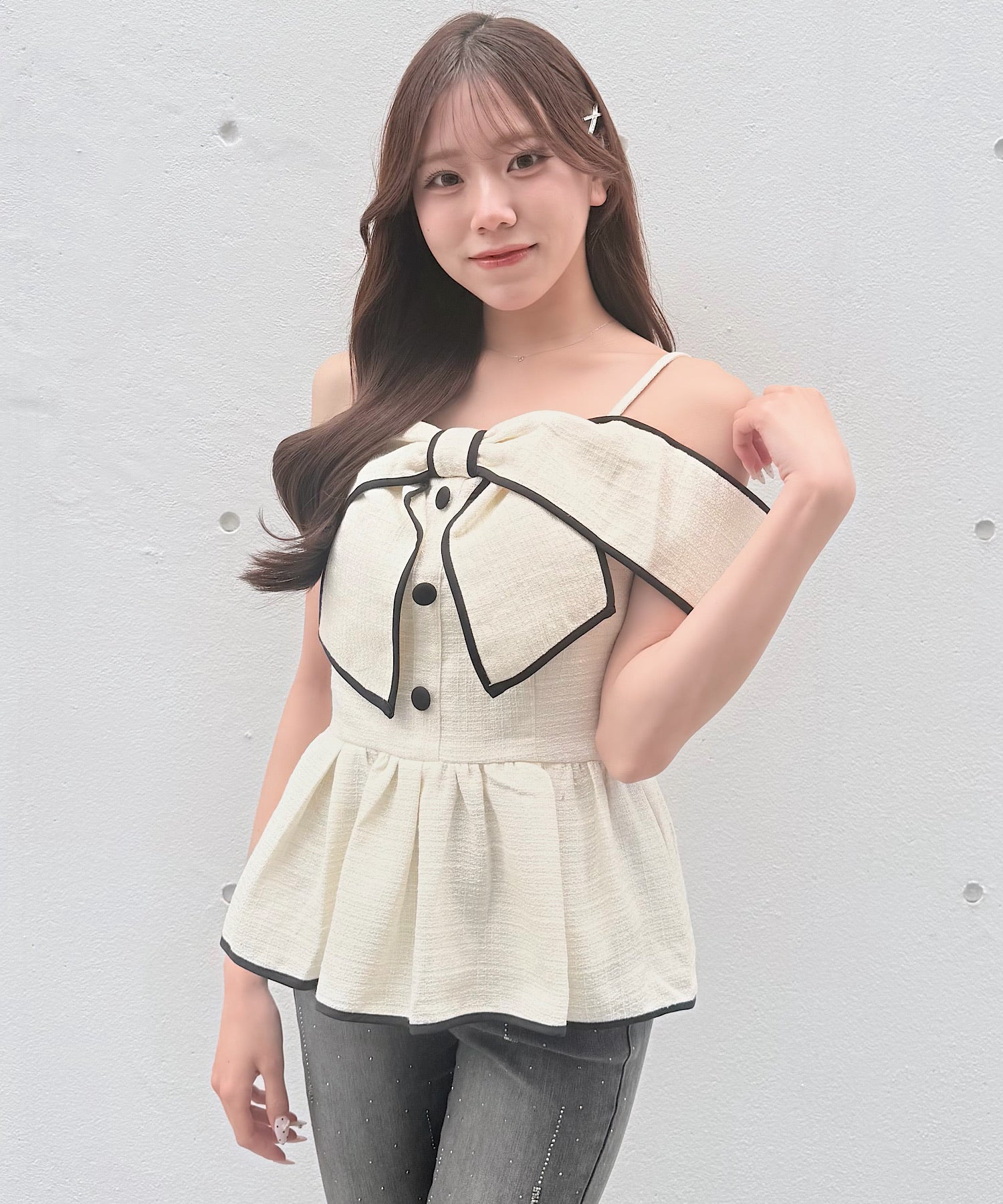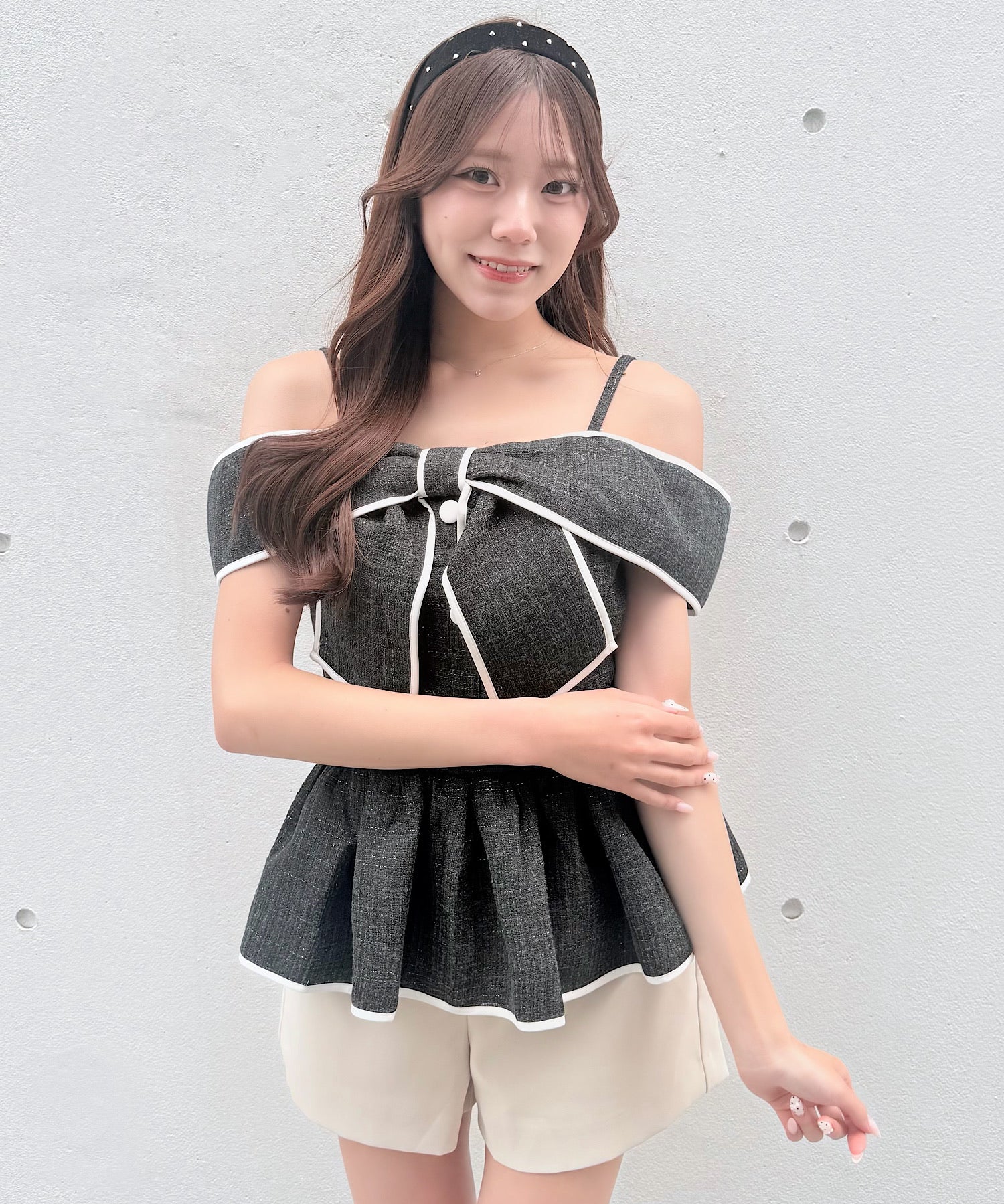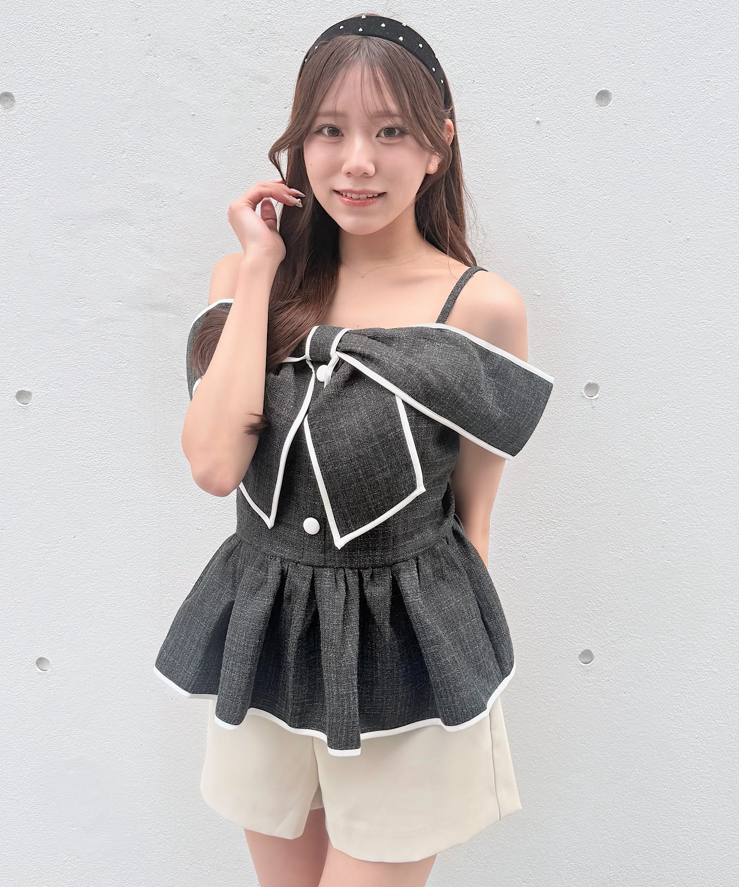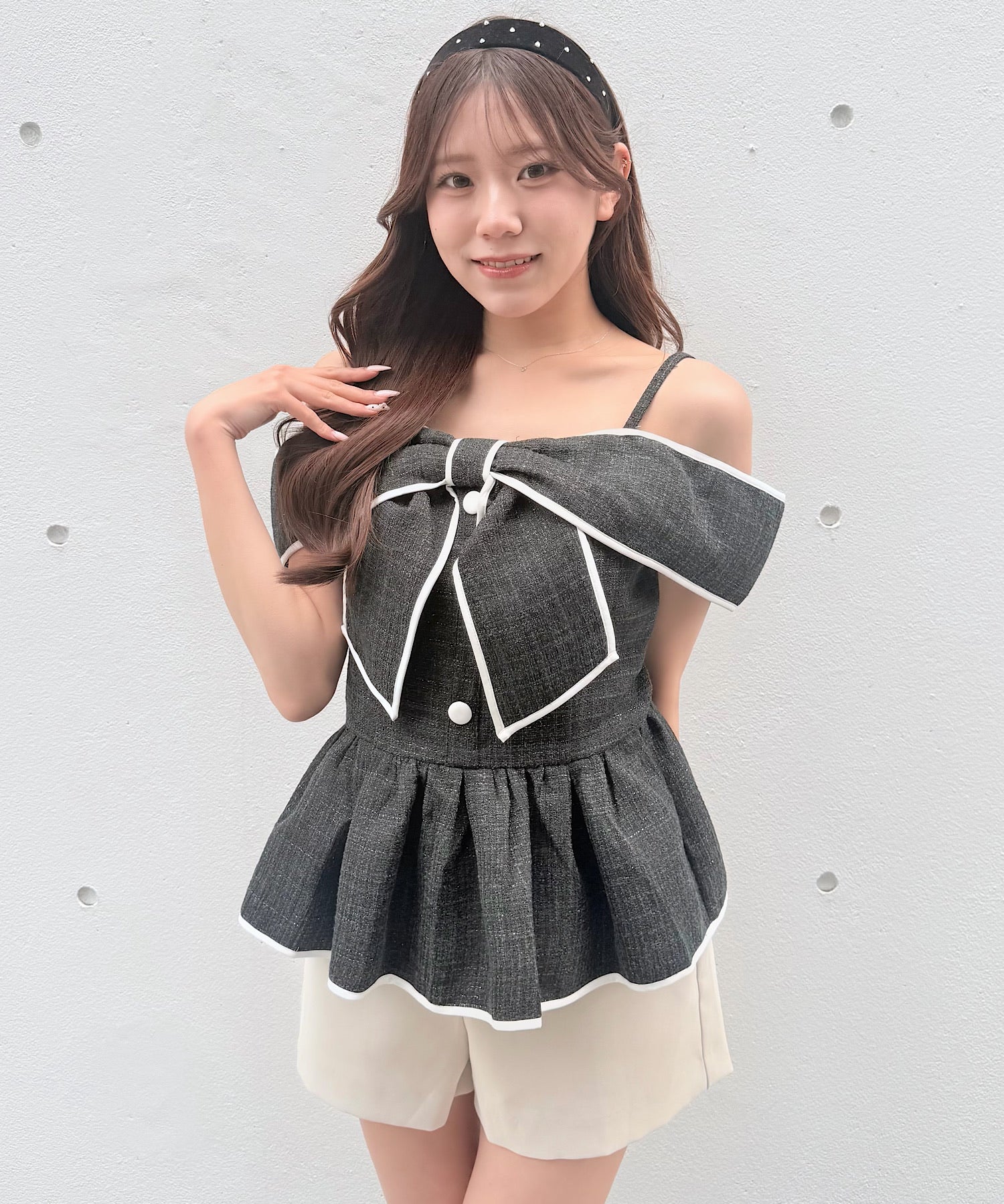 ・存在感のある大きめリボンが、コーディネートの主役になるデザインです。