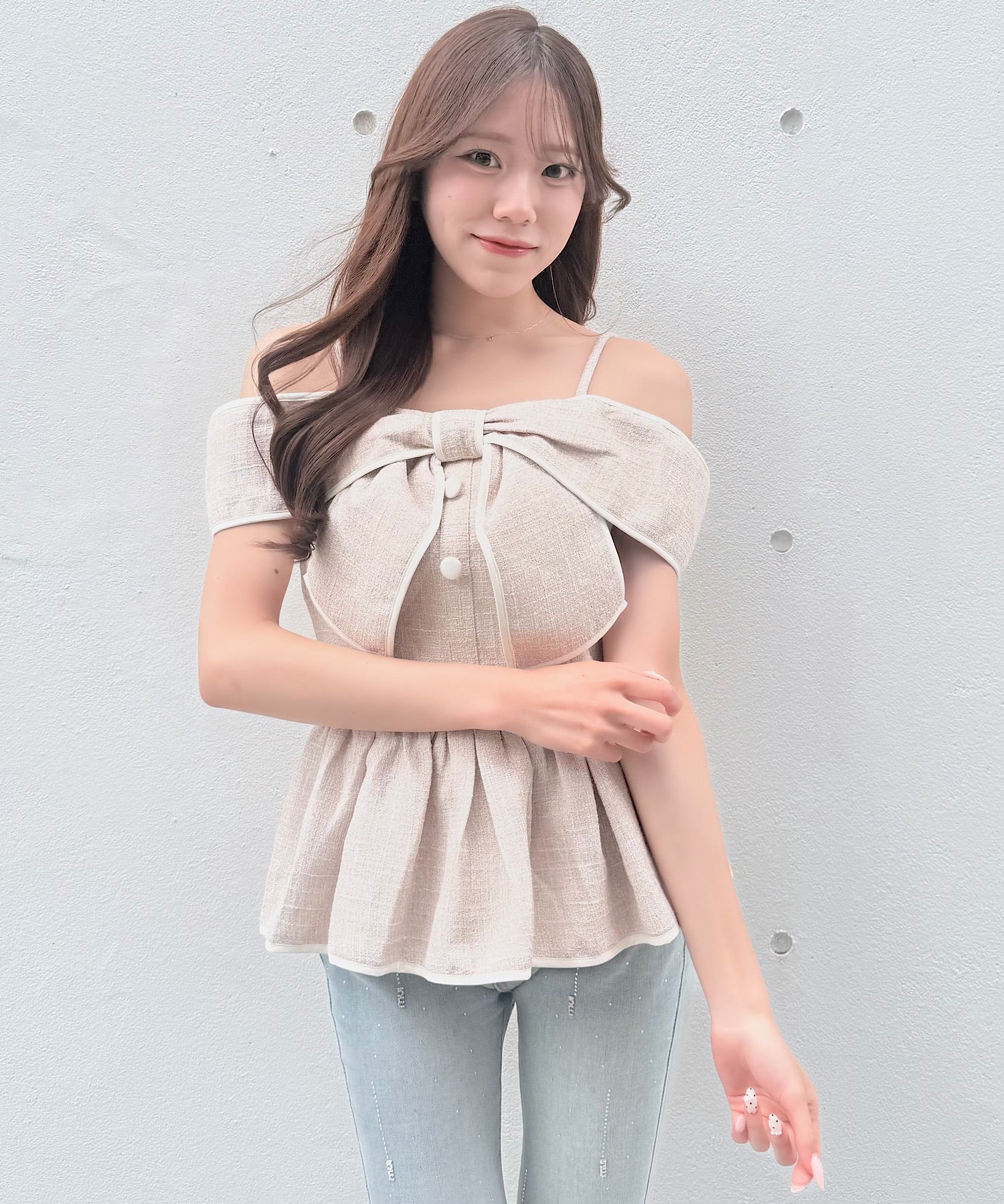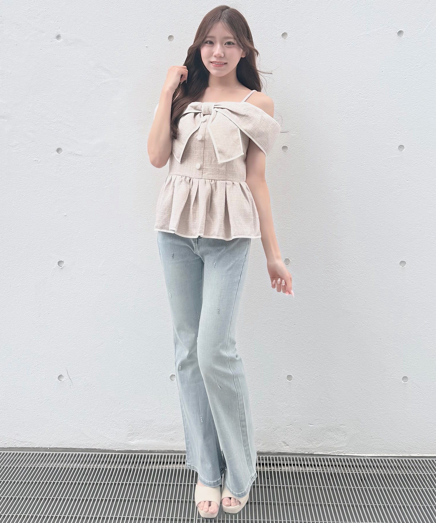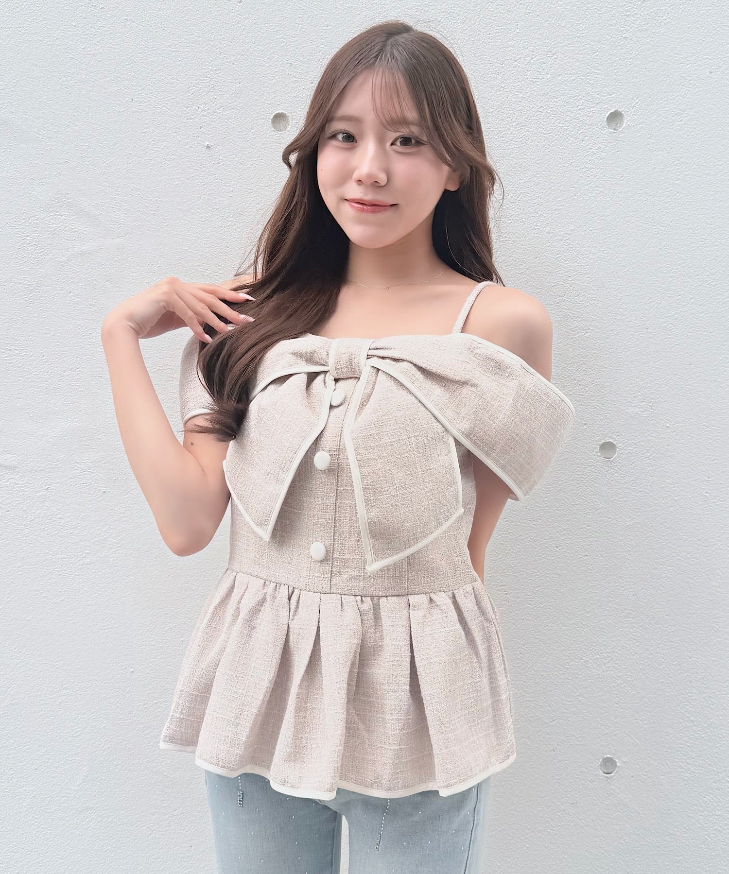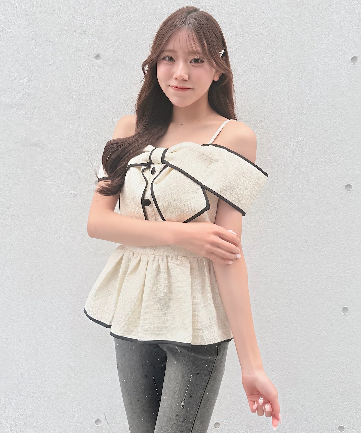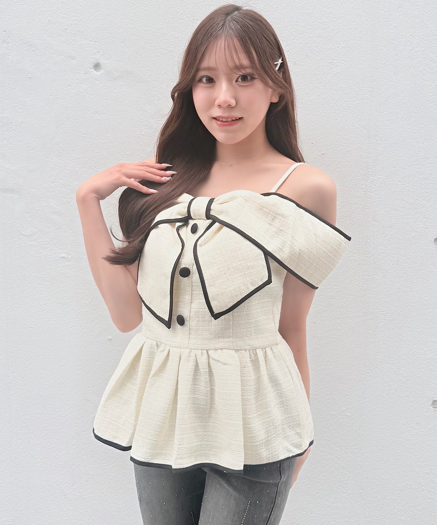 ・存在感のある大きめリボンが、コーディネートの主役になるデザインです。