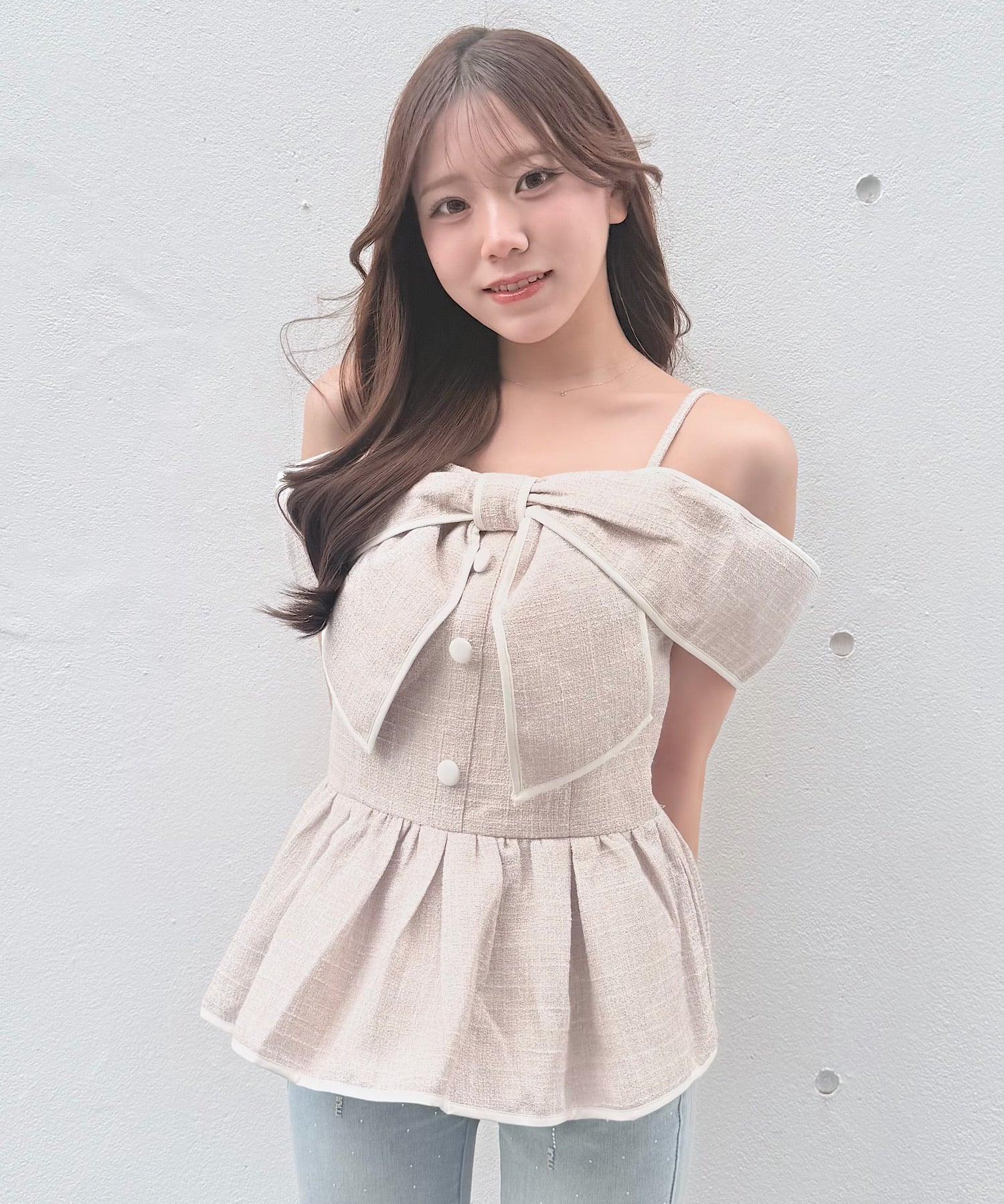 【予約商品5月中旬お届け】リボンペプラムブラウス