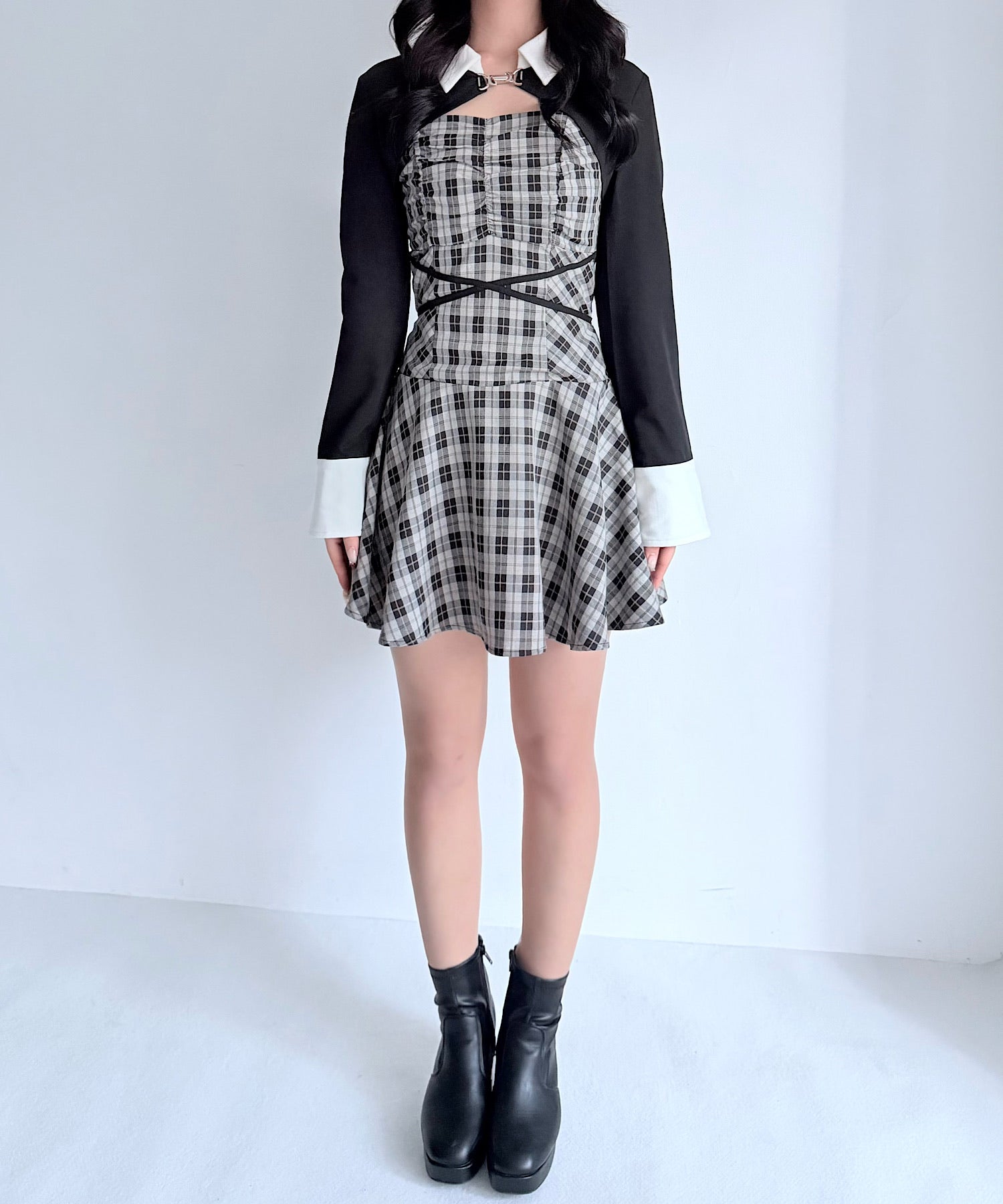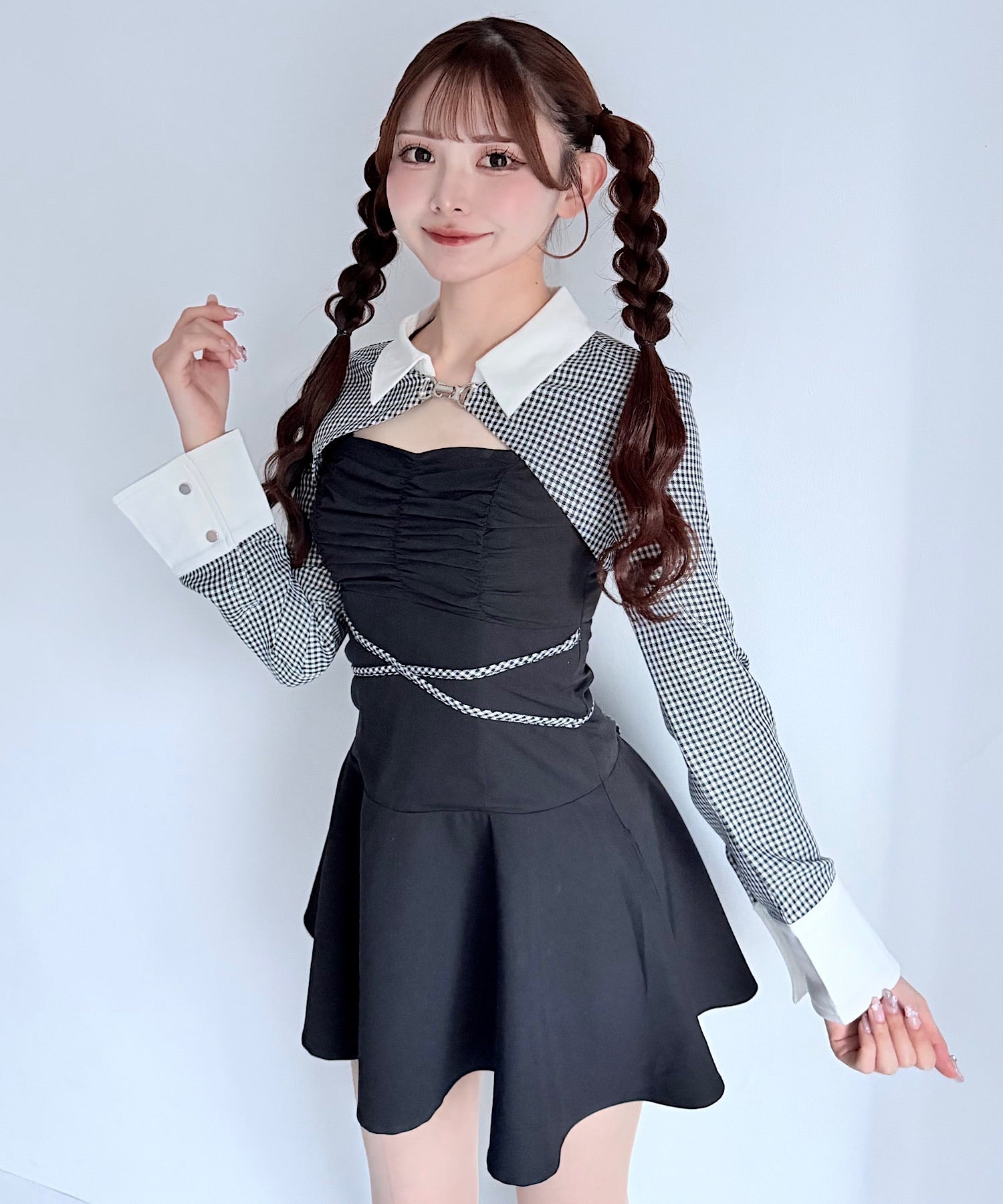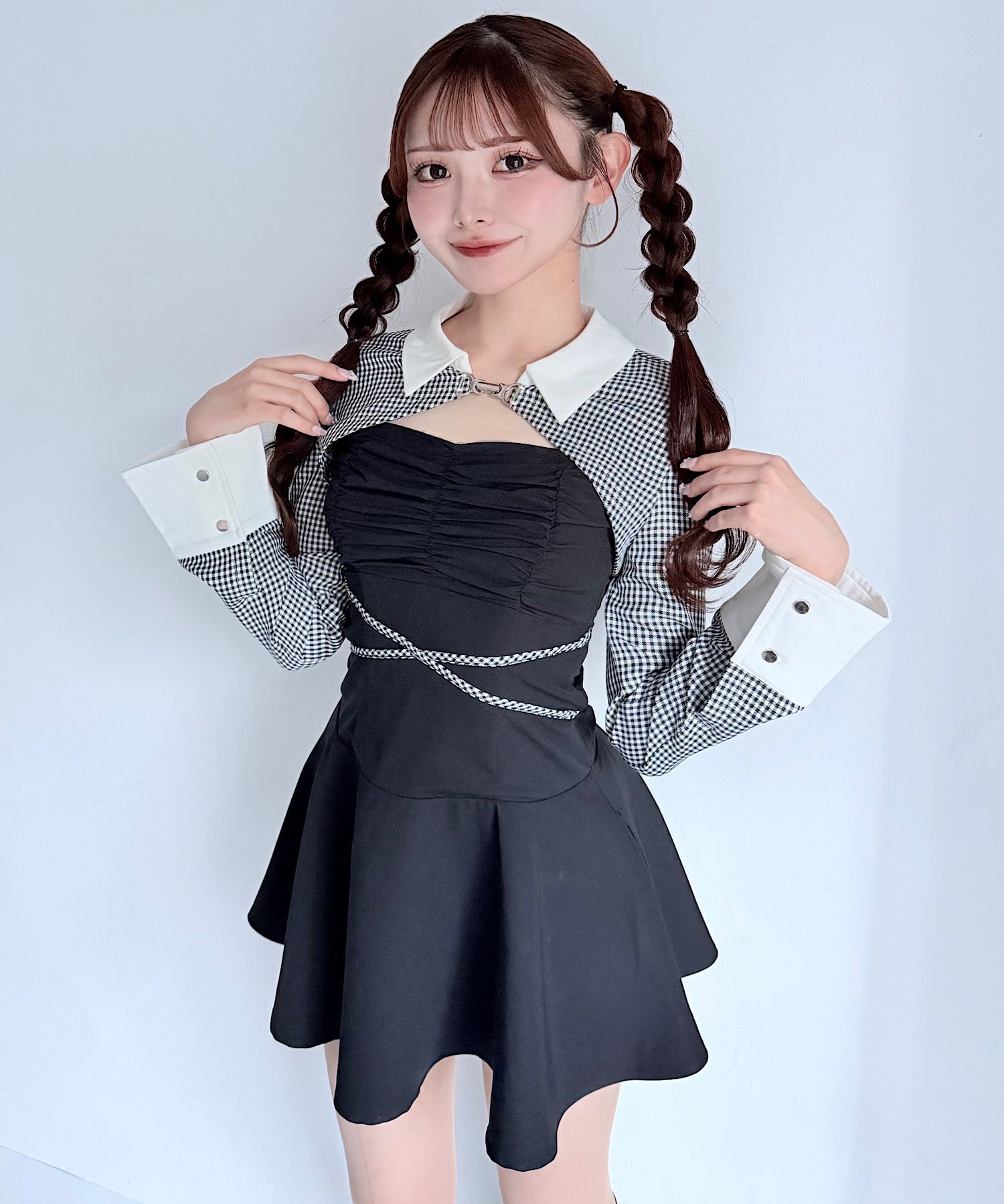 【予約商品2月上旬発送】ショートブラウスレイヤードワンピース