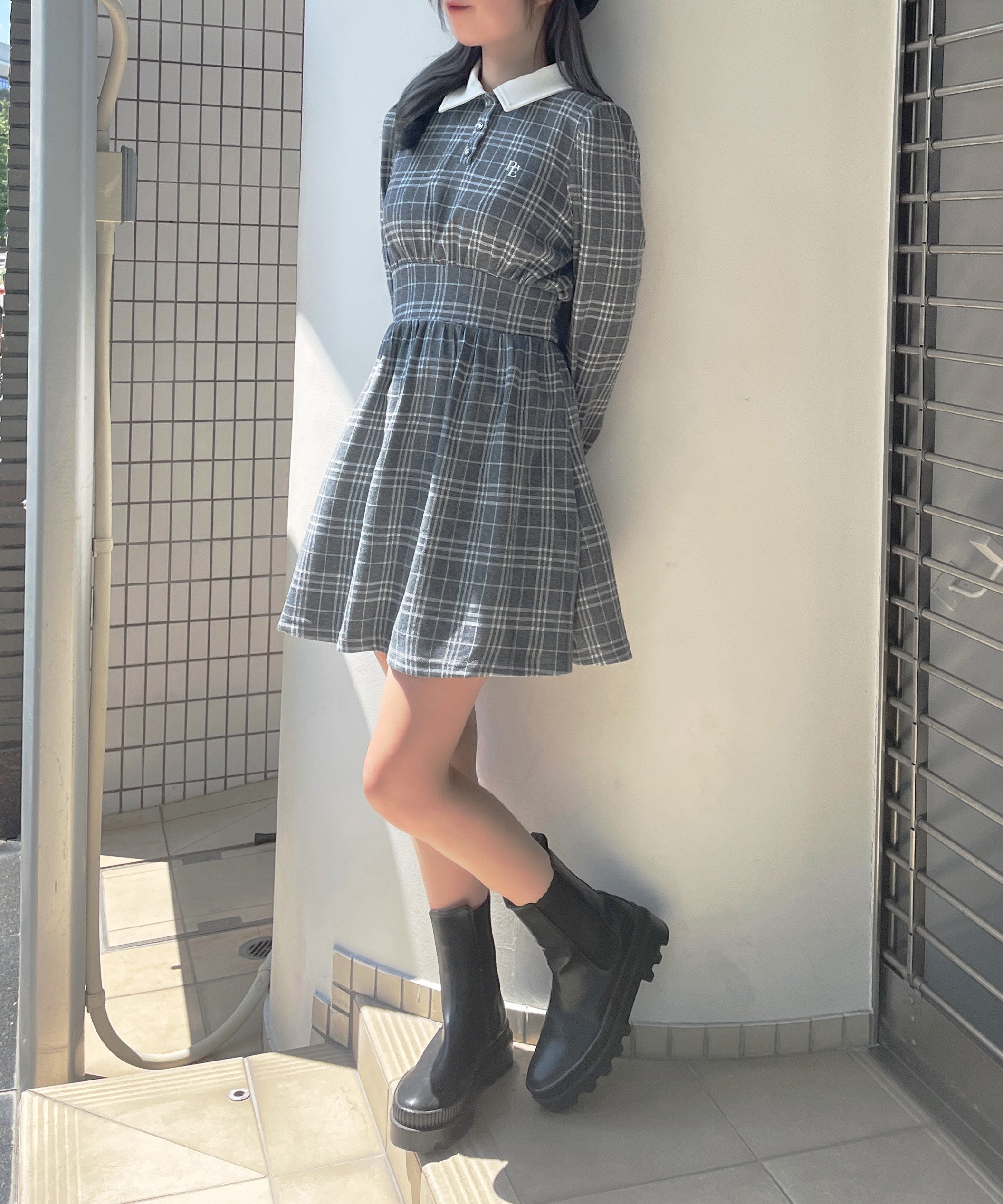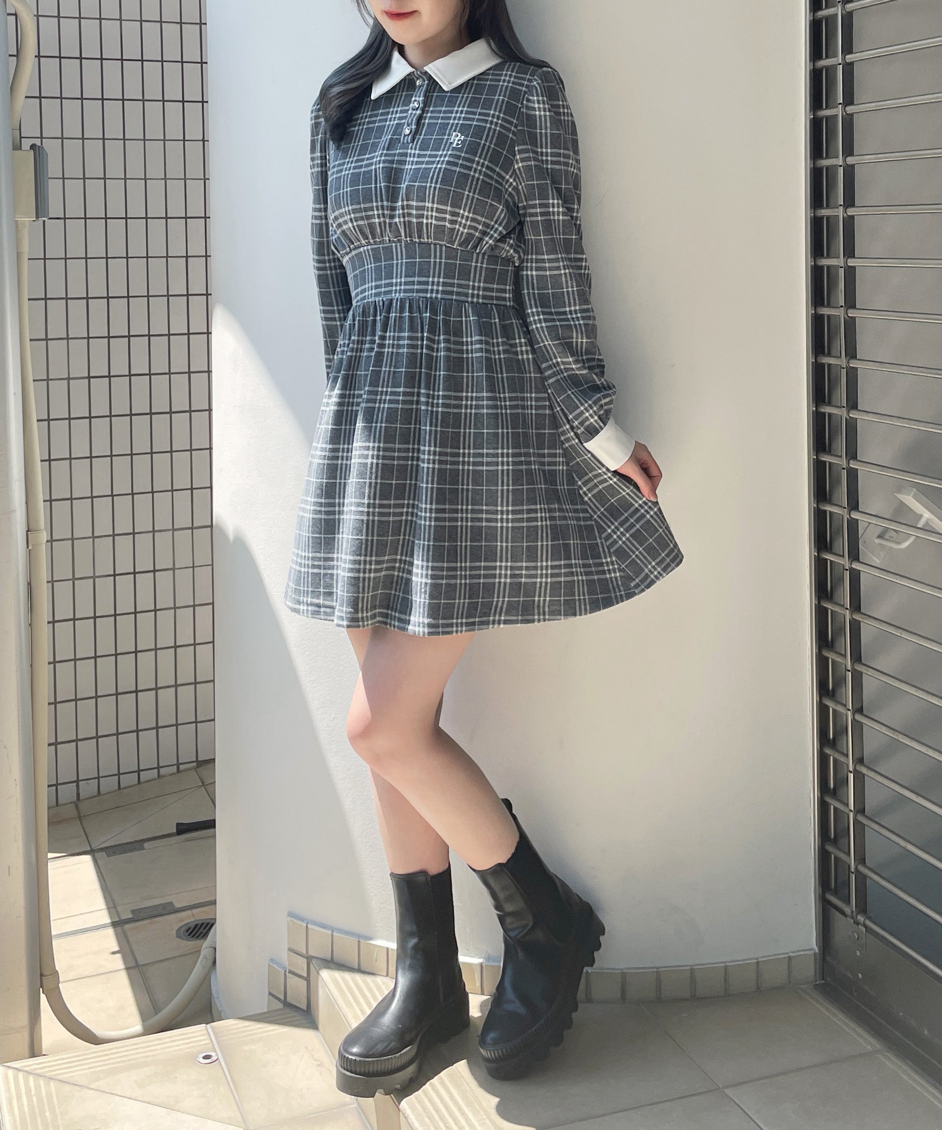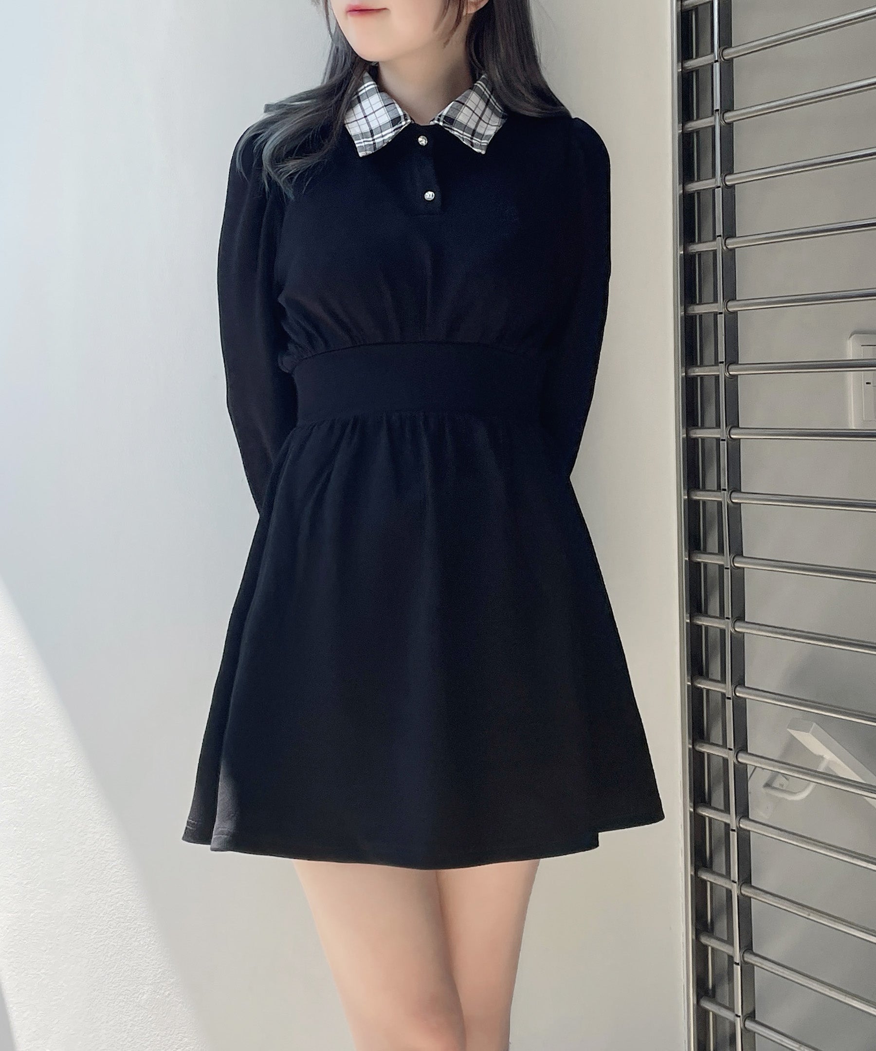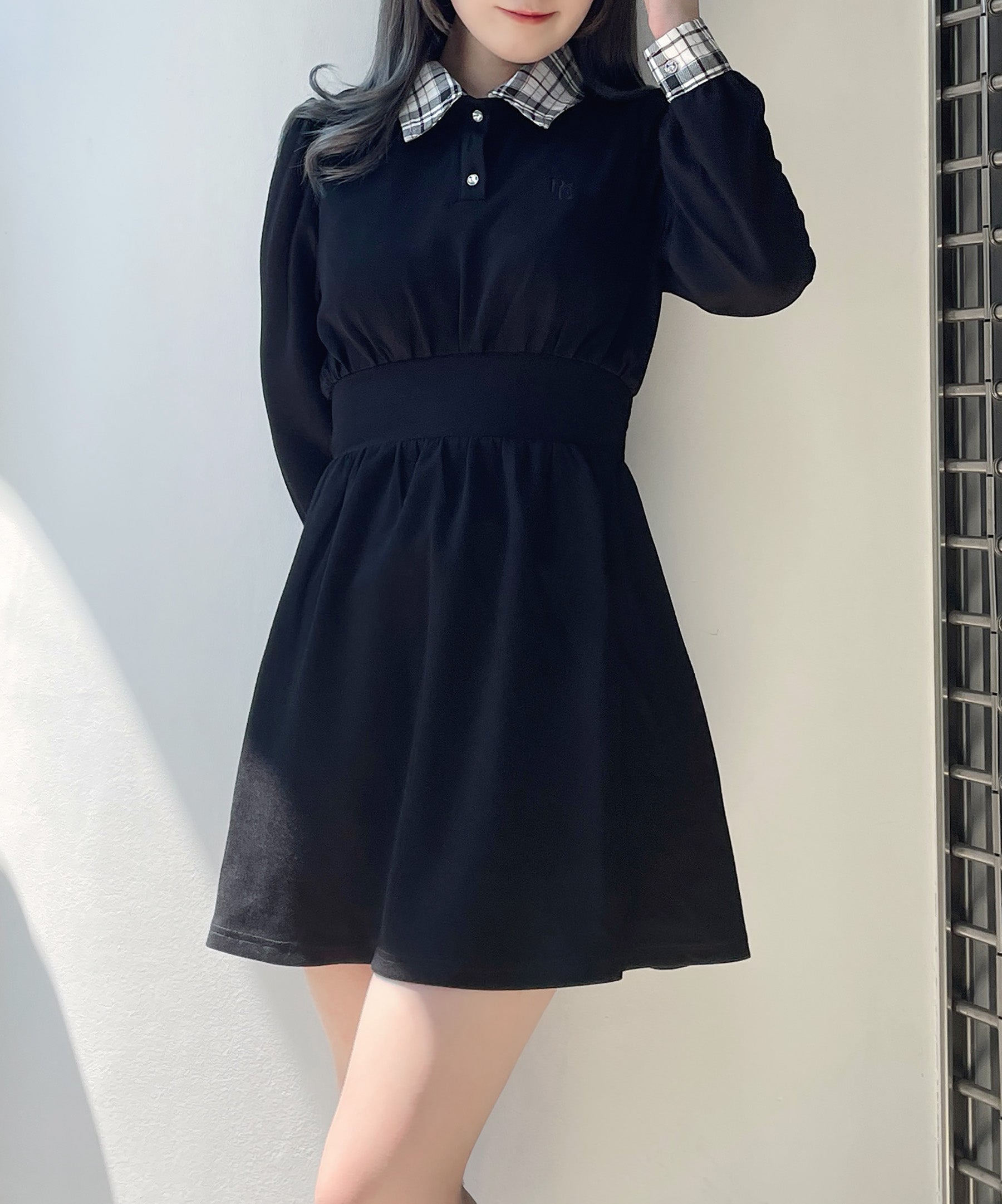 ・ポロ衿とストーン調のボタンがアクセントのガーリーなワンピース♡