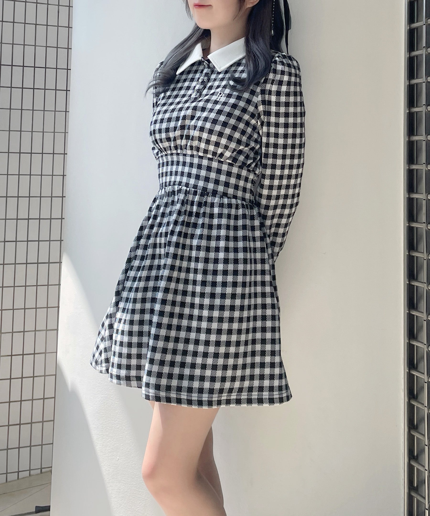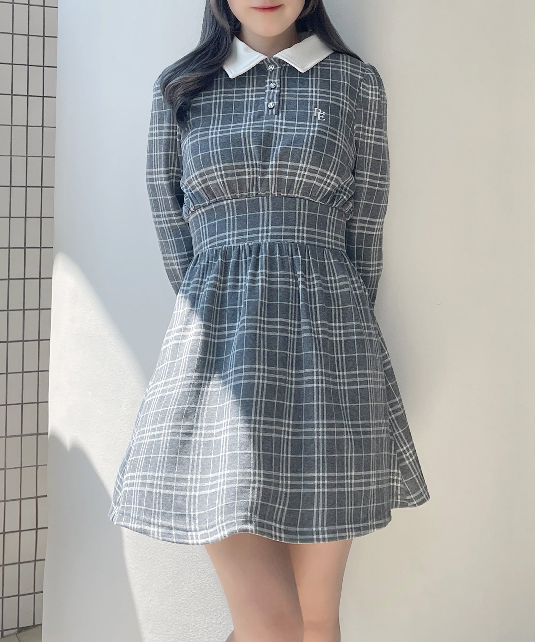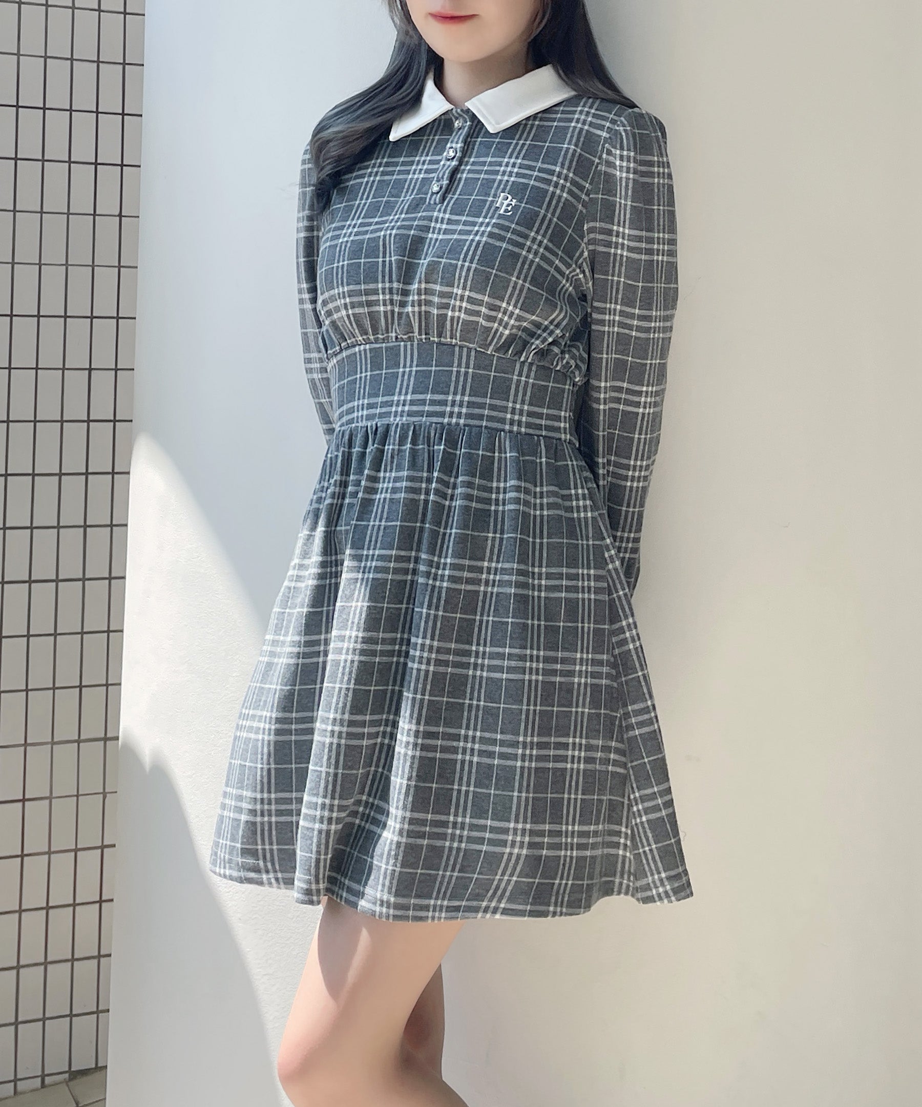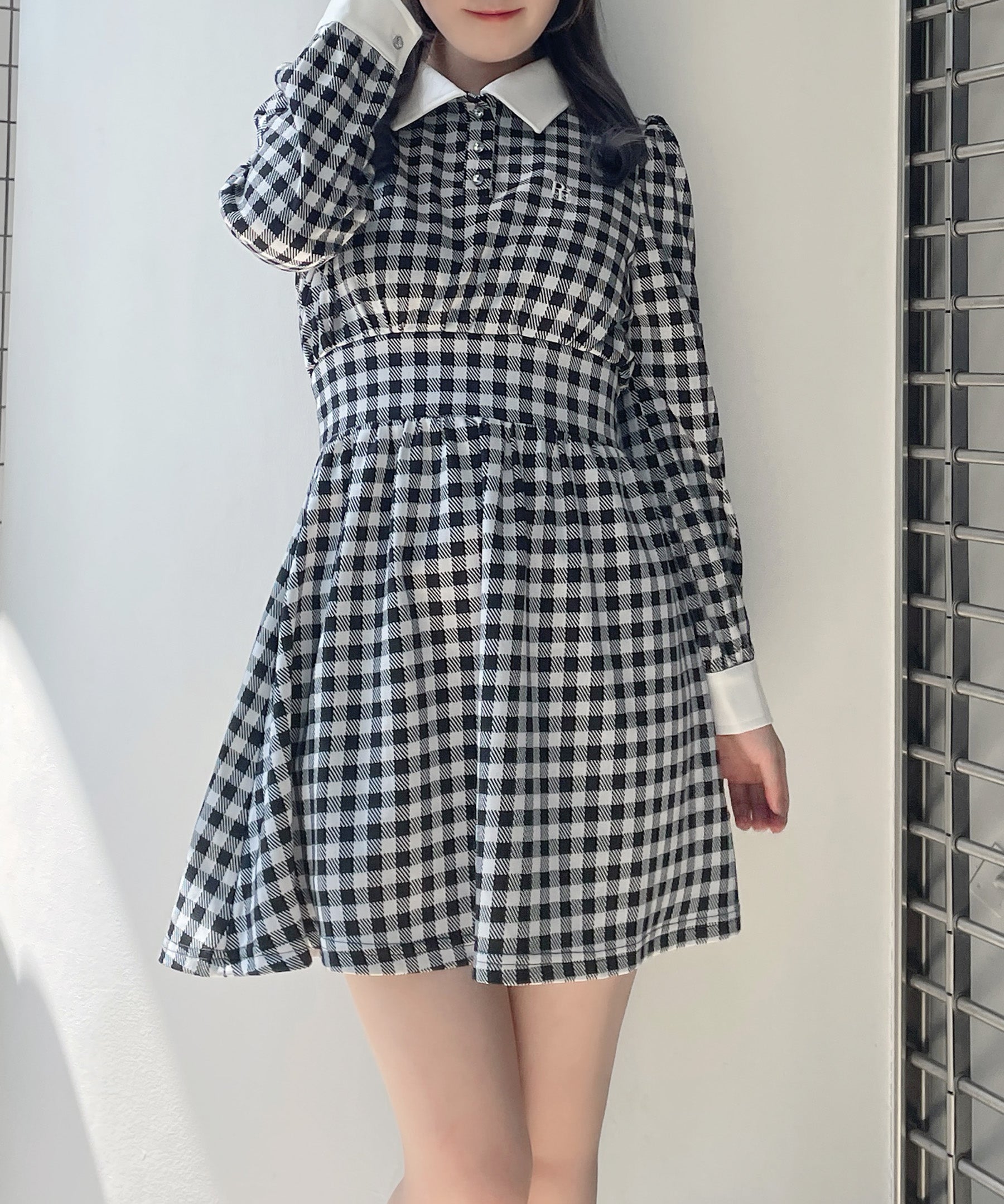 ・ポロ衿とストーン調のボタンがアクセントのガーリーなワンピース♡