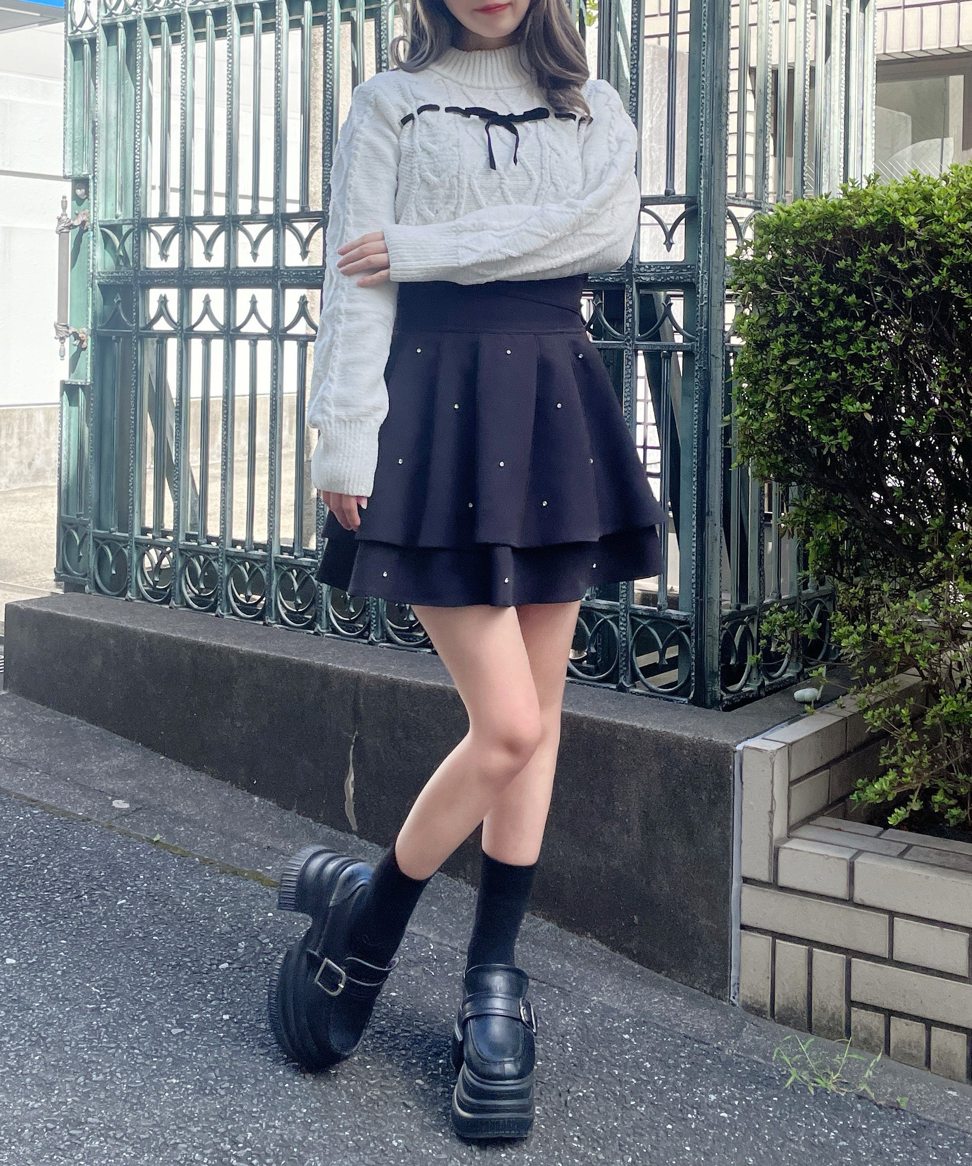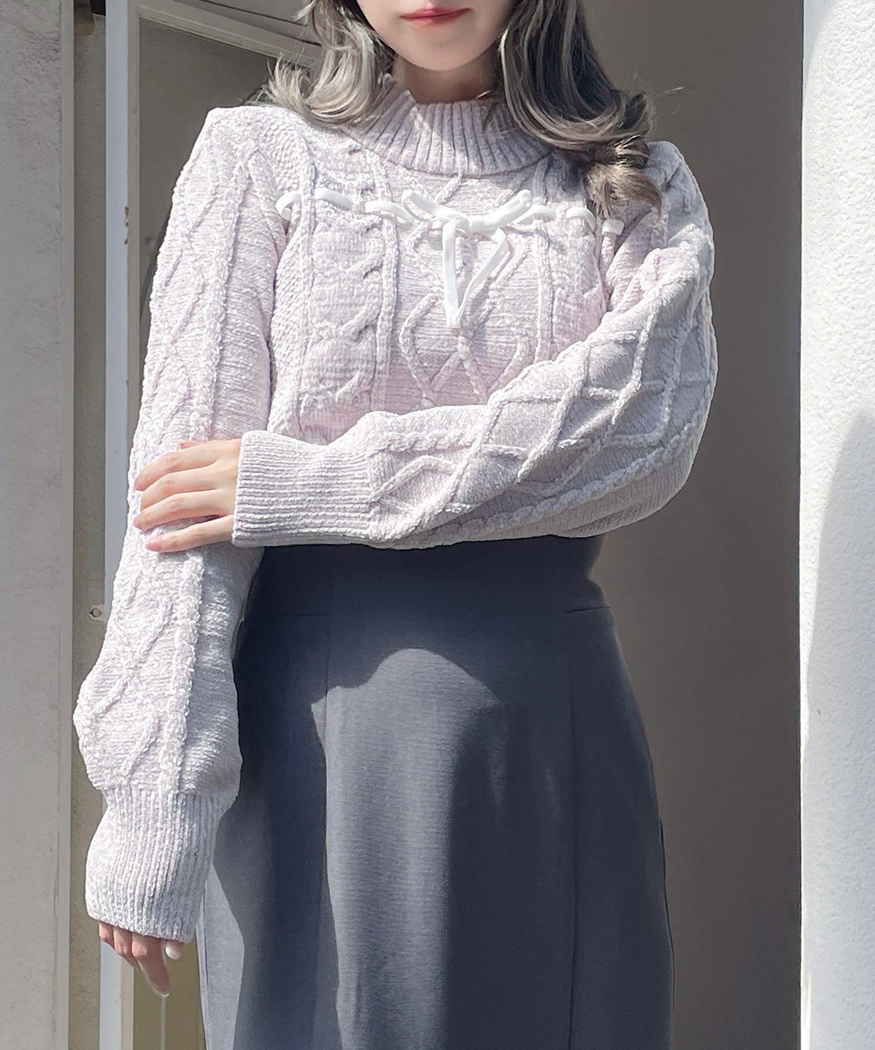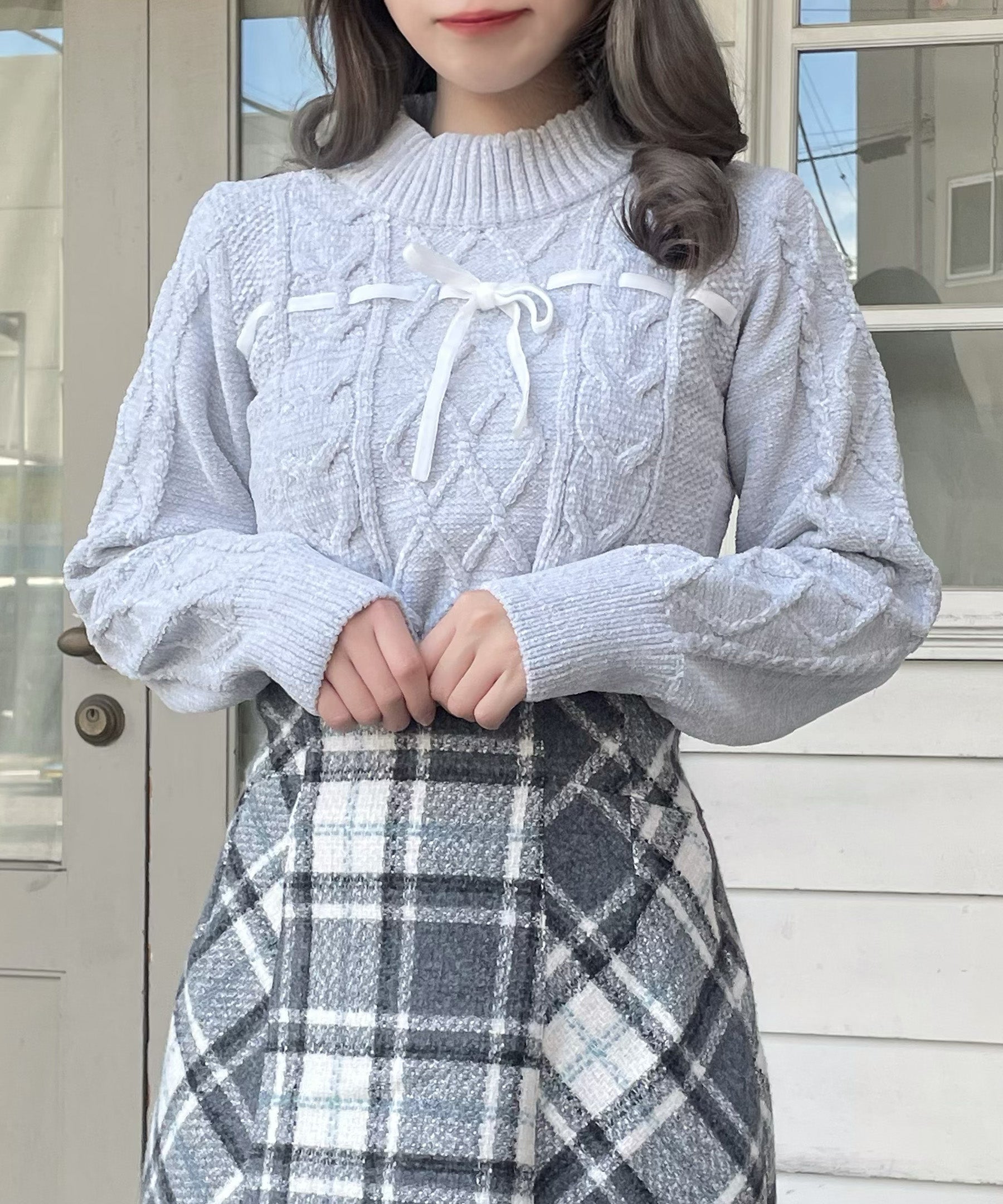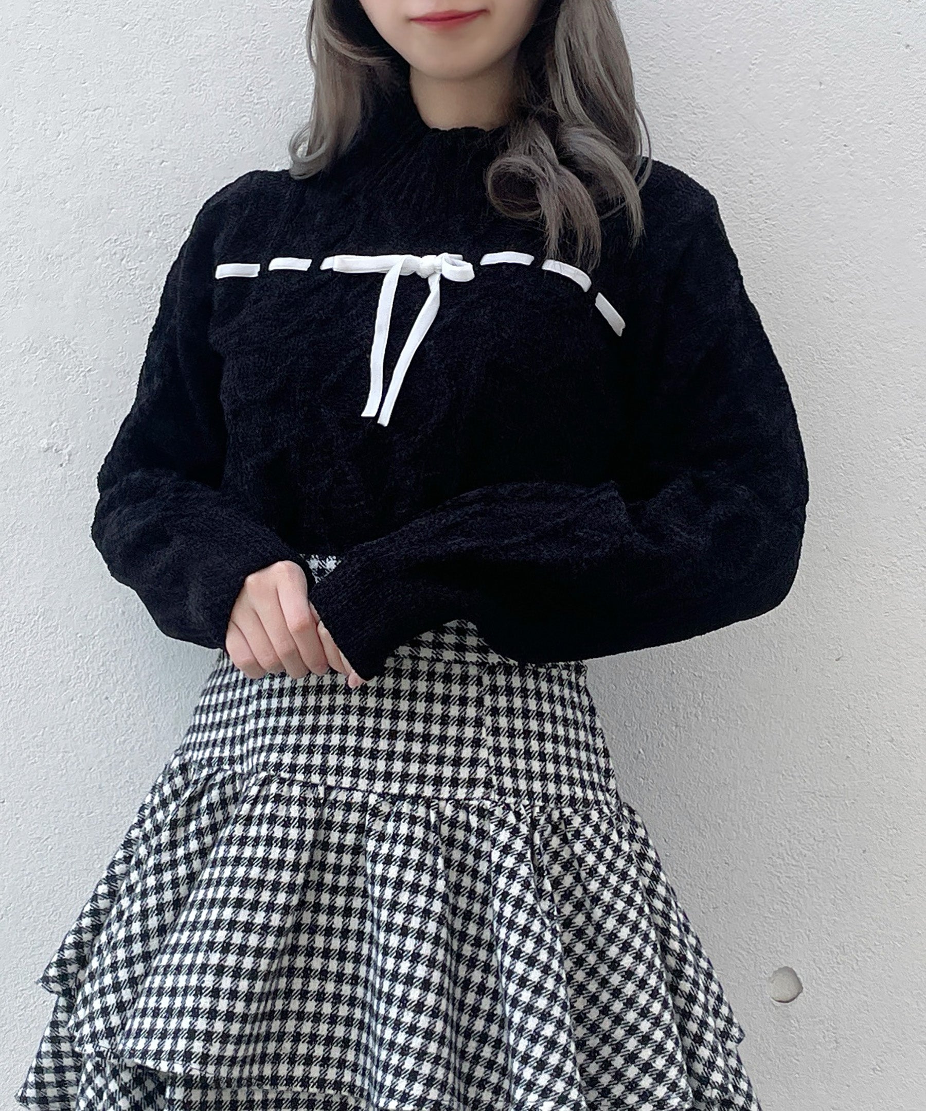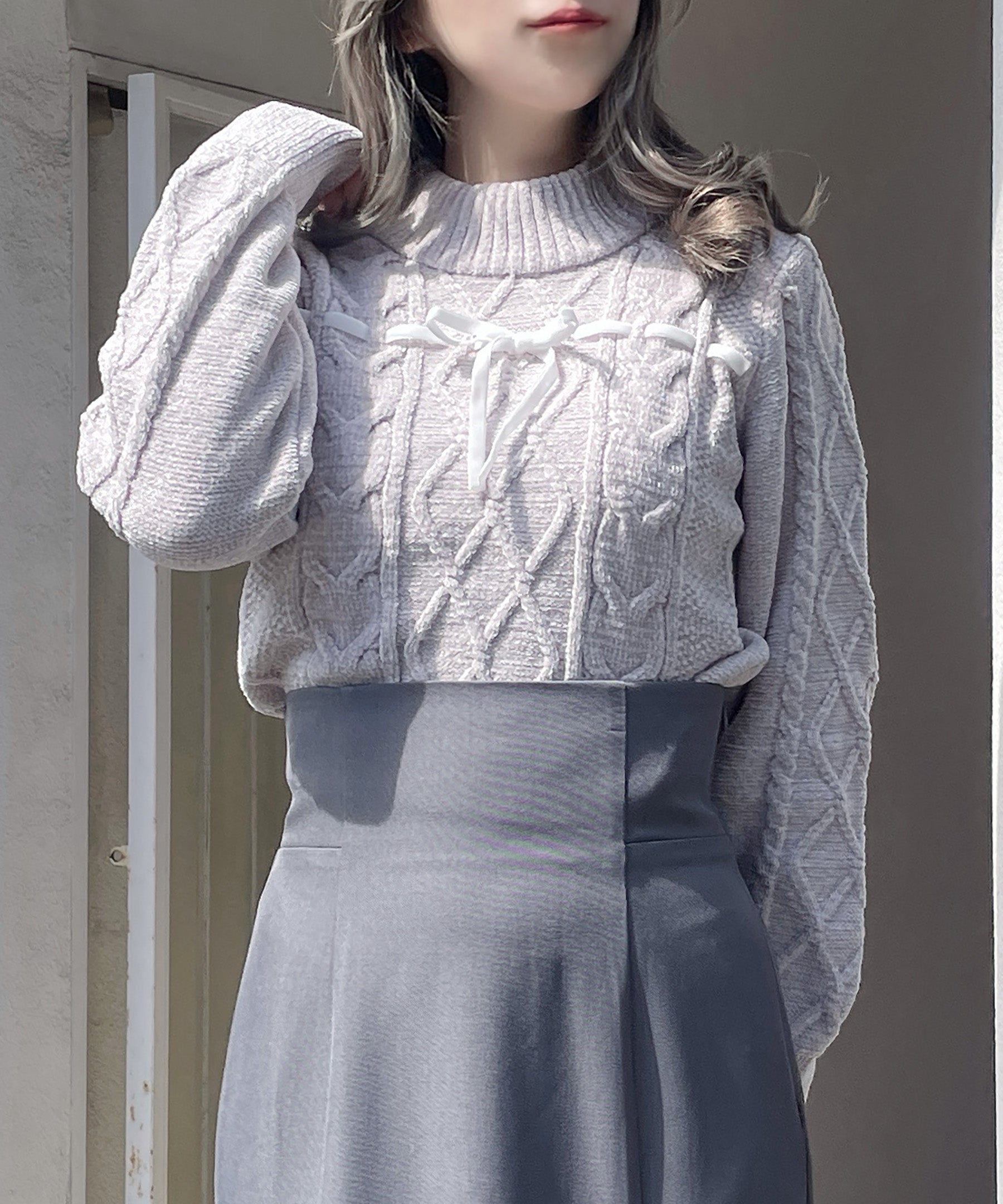 ・胸元のモールリボンがガーリーな印象で冬に大活躍の万能ニット♡
