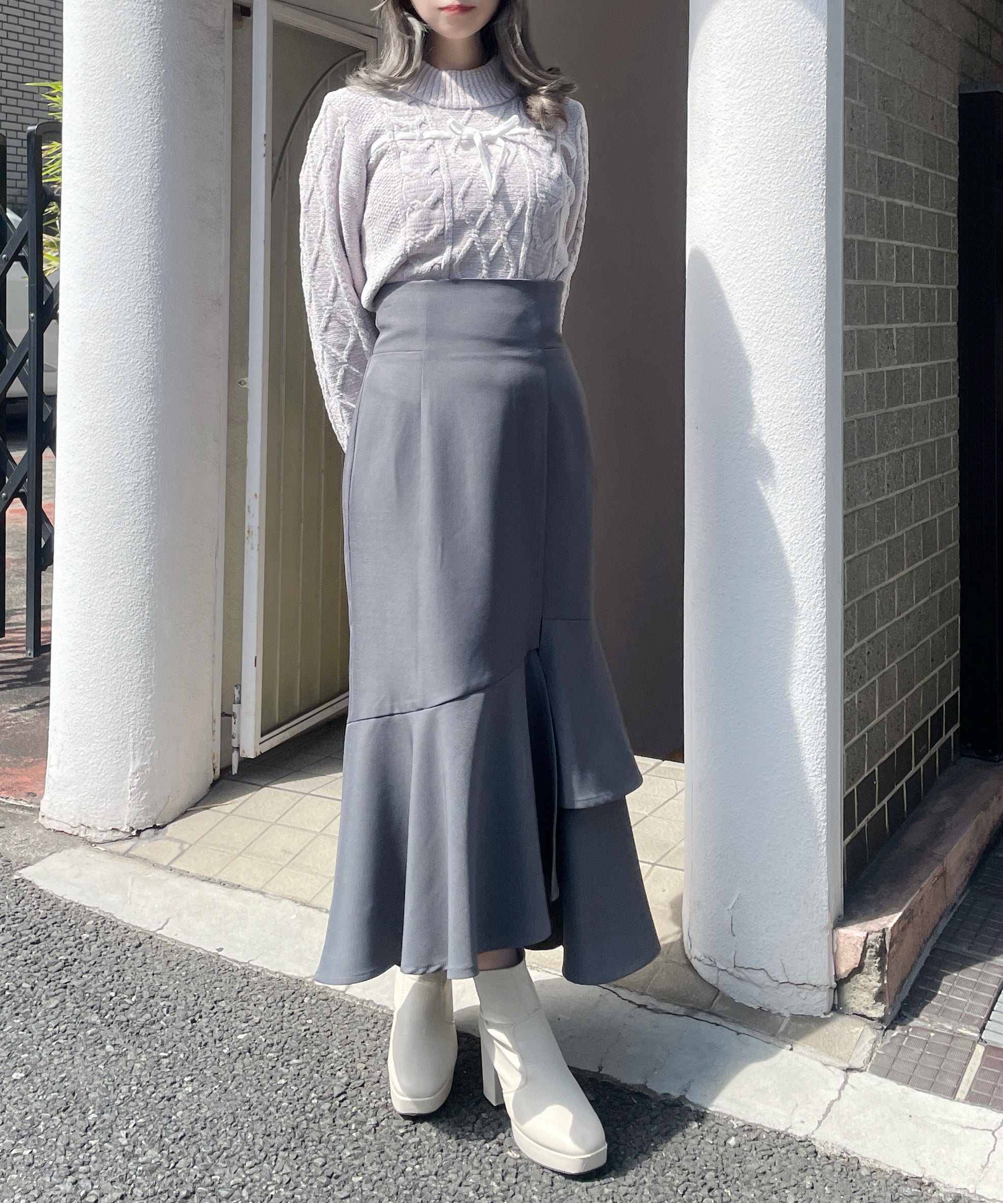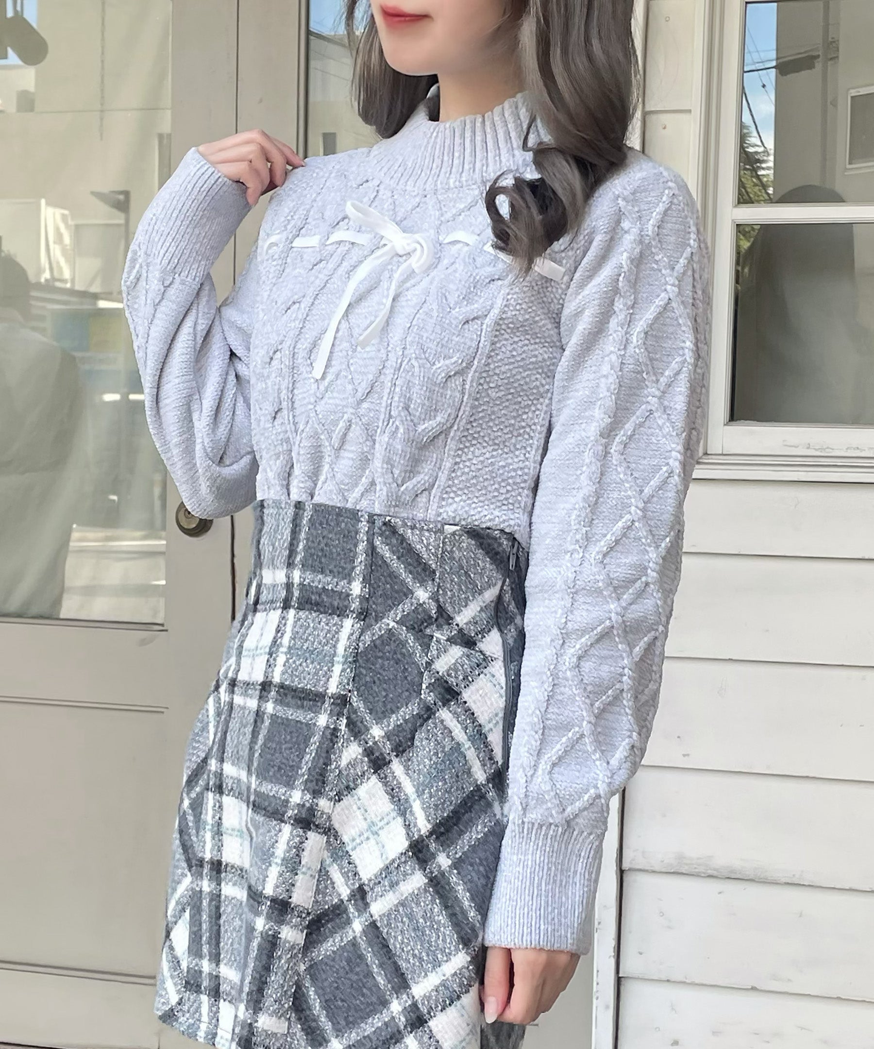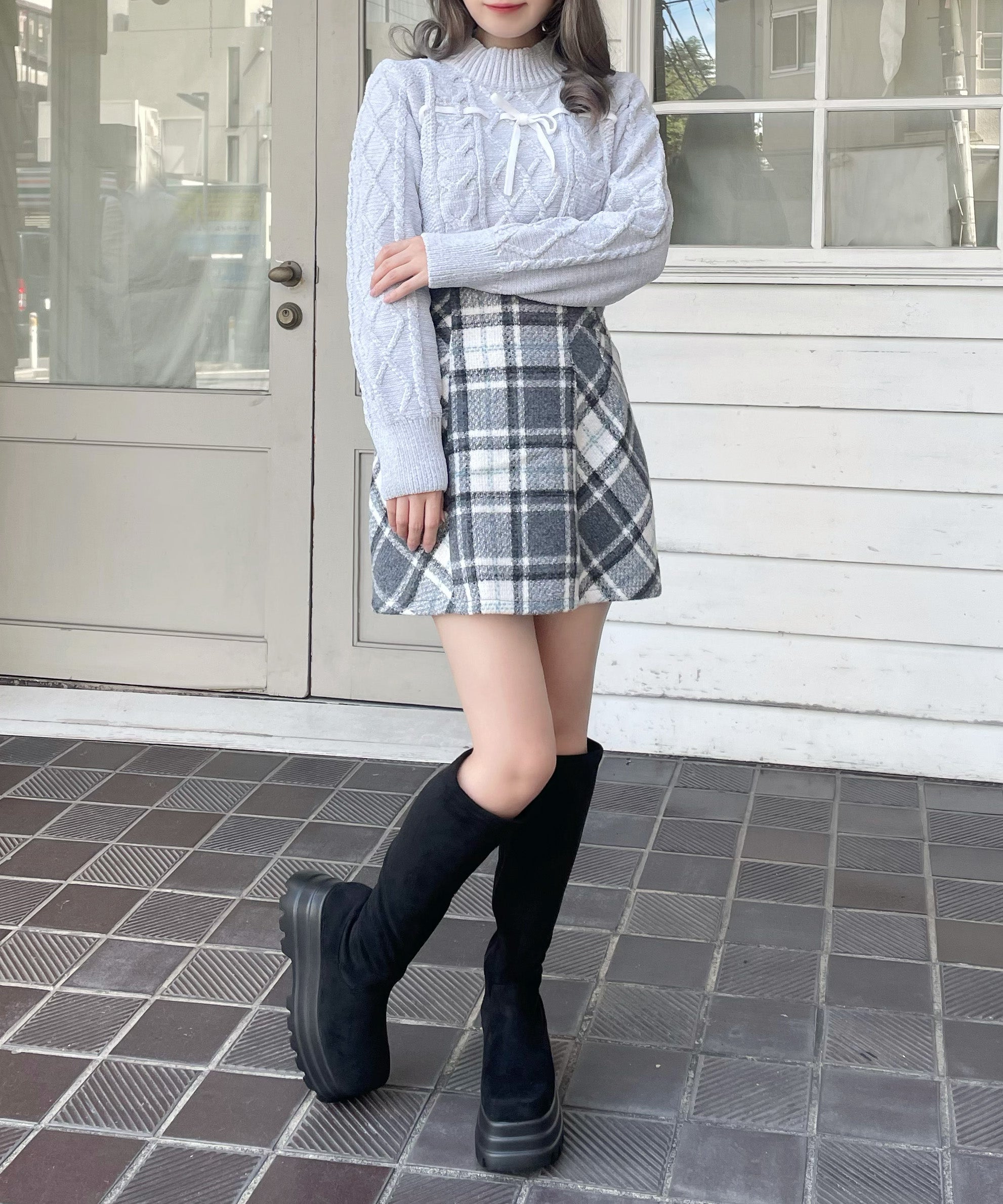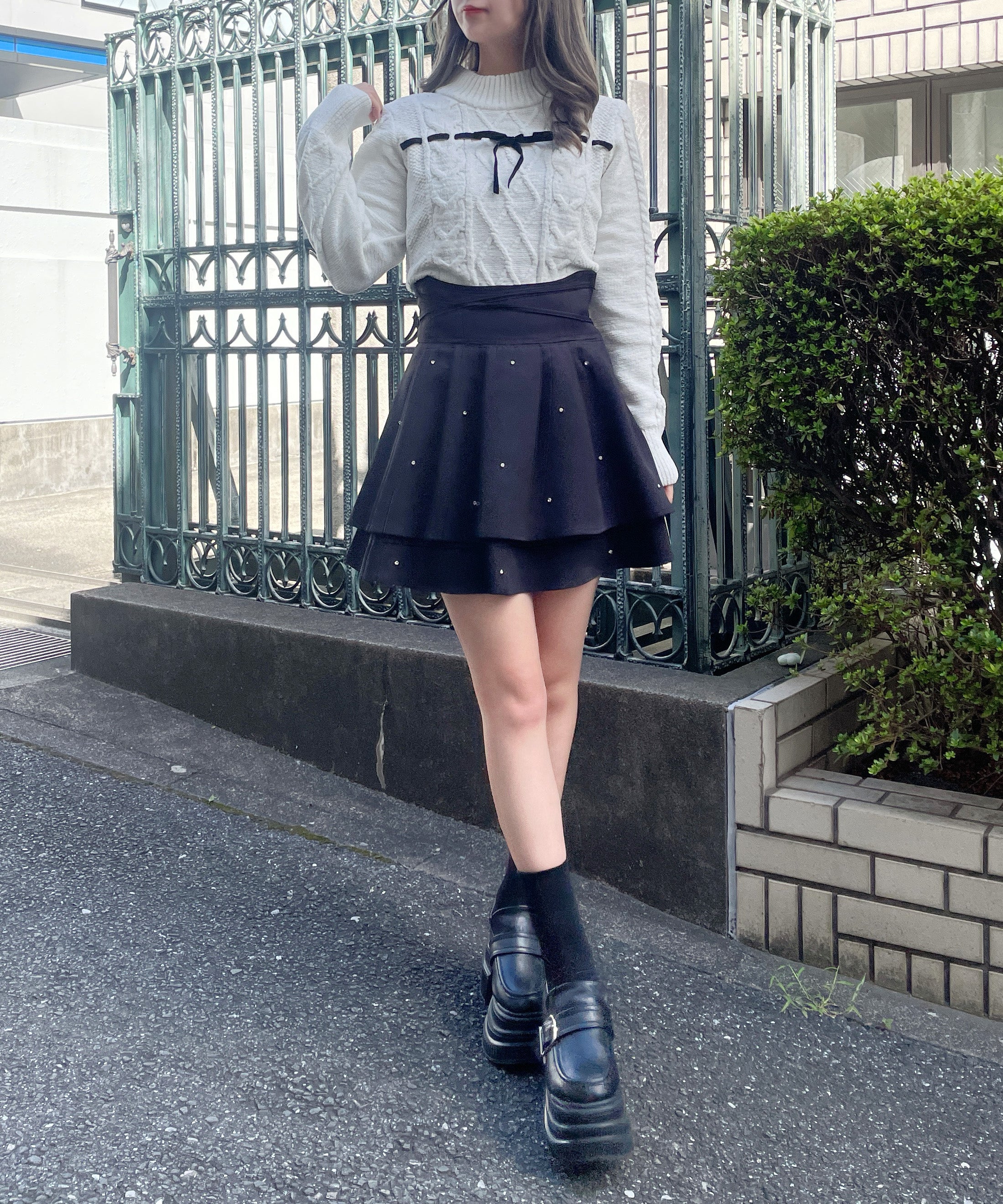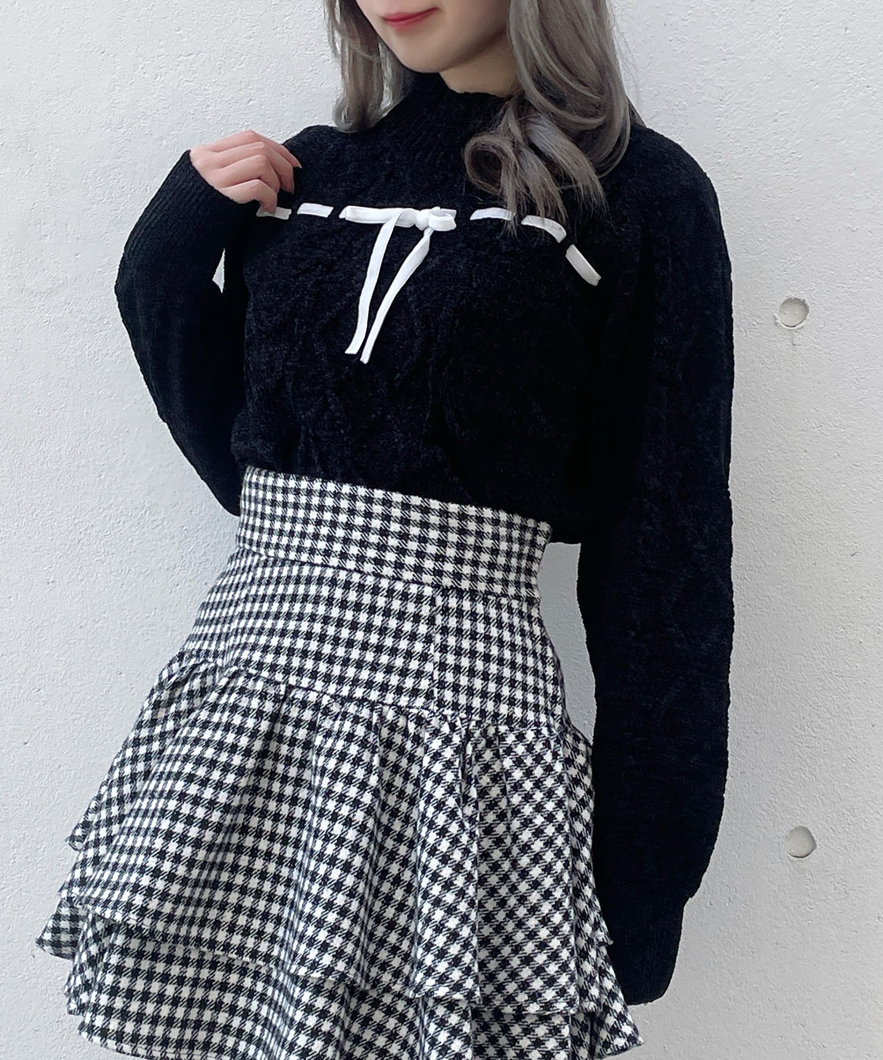・胸元のモールリボンがガーリーな印象で冬に大活躍の万能ニット♡