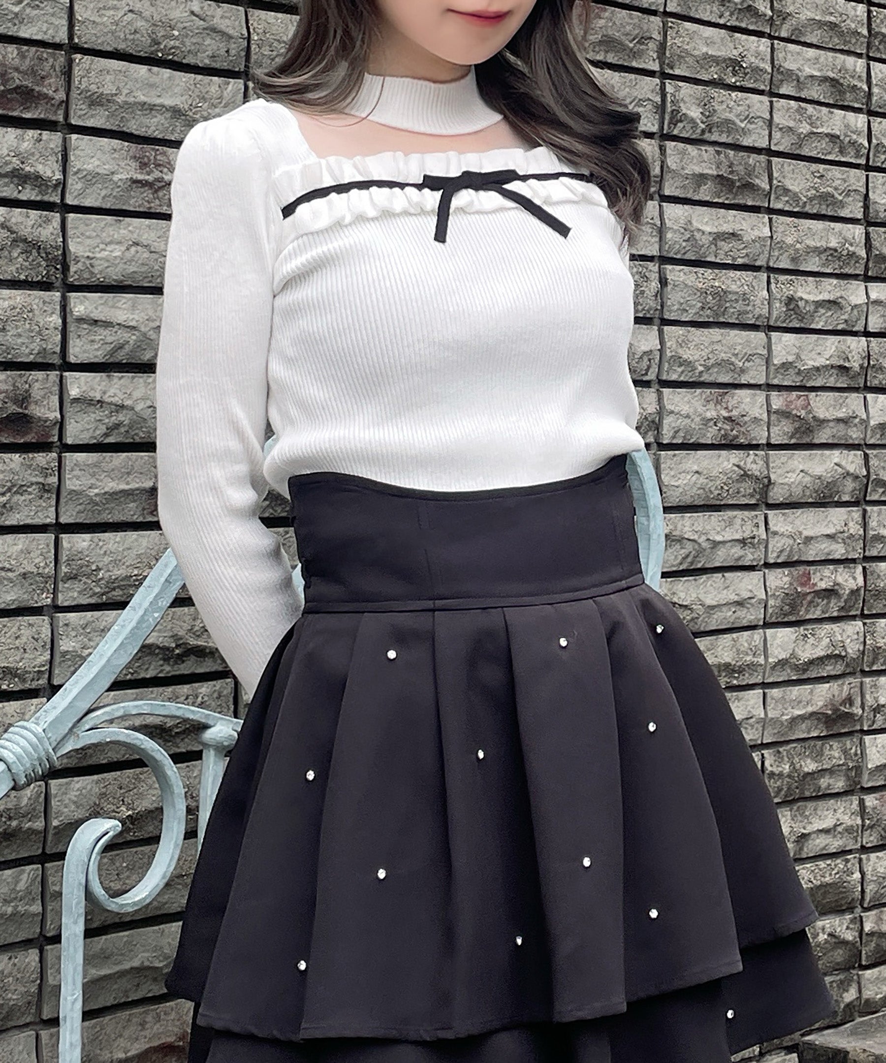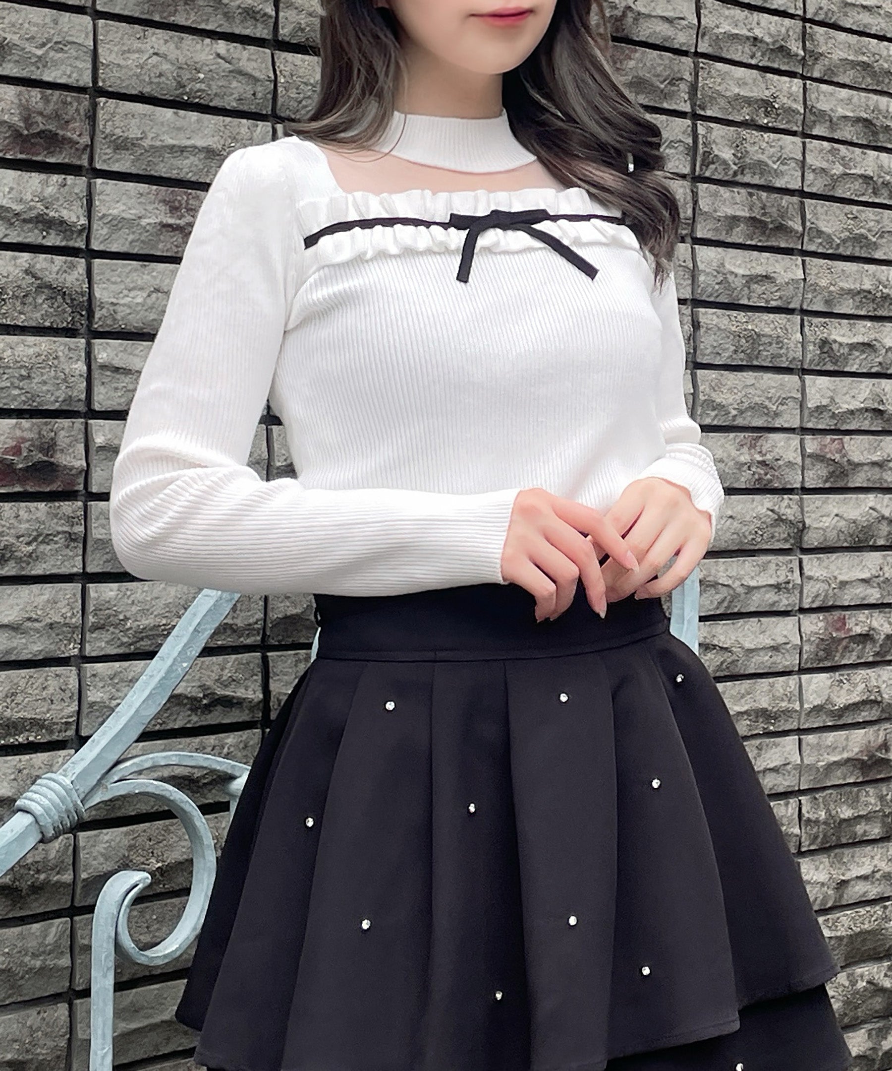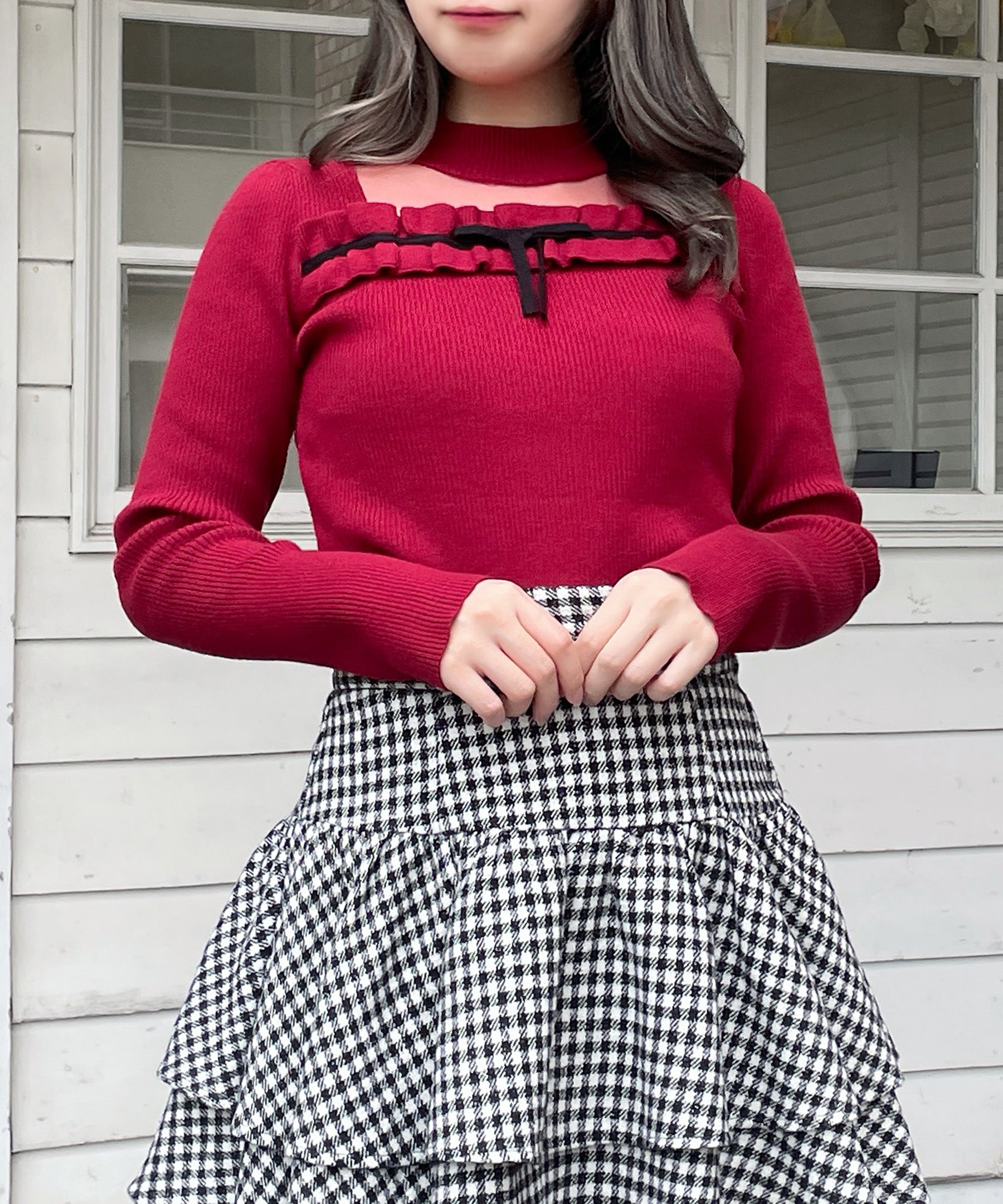 ・胸元のリボンとフリルががガーリーな雰囲気なニット♡