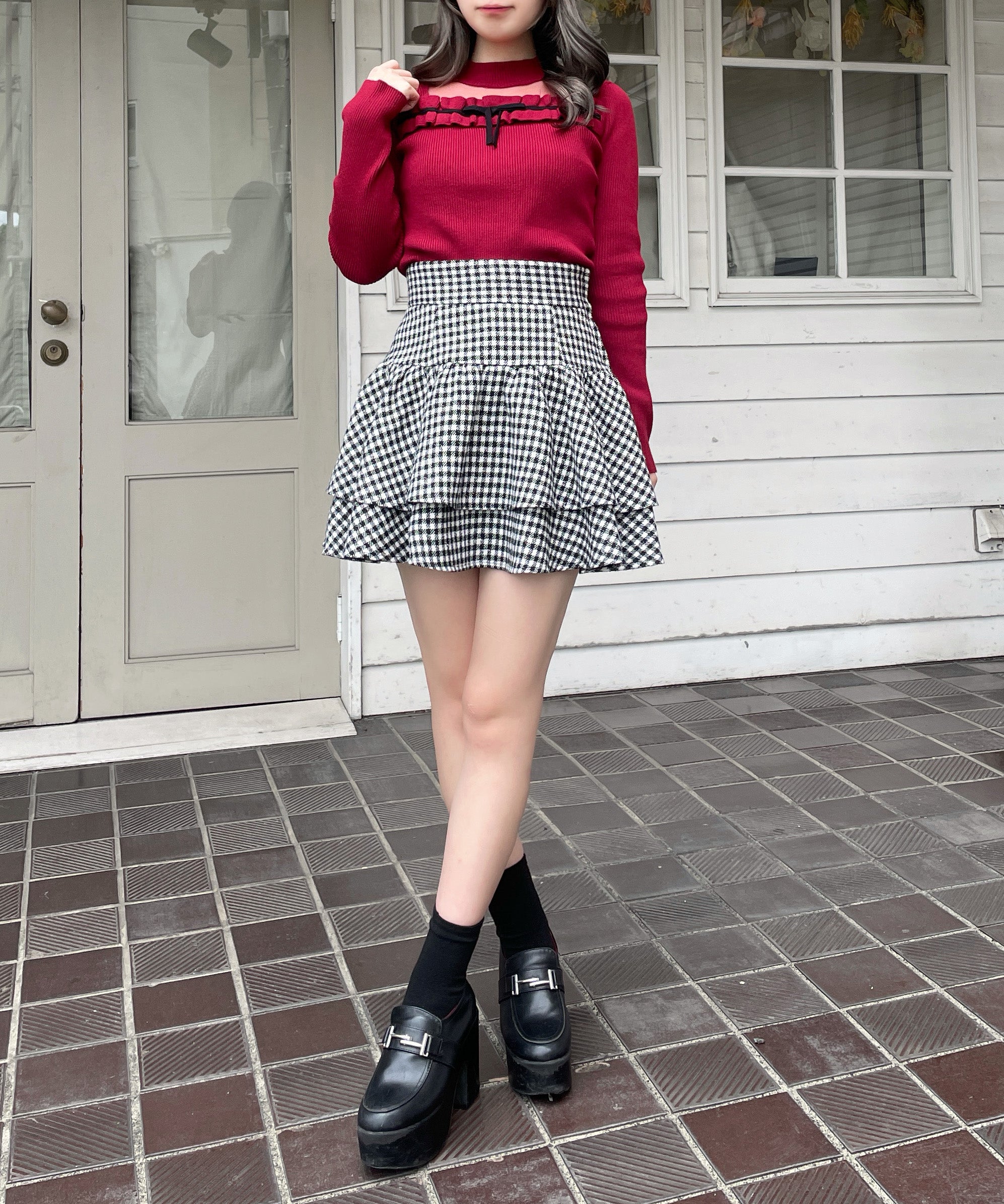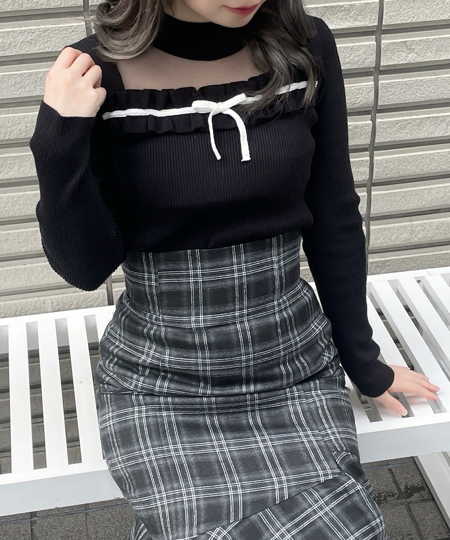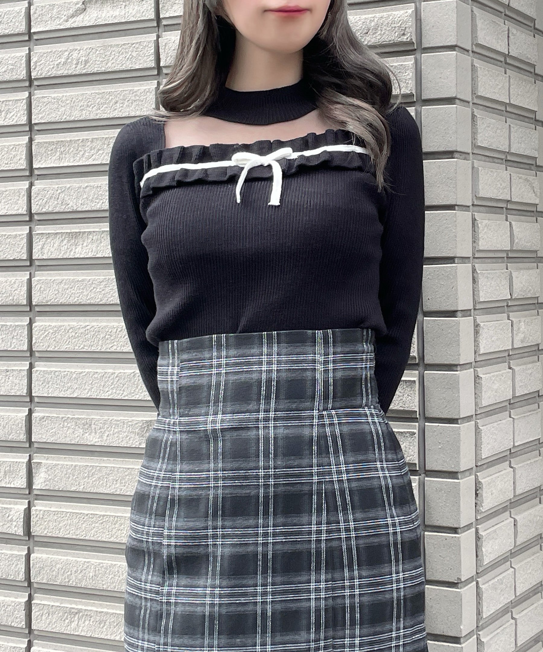 ・胸元のリボンとフリルががガーリーな雰囲気なニット♡