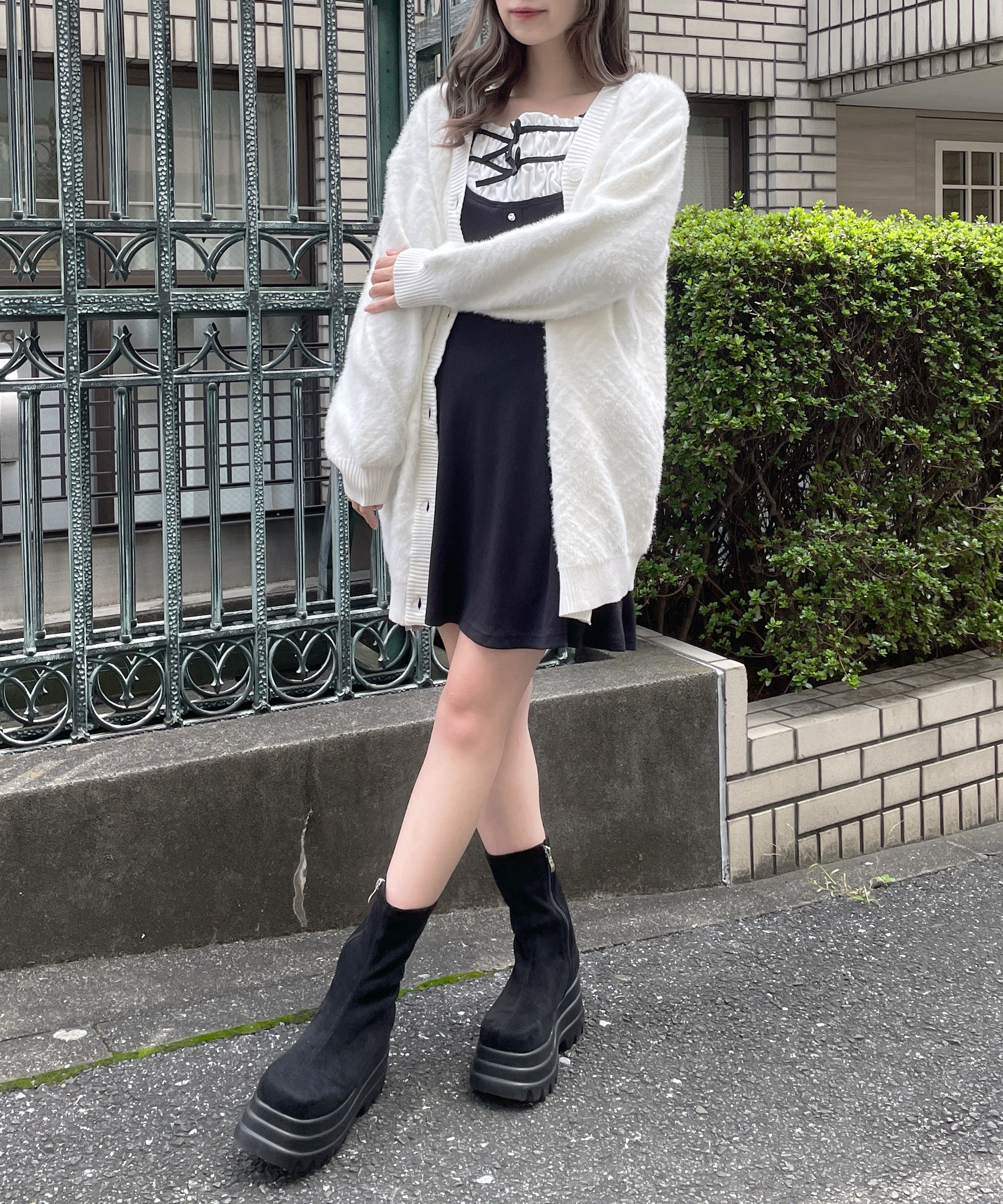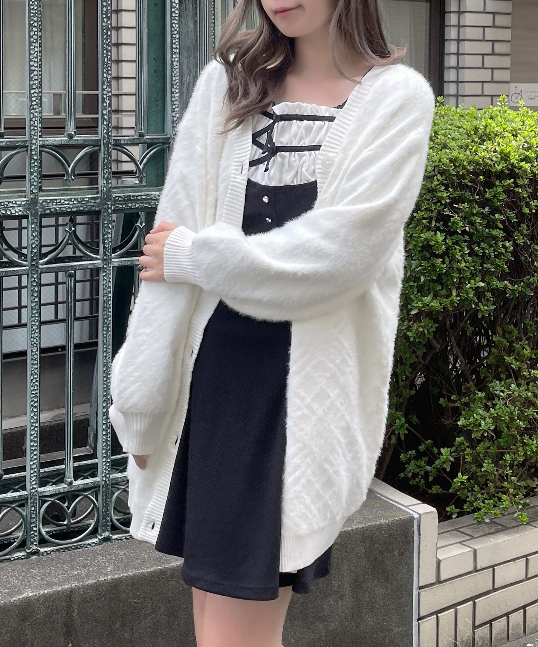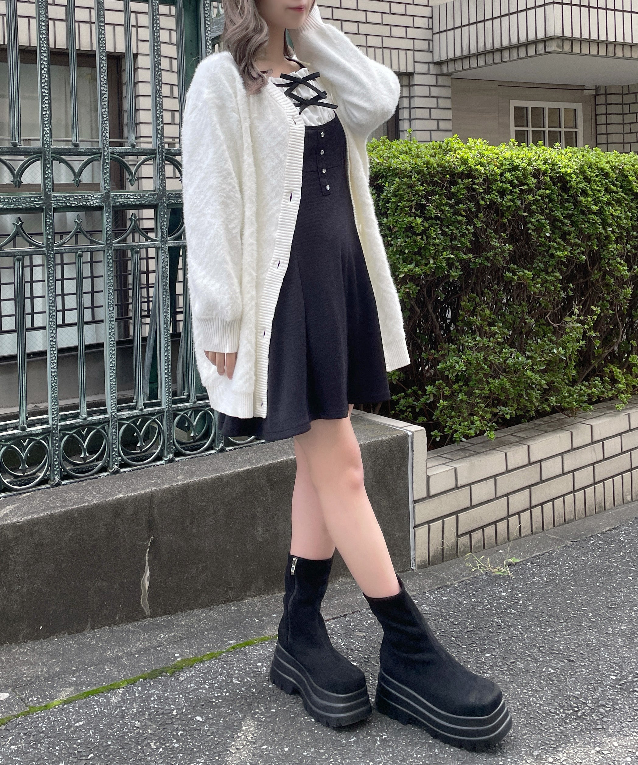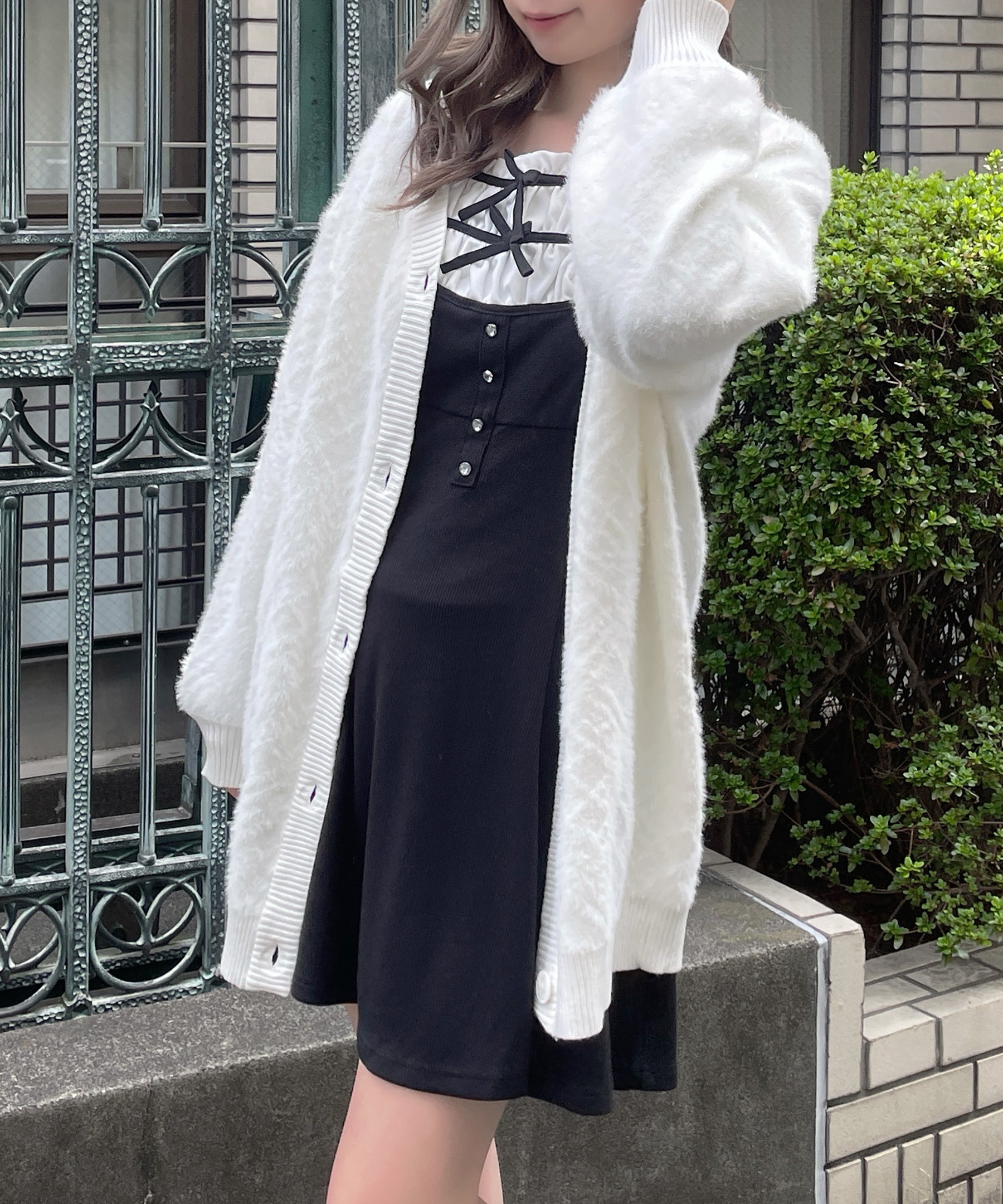 ・ボタン側を前にするとスクールライクなコーデに、ボタン側を後ろに着ると大人かわいいあざとコーデに♪
