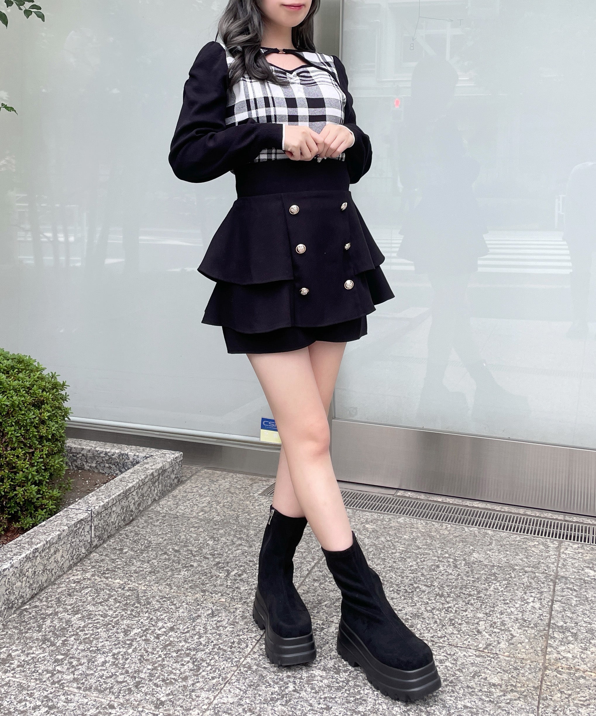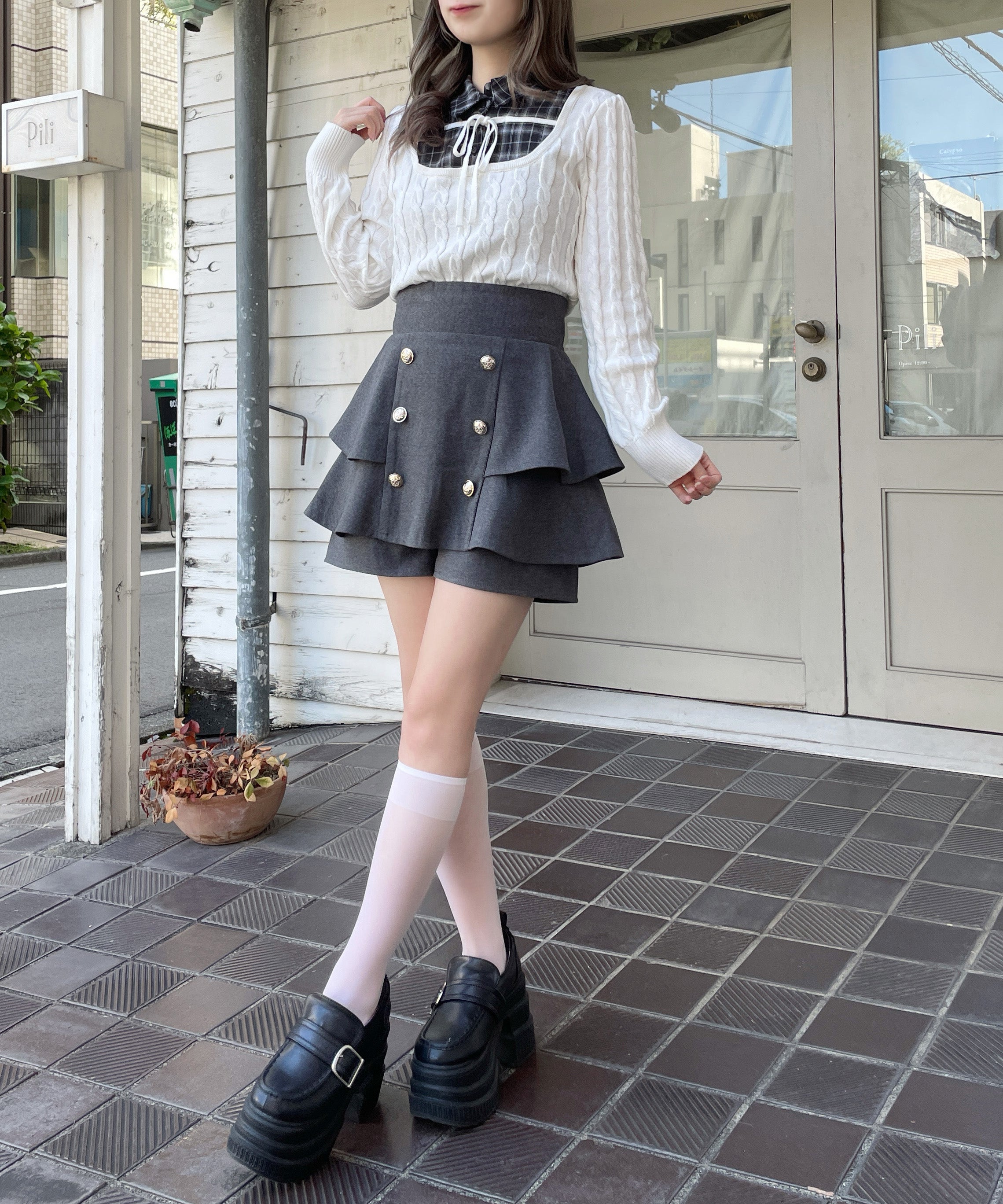 ・トレンドのパンツがレイヤードされたタイプのティアードスカート♡