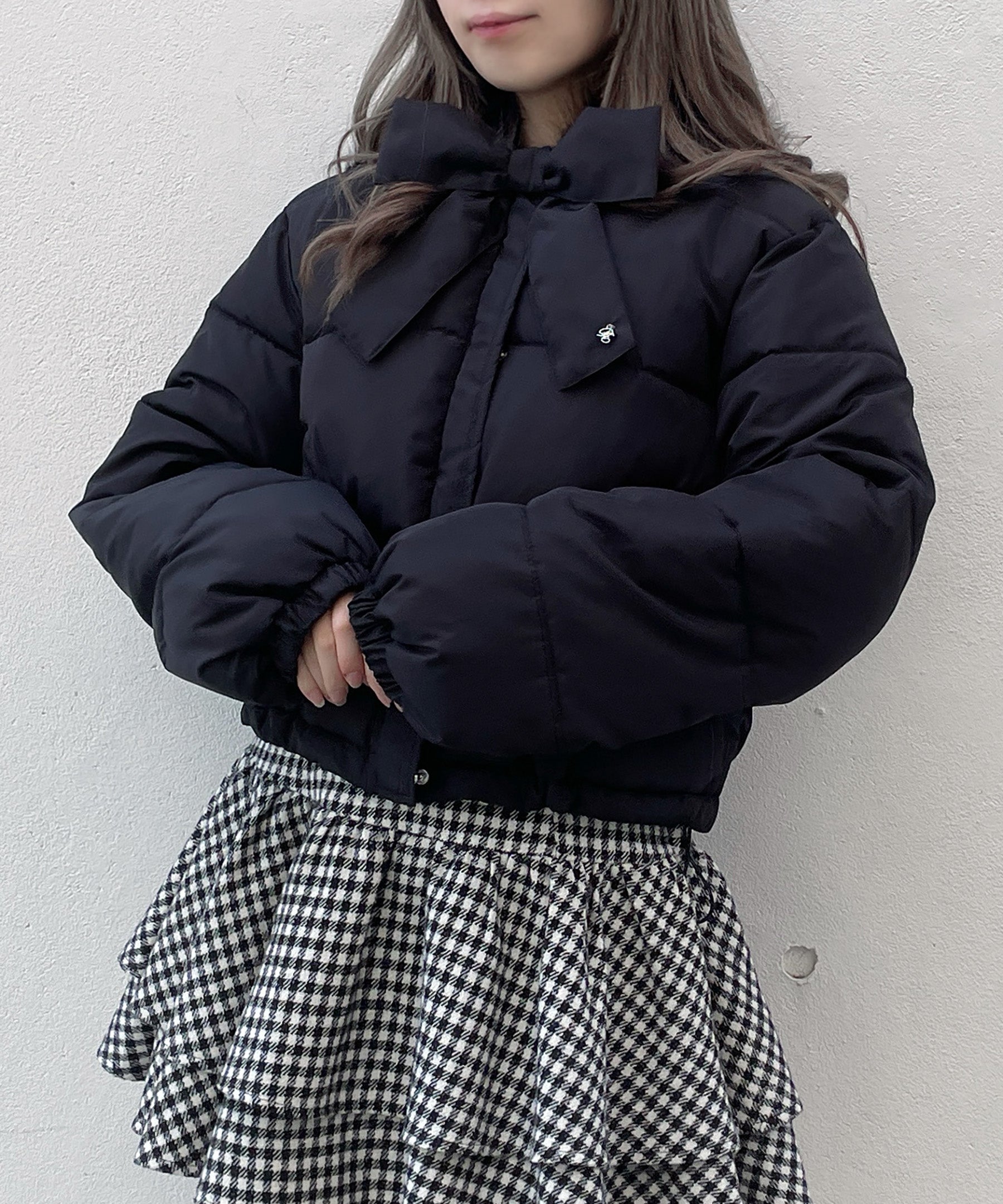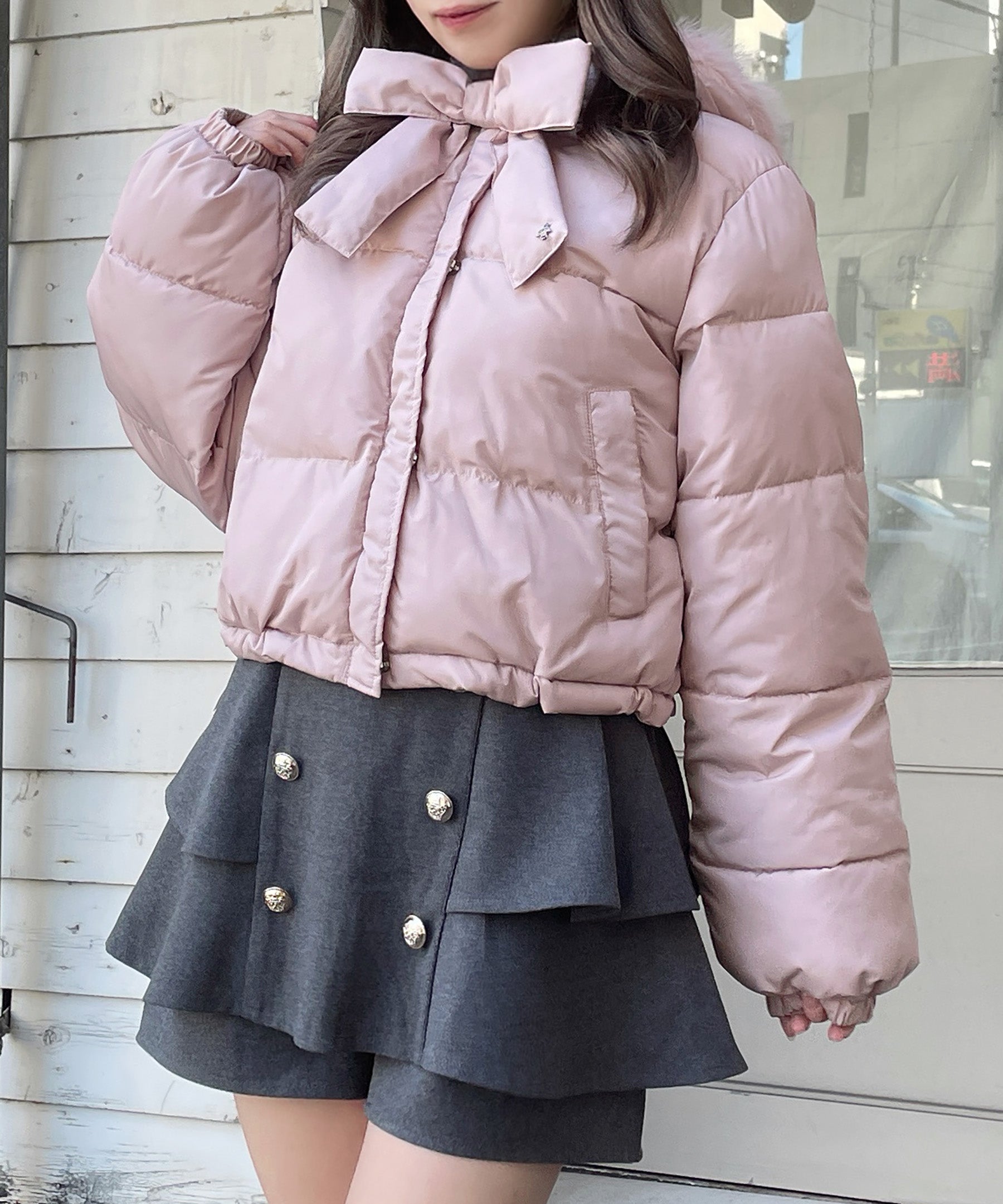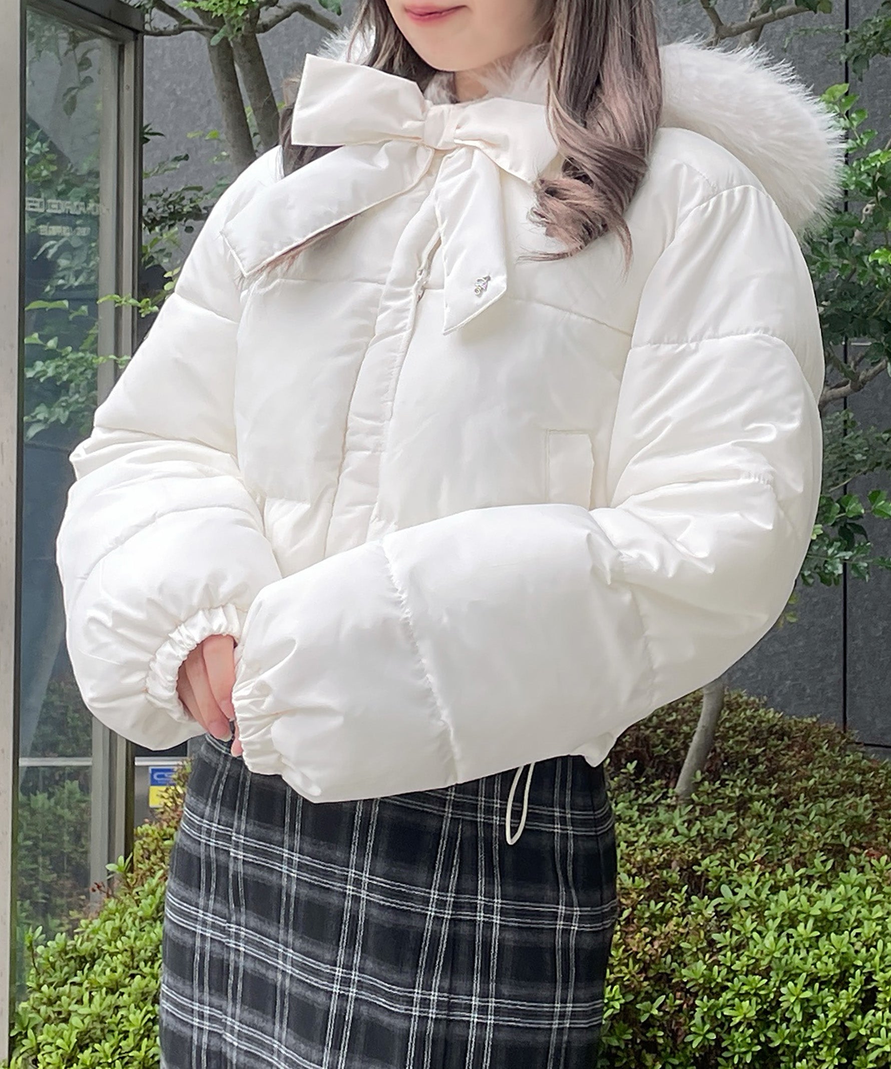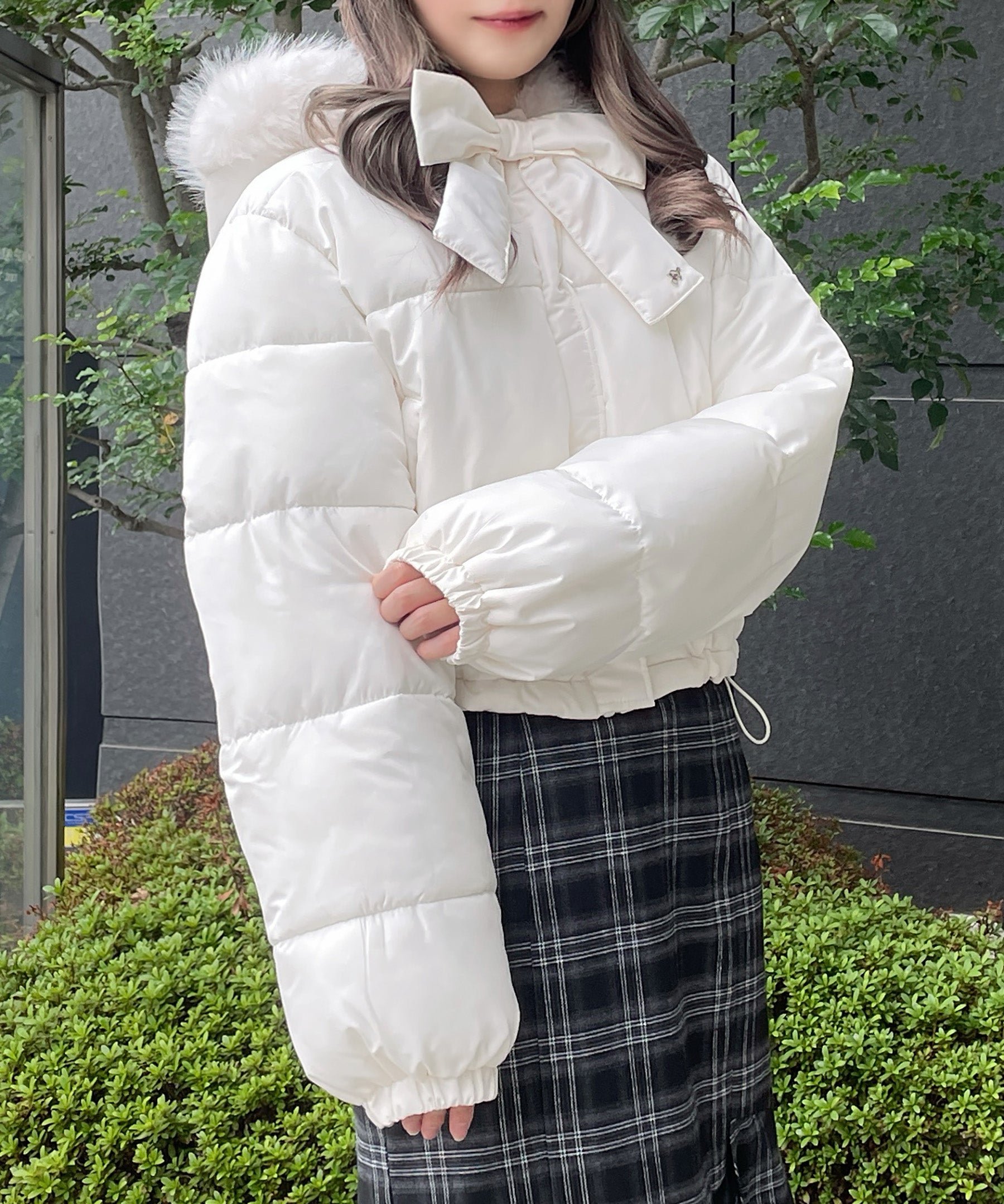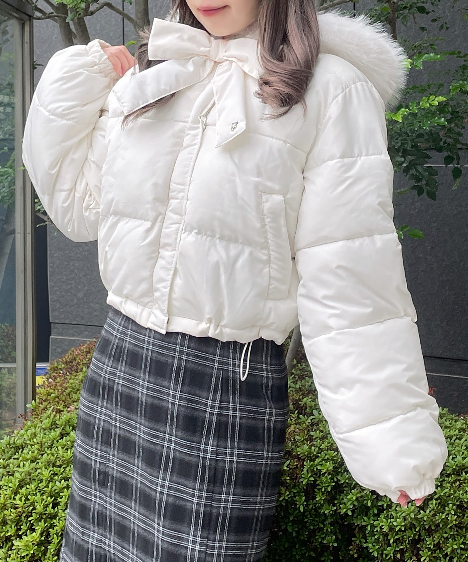 ・カジュアルになりがちなダウンも胸元のリボンとファーが付いていてキュートな印象♪