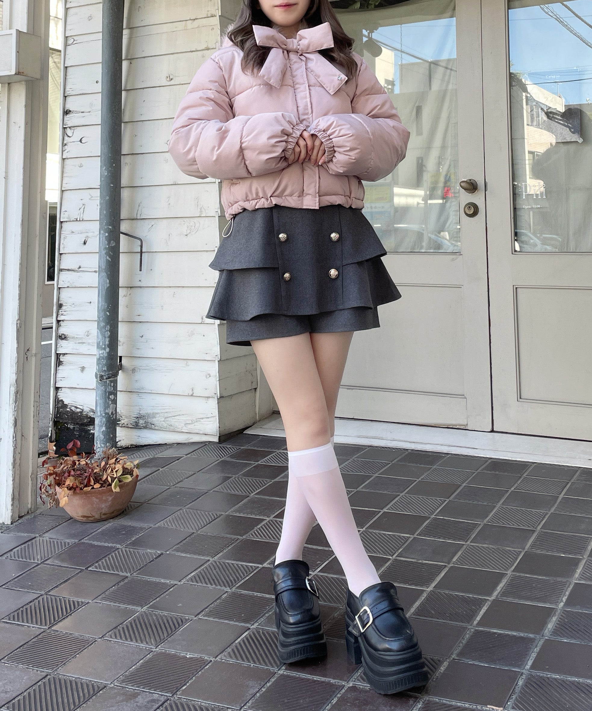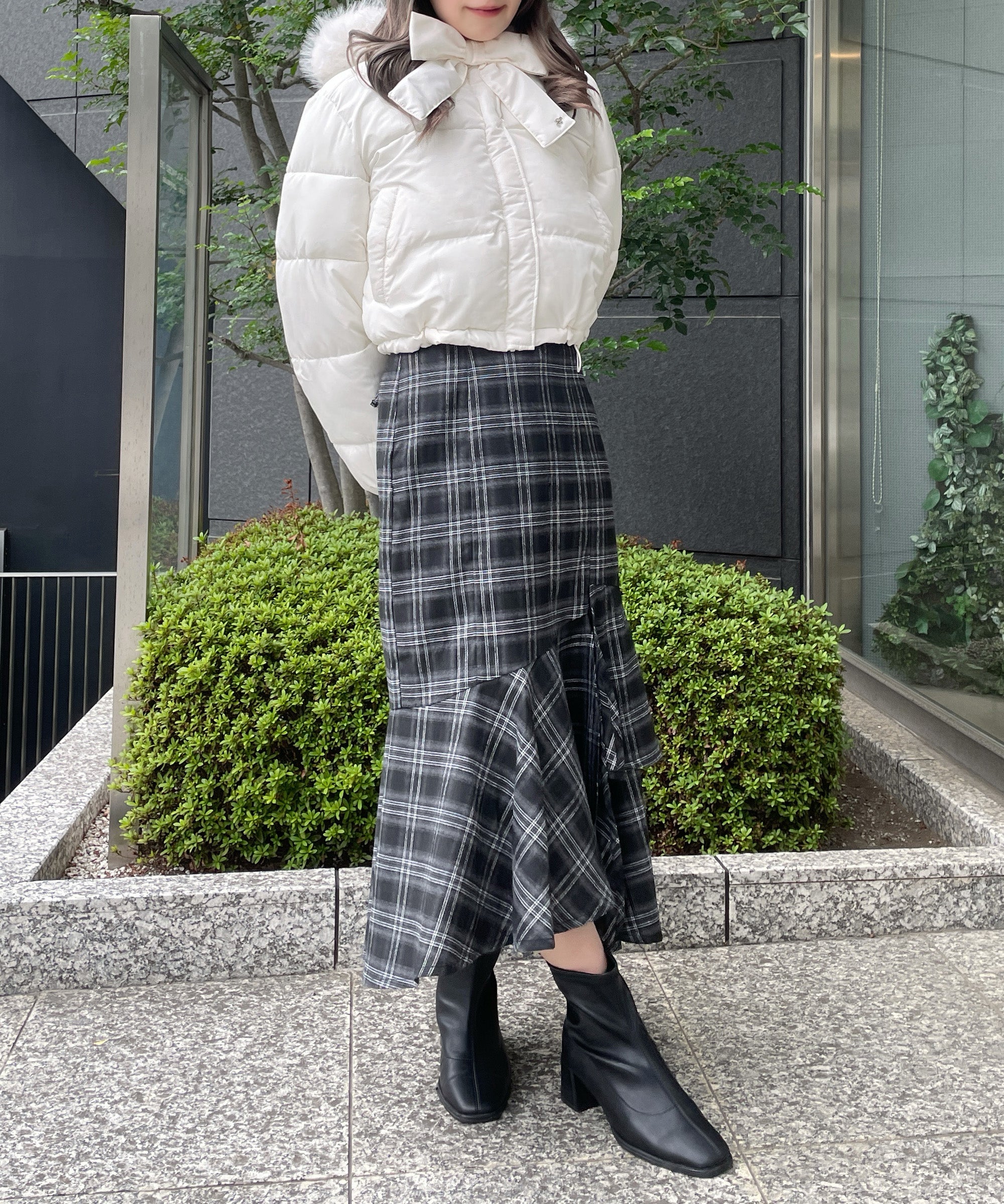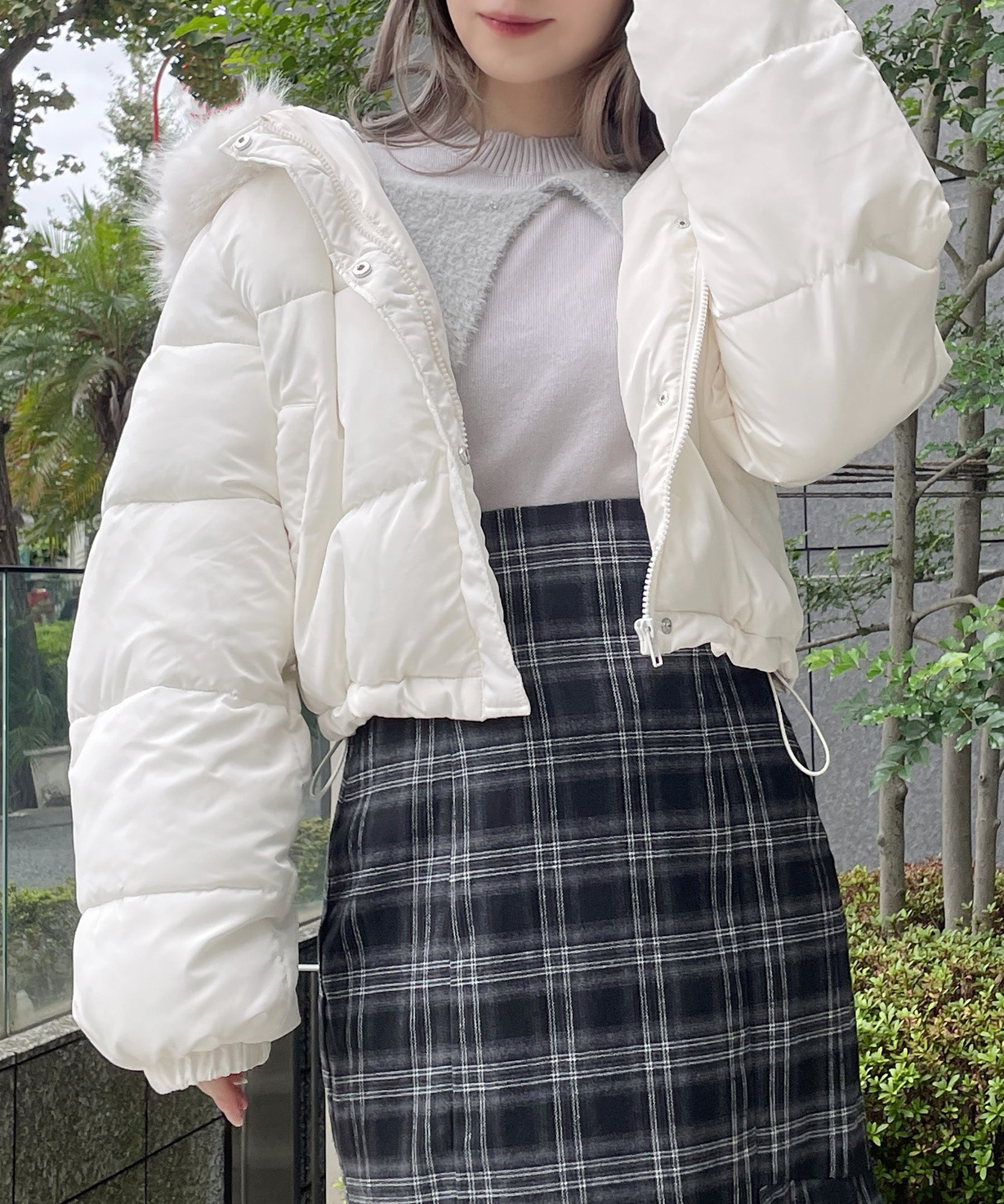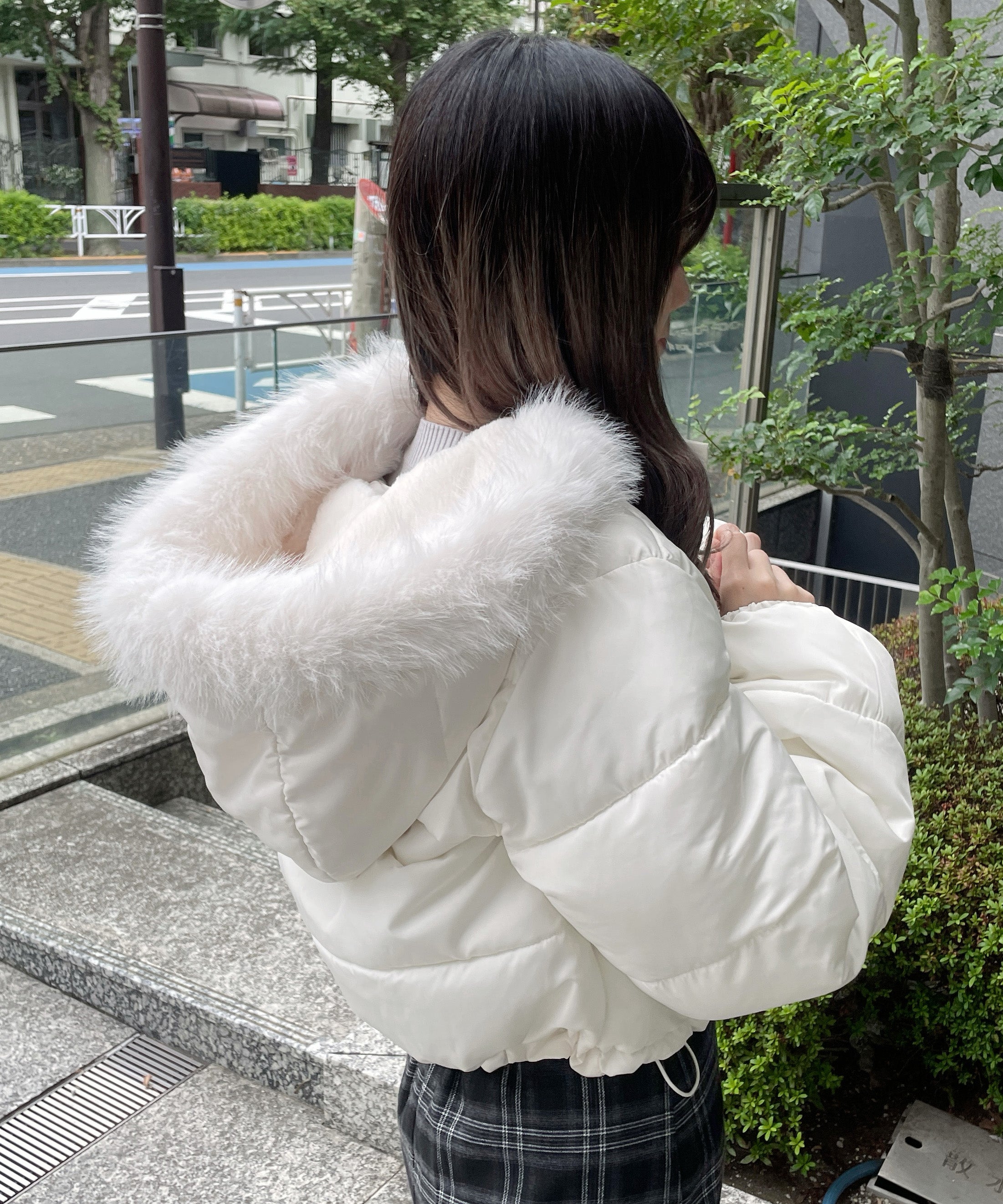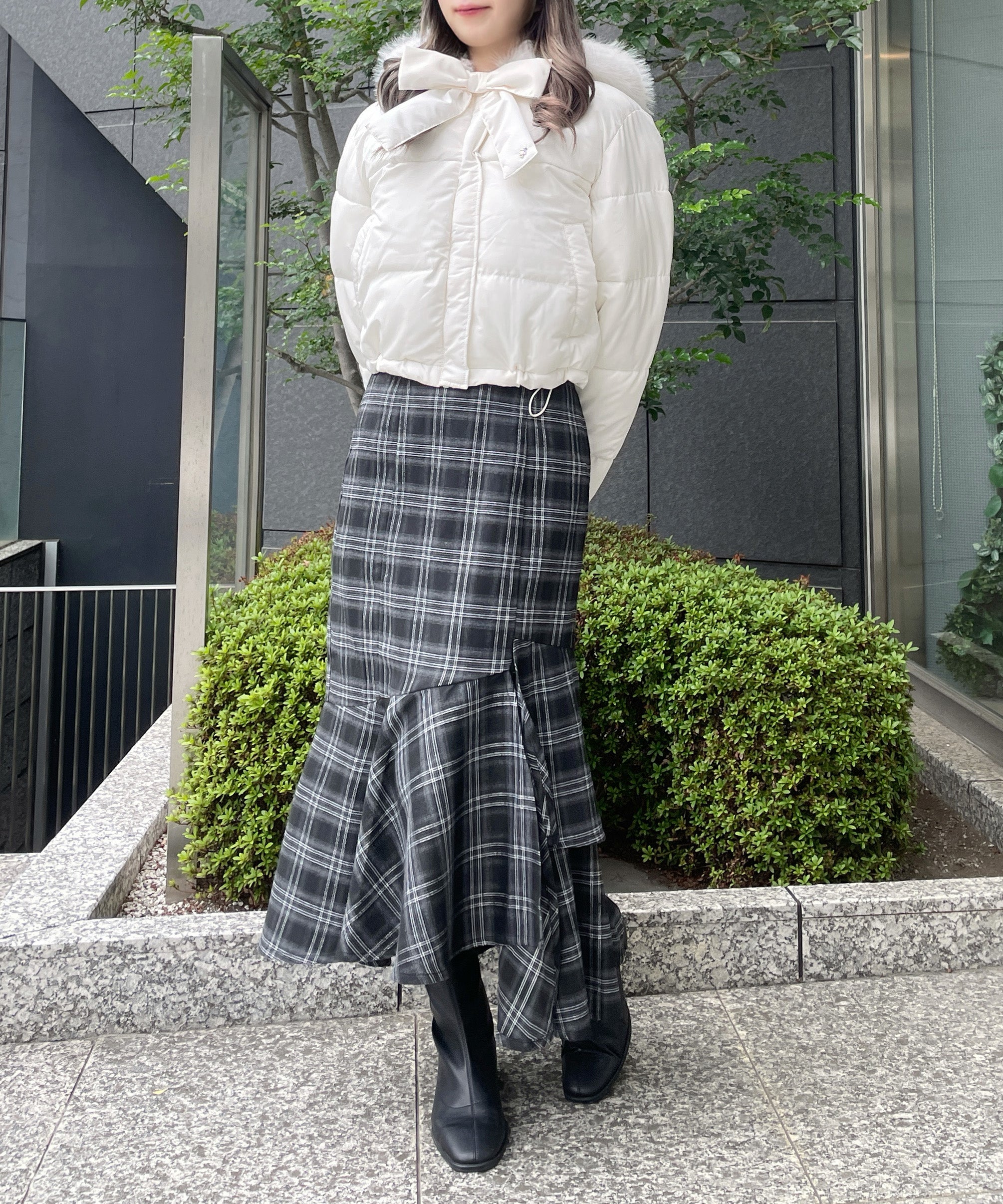 ・カジュアルになりがちなダウンも胸元のリボンとファーが付いていてキュートな印象♪
