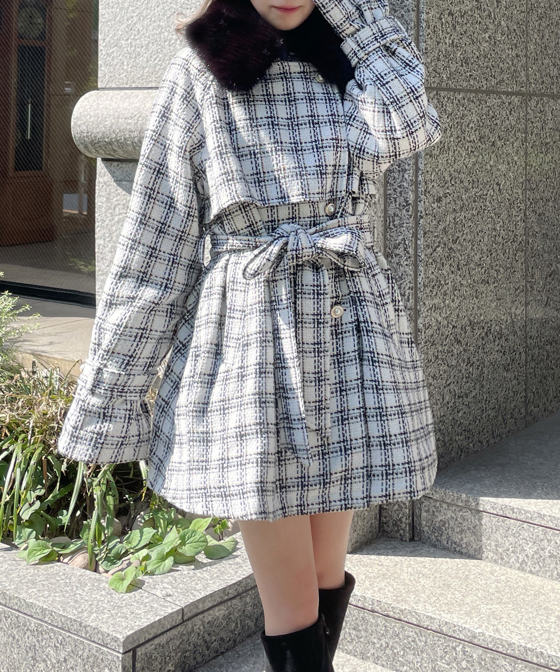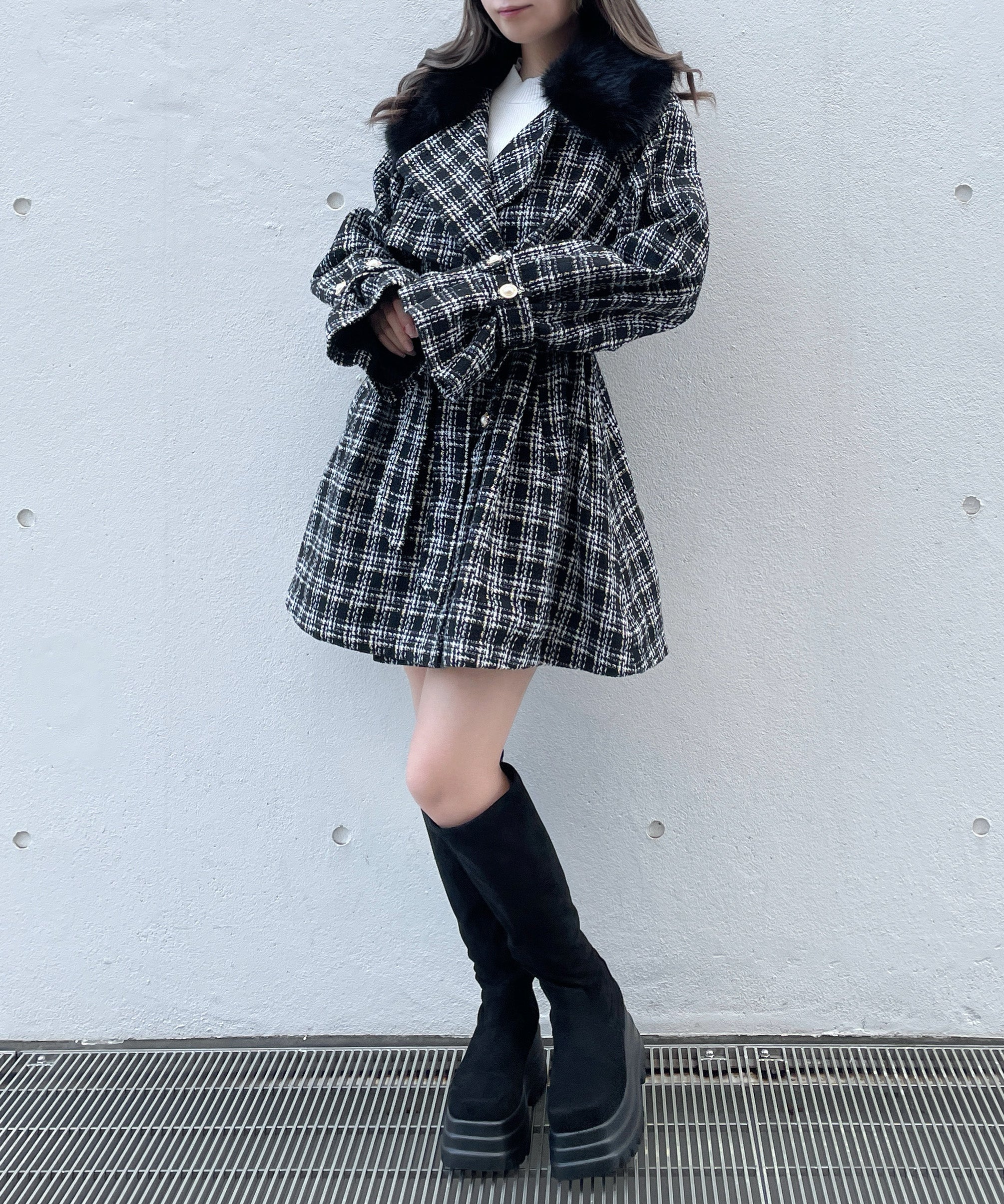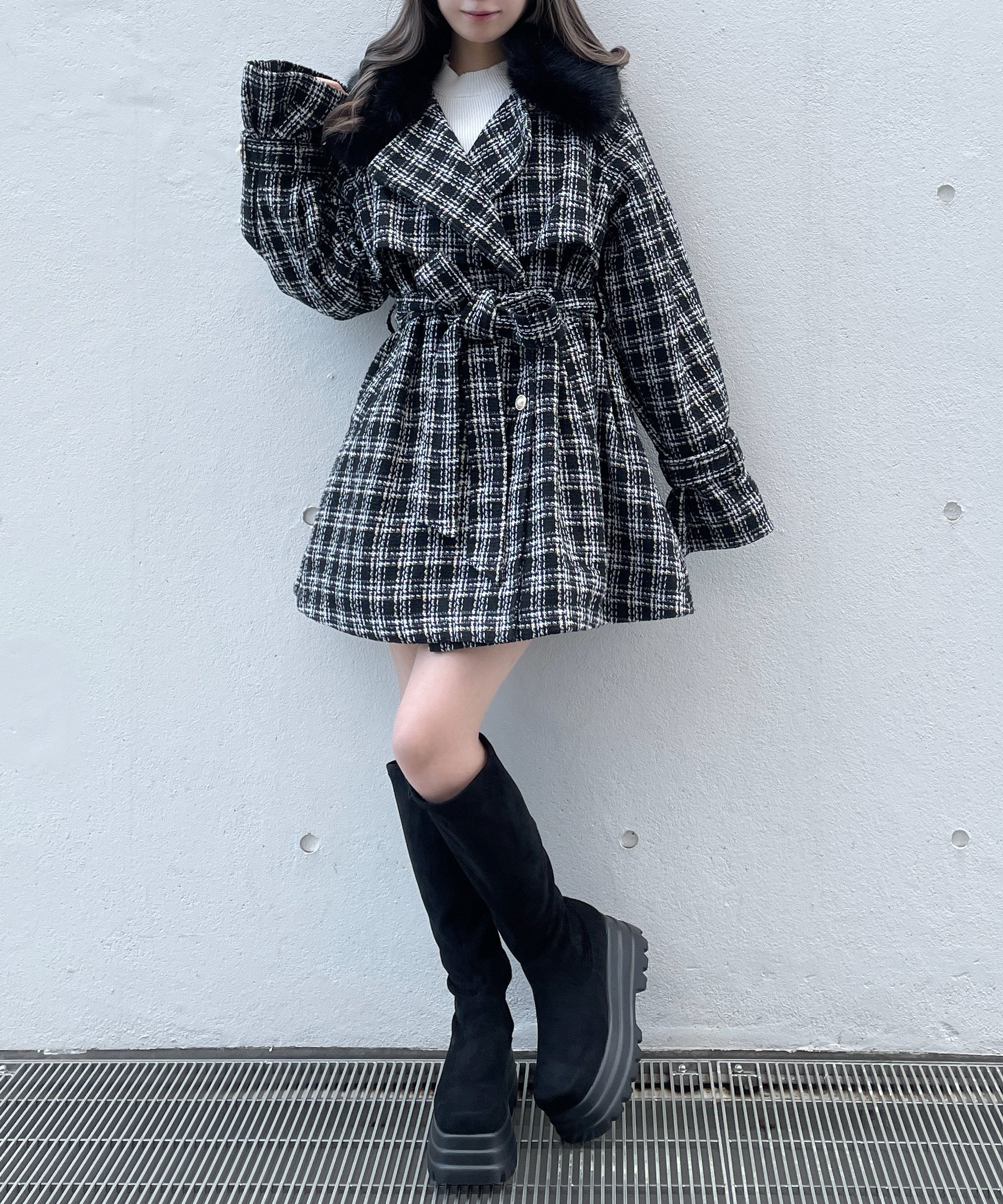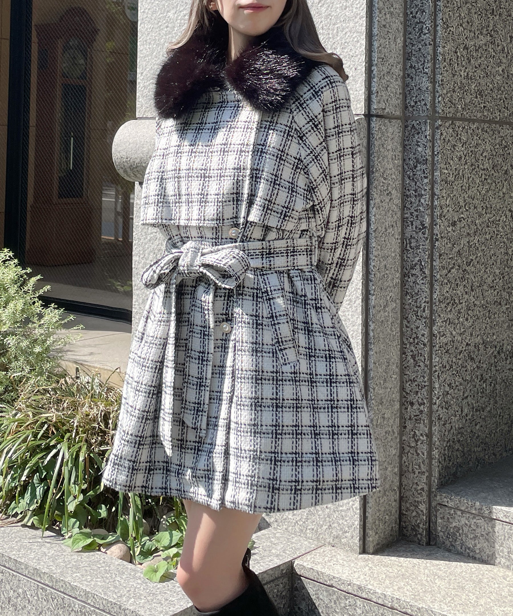 【ブラック/ホワイト/ブラックチェック/ホワイトチェック】ポリエステル100%【裏地】ポリエステル100%【ファー】ポリエステル100%