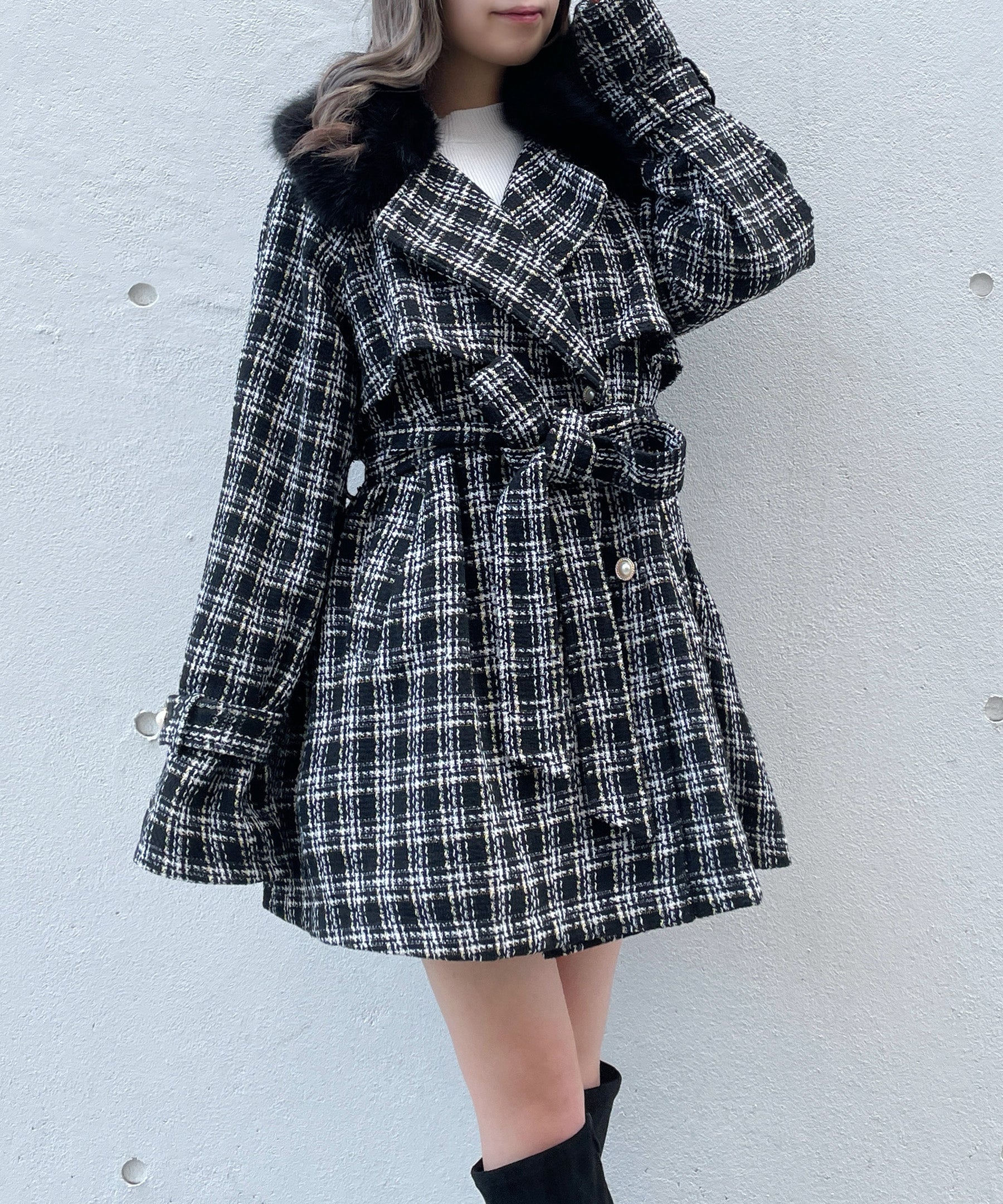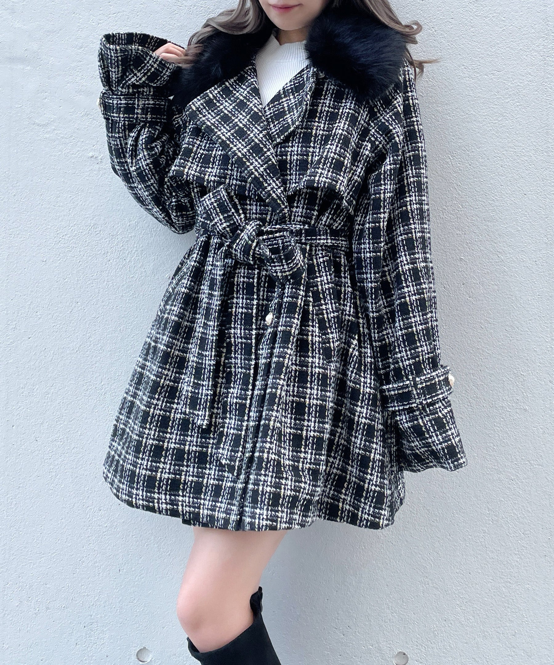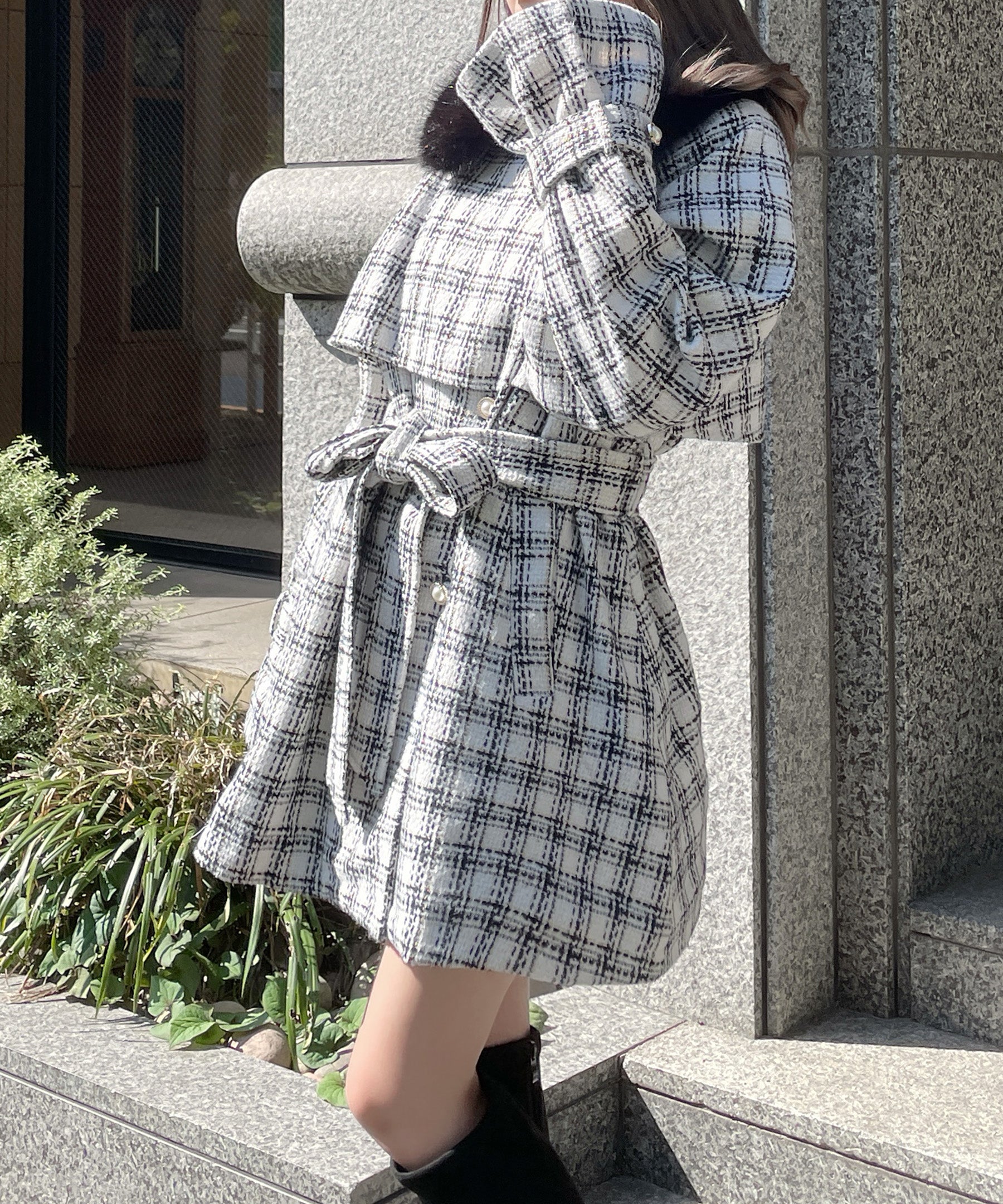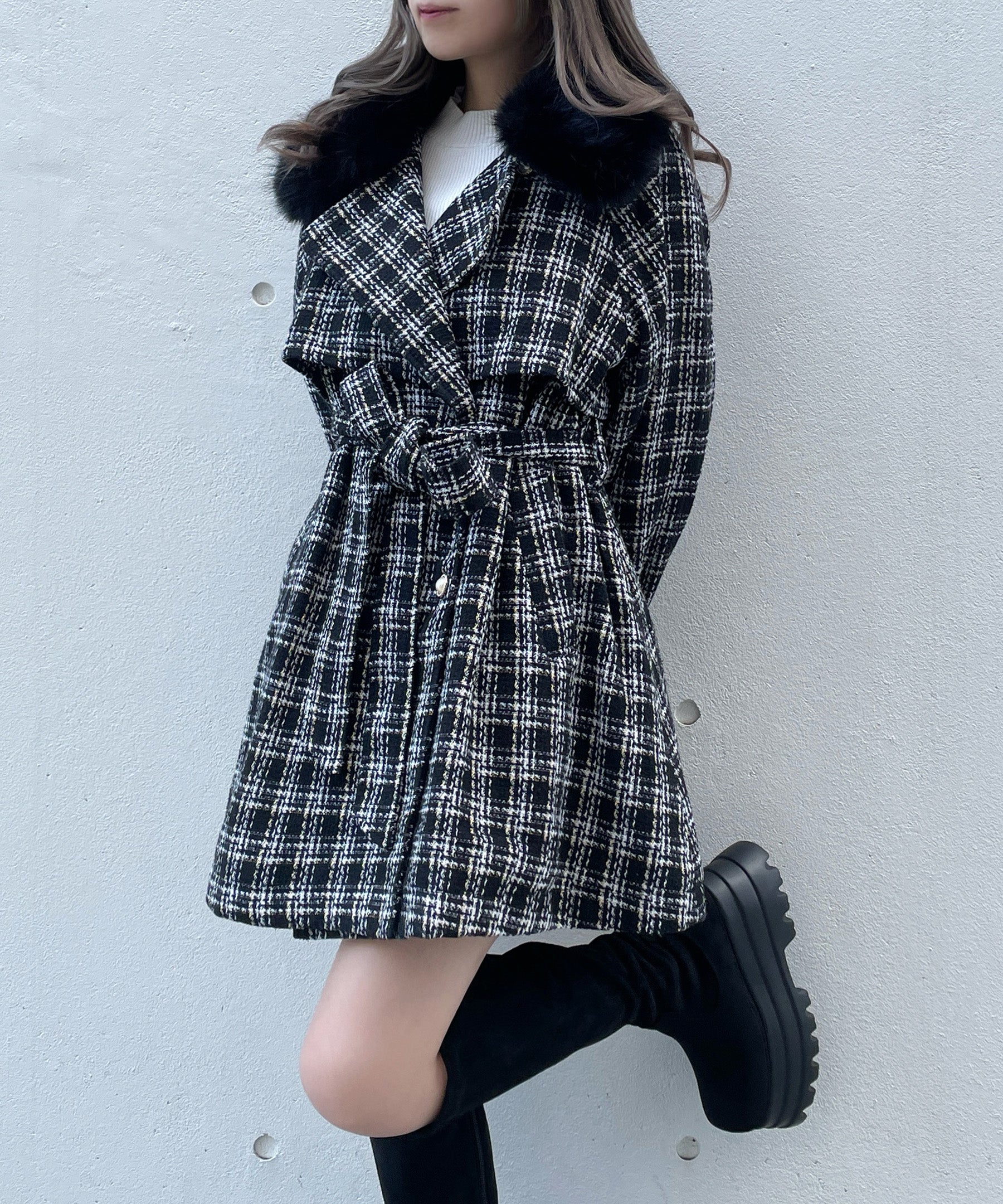 【ブラック/ホワイト/ブラックチェック/ホワイトチェック】ポリエステル100%【裏地】ポリエステル100%【ファー】ポリエステル100%