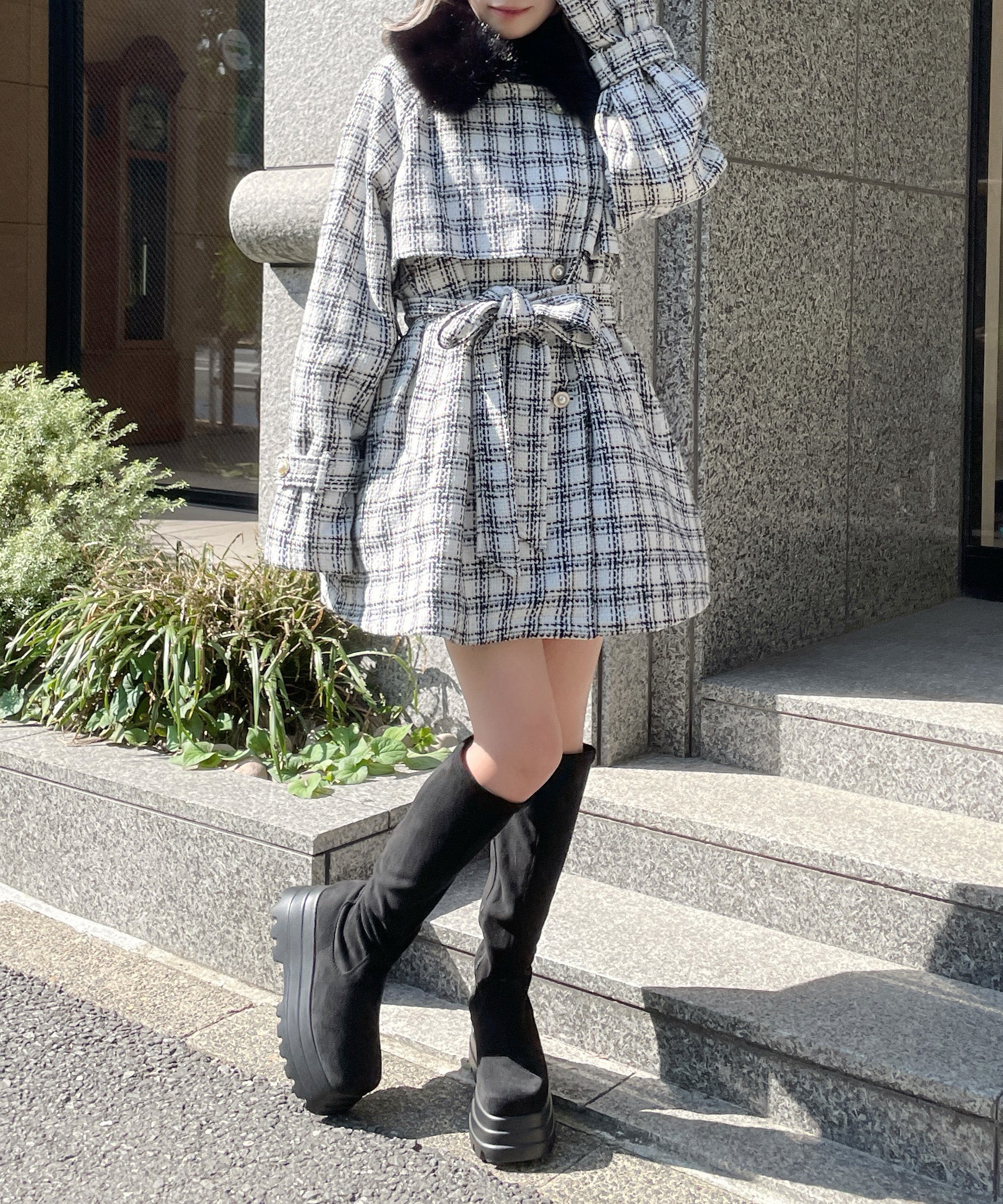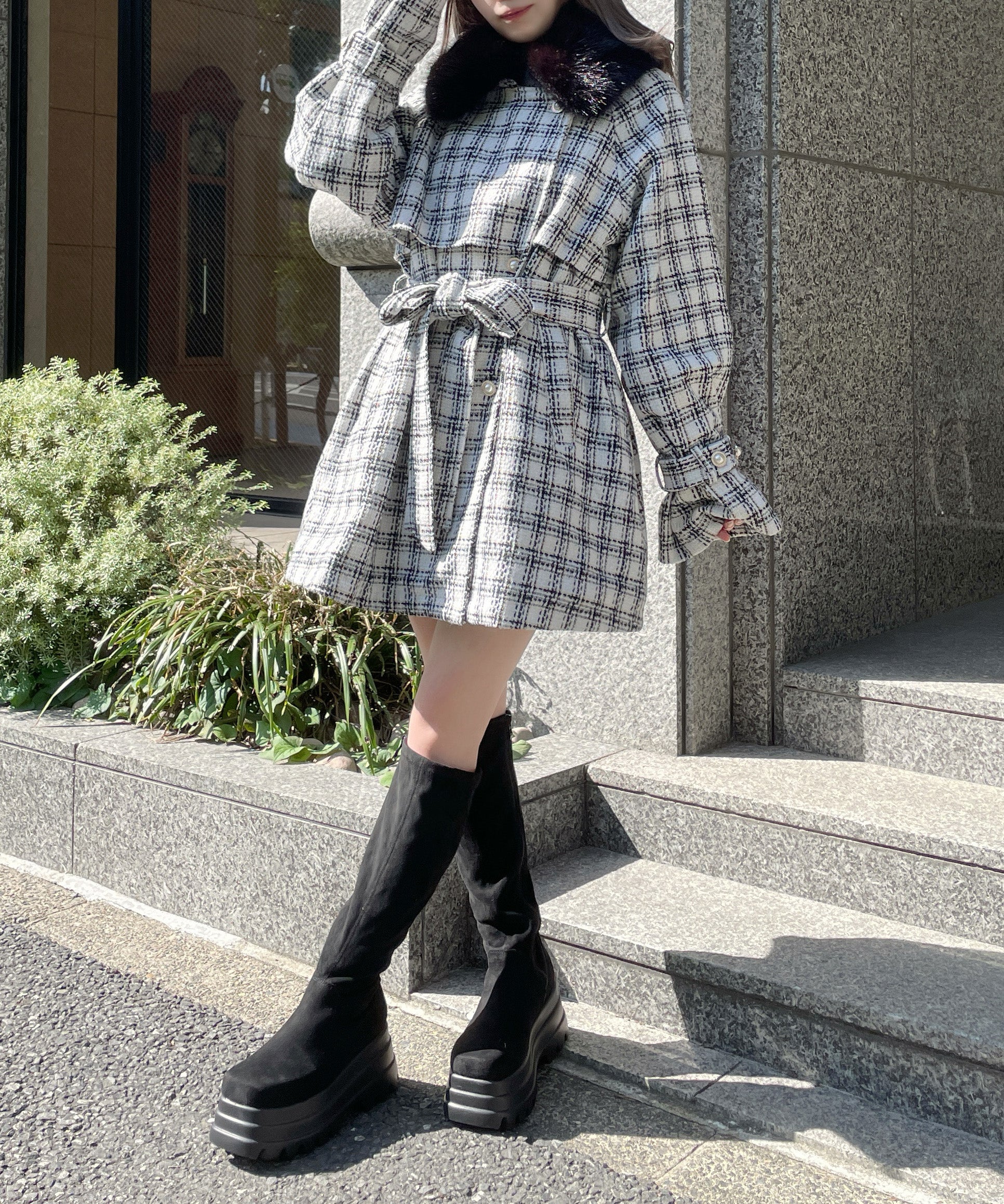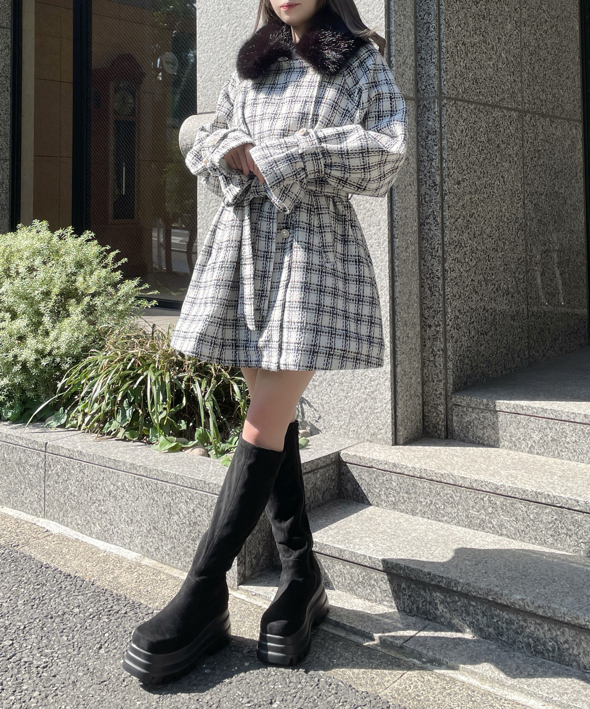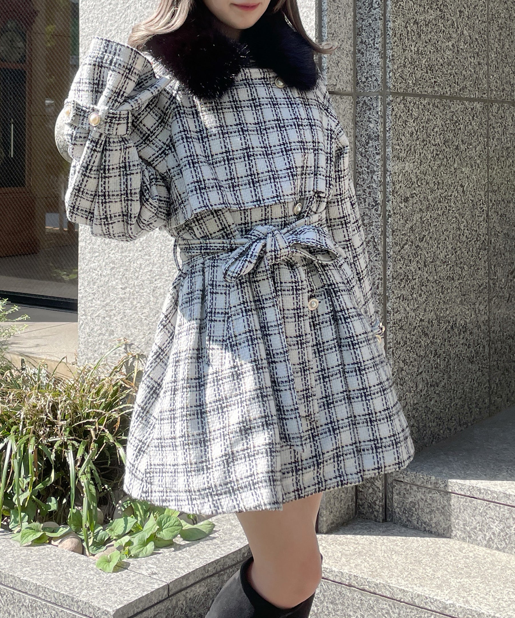 【ブラック/ホワイト/ブラックチェック/ホワイトチェック】ポリエステル100%【裏地】ポリエステル100%【ファー】ポリエステル100%