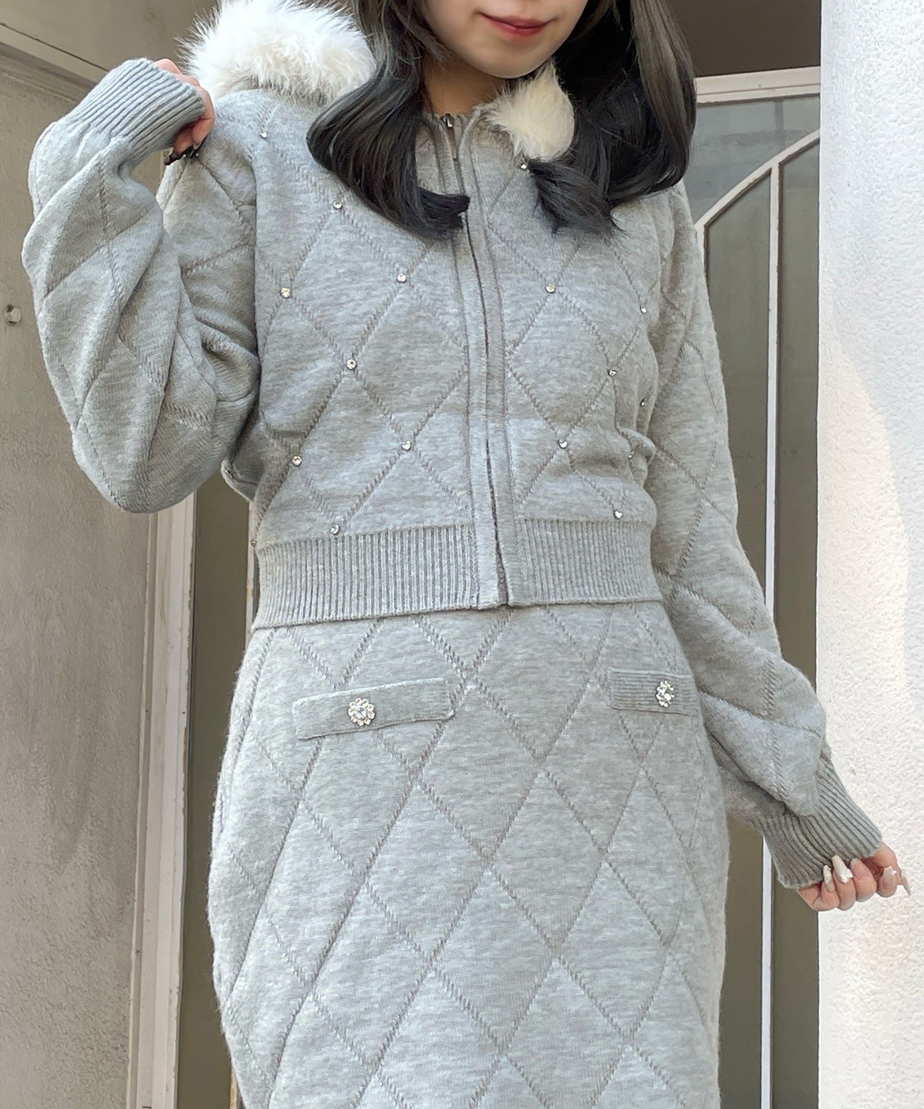 ・セットアップ対応の100450482キルティングニットスカートと合わせるのがイチオシ◎