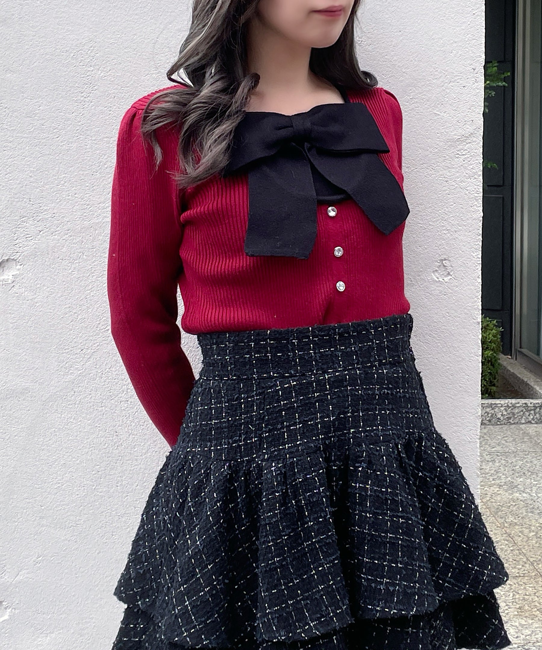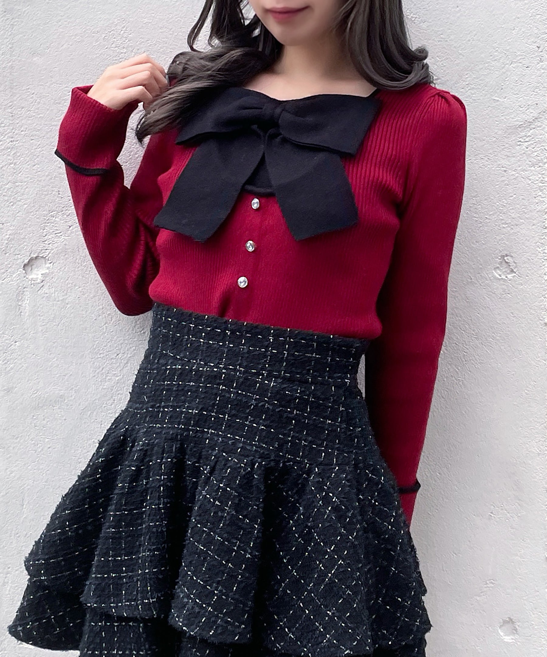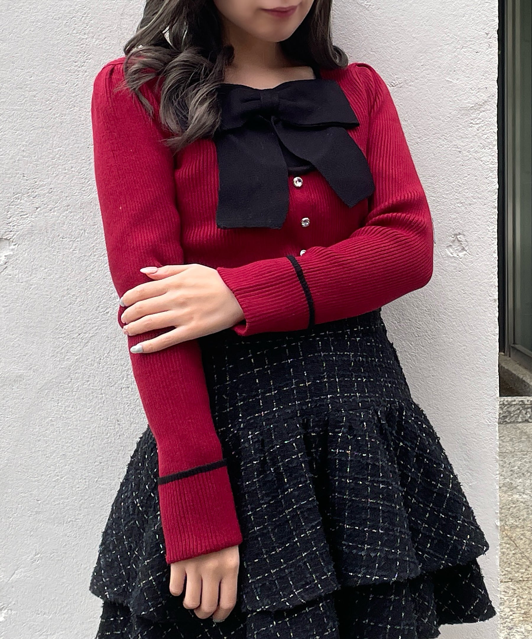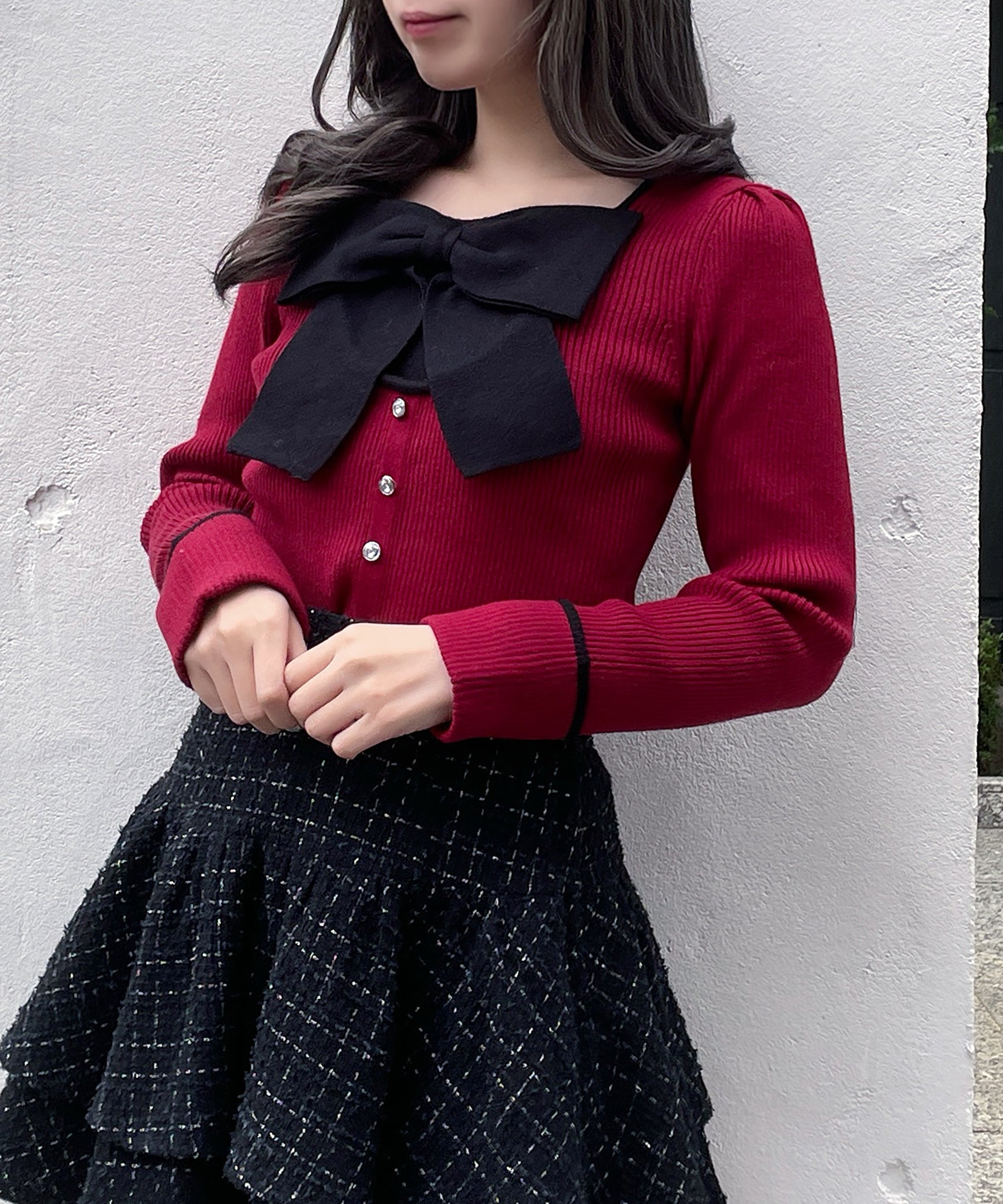 ・フロントの大きなリボンとビジューがガーリーな印象のトップス♡
