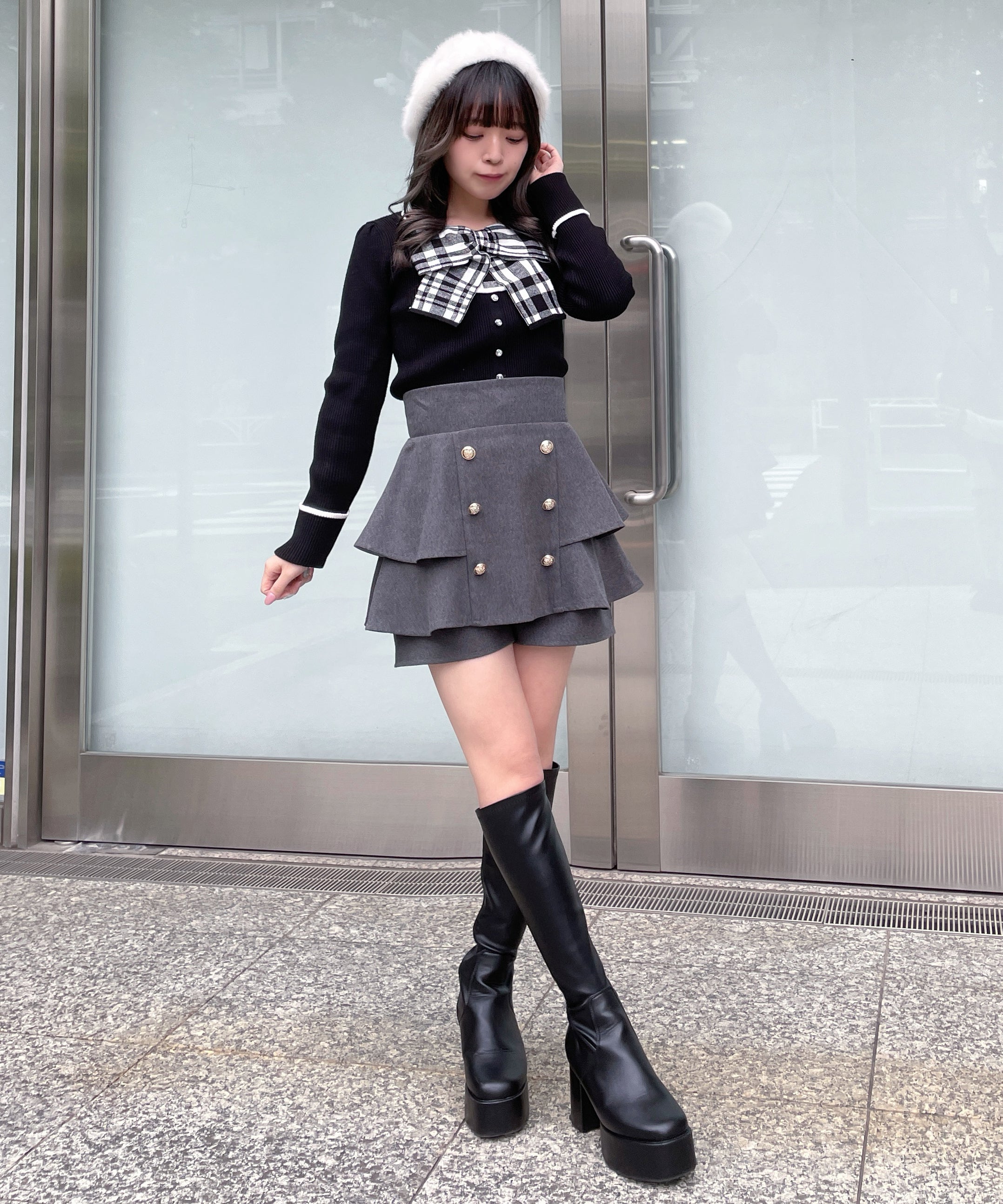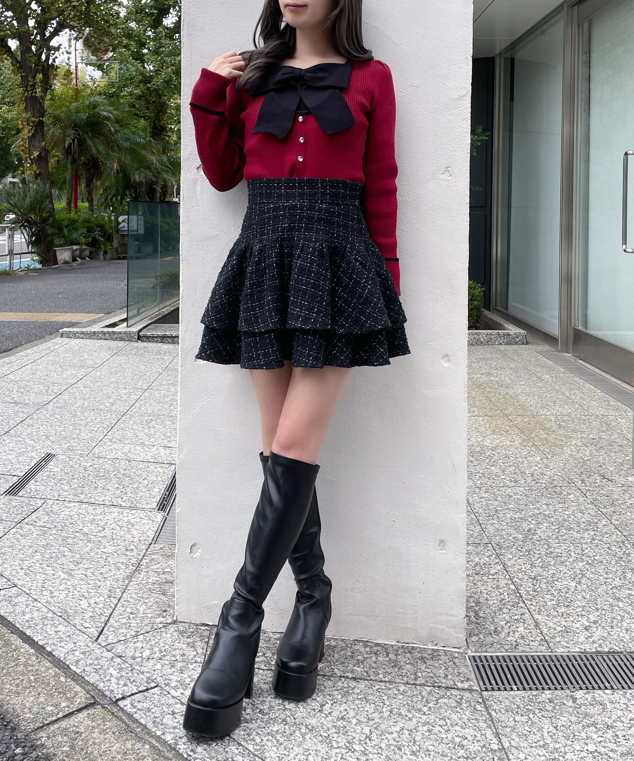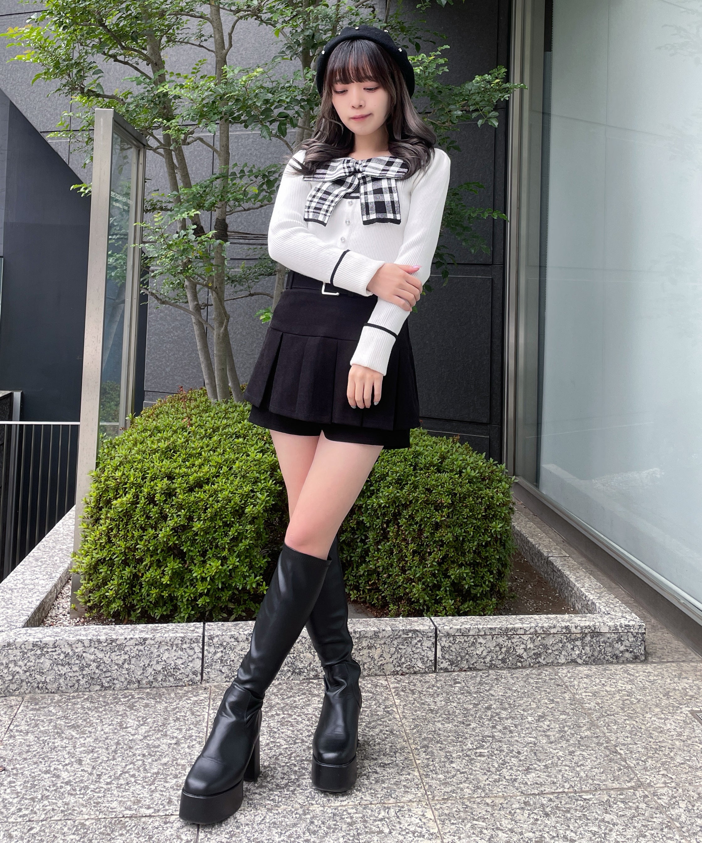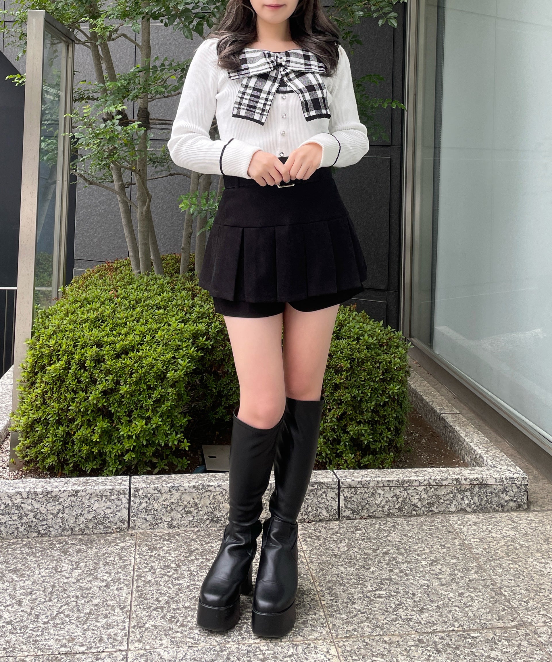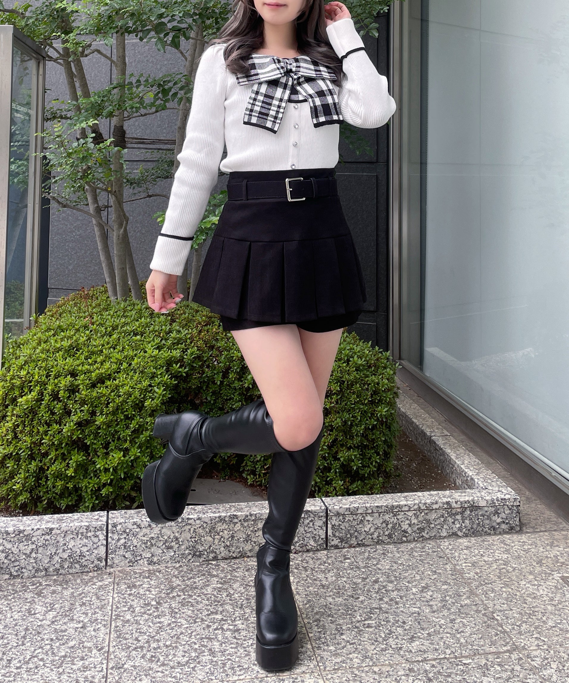 ・ミニ丈のボトムスとロングブーツとの相性抜群♪