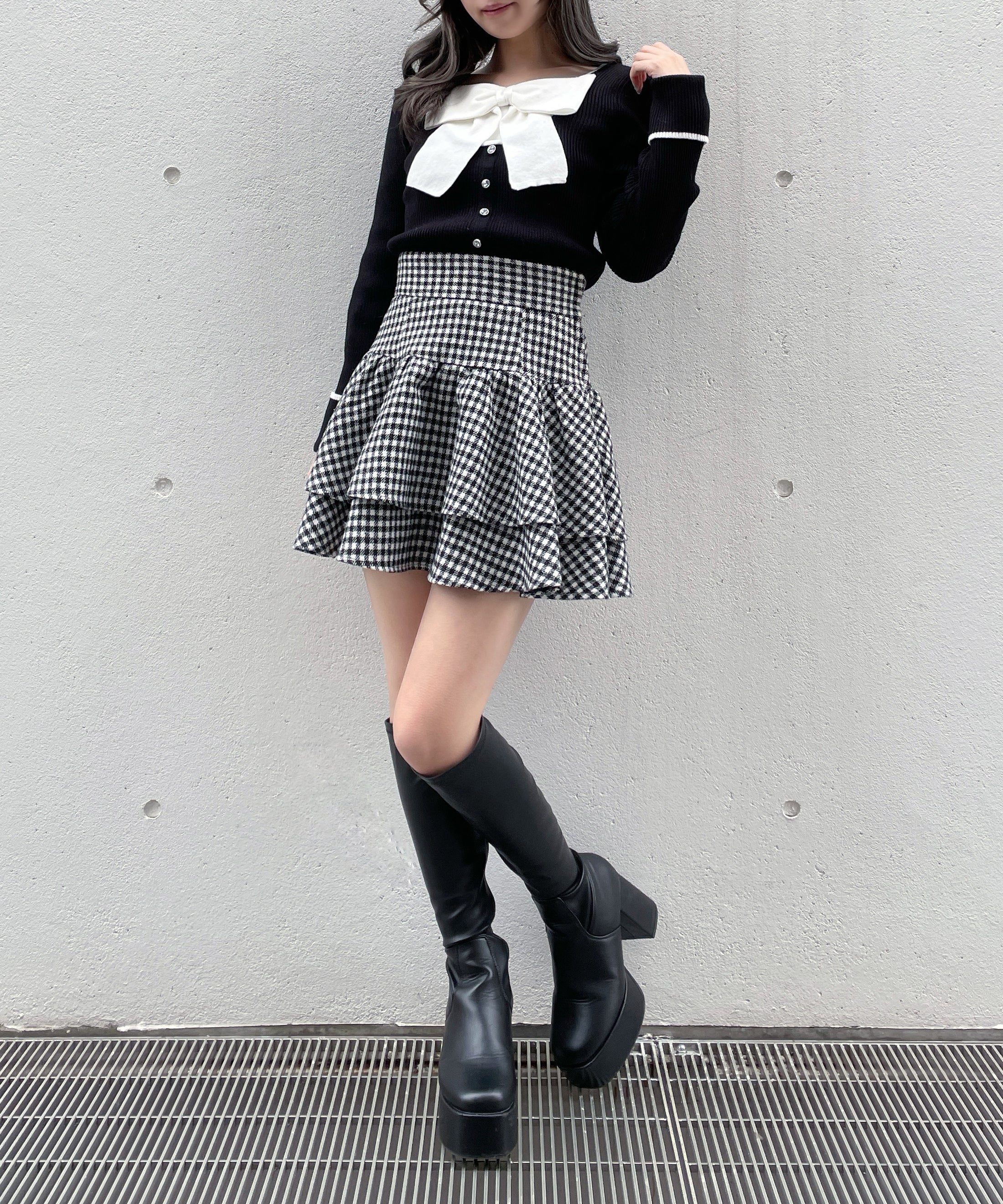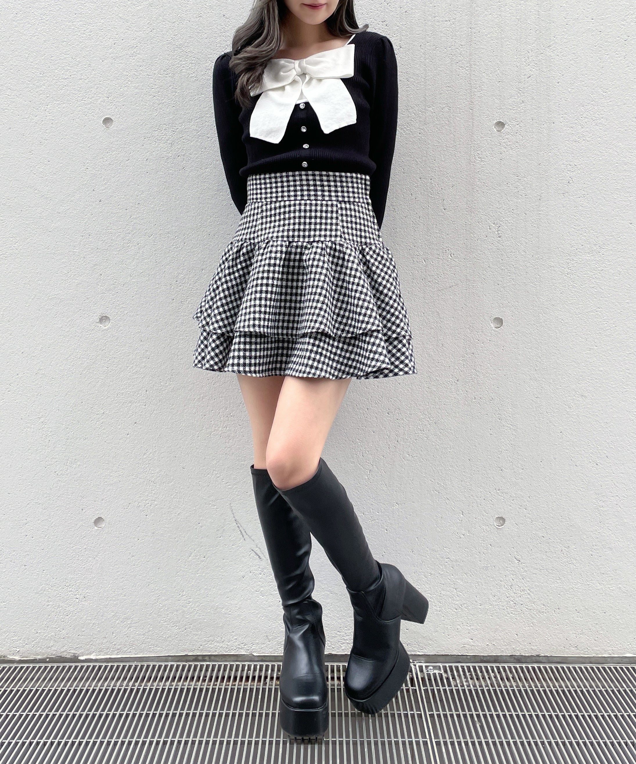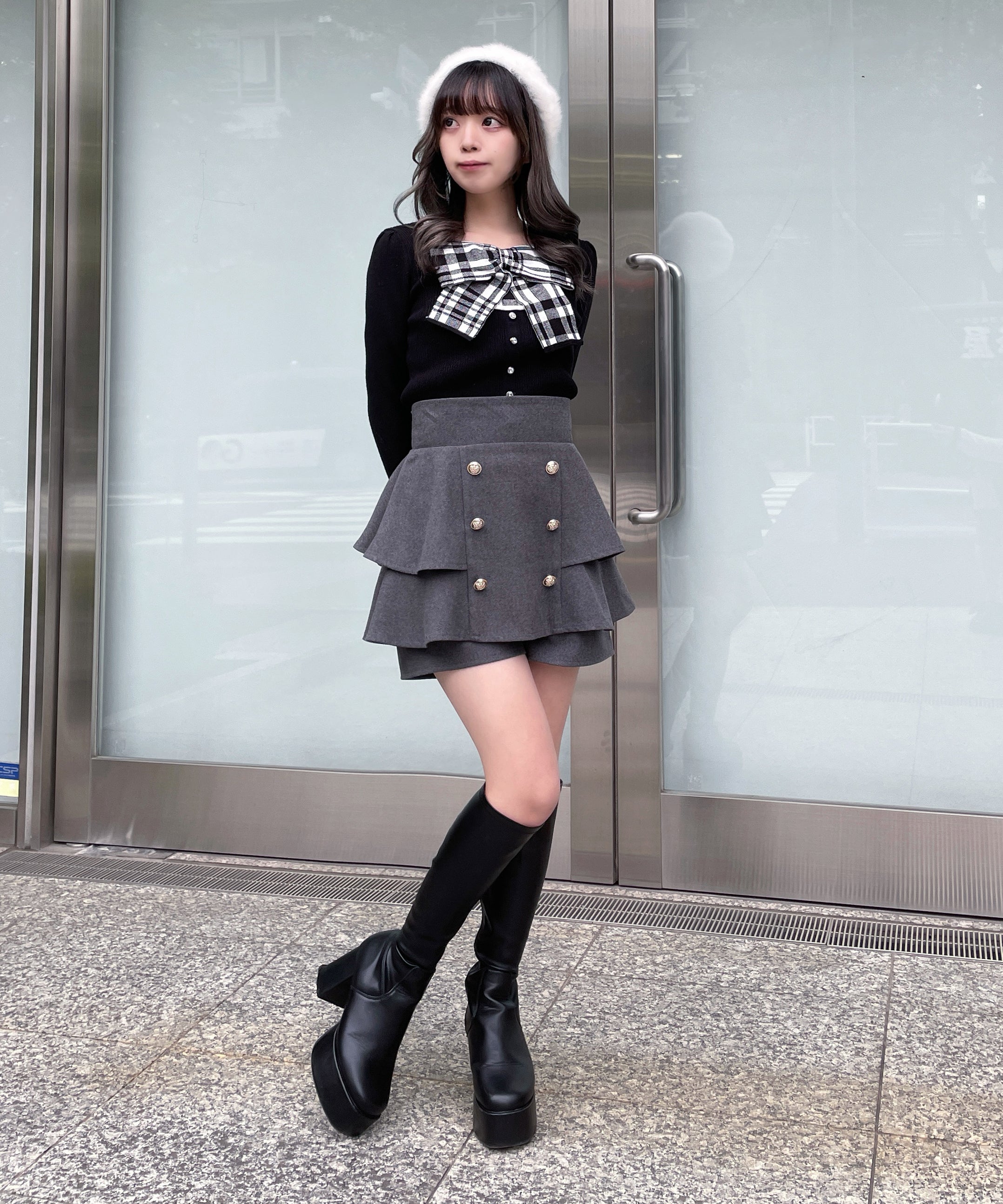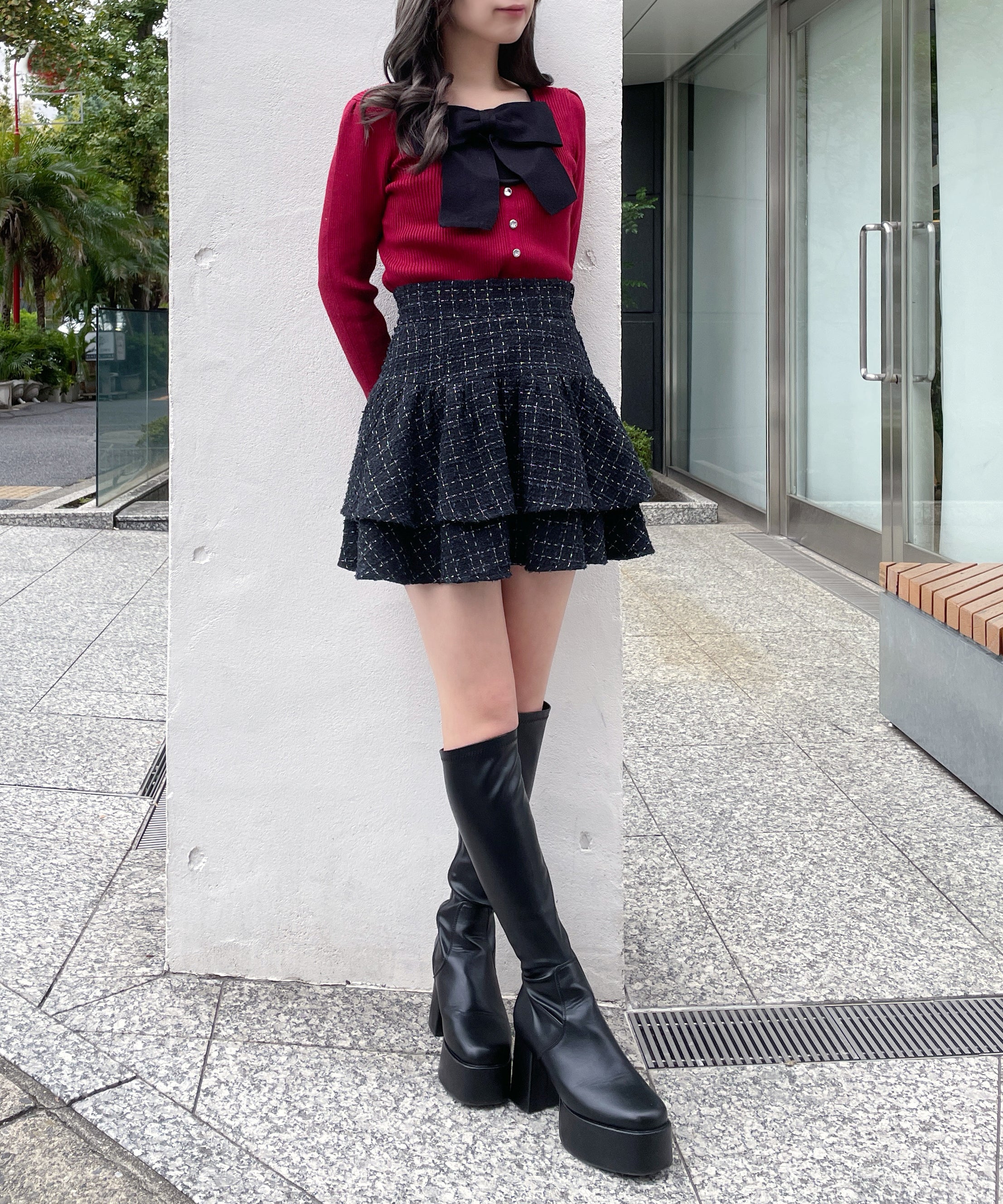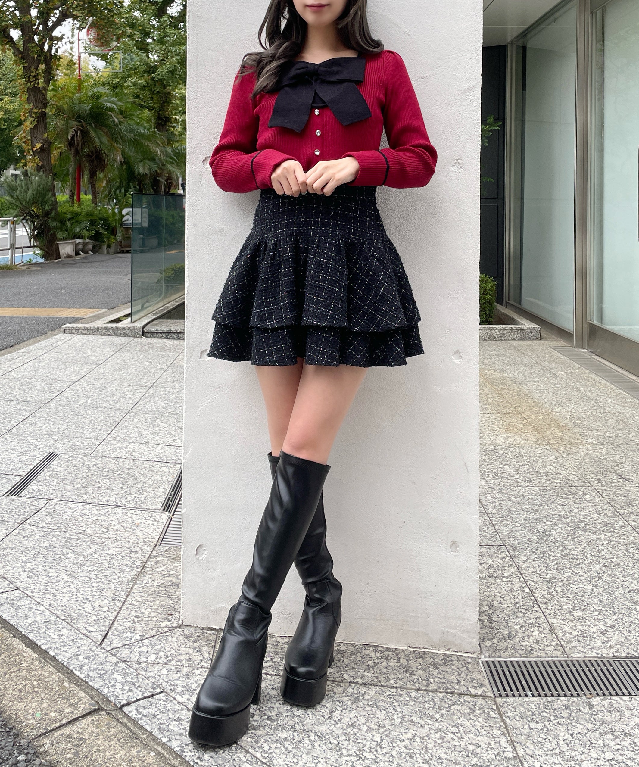 ・ミニ丈のボトムスとロングブーツとの相性抜群♪