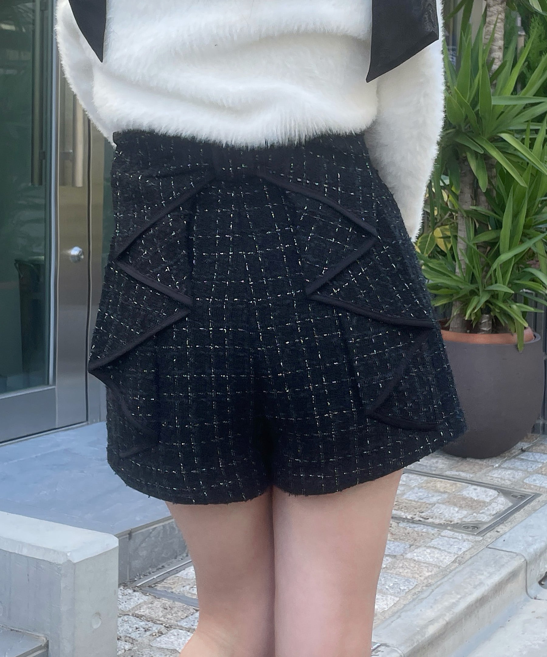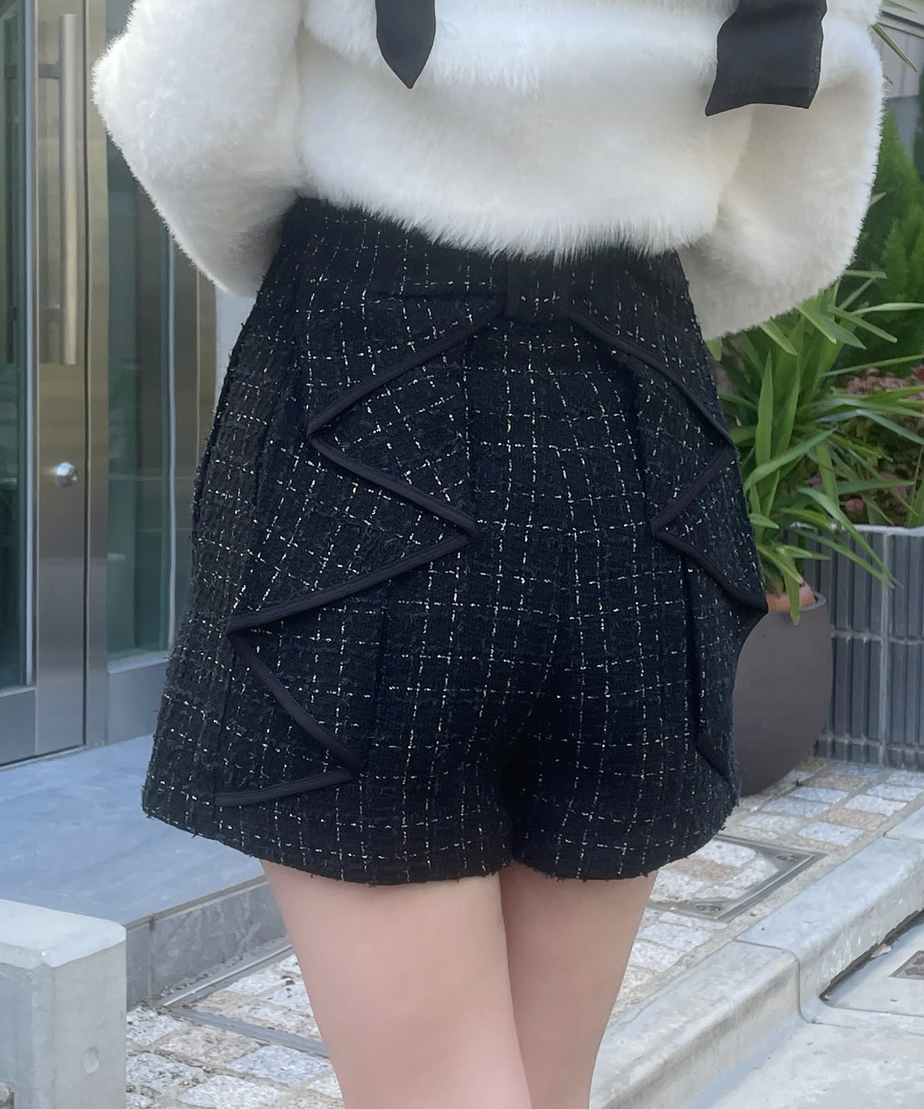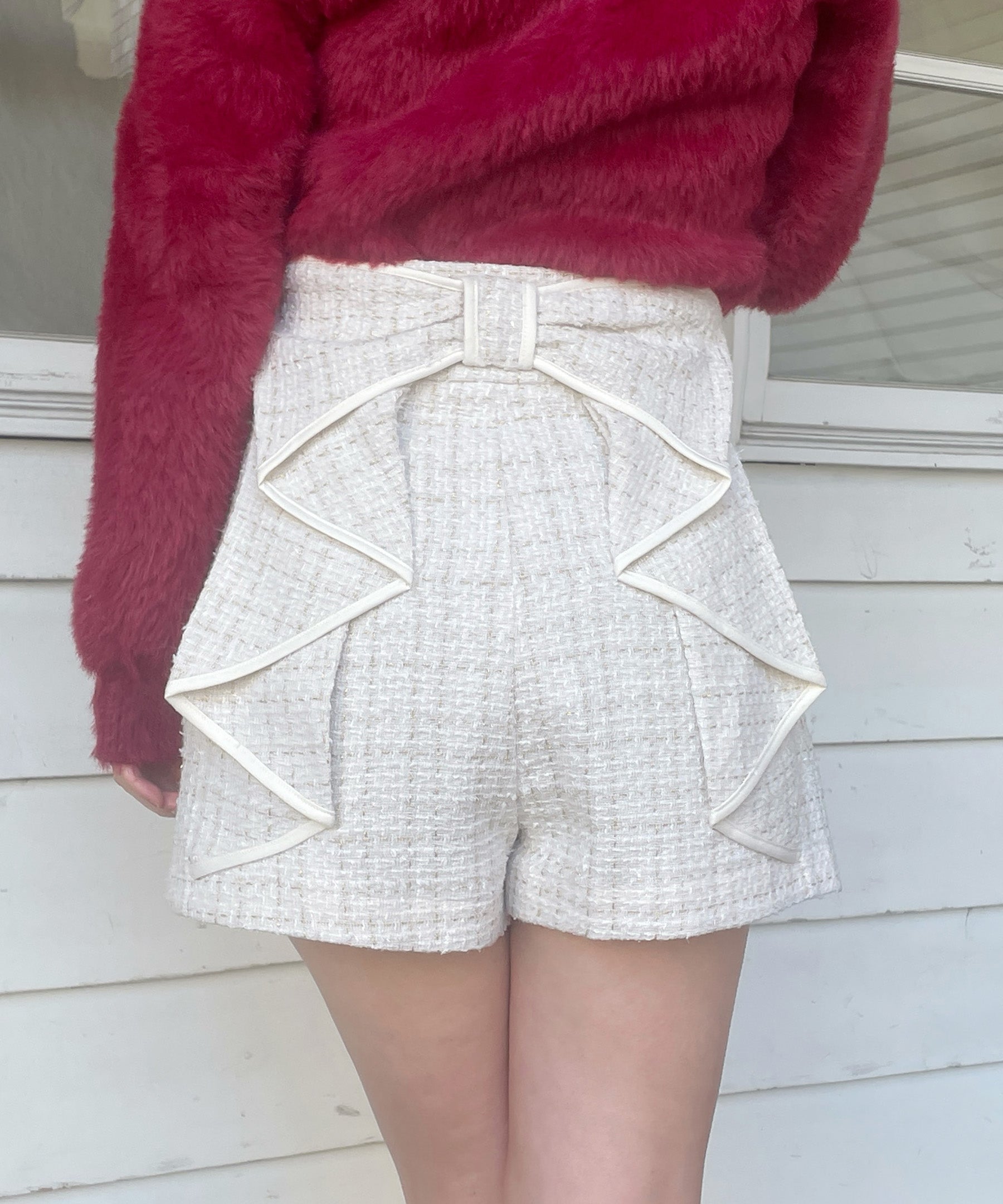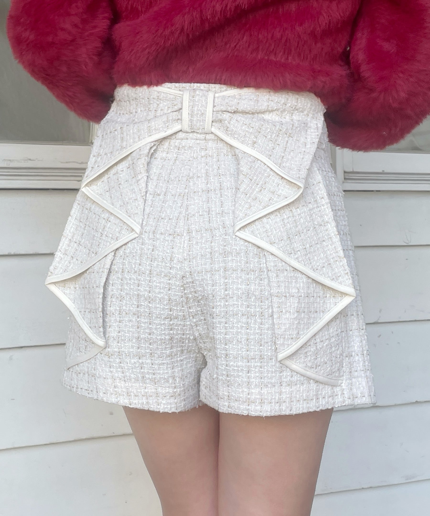 ・キラキラのツイード生地に大きなバックリボンが映えるショートパンツ♡