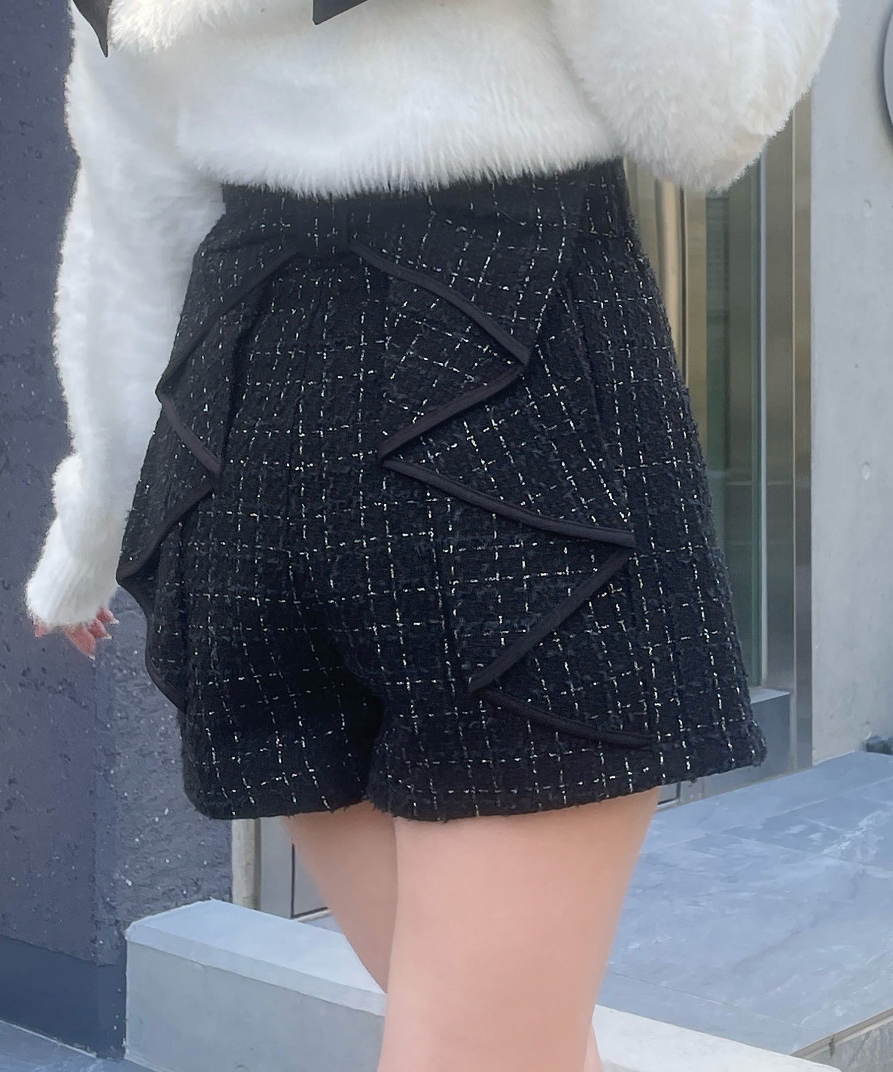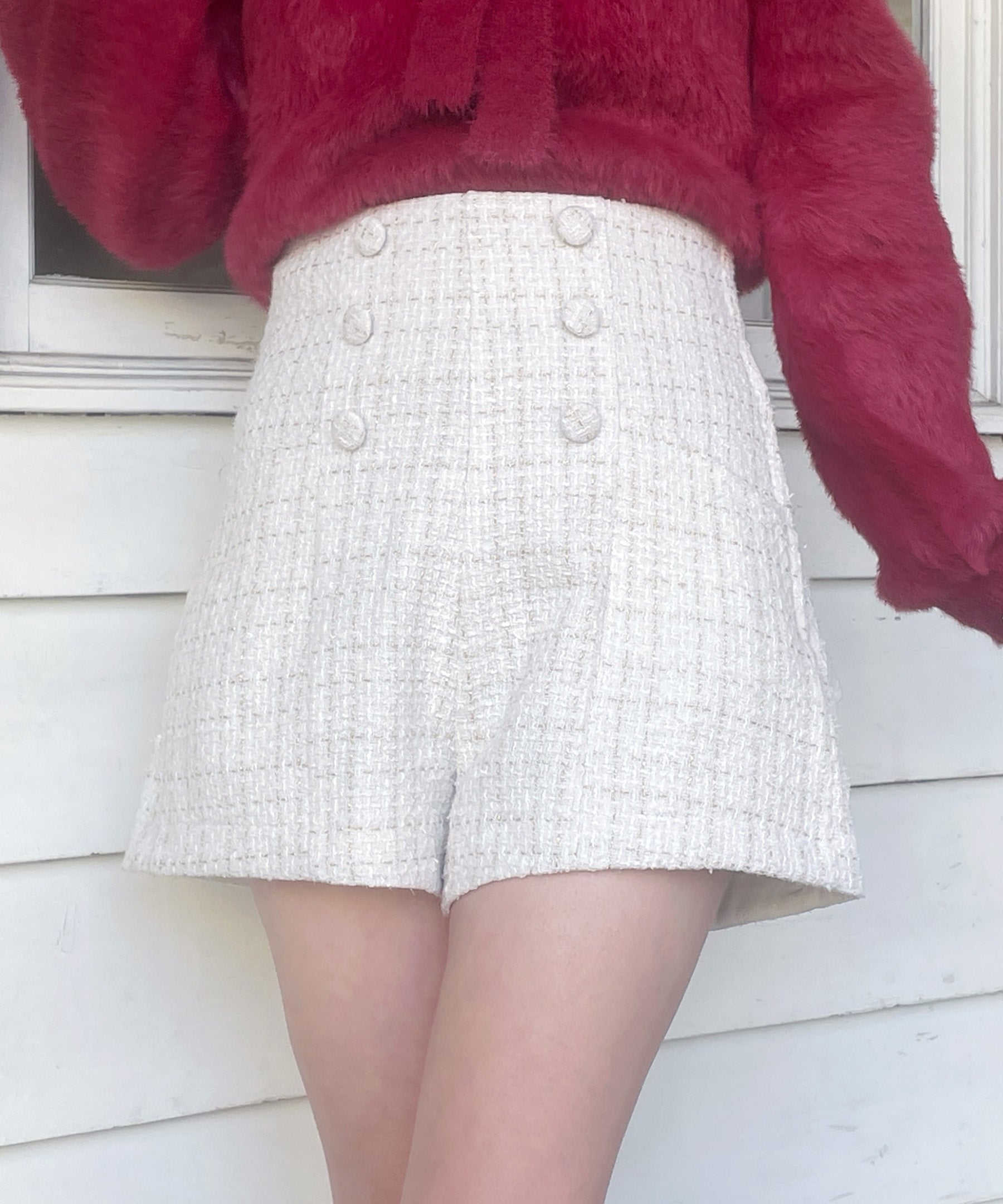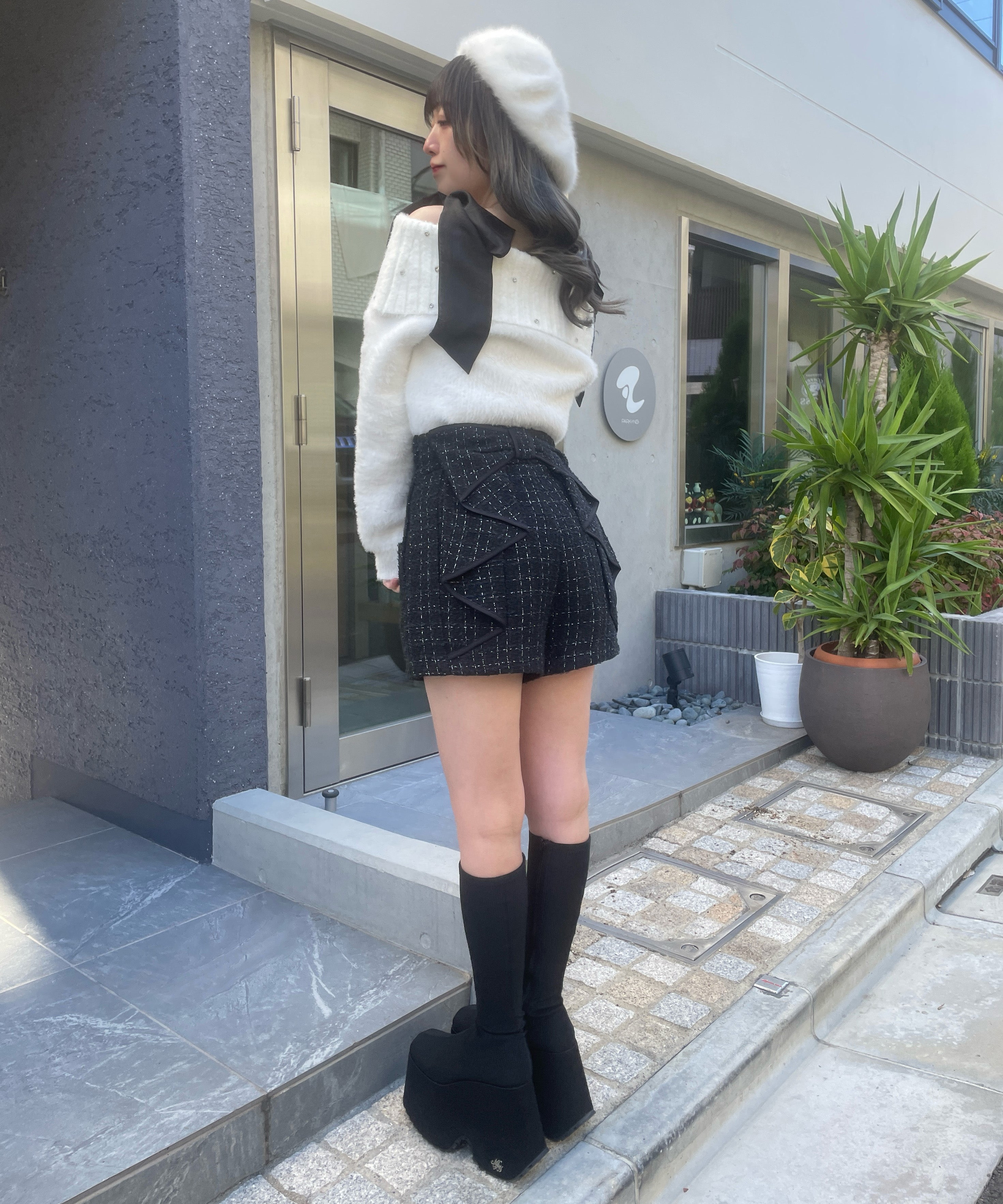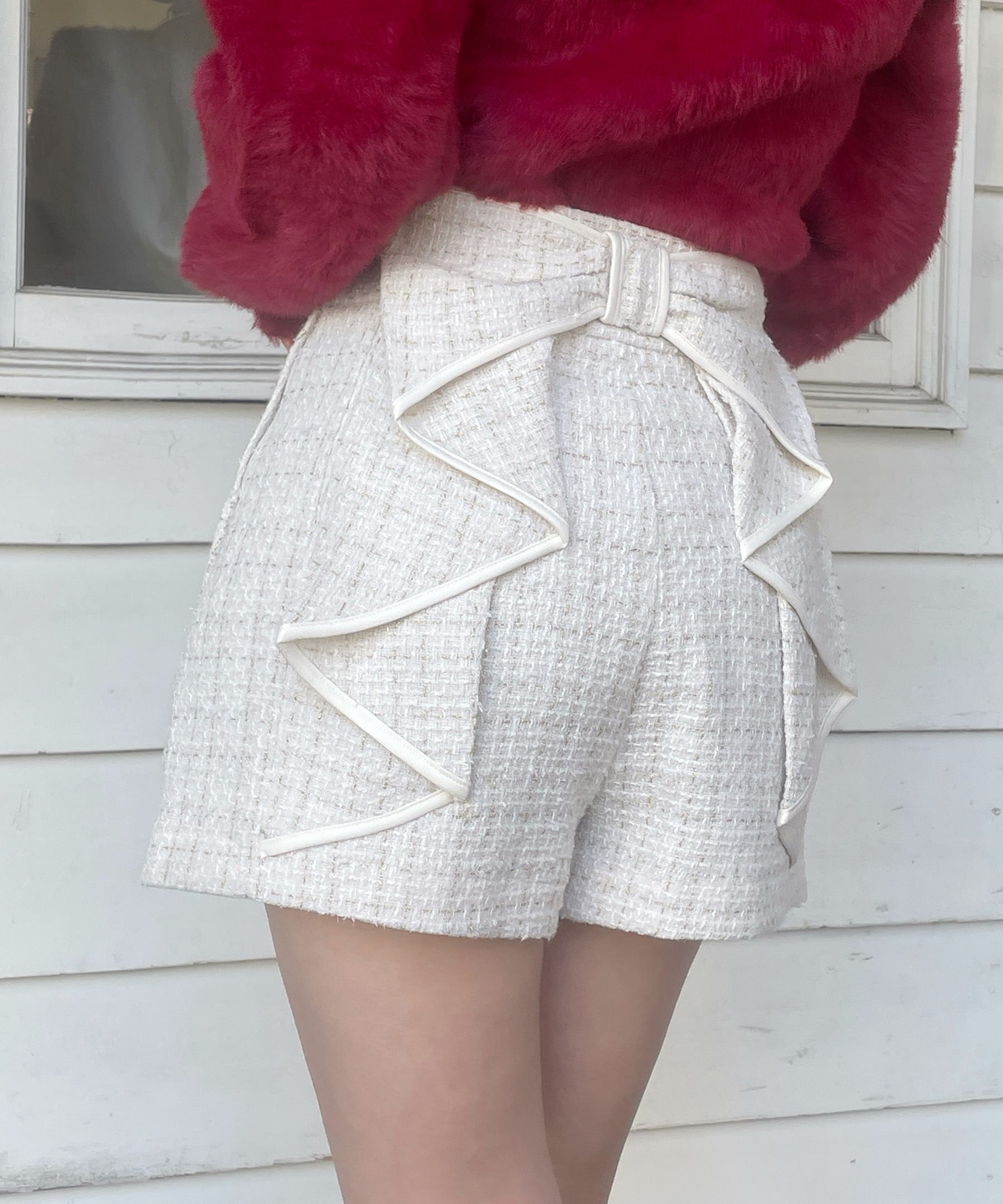 ・キラキラのツイード生地に大きなバックリボンが映えるショートパンツ♡