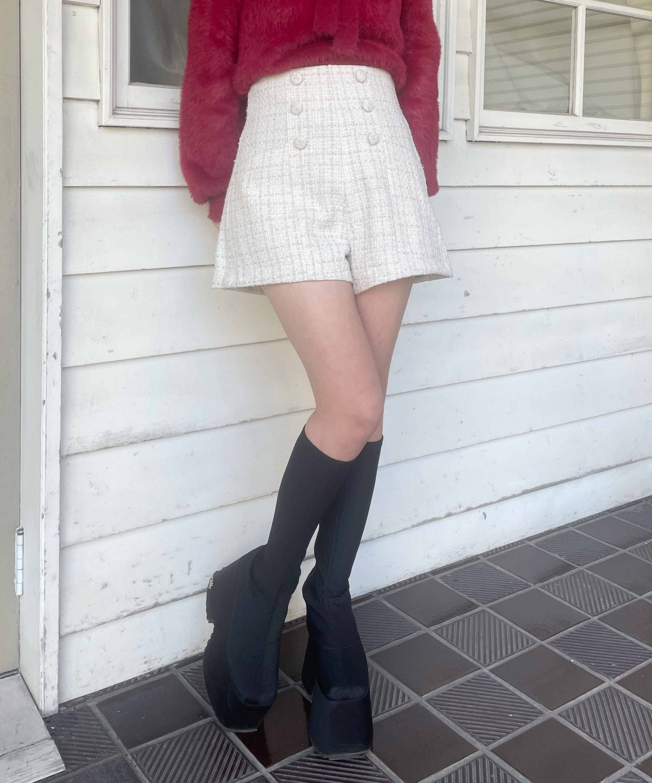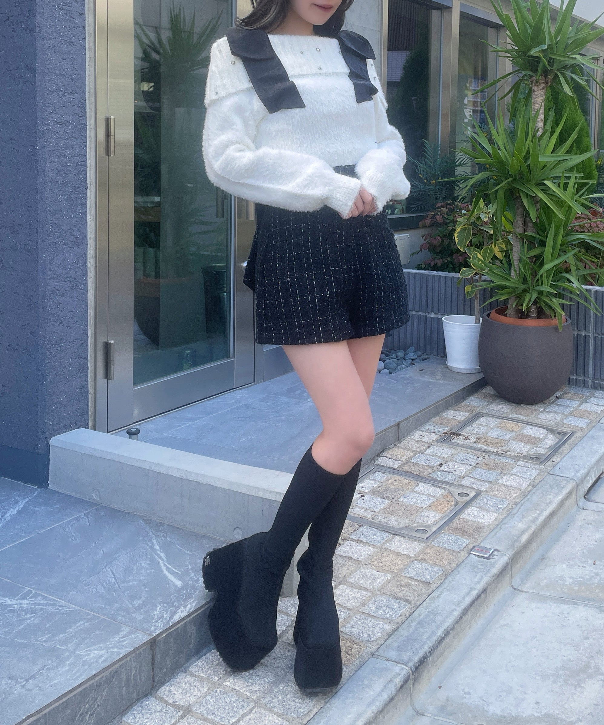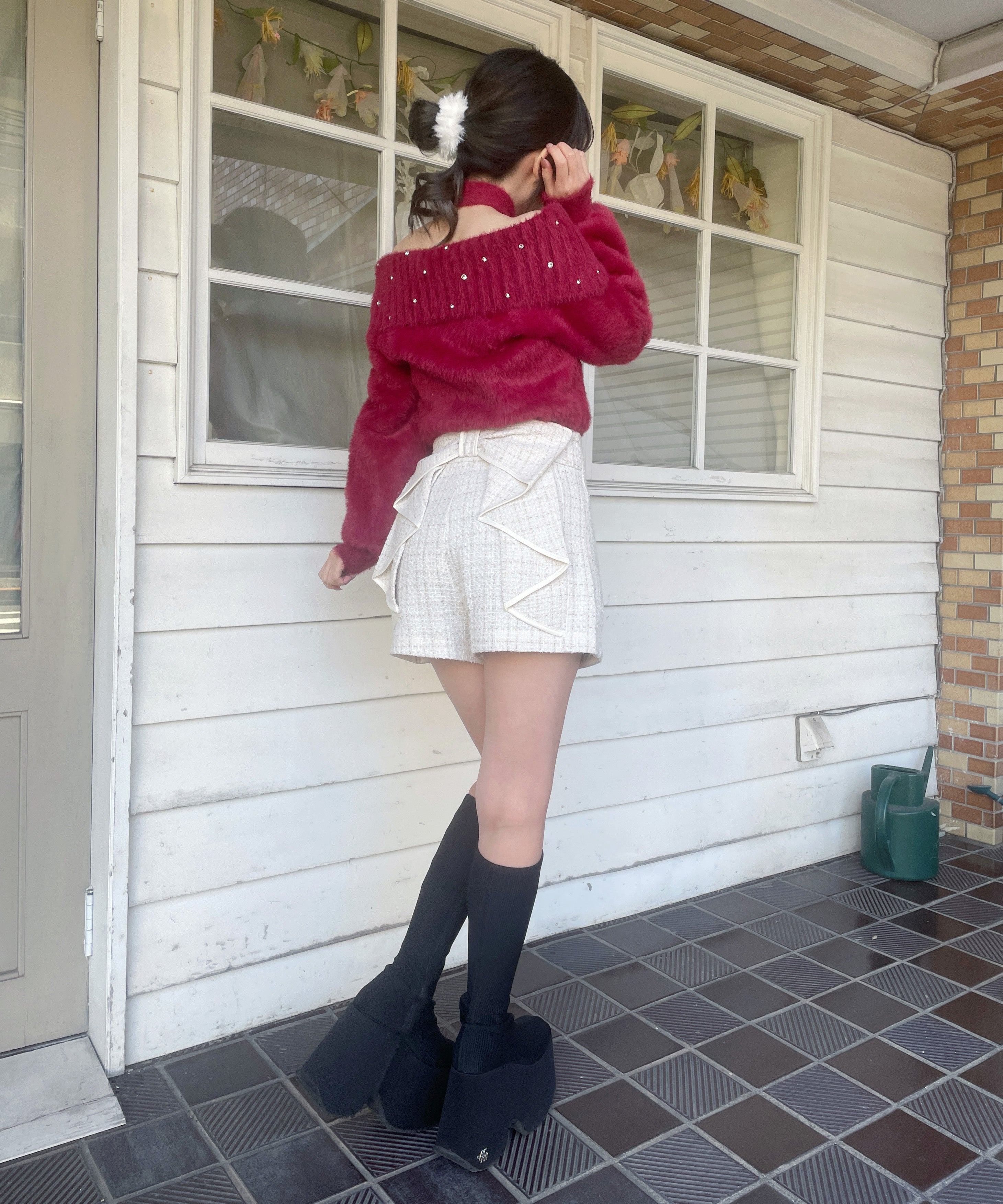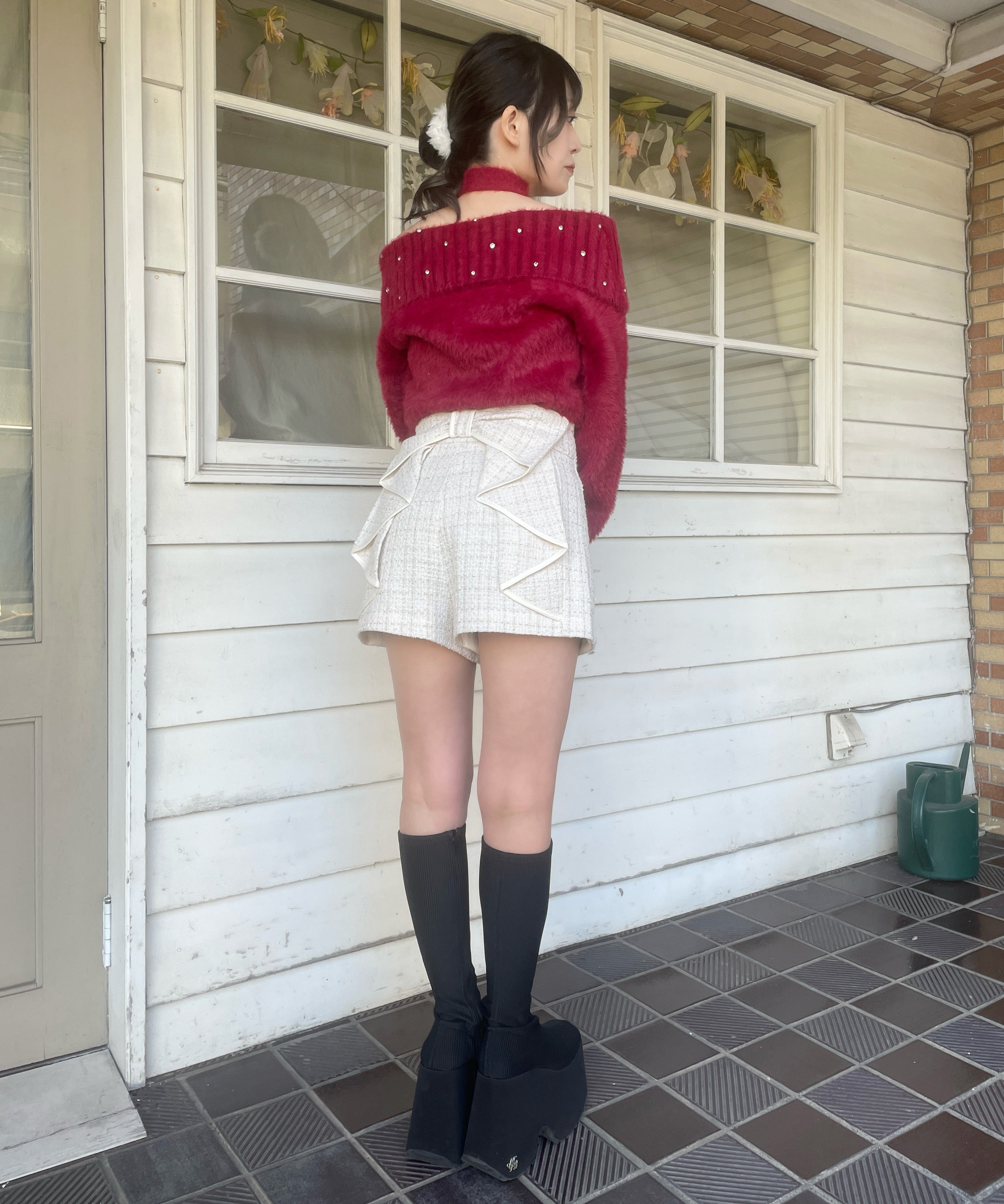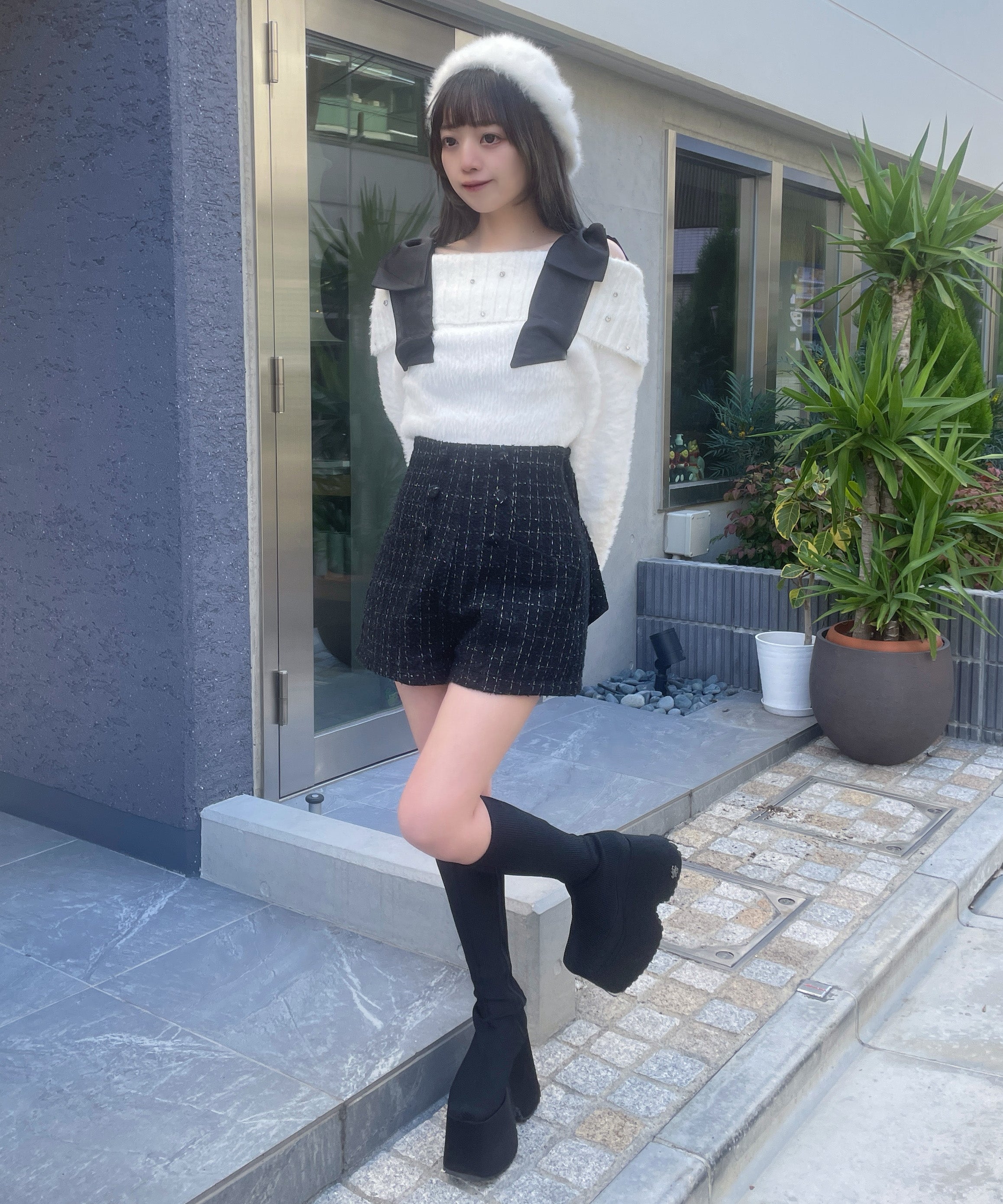 ・キラキラのツイード生地に大きなバックリボンが映えるショートパンツ♡