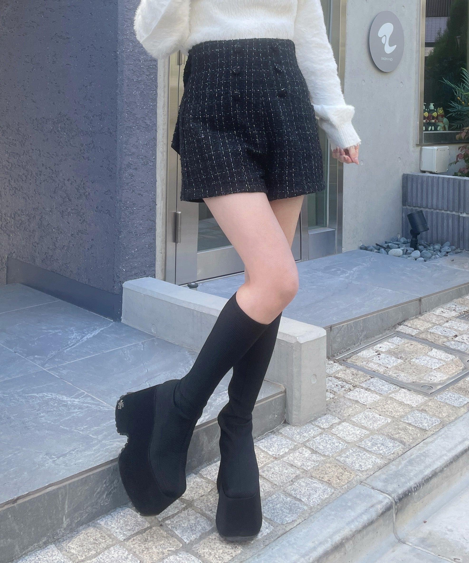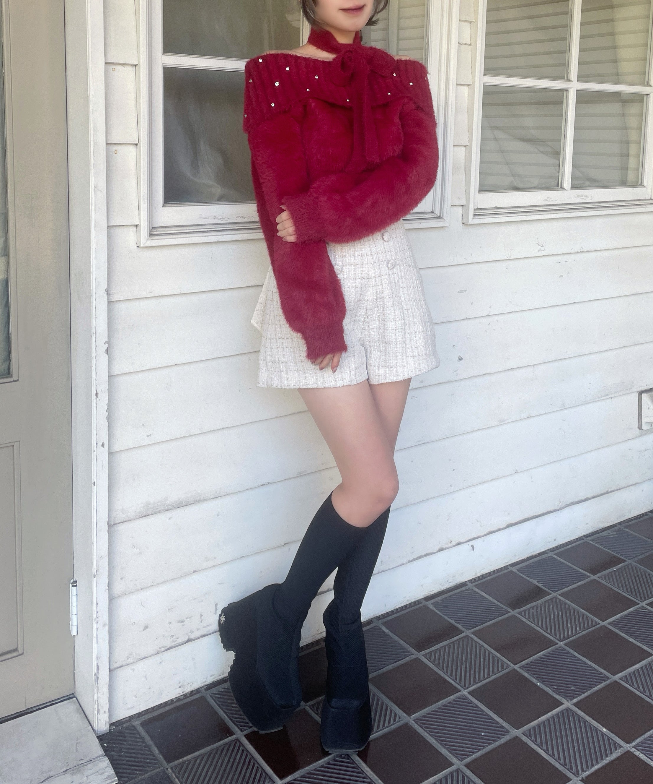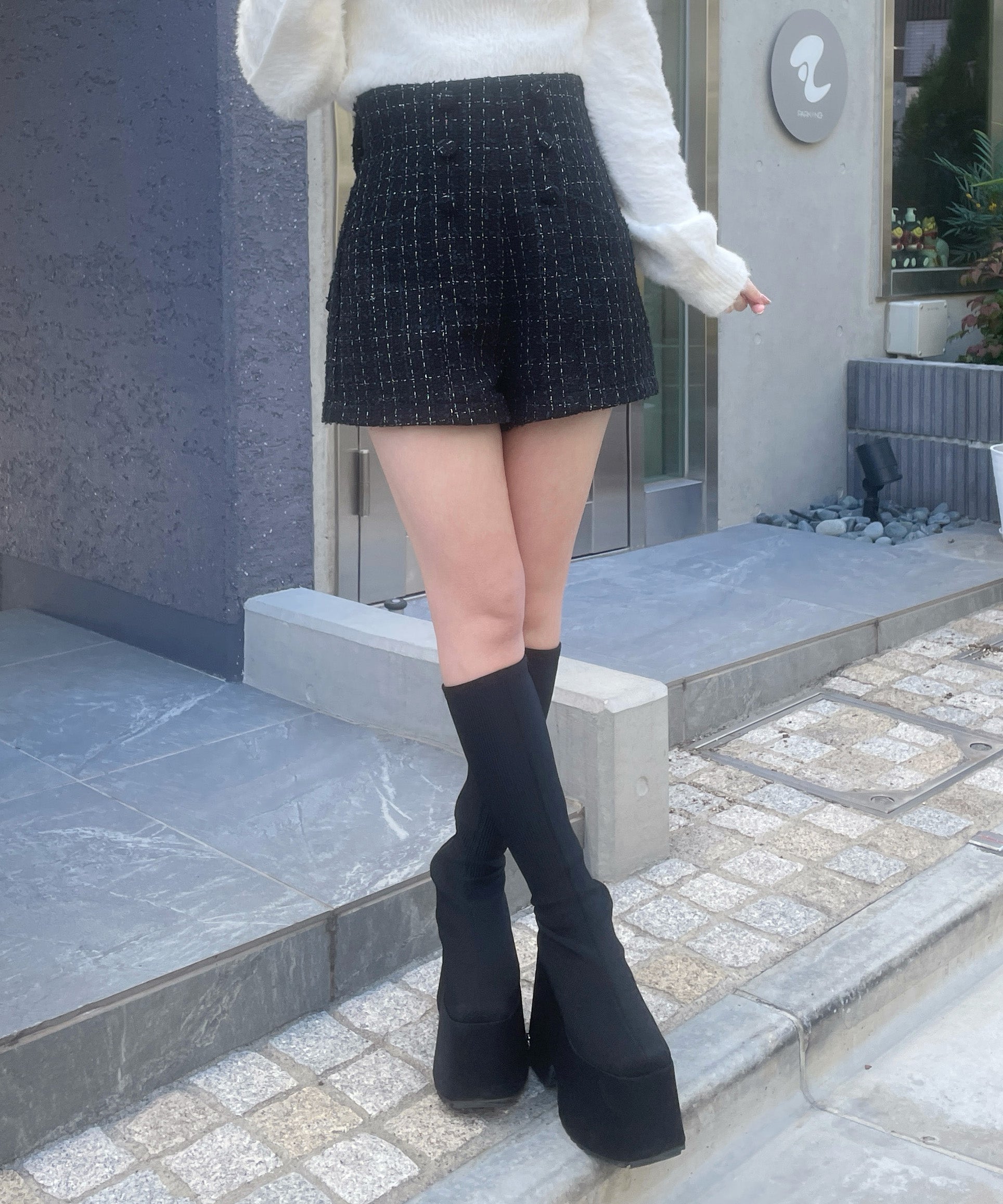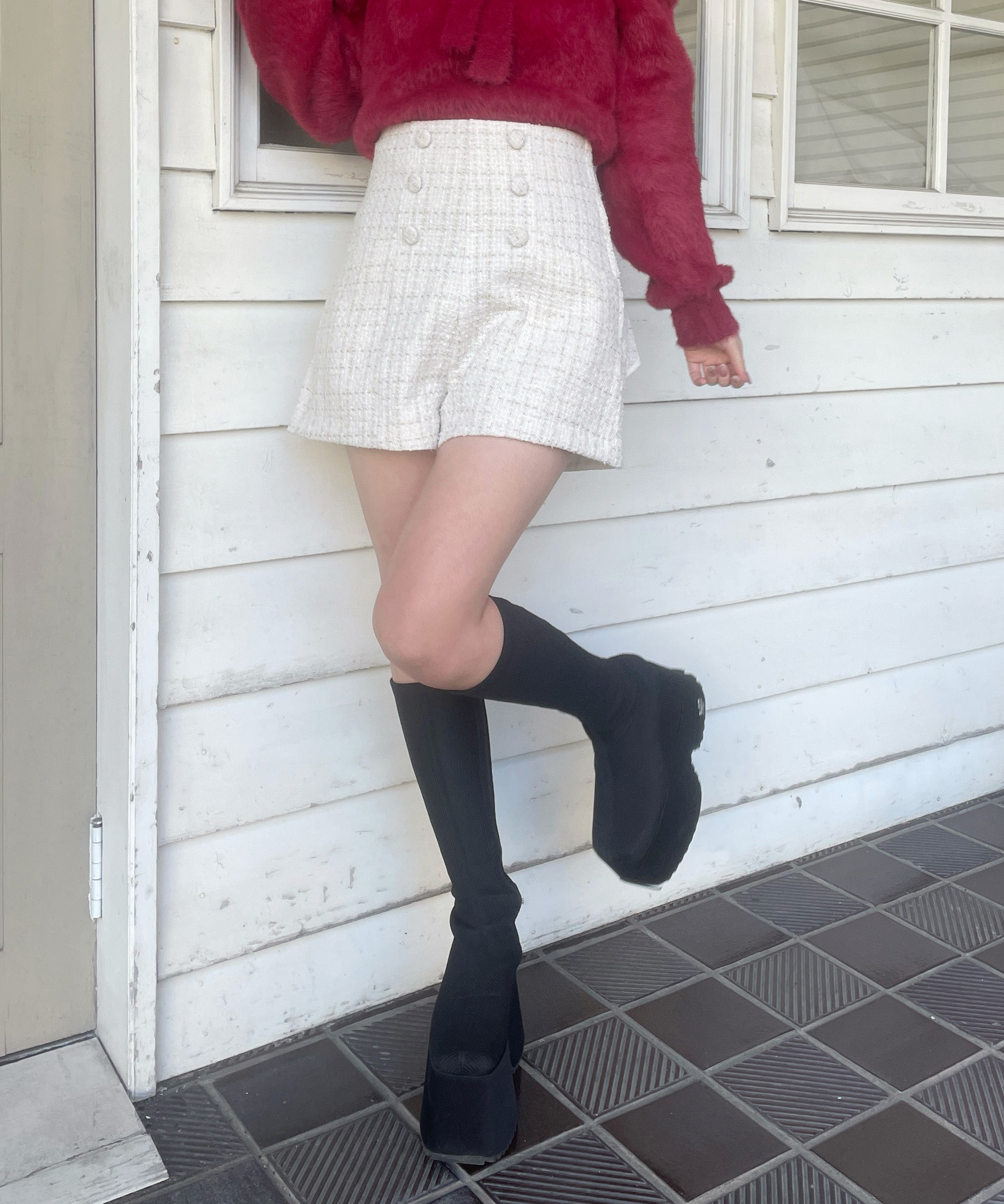 ・キラキラのツイード生地に大きなバックリボンが映えるショートパンツ♡