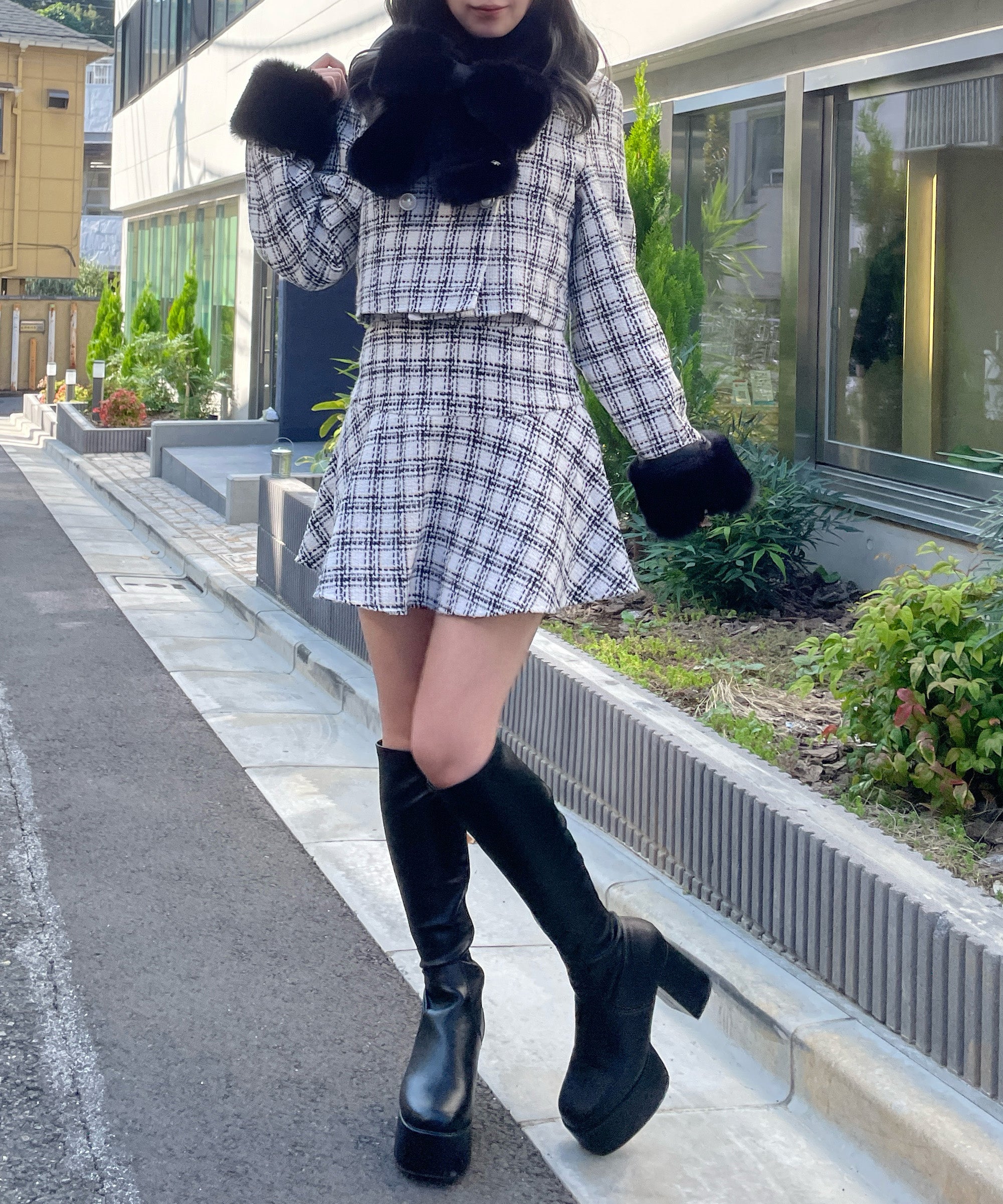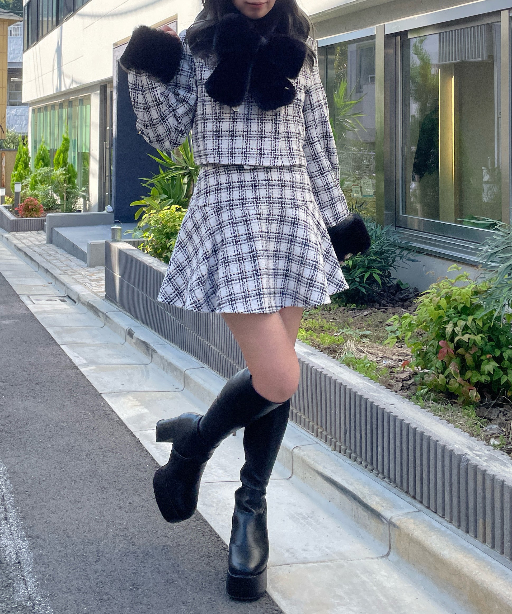 ・セットアップ対応の3058041150ファー付きノーカラージャケットと合わせるのがイチオシ◎