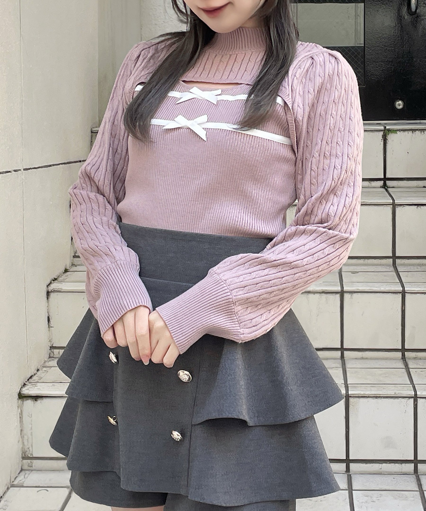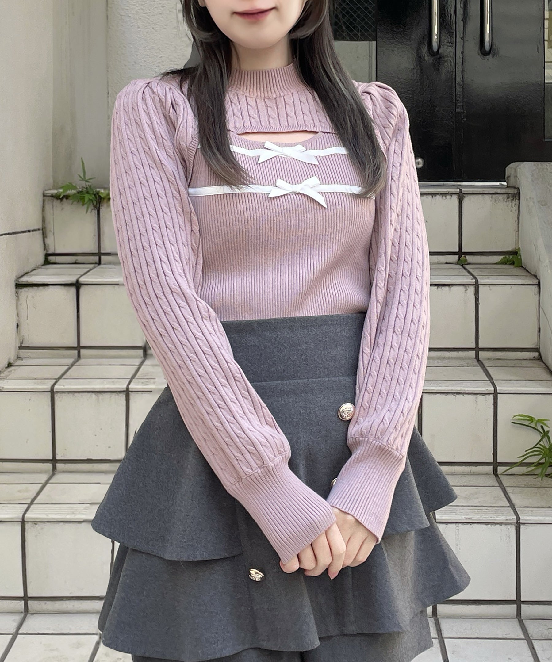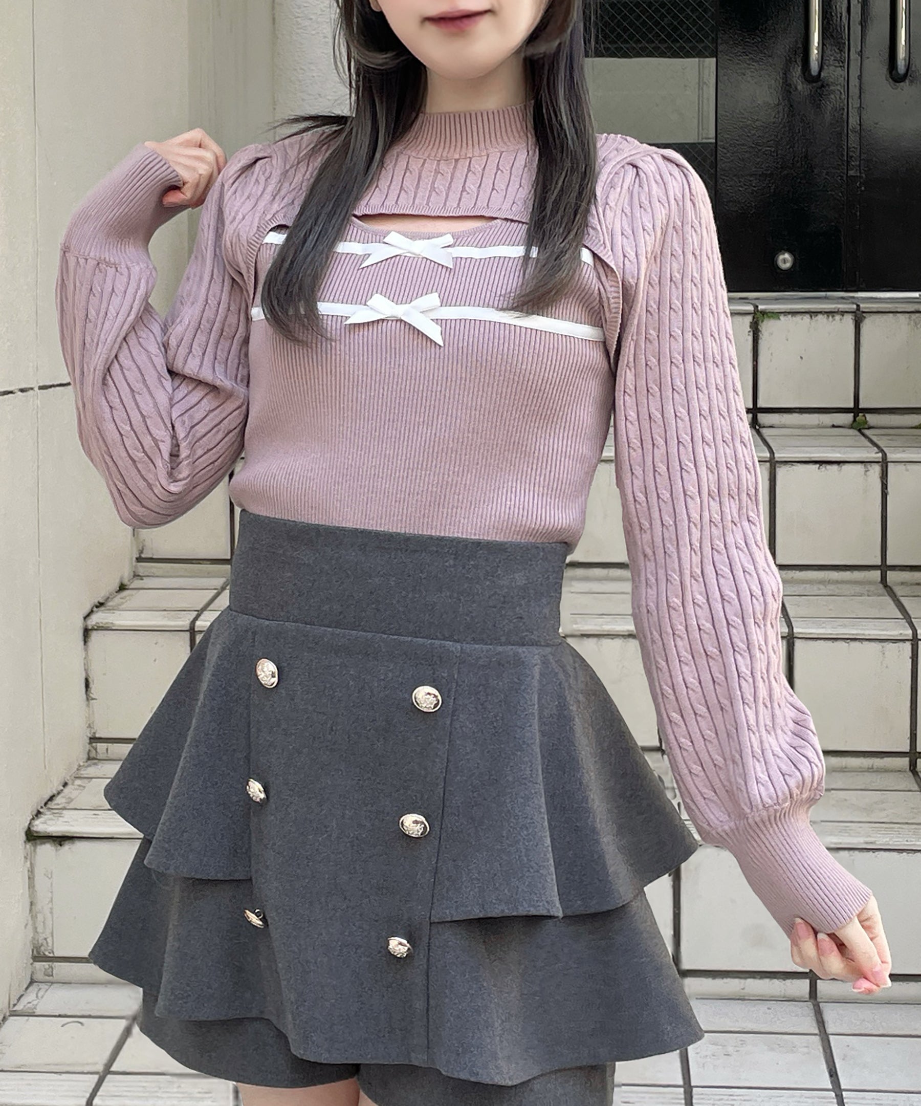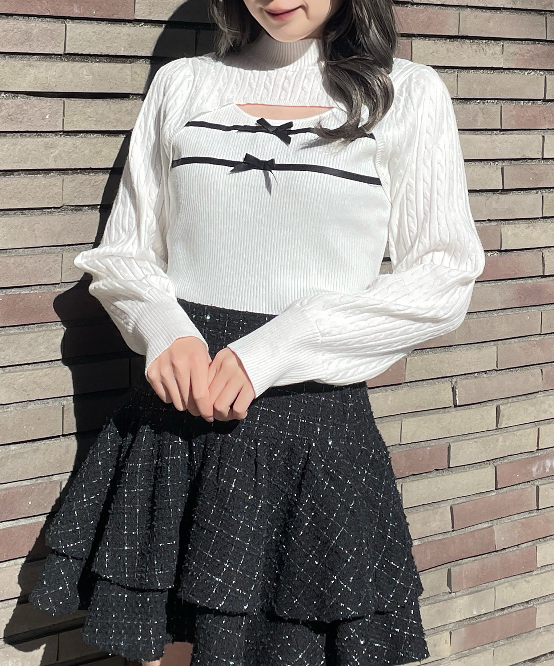 ・ケーブルのレイヤード風がトレンド感のあるニット♡
