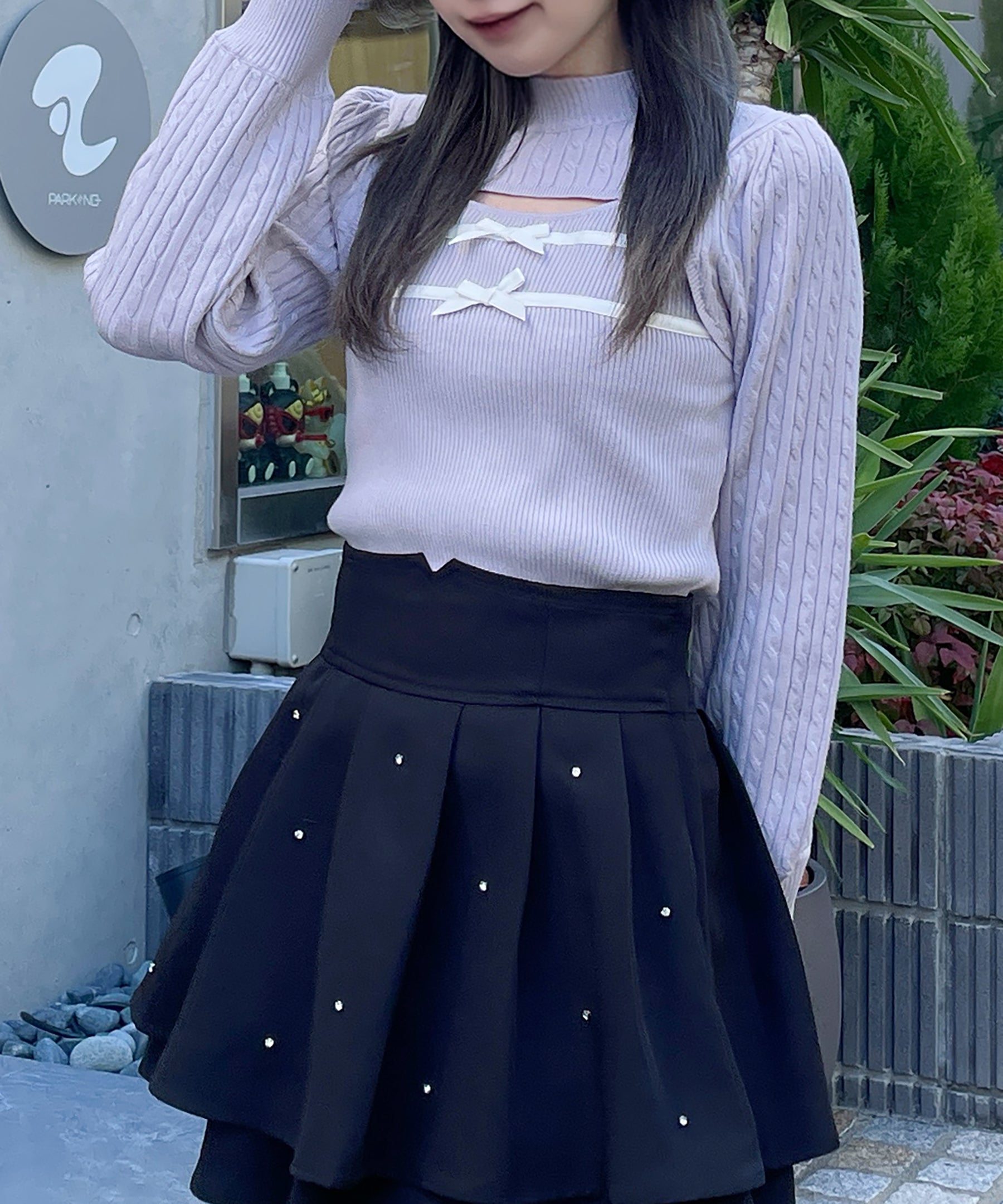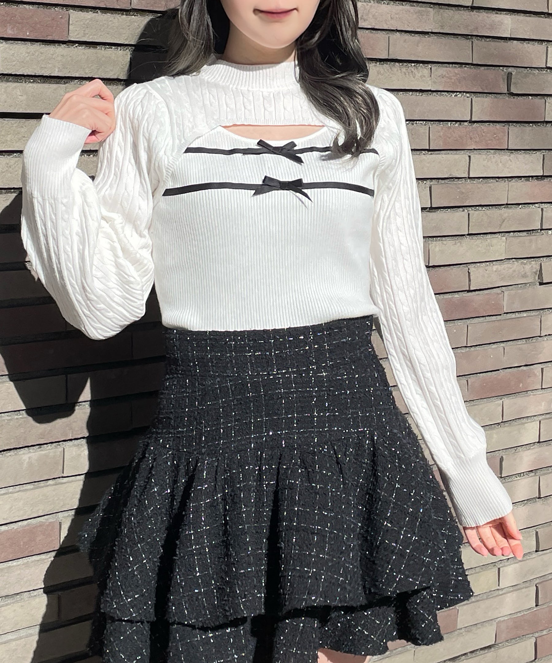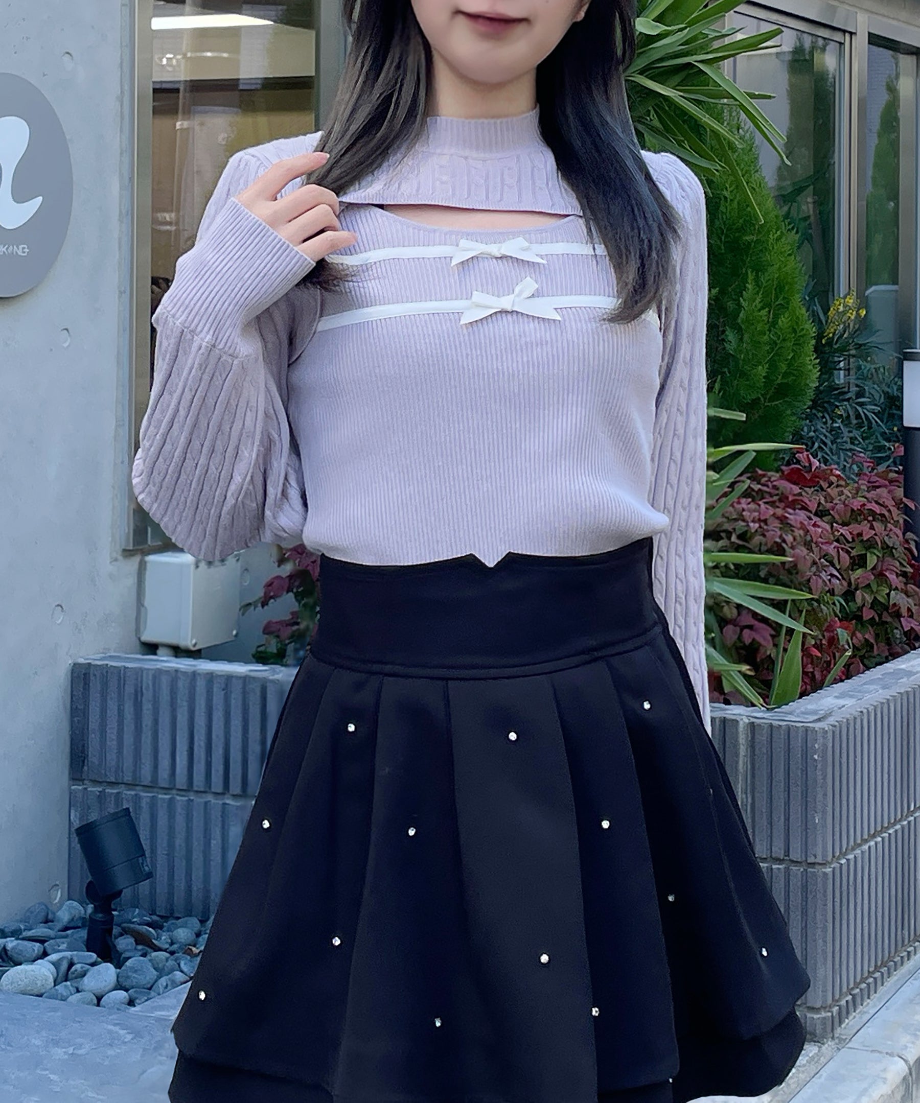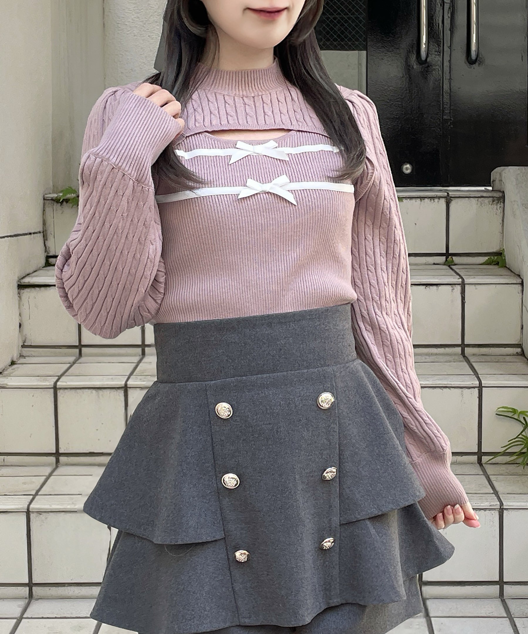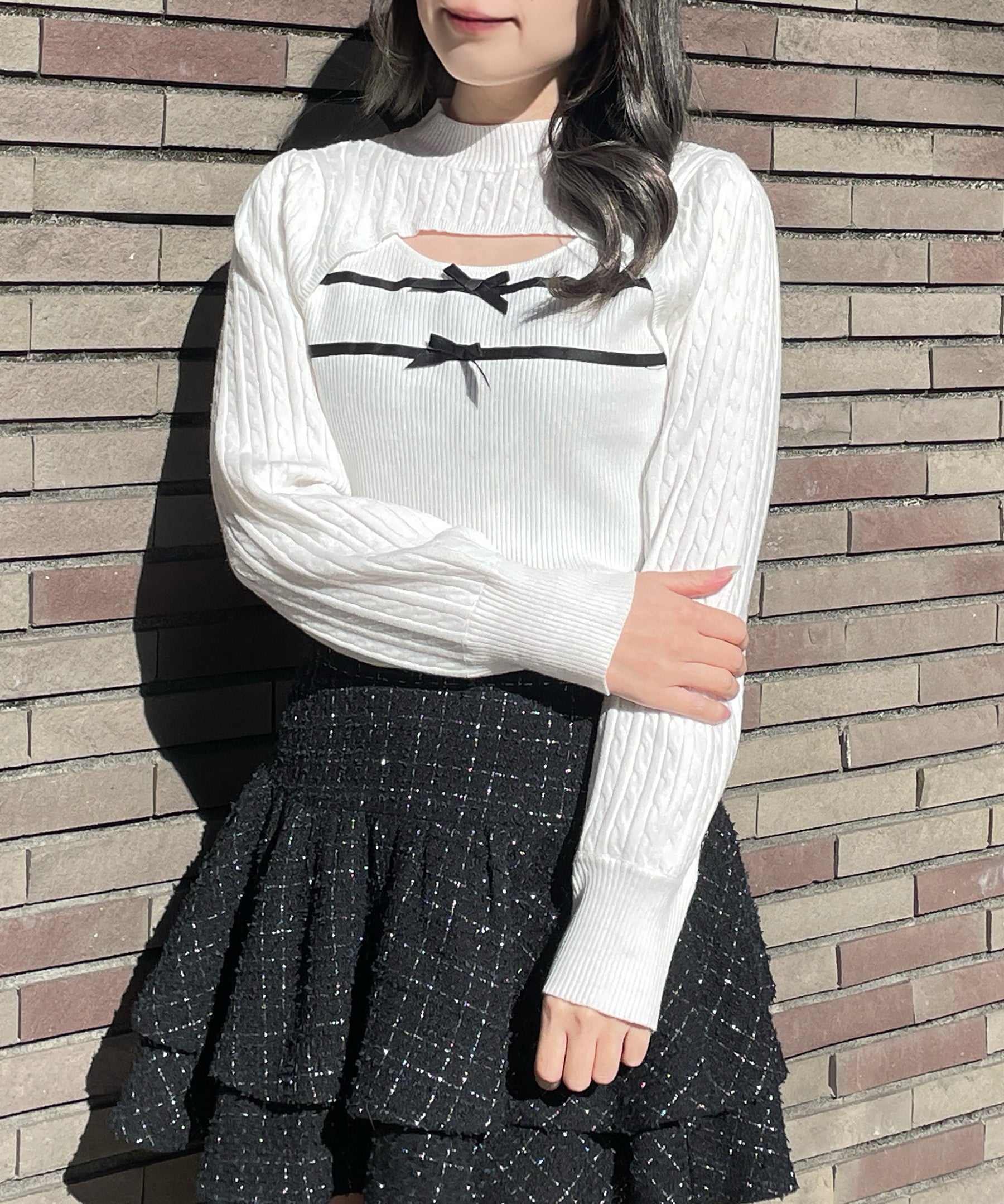 ・ケーブルのレイヤード風がトレンド感のあるニット♡