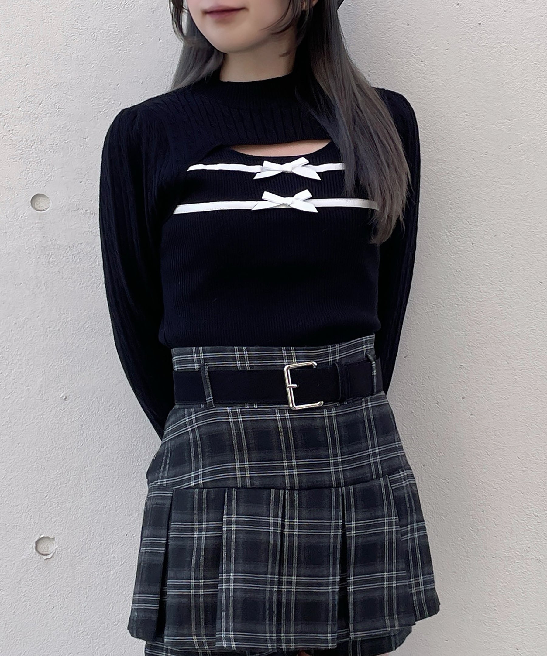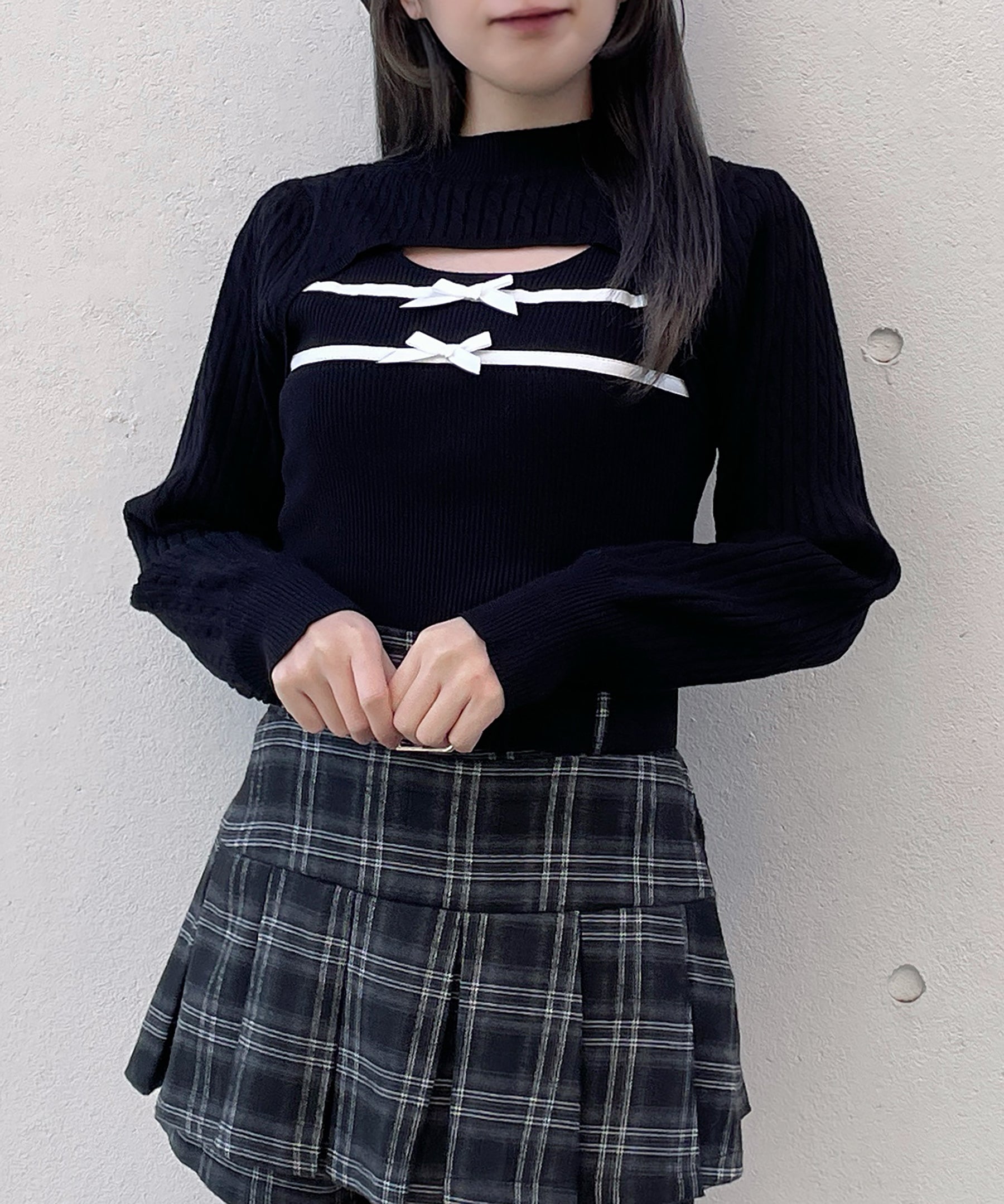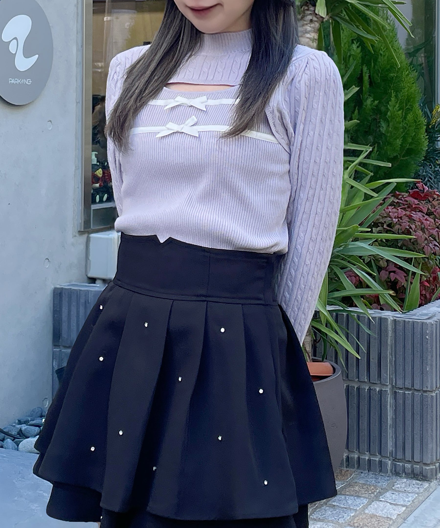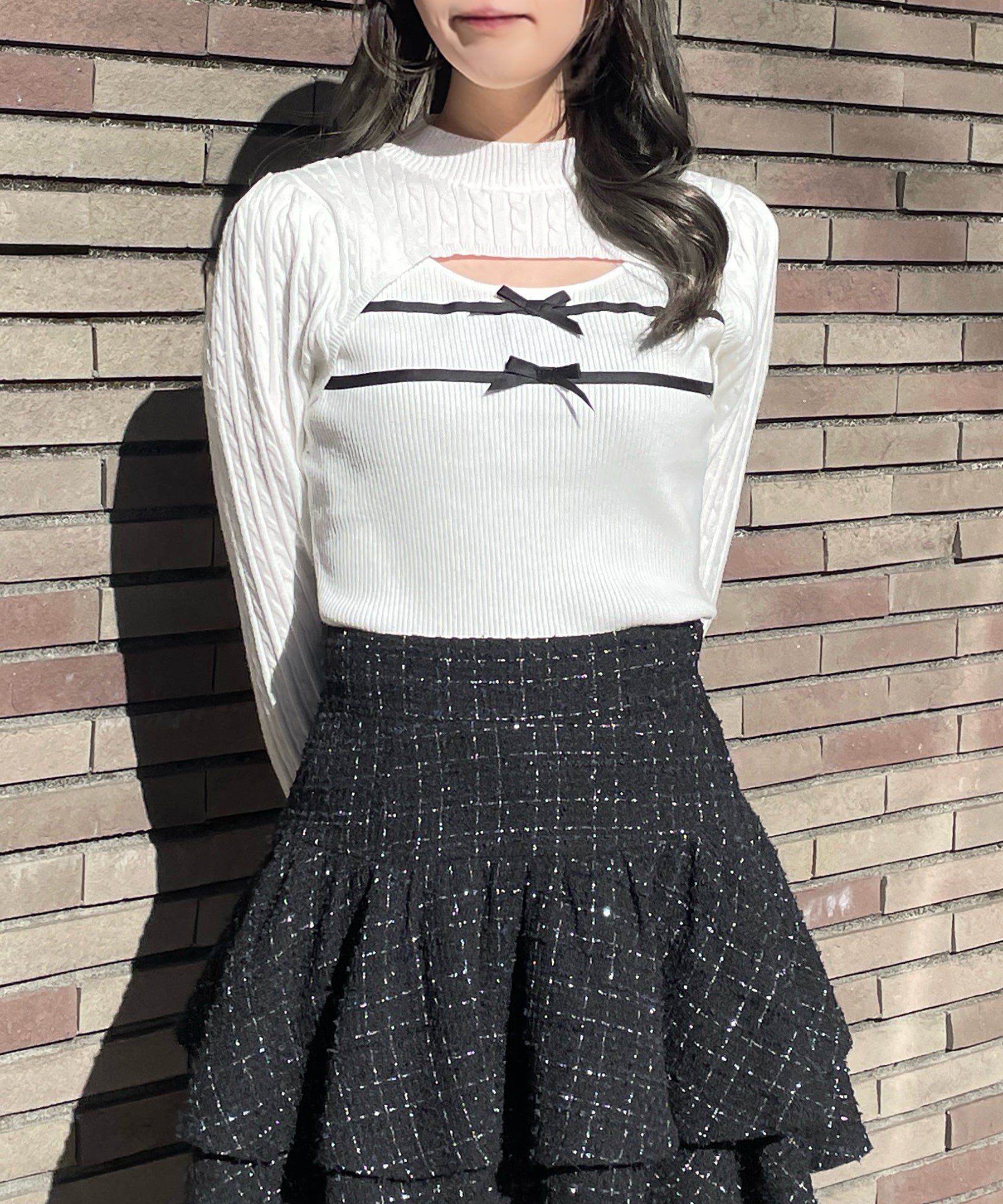 ・ケーブルのレイヤード風がトレンド感のあるニット♡