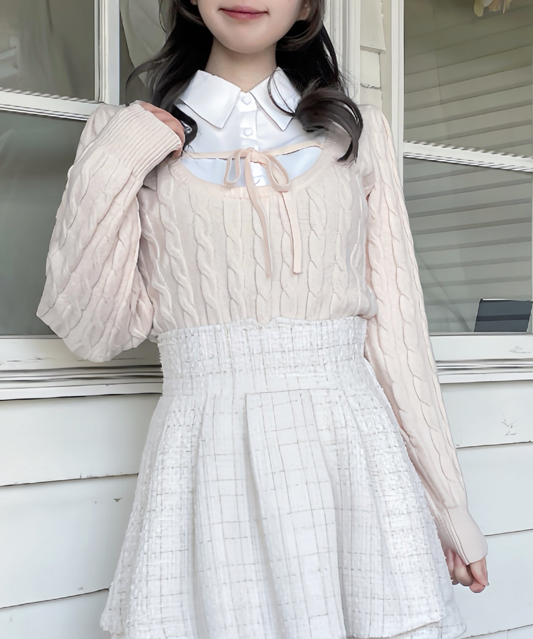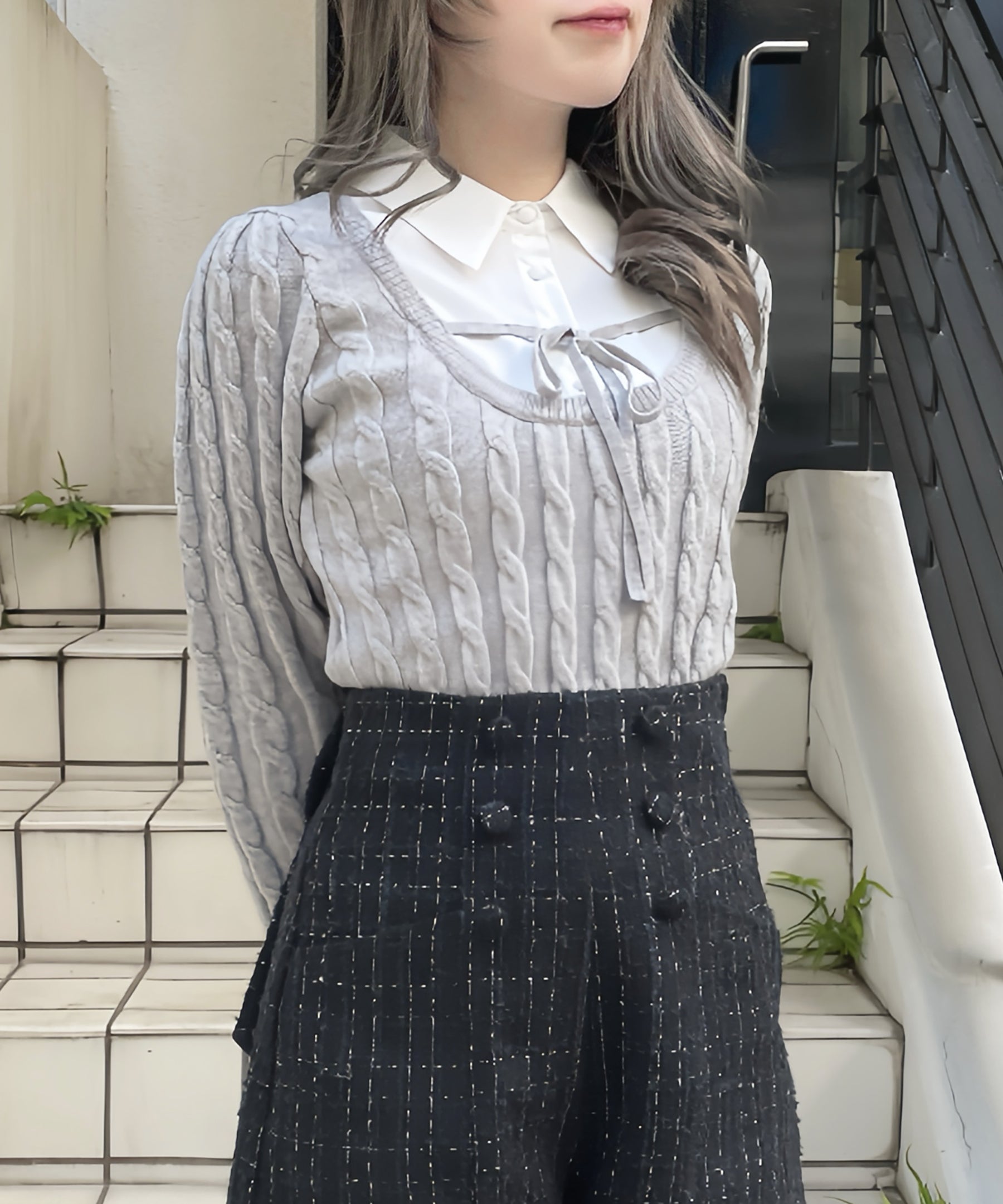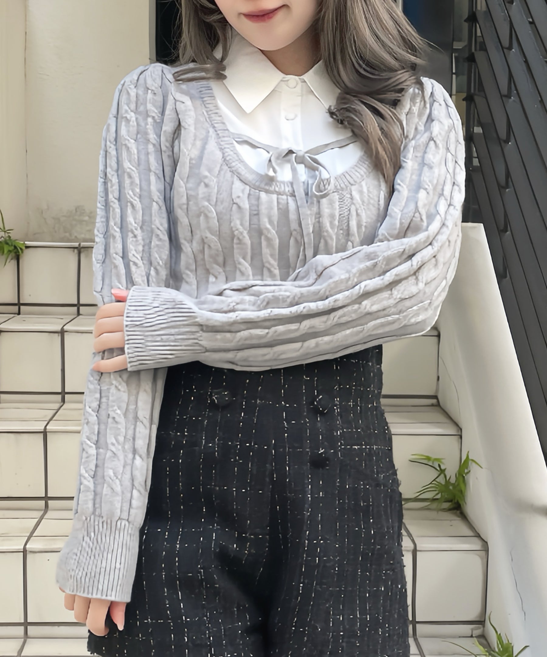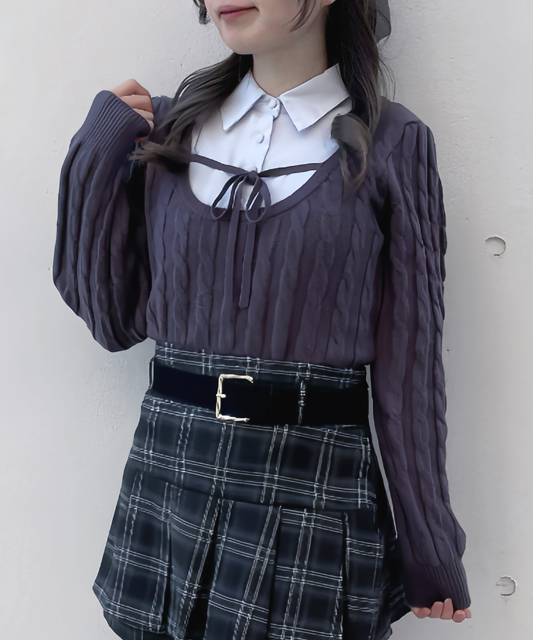 レイヤードケーブルニット