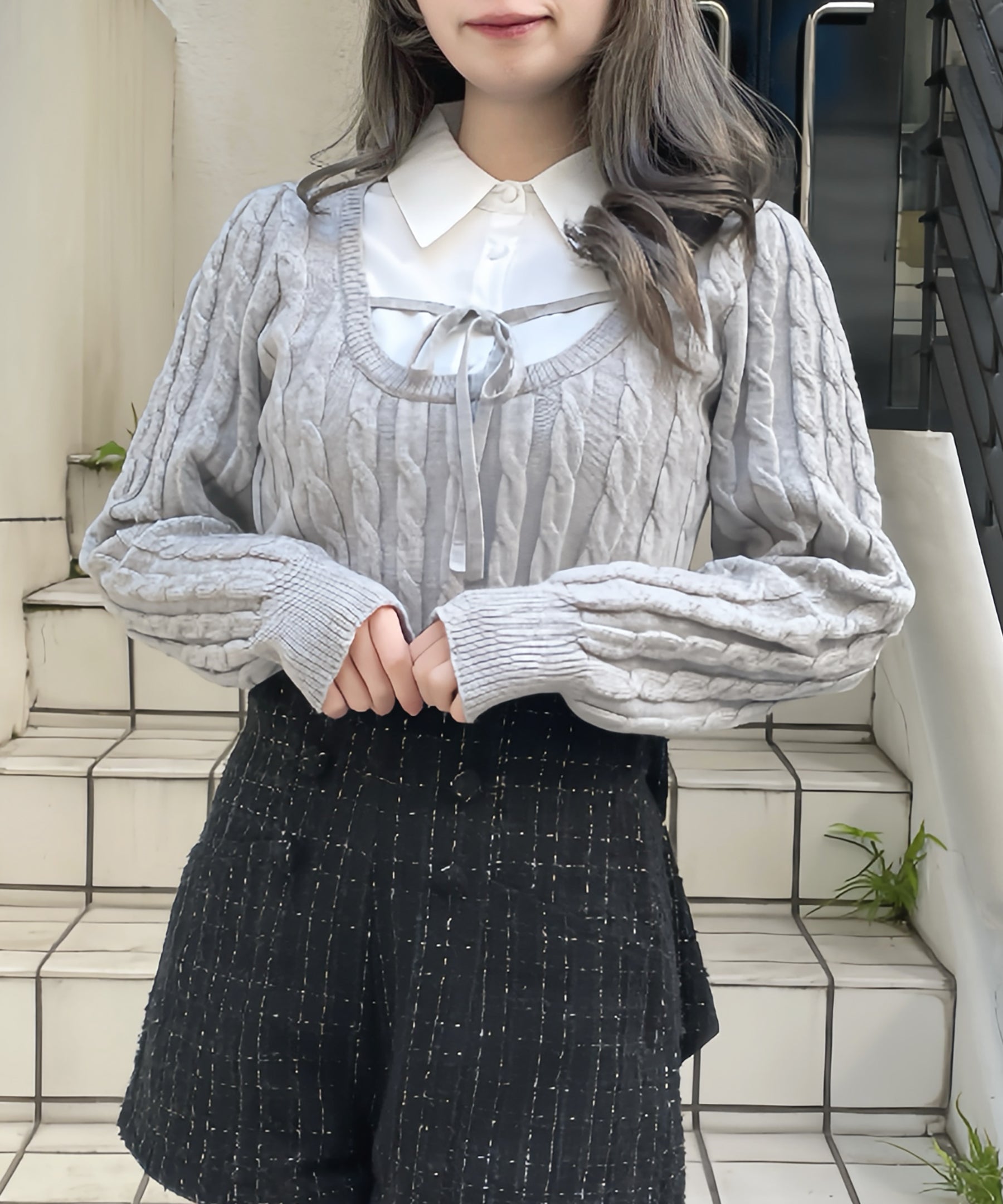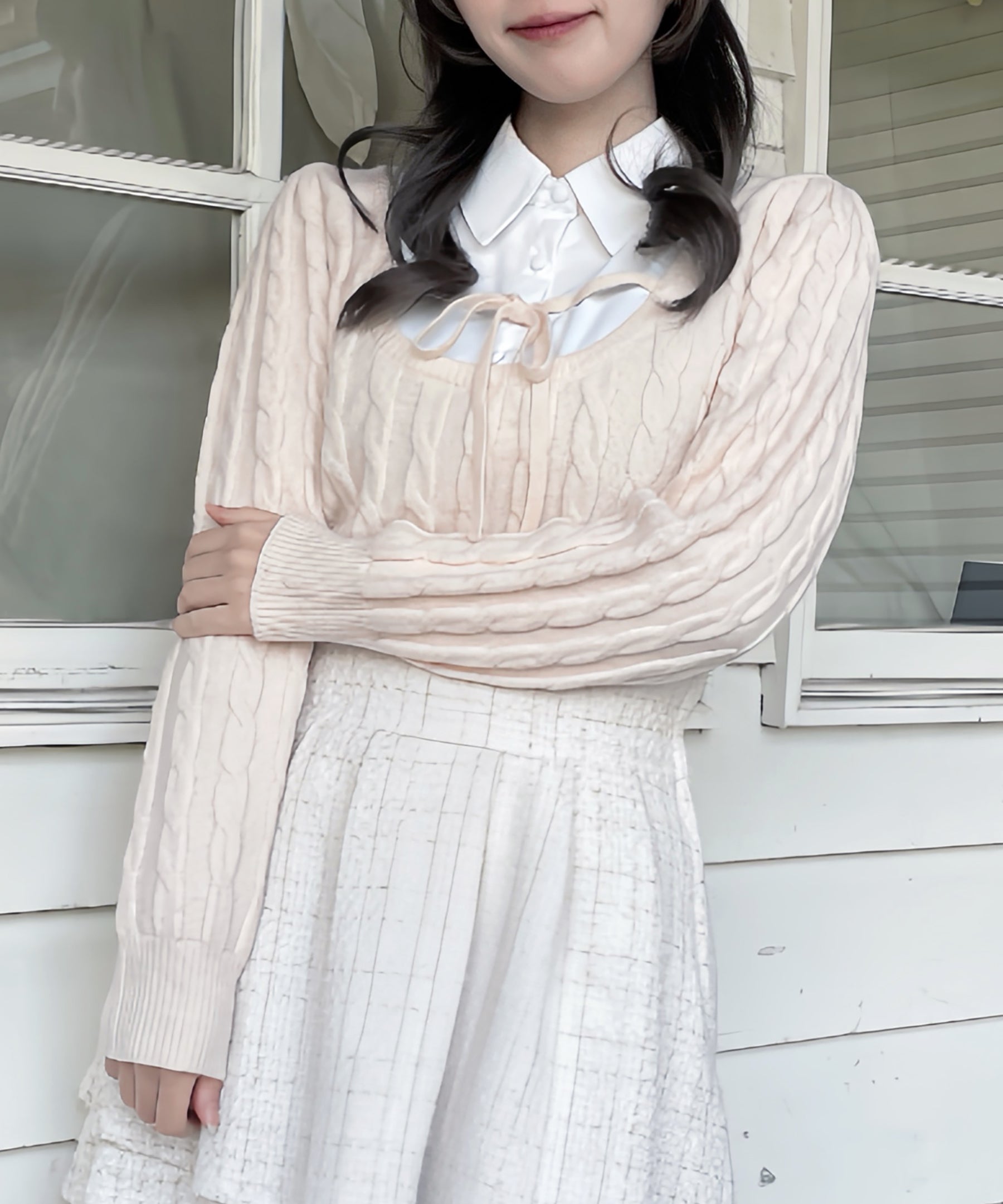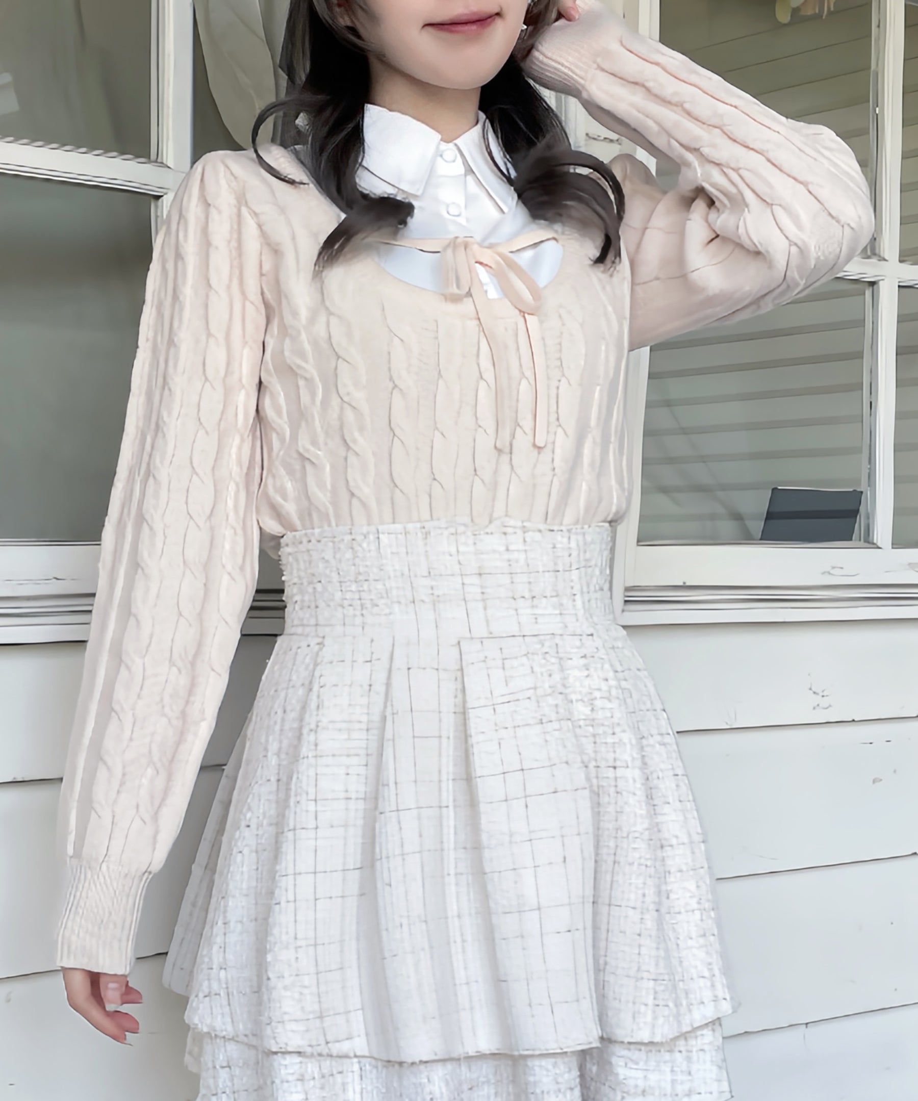 レイヤードケーブルニット