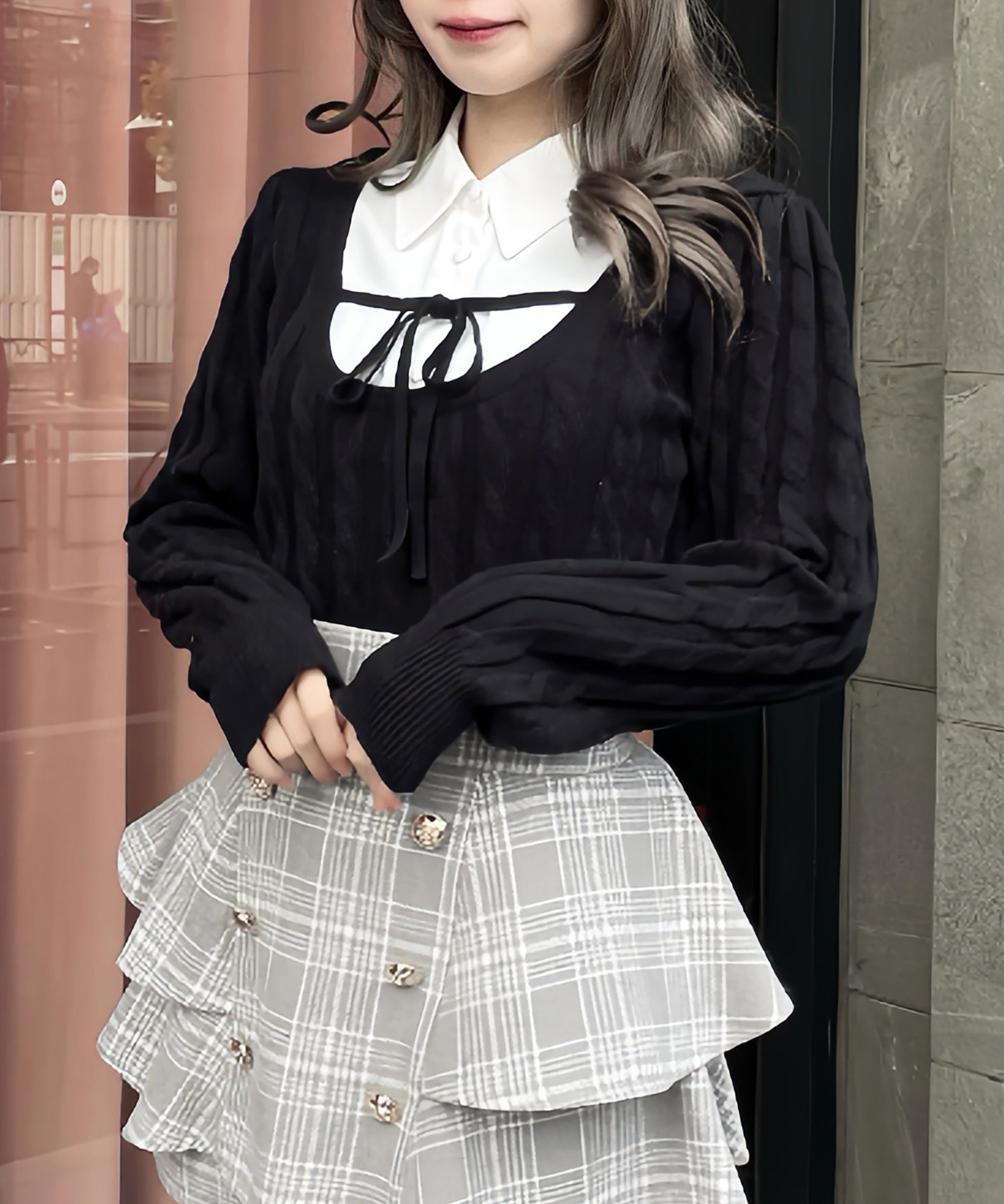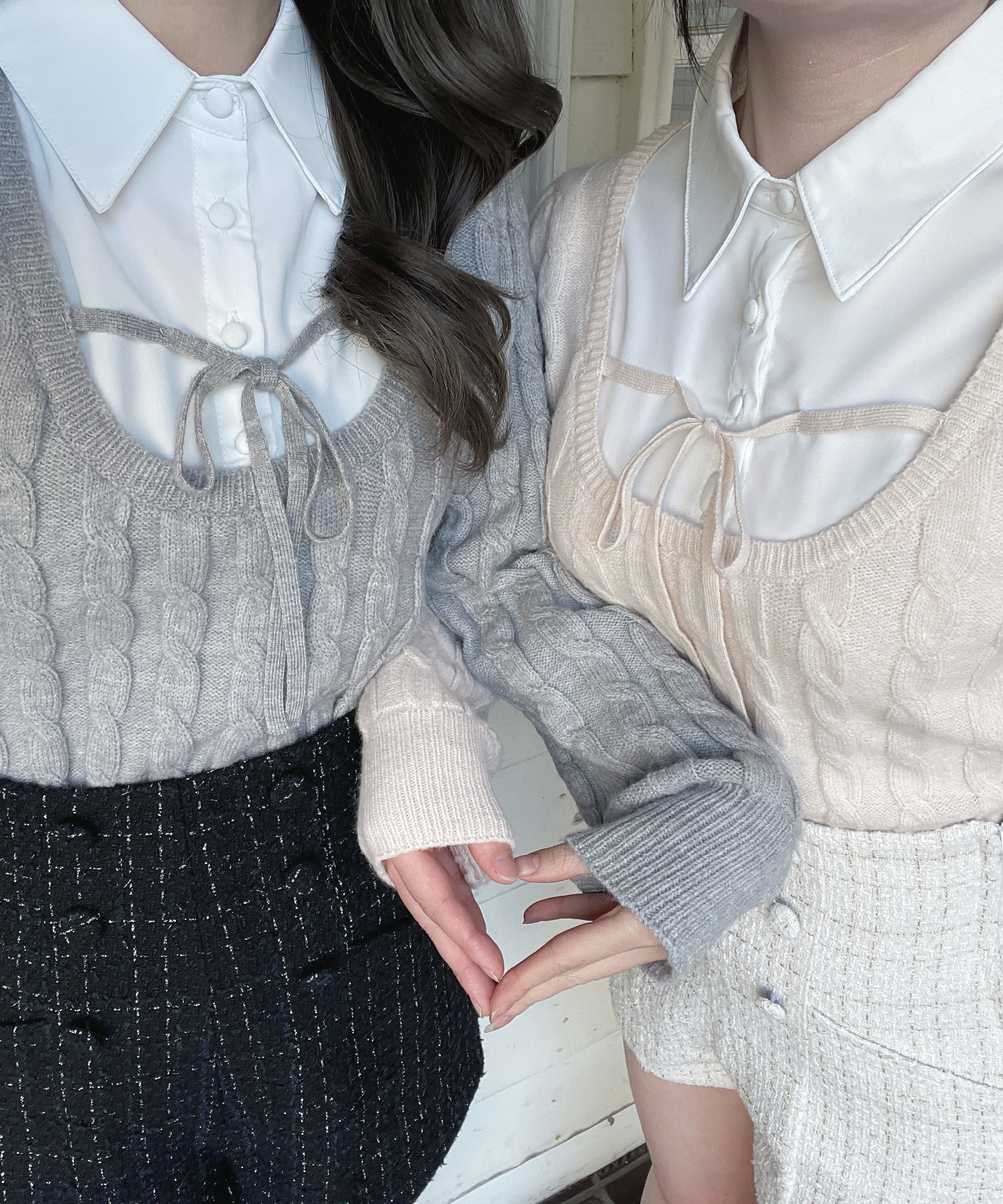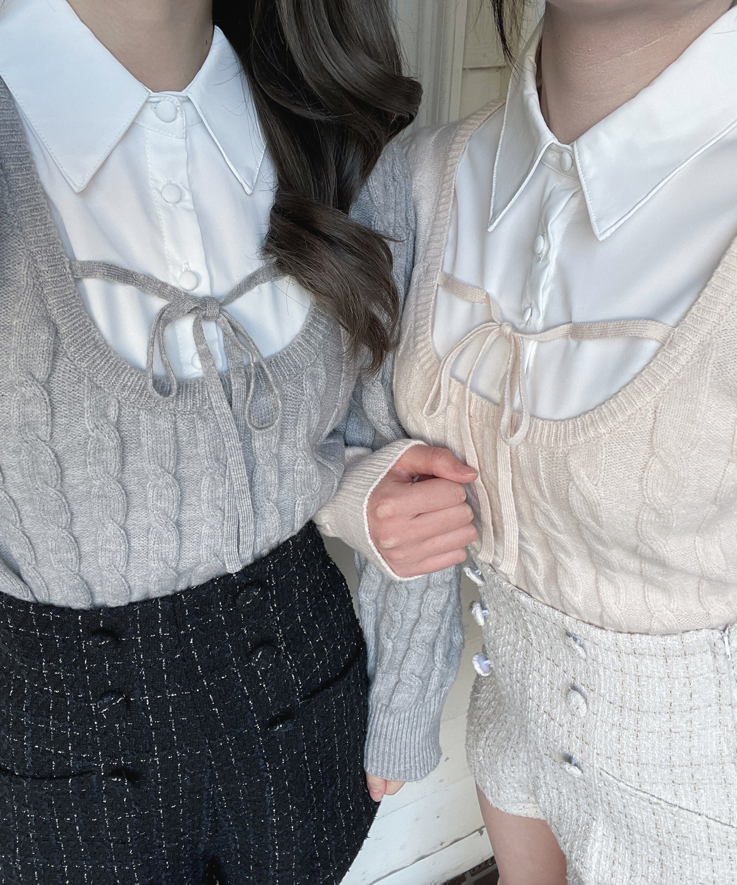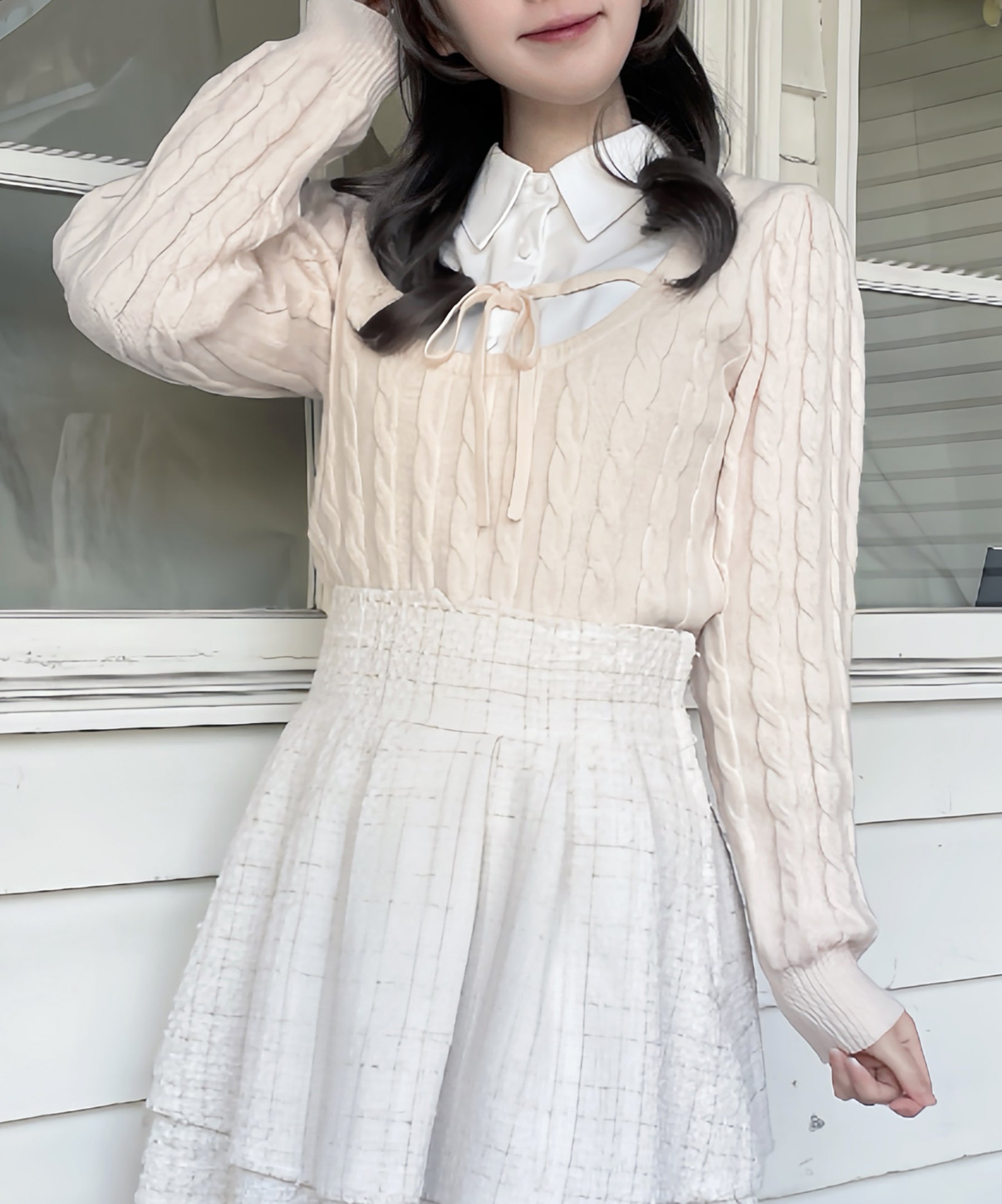 レイヤードケーブルニット