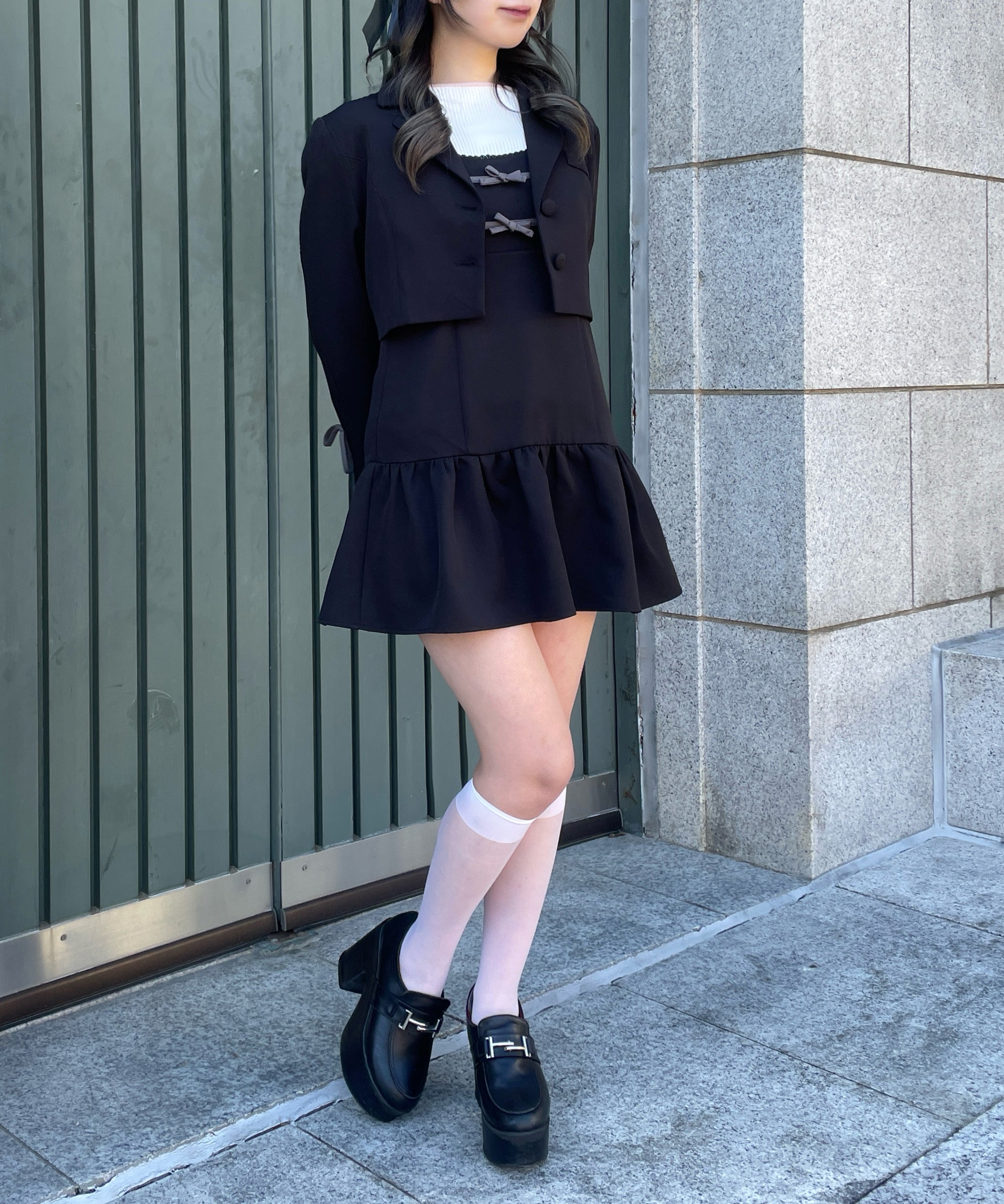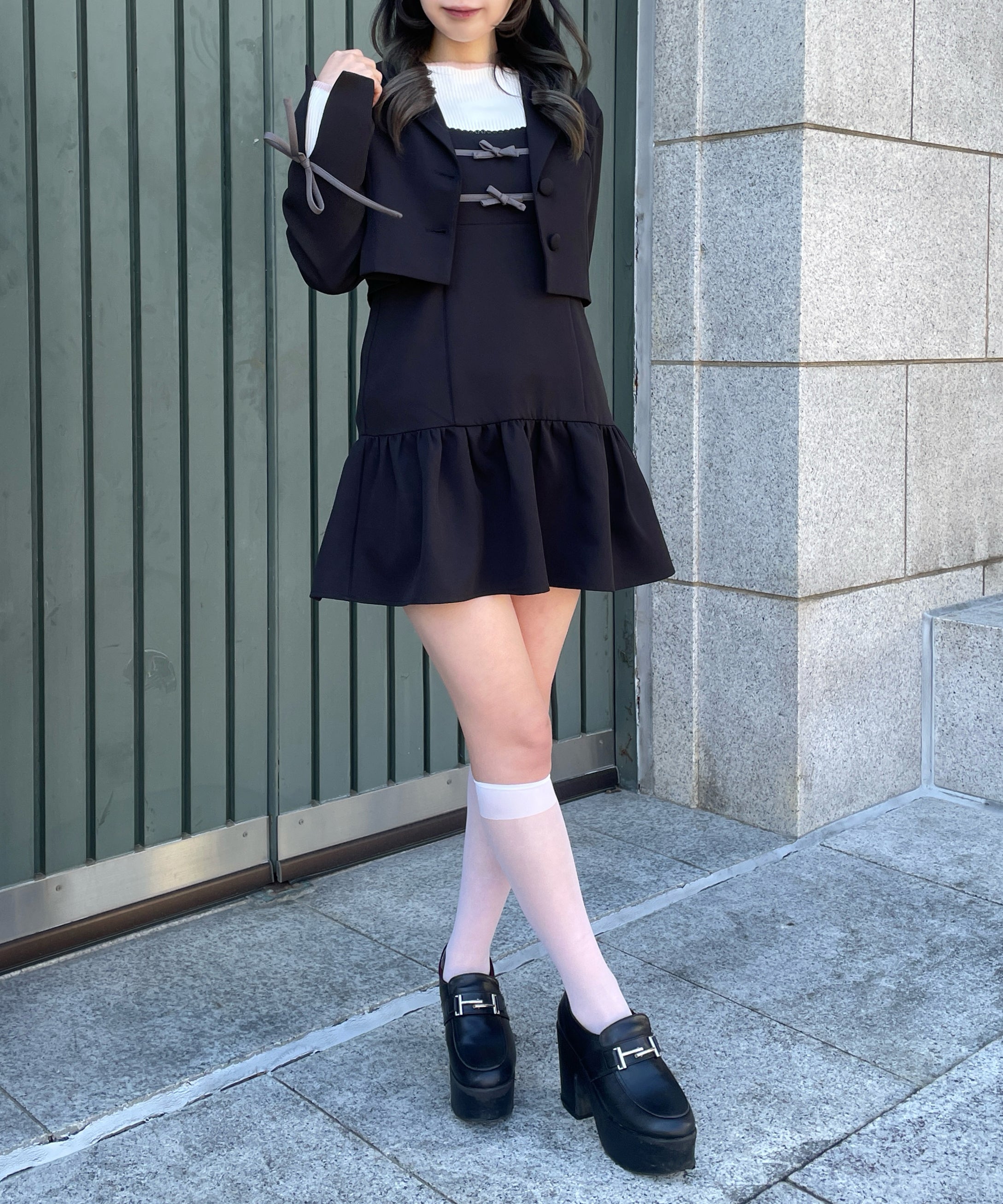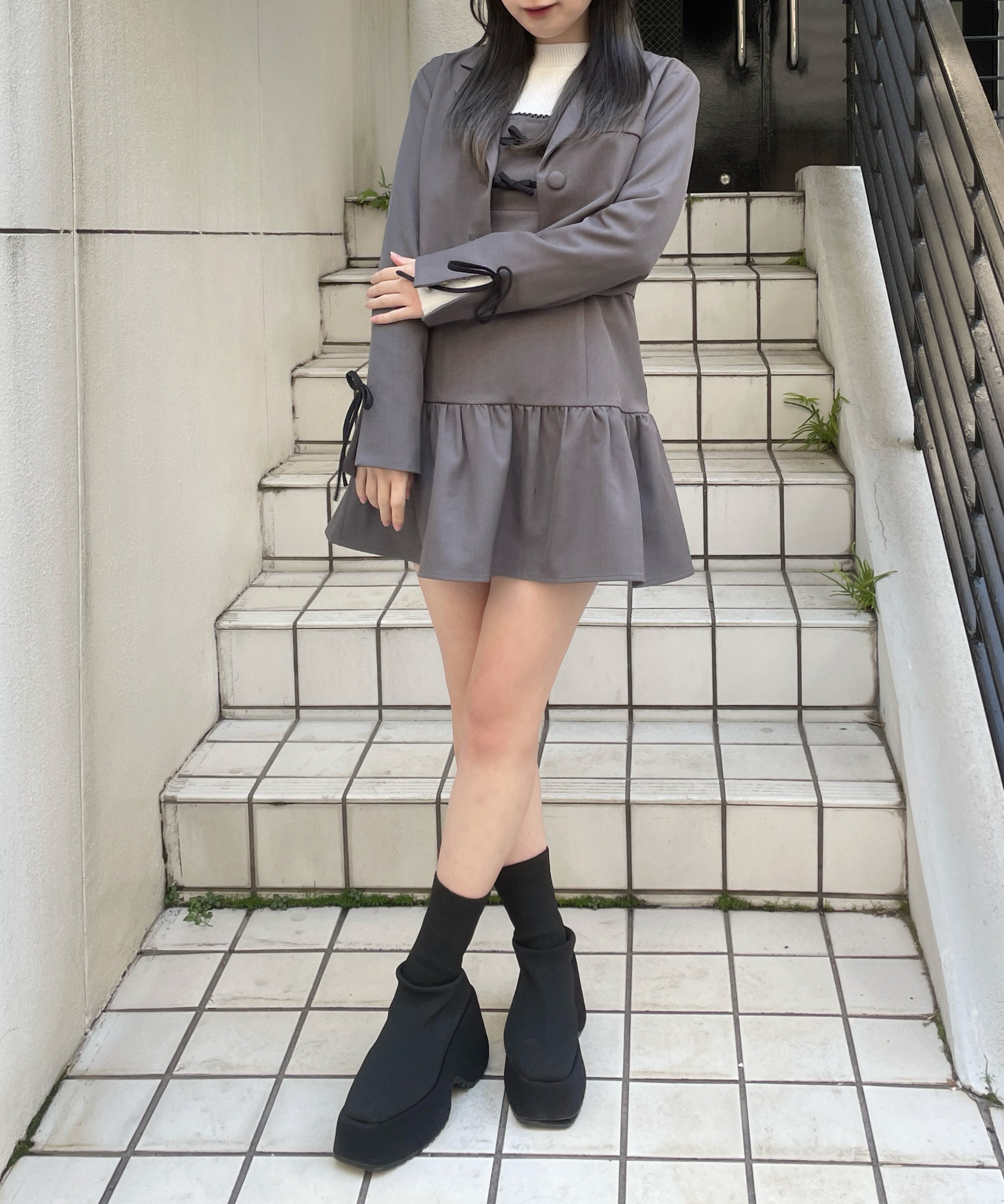 ・足元はローファーを合わせてかっちりした印象にも、ブーツを合わせて大人っぽくも着ていただけます◎