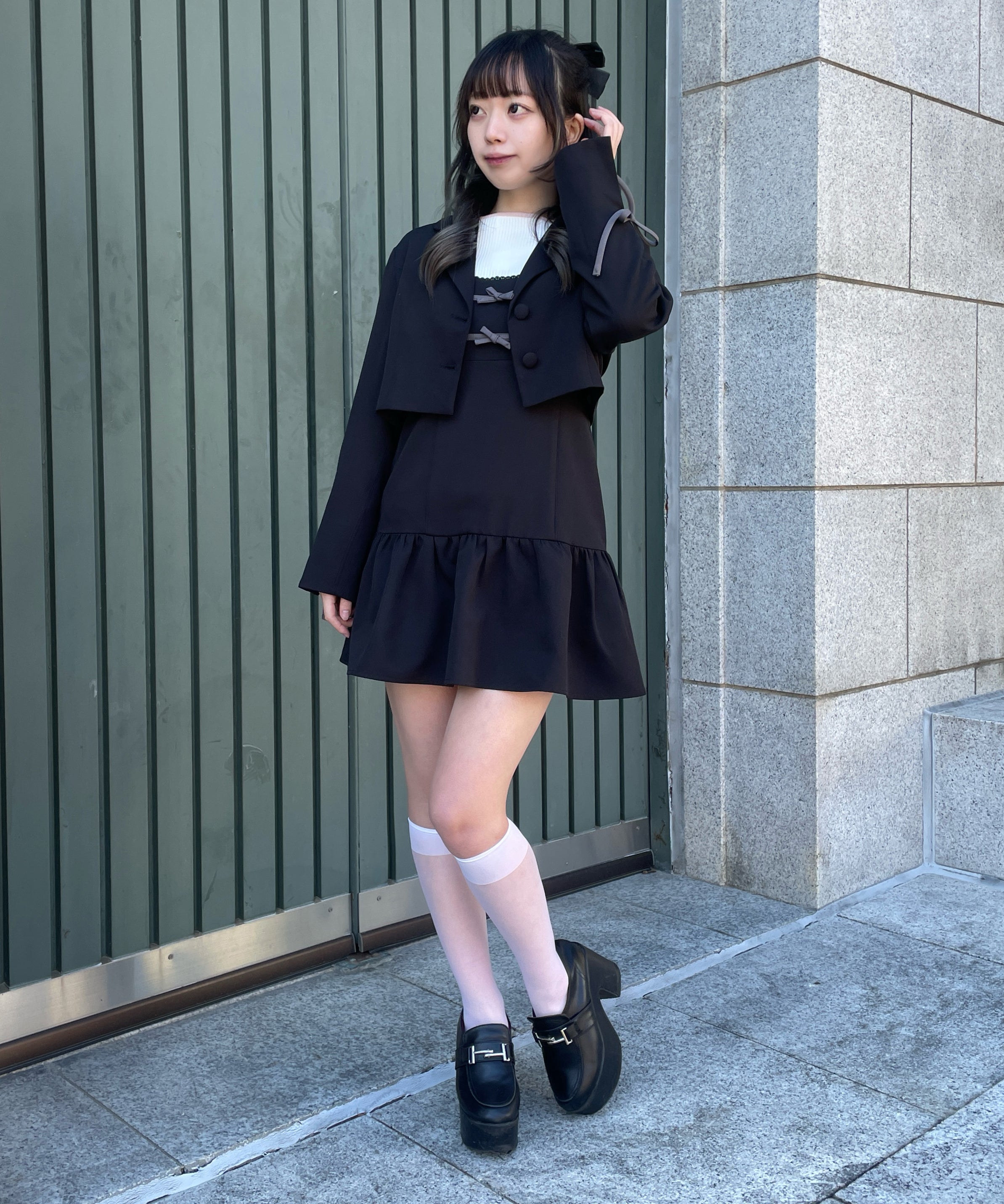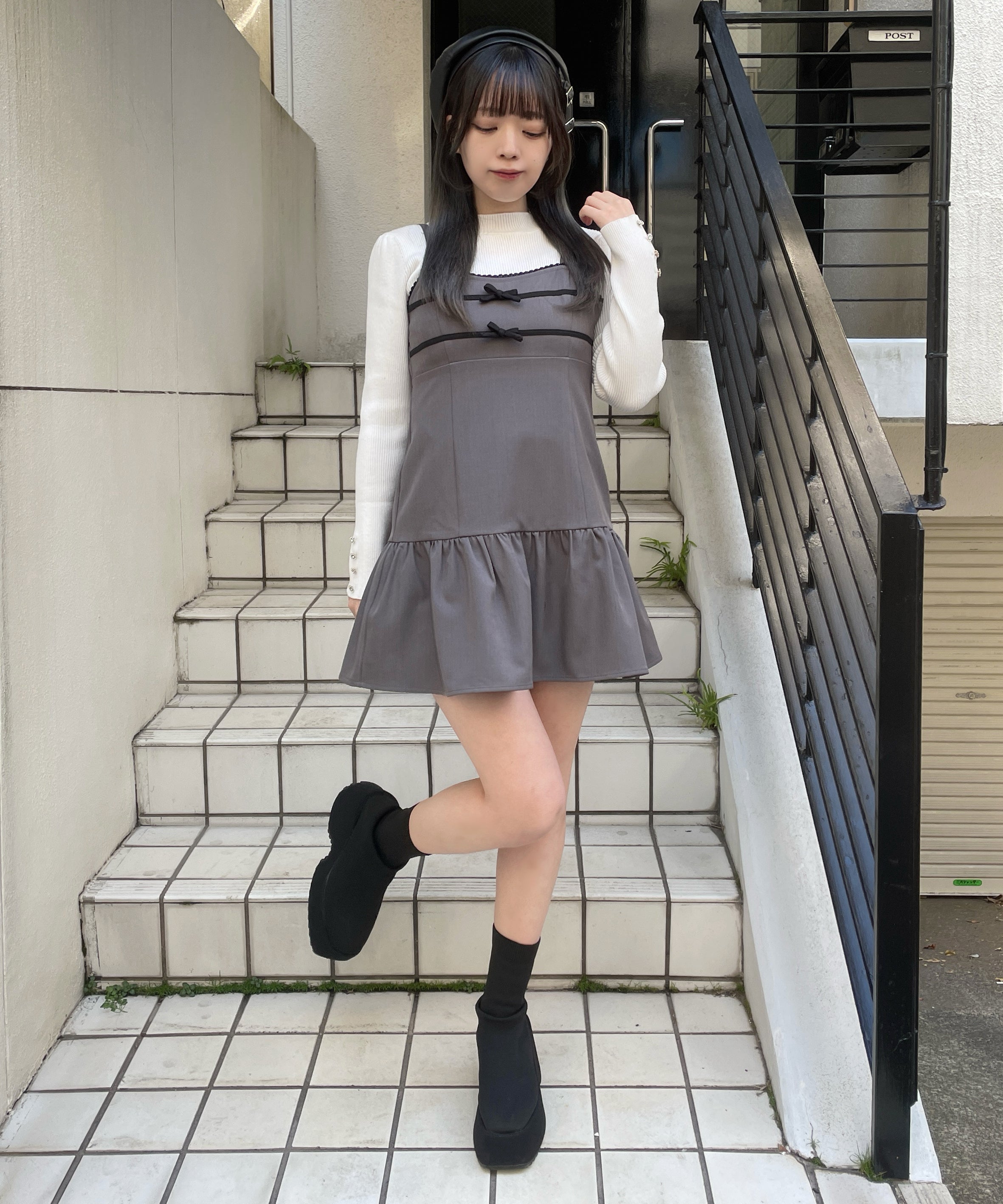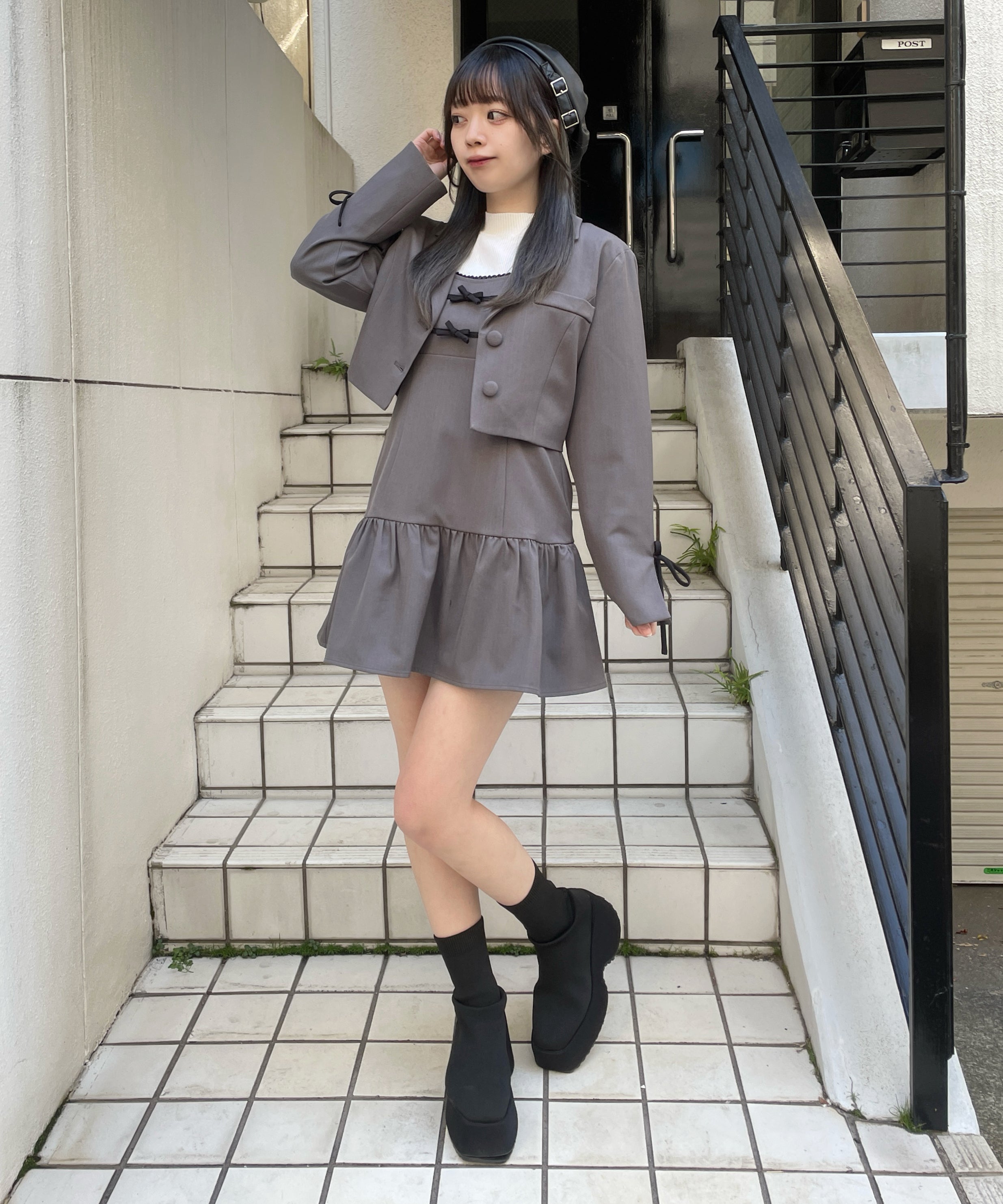 ・足元はローファーを合わせてかっちりした印象にも、ブーツを合わせて大人っぽくも着ていただけます◎
