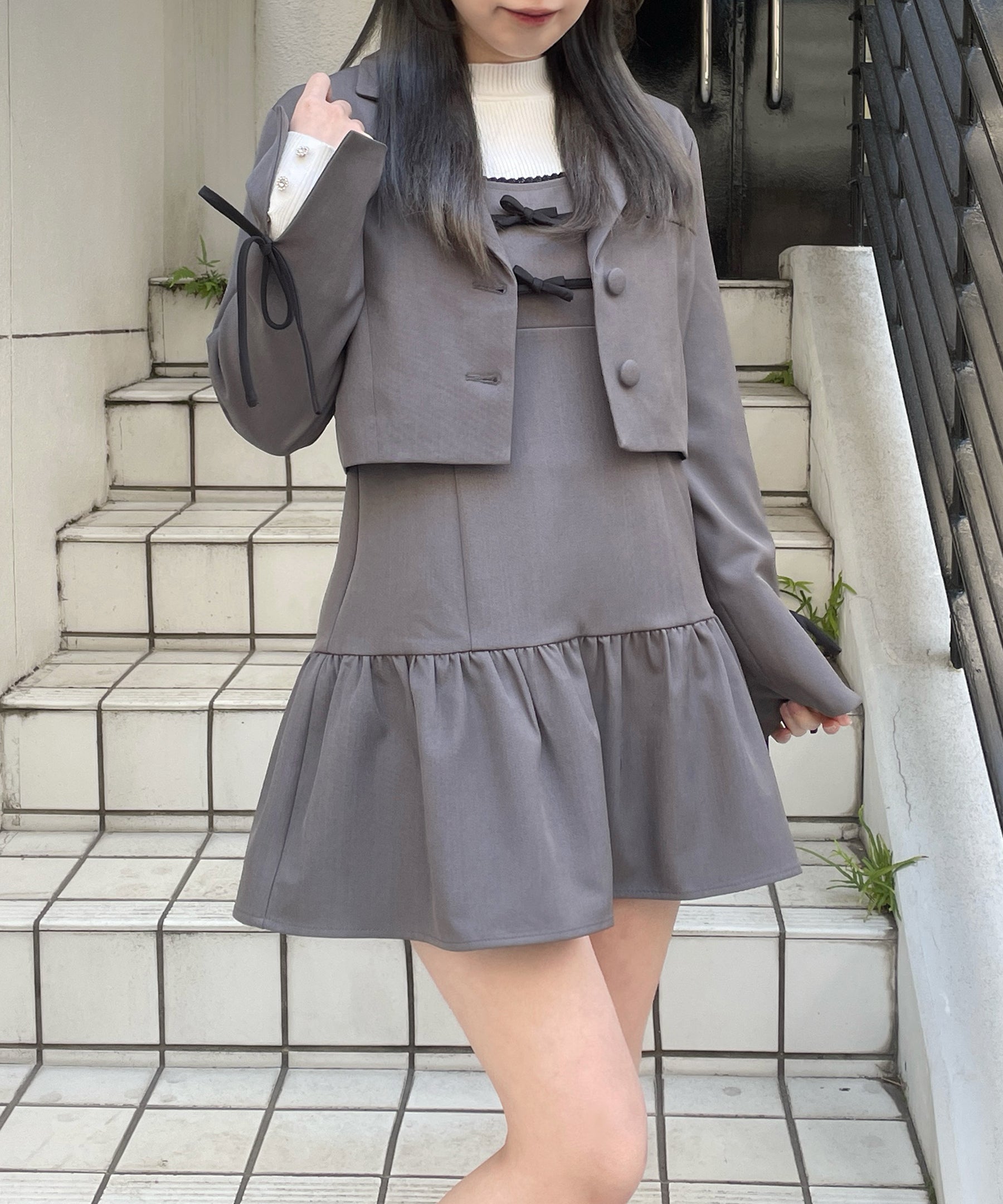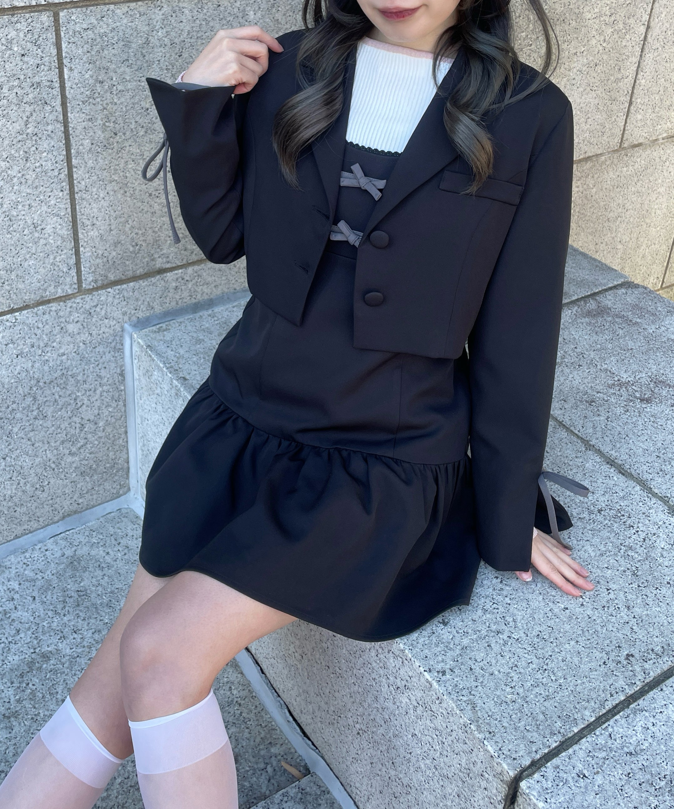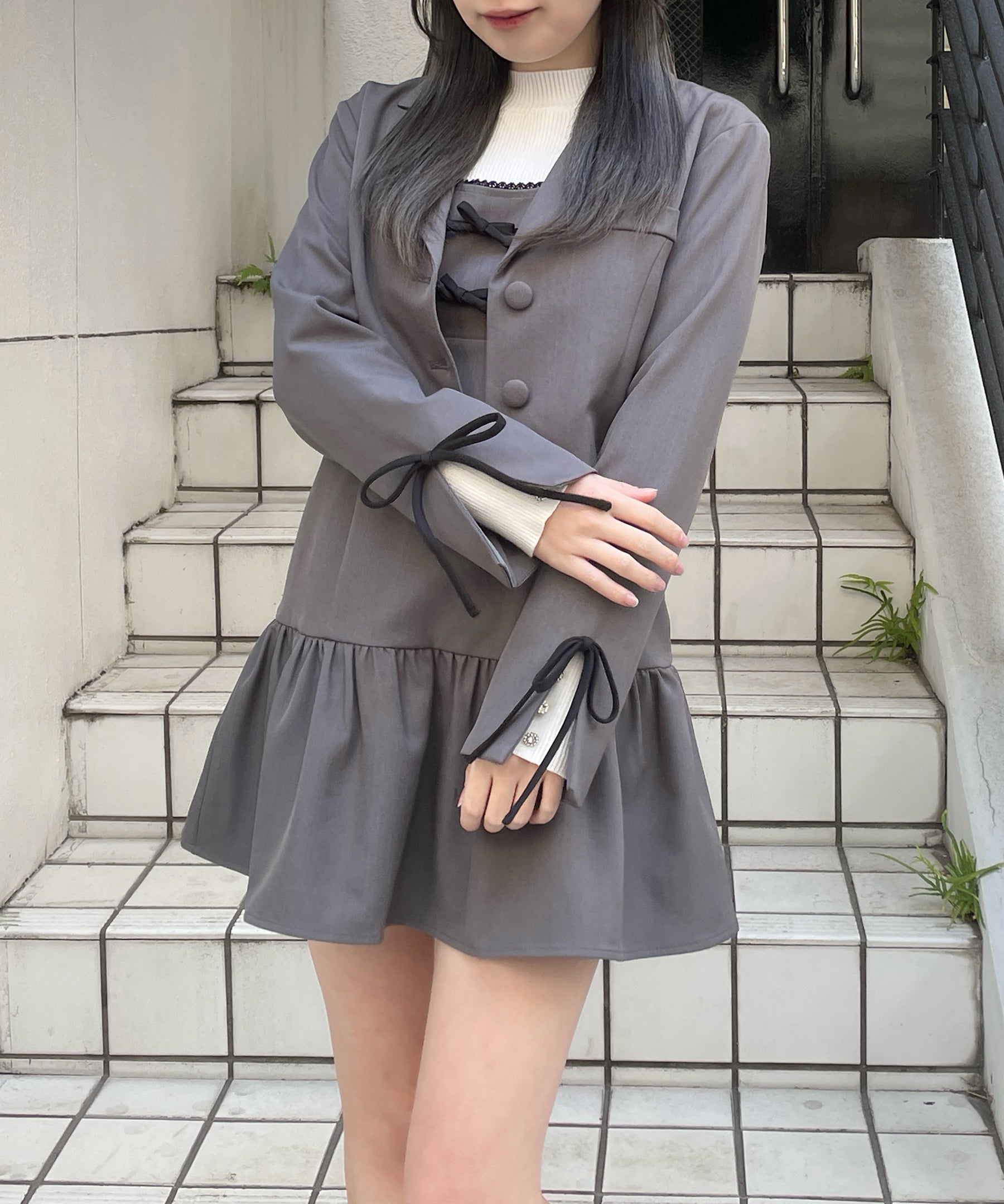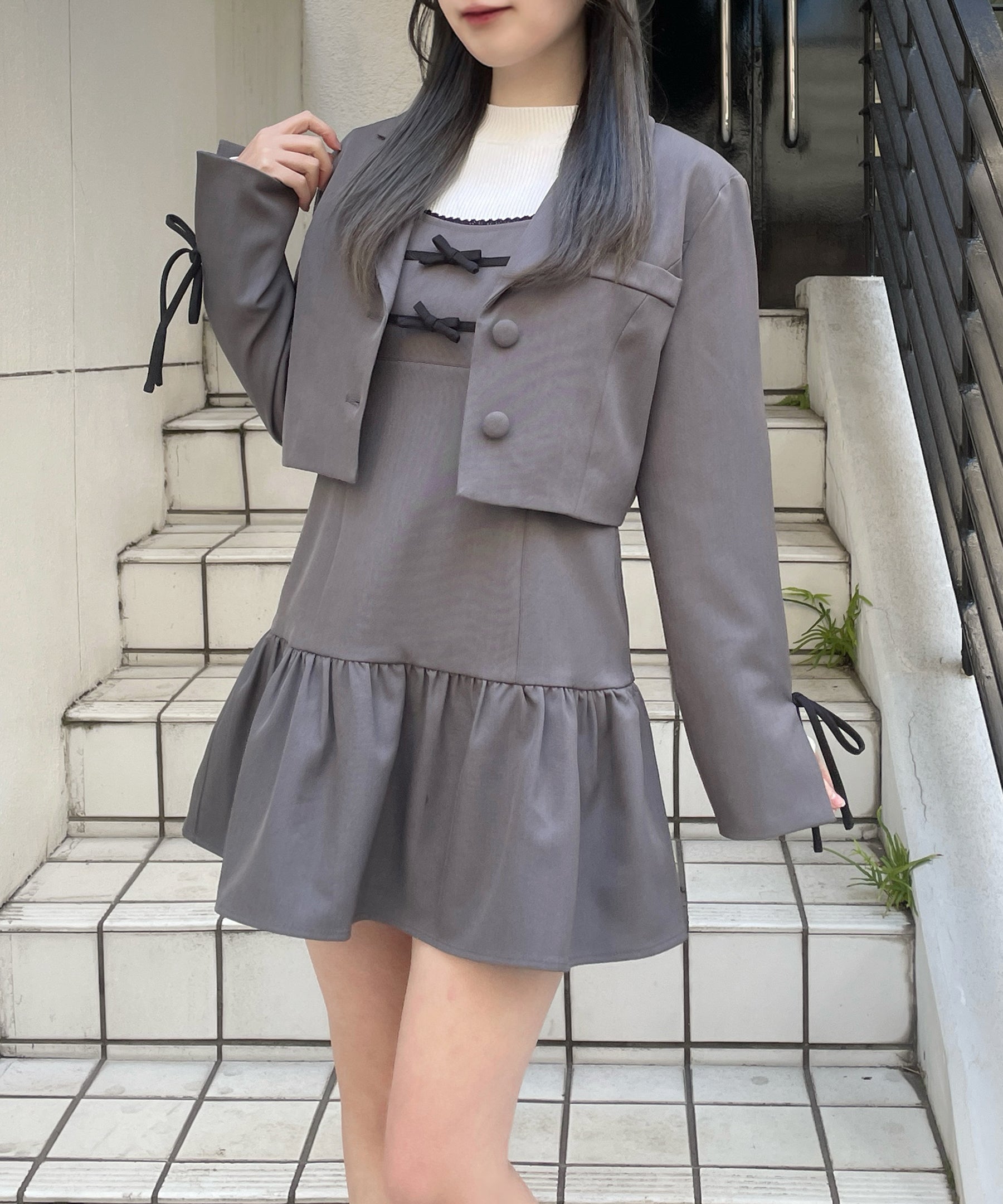 ・胸元と袖のリボンがガーリーなセットアップ♡
