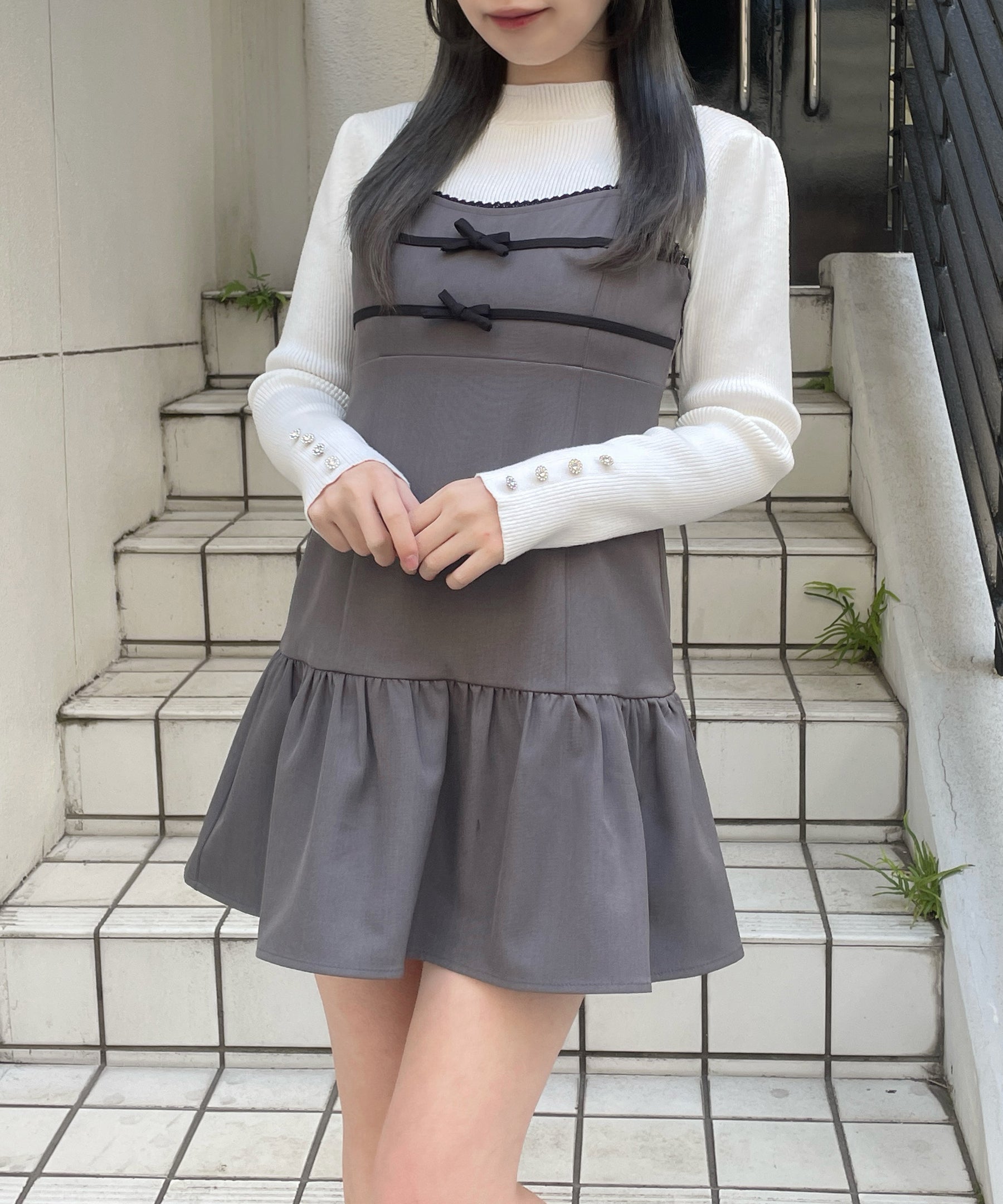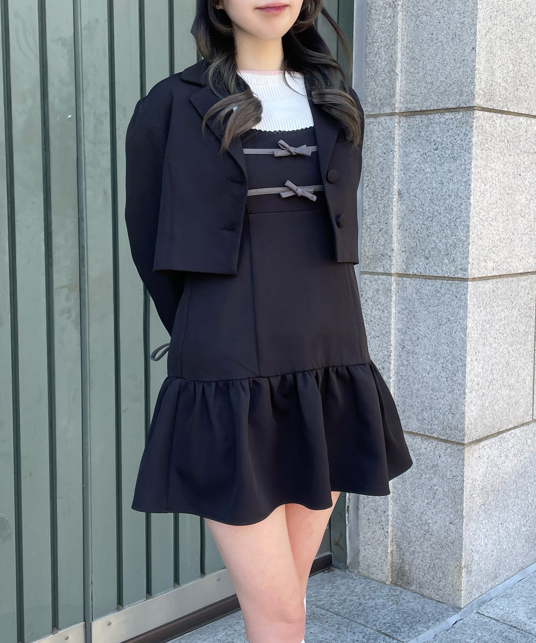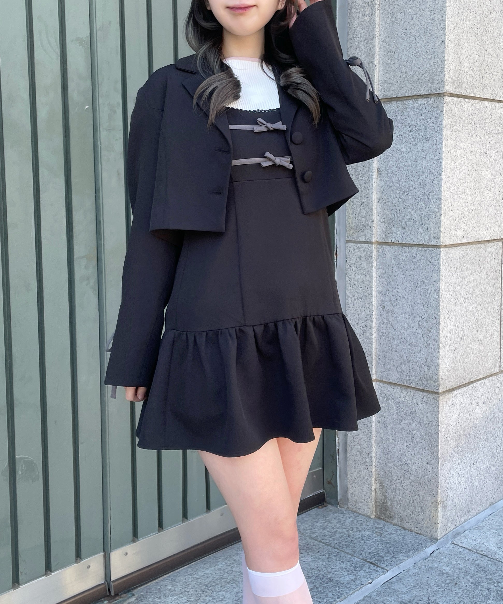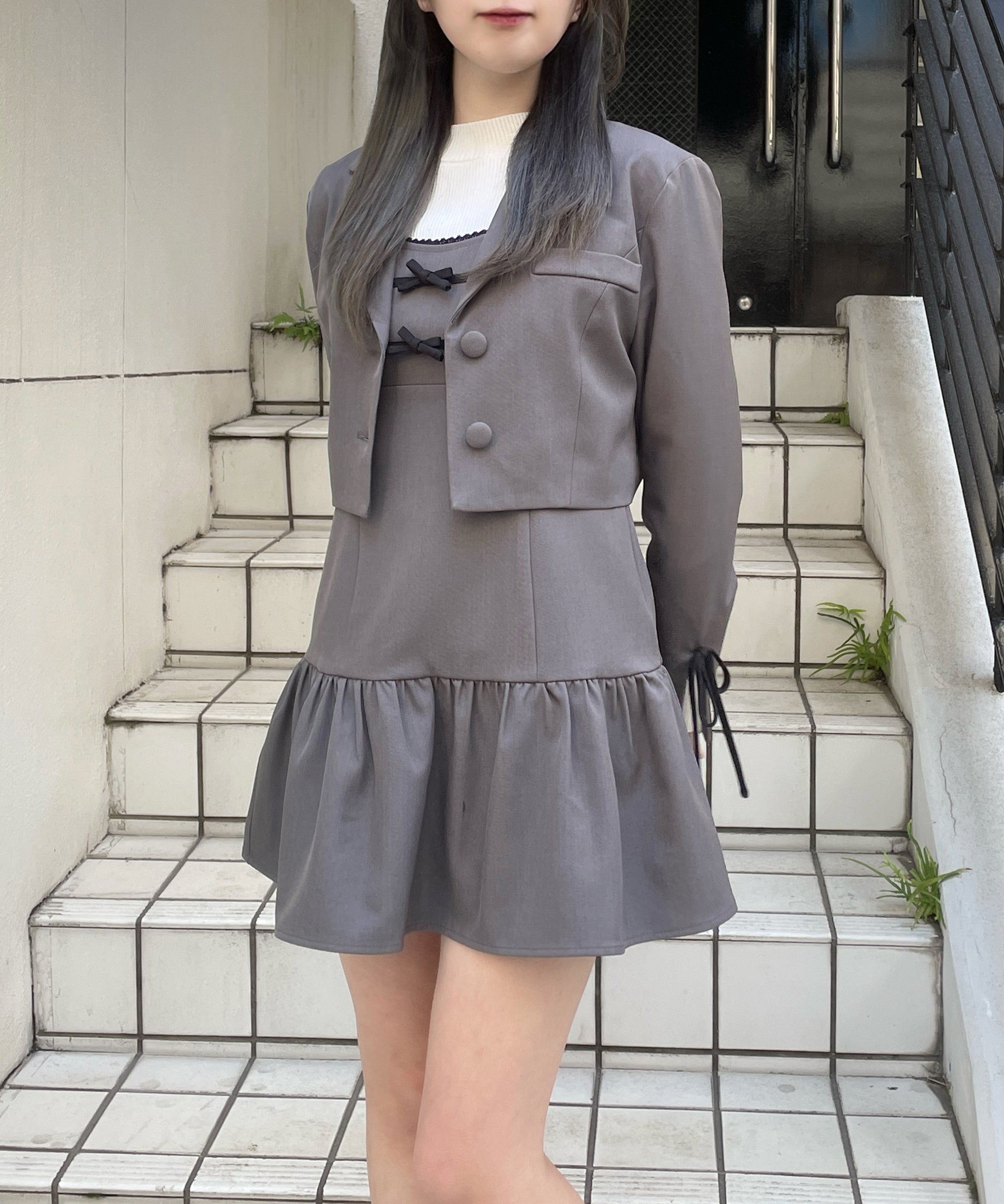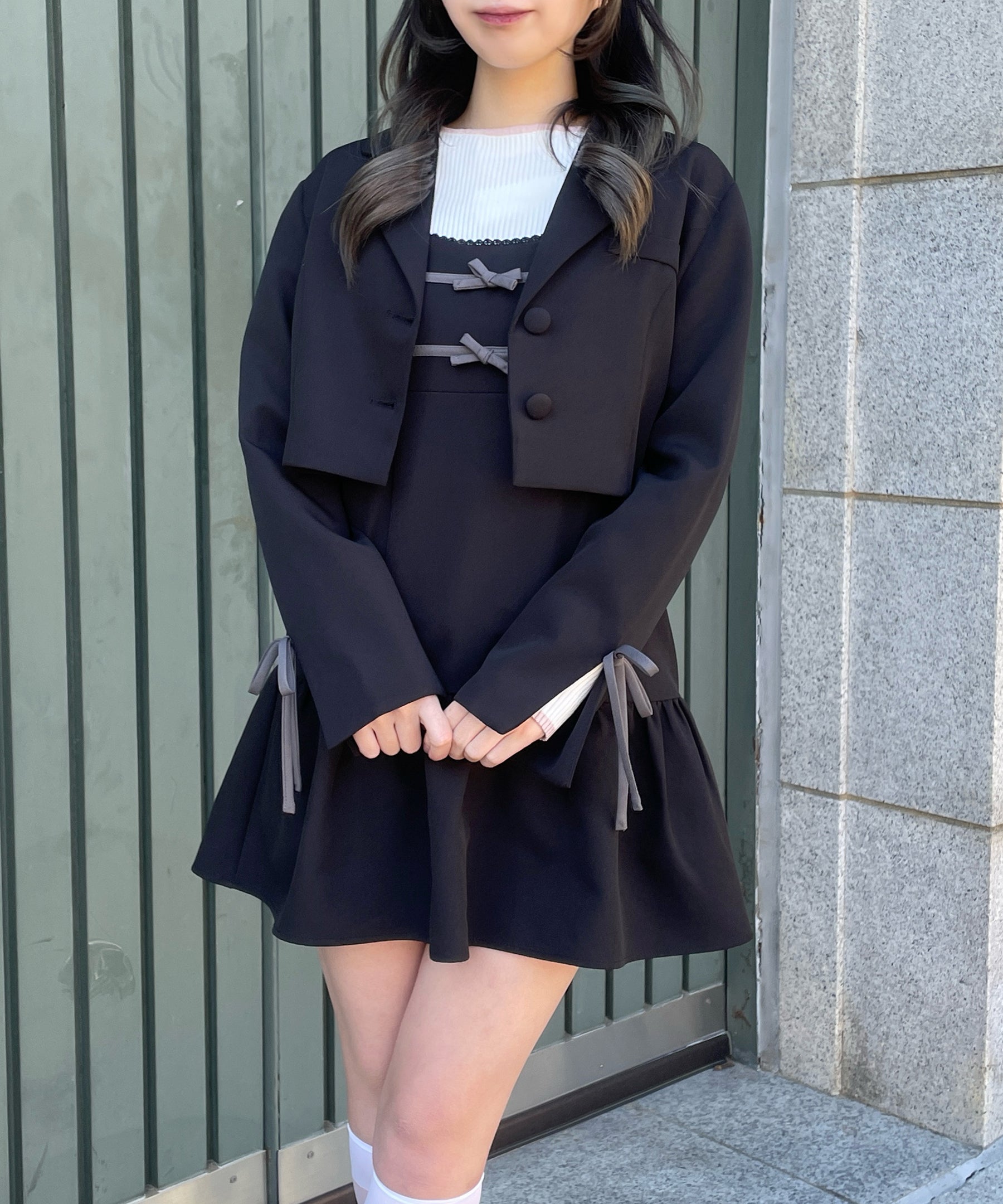 ・胸元と袖のリボンがガーリーなセットアップ♡