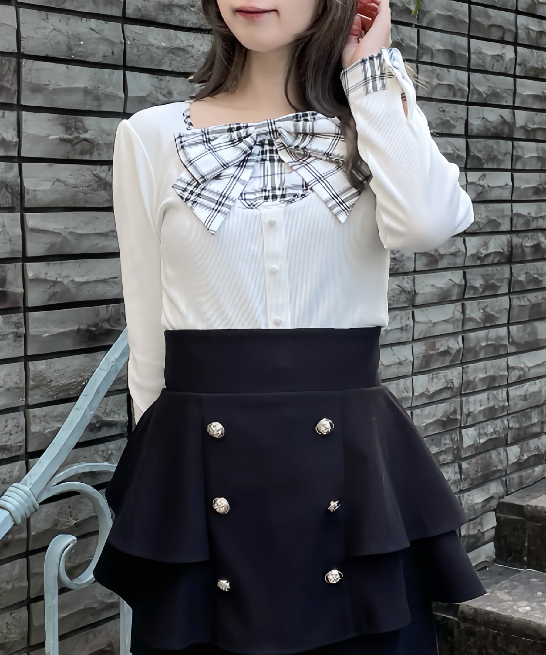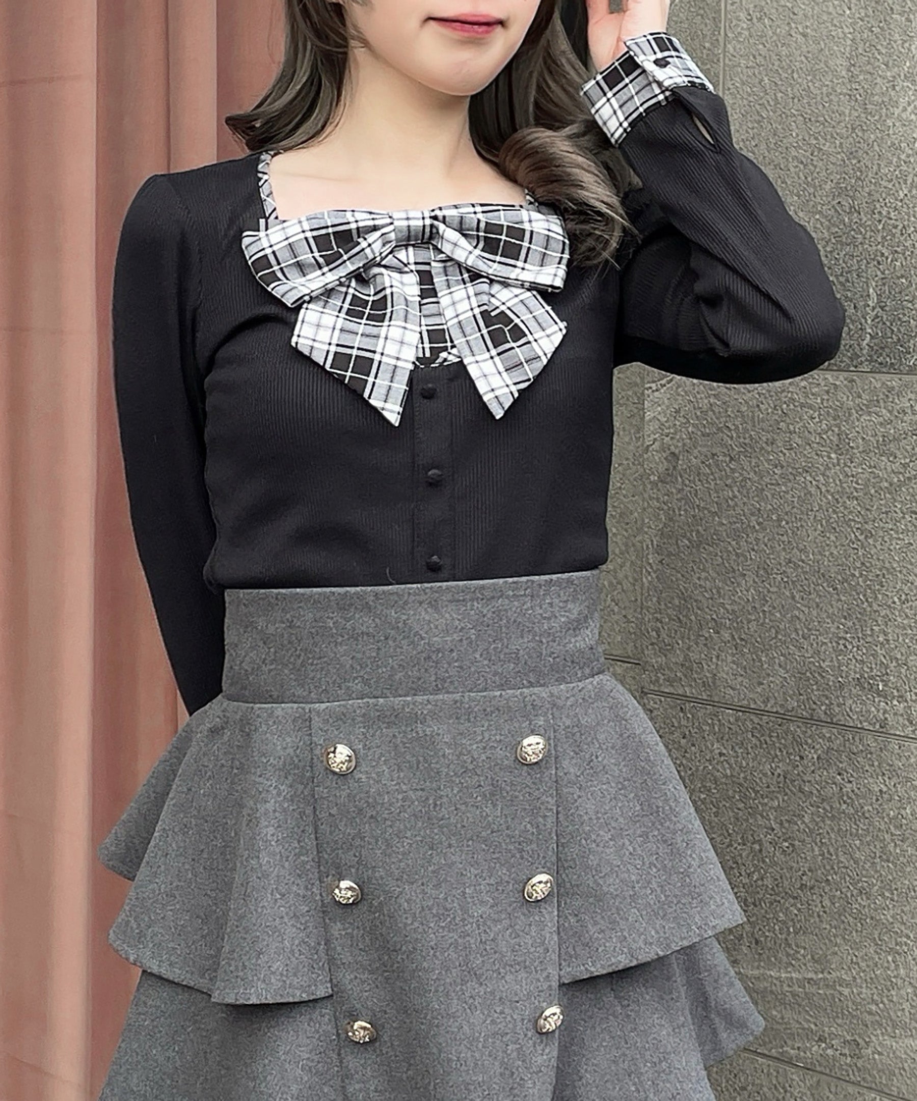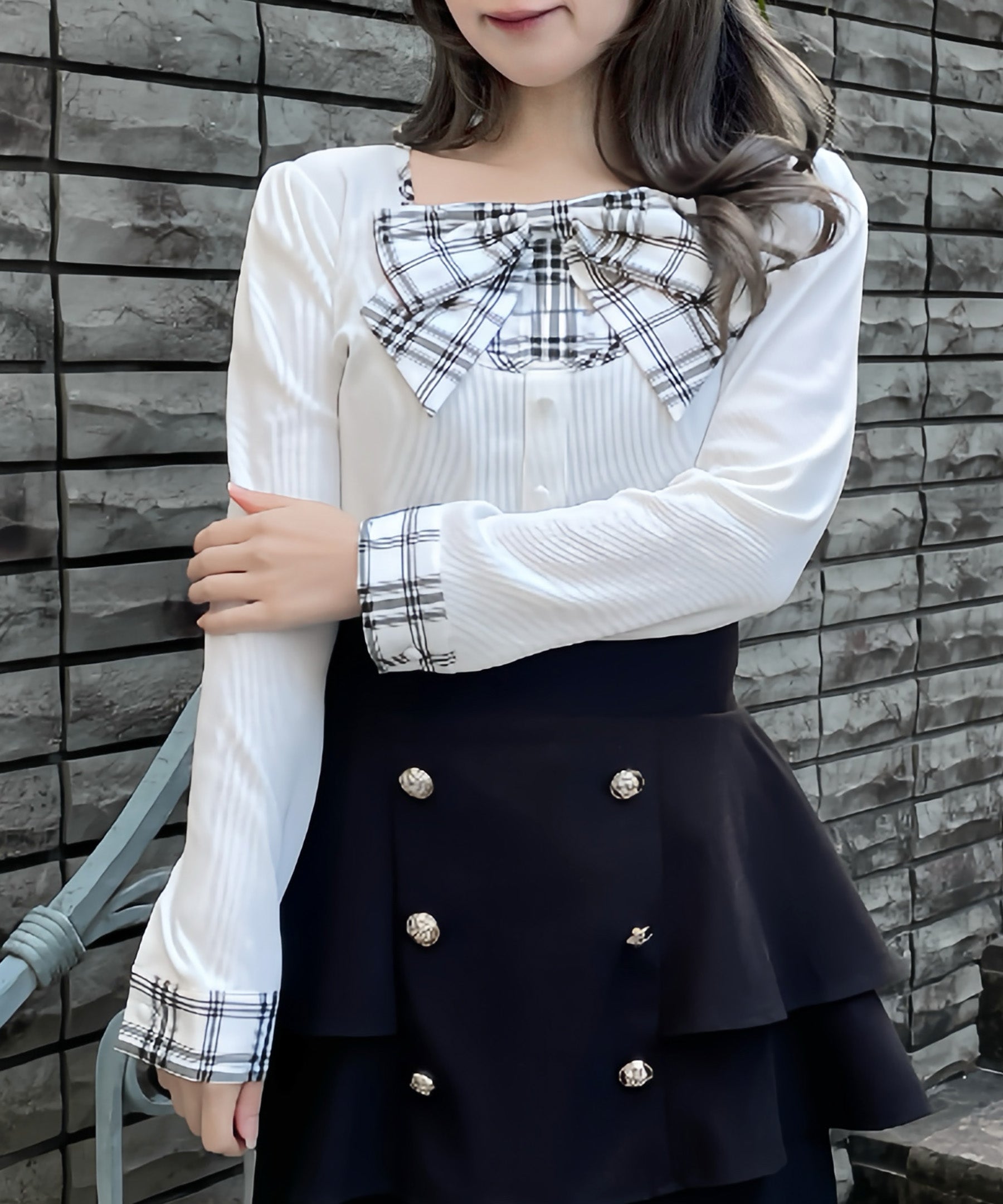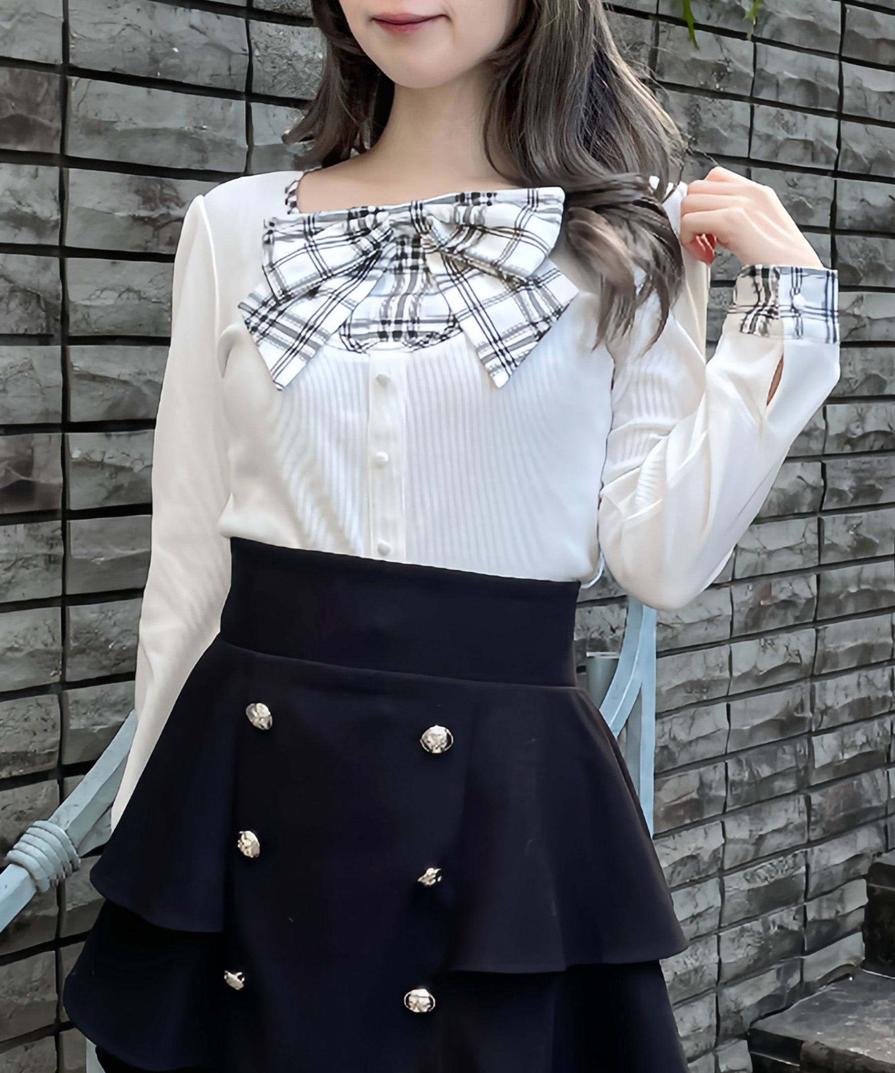 ・存在感たっぷりなリボンが視線を惹きつけるガーリーな印象のトップス♡