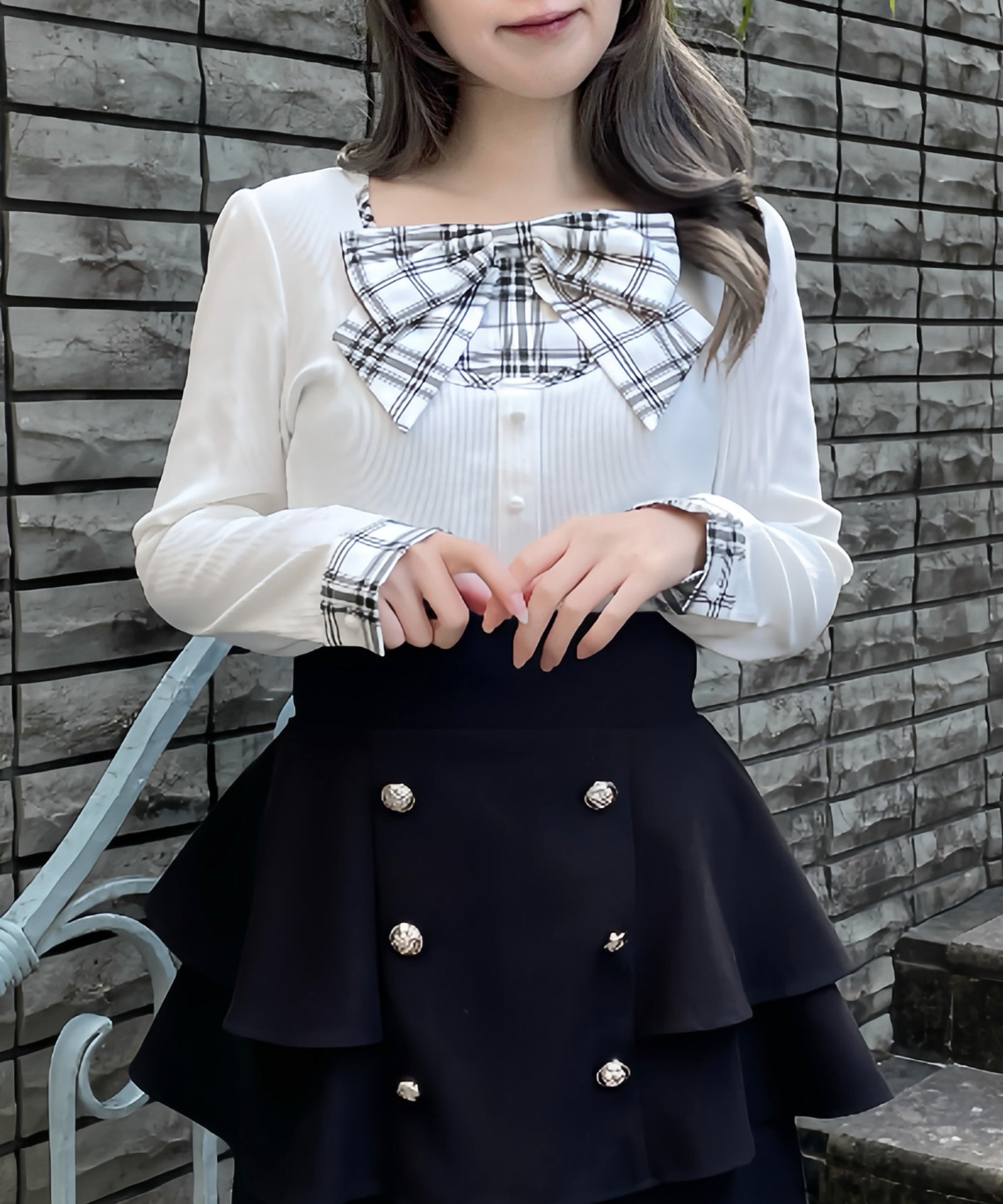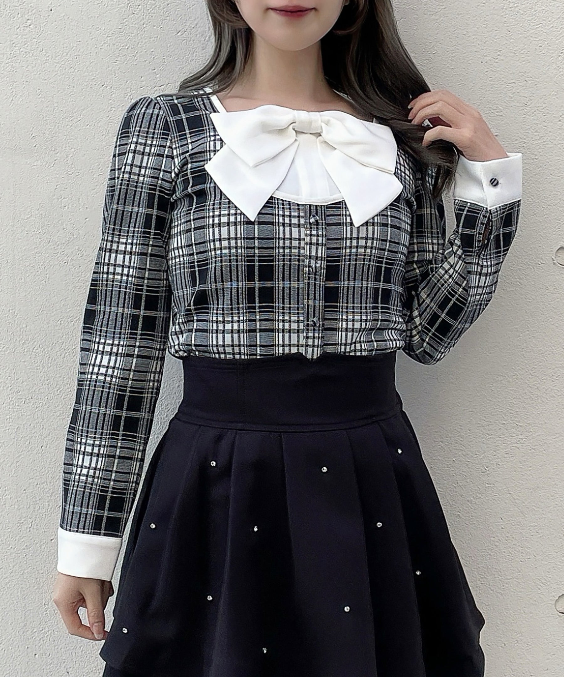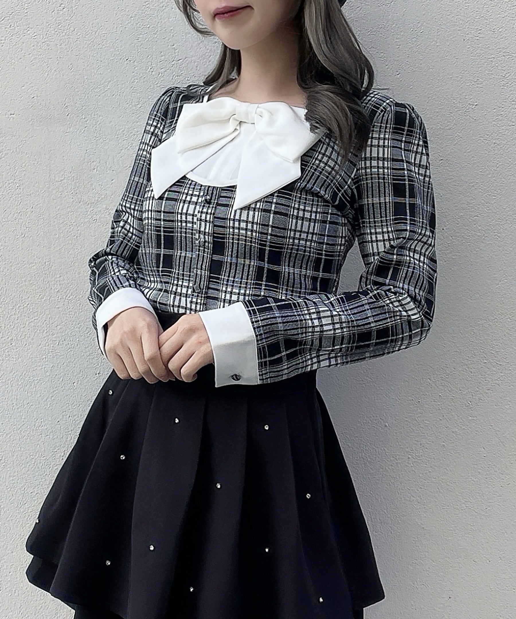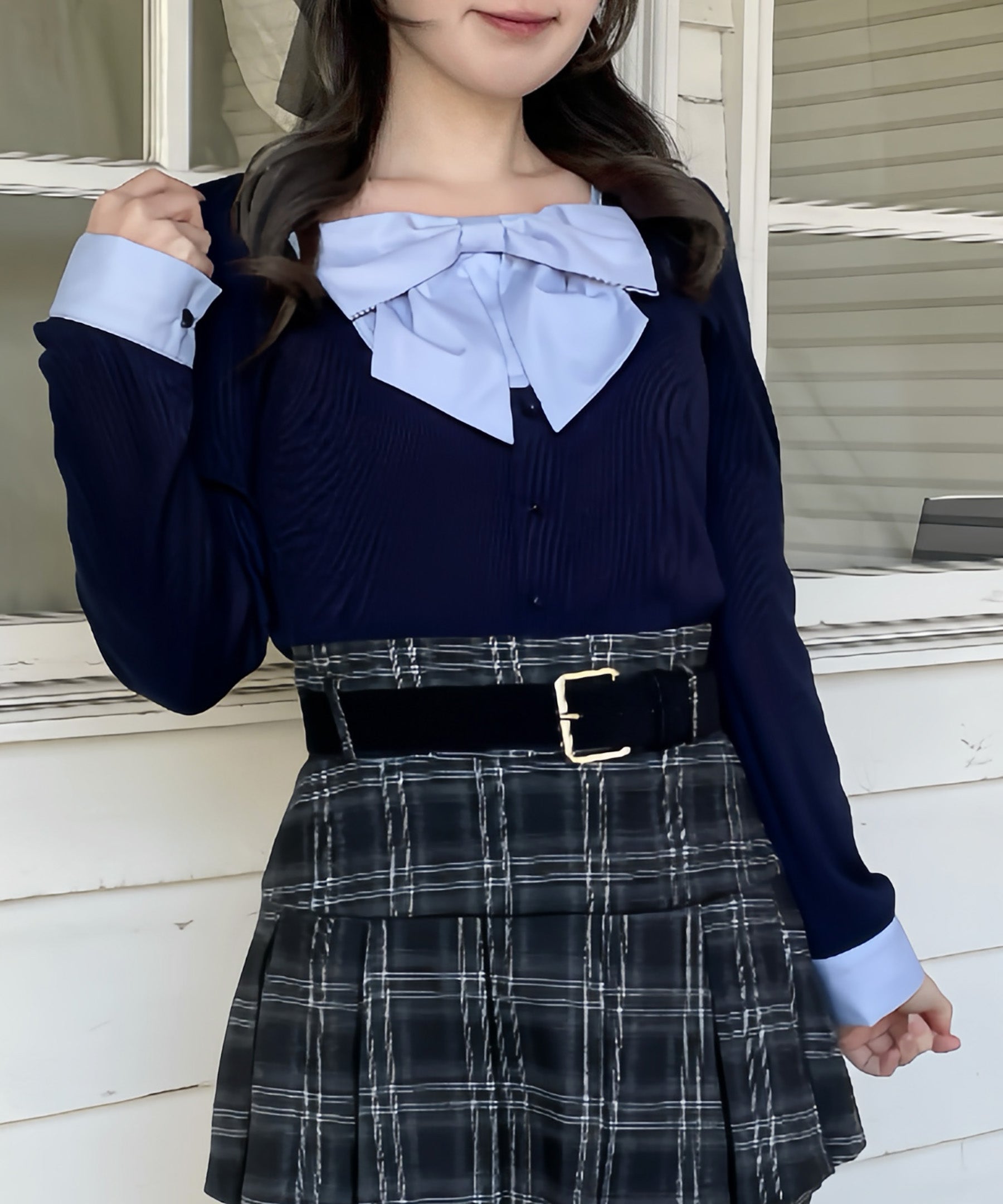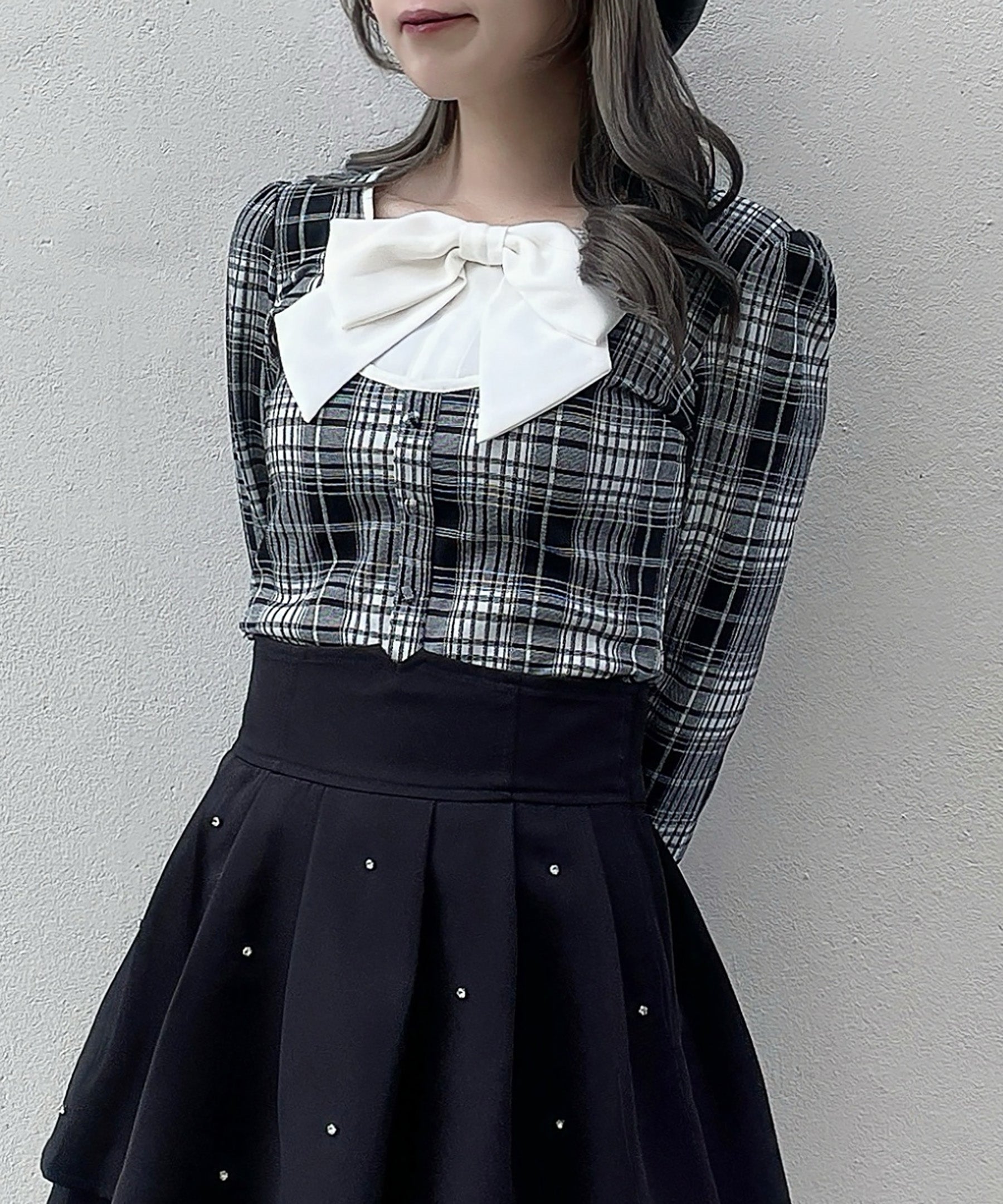 ・存在感たっぷりなリボンが視線を惹きつけるガーリーな印象のトップス♡