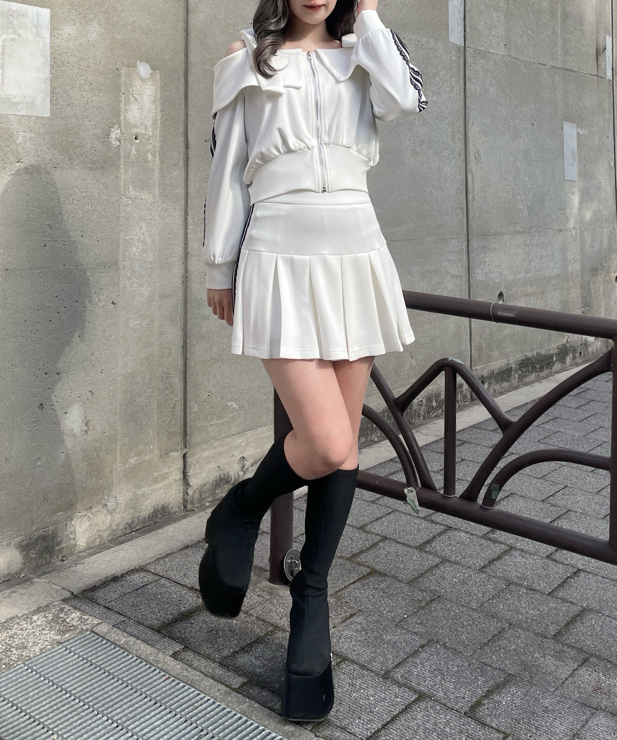 ・オフショルでさりげない肌見せが大人かわいいのセットアップ♡