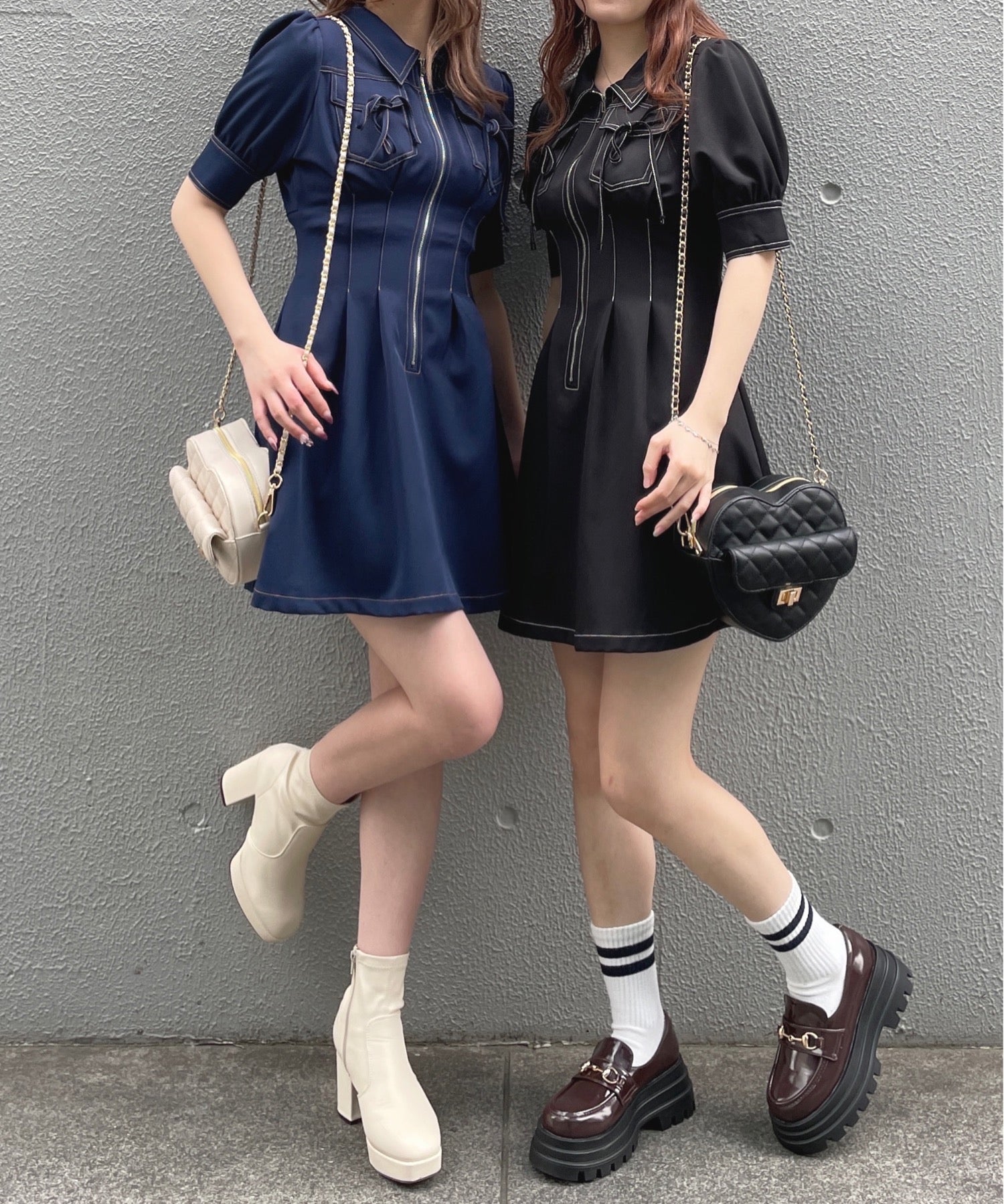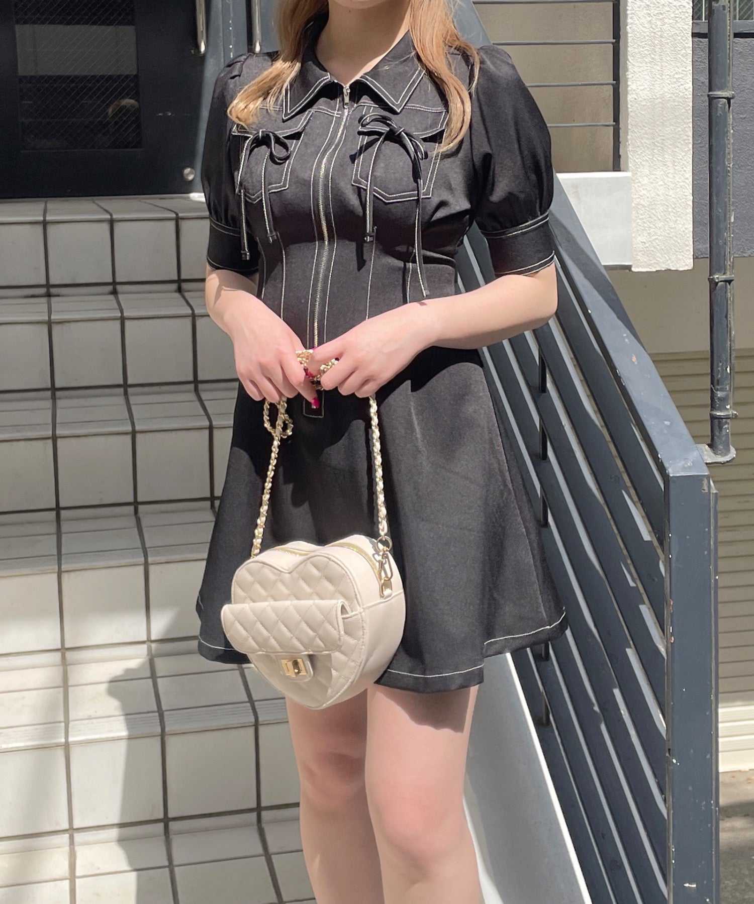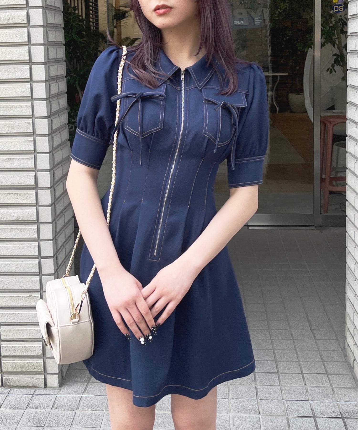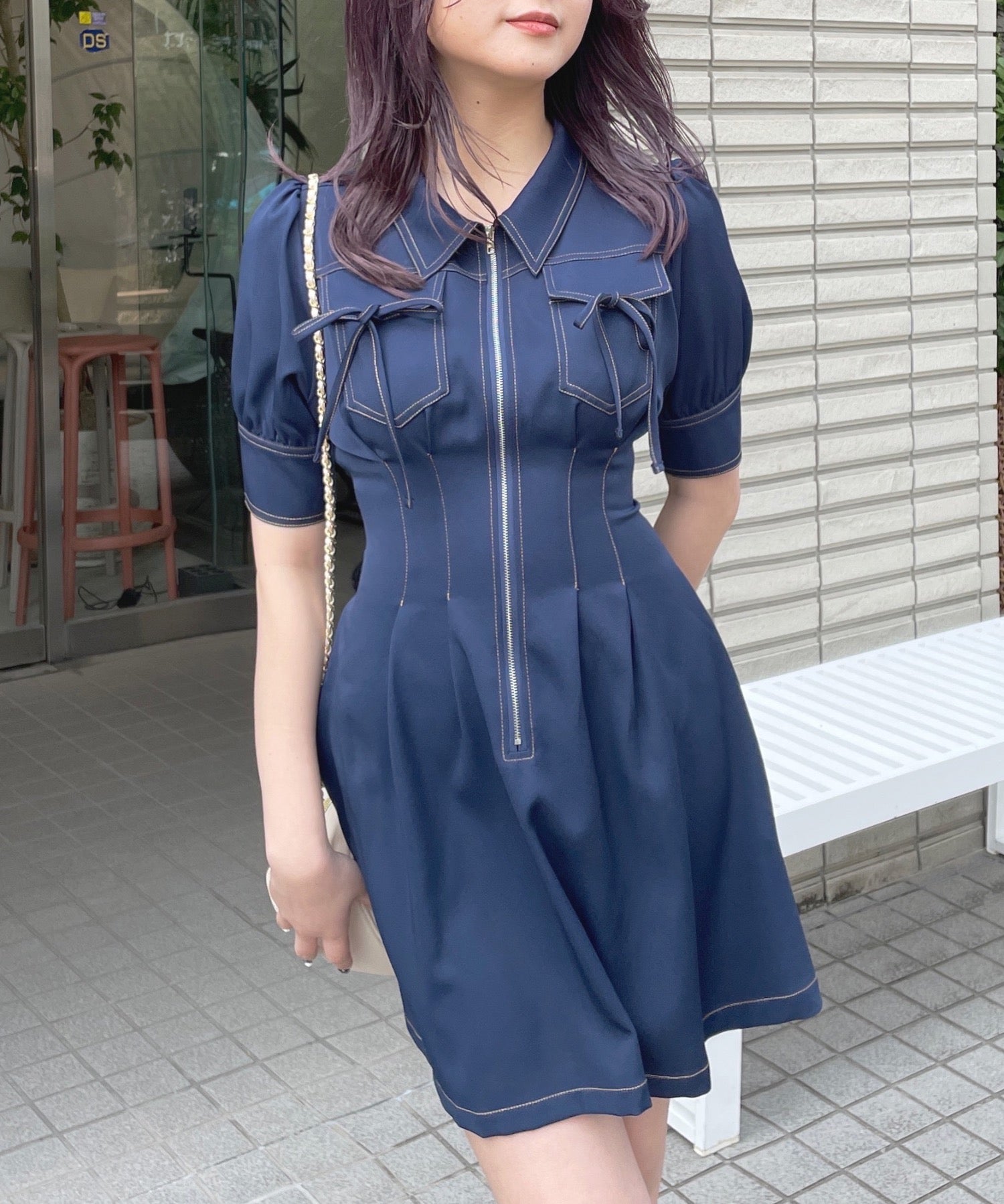 ・フロントのメタルジップが甘くなりすぎないリボンデザインのワンピースが登場♪