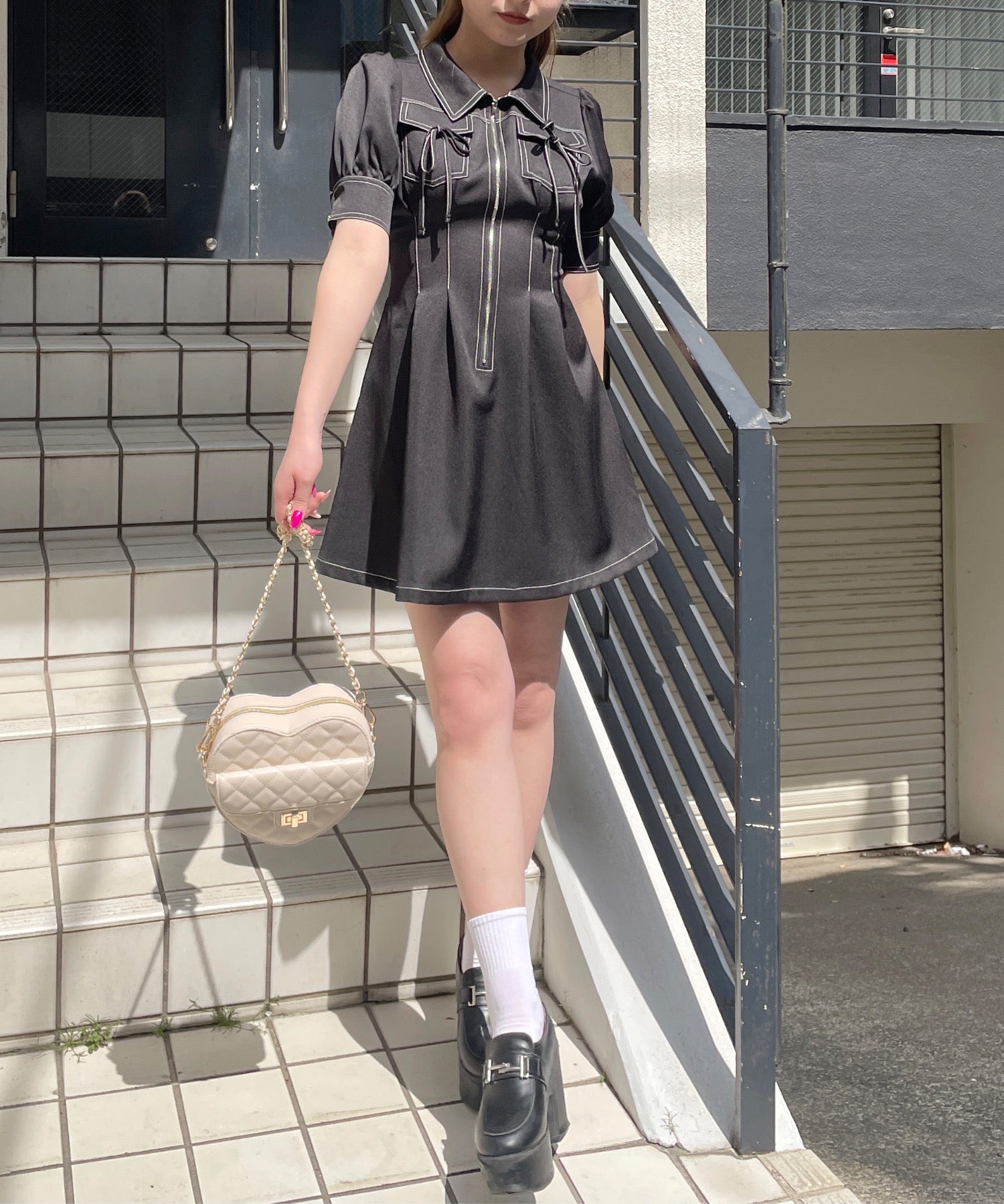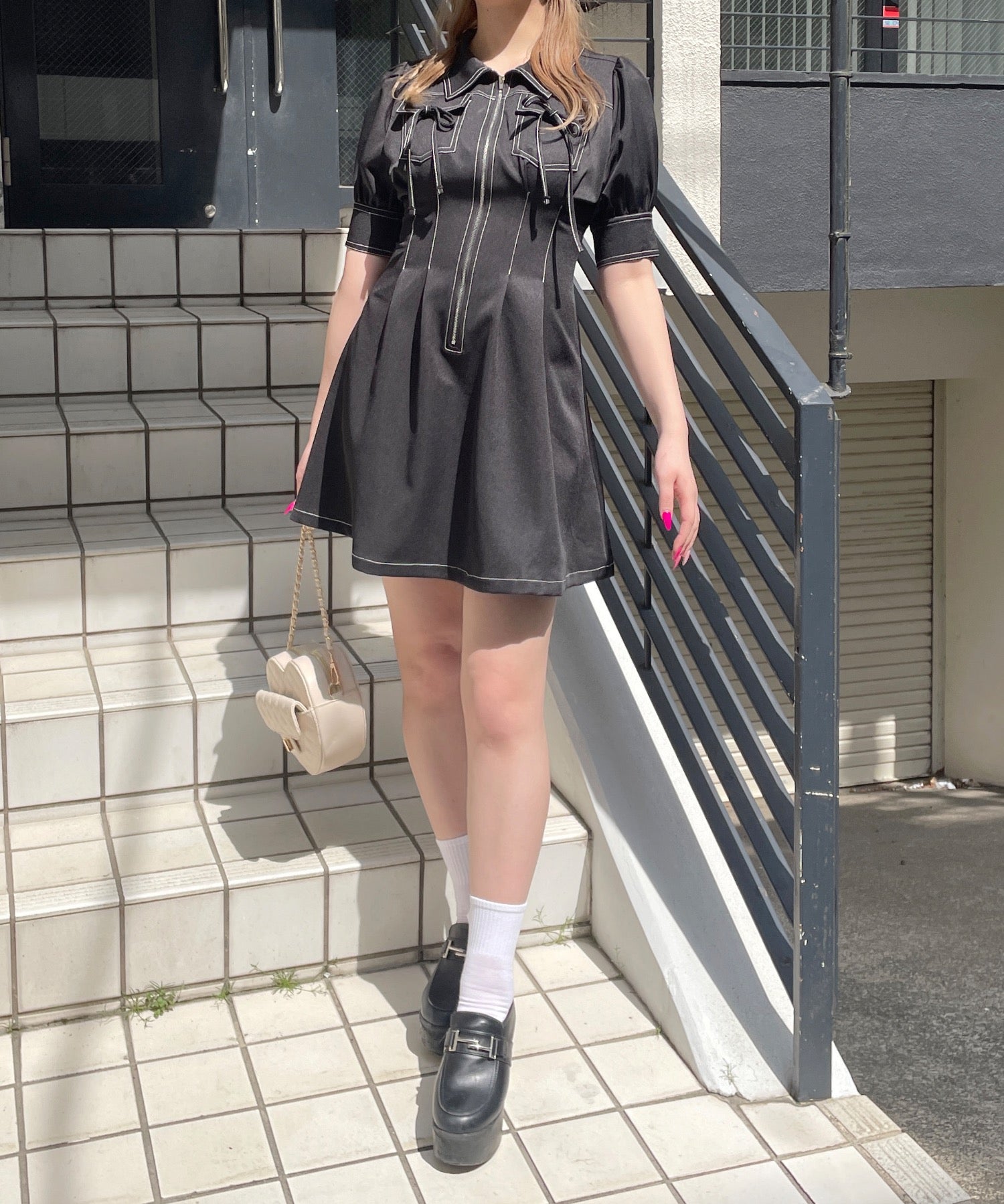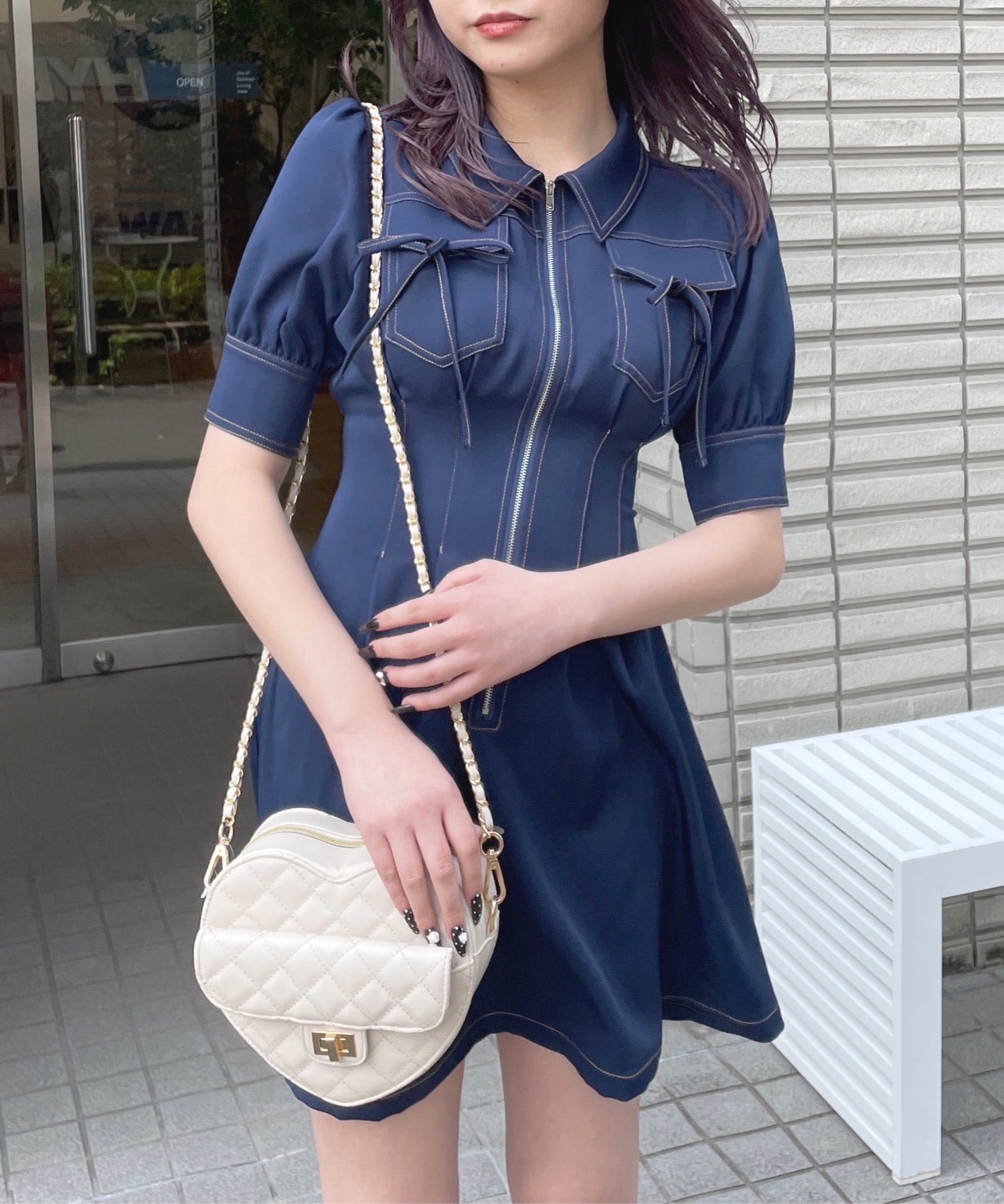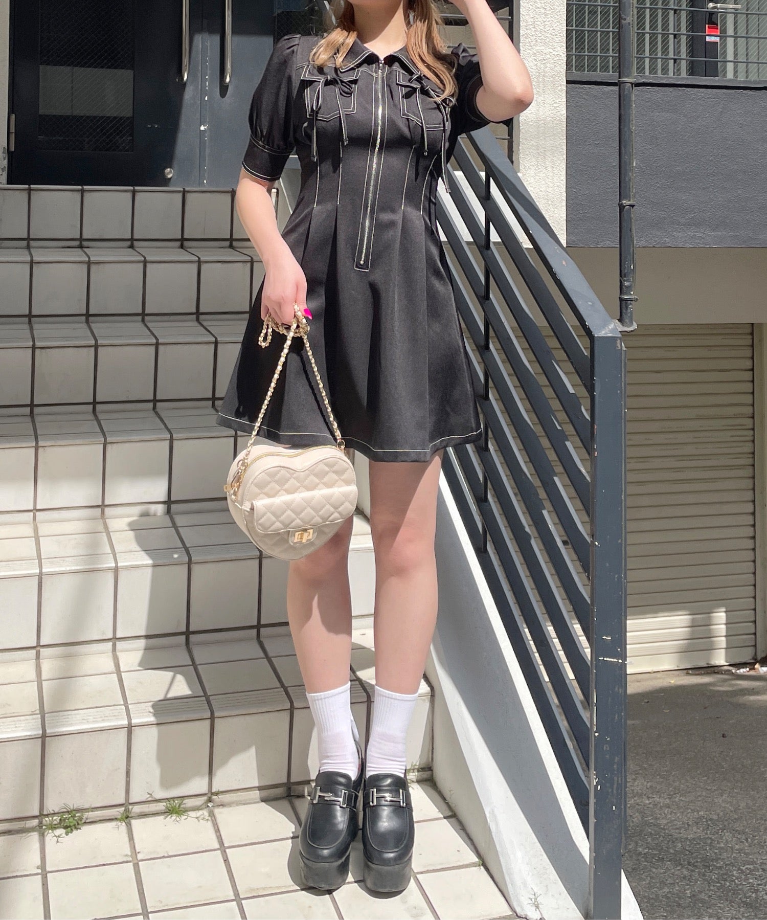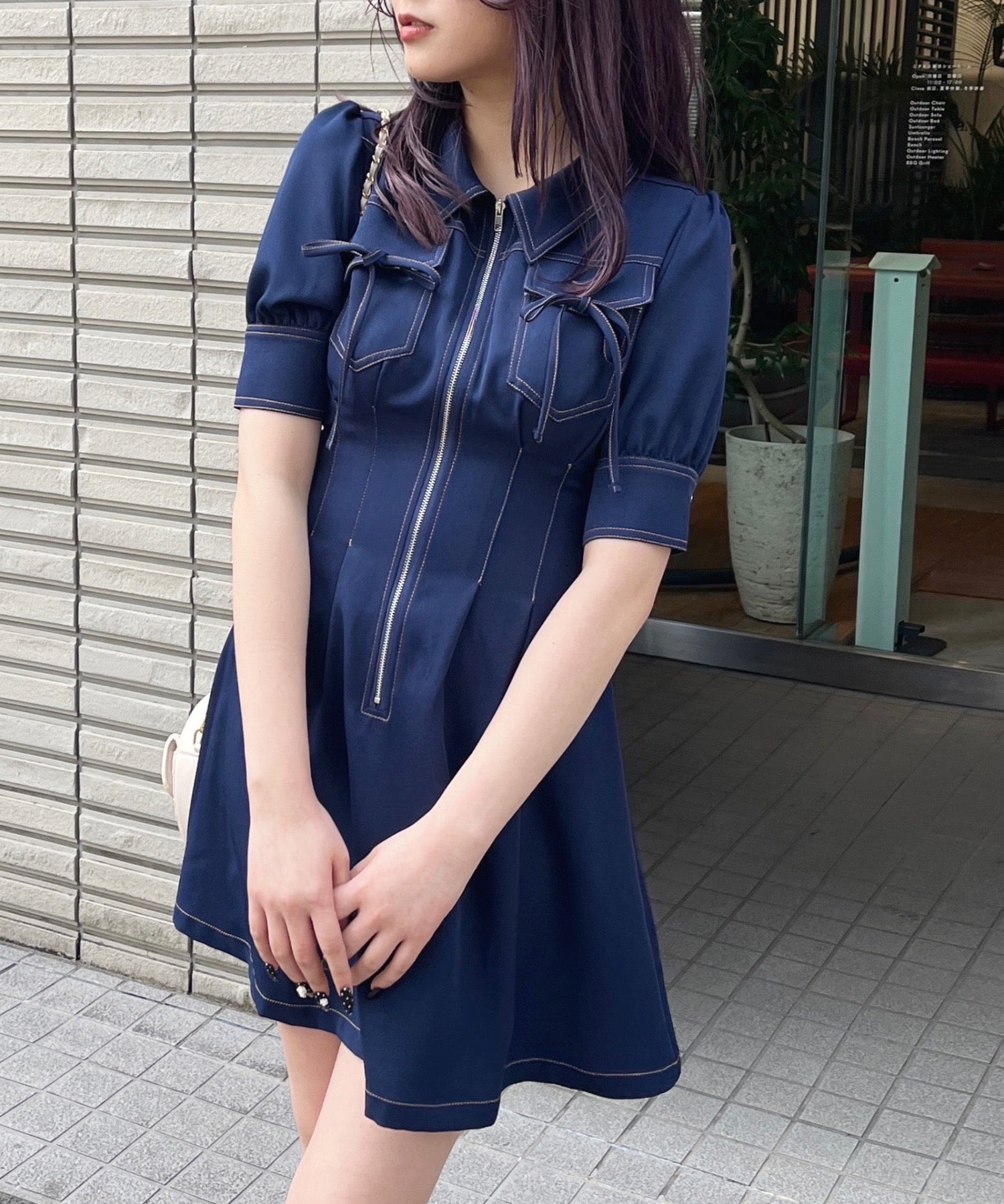 ・フロントのメタルジップが甘くなりすぎないリボンデザインのワンピースが登場♪
