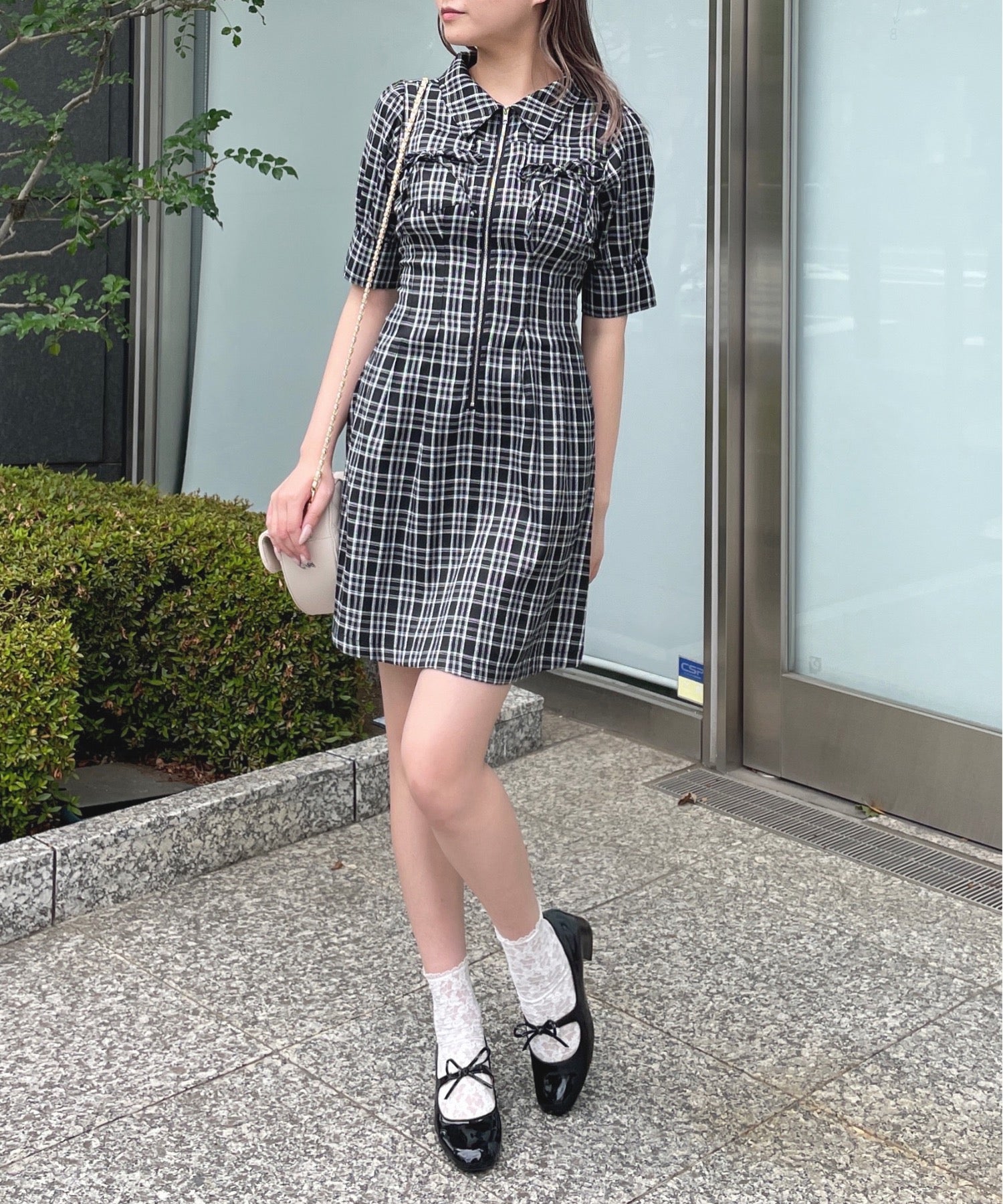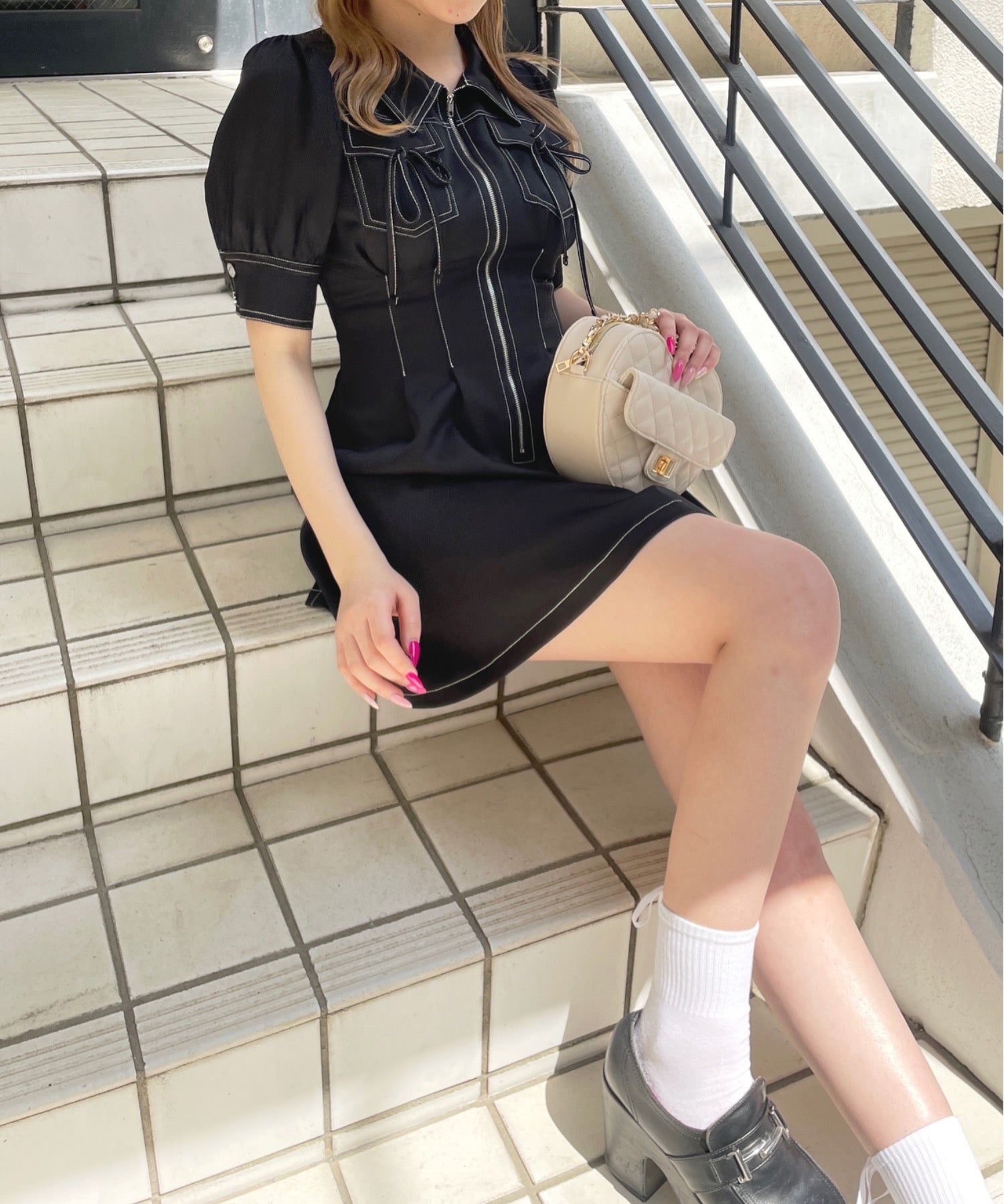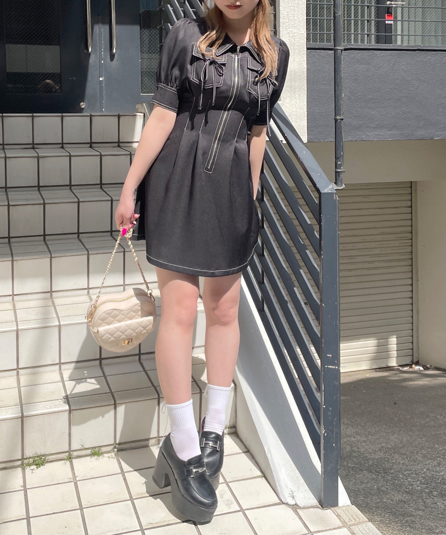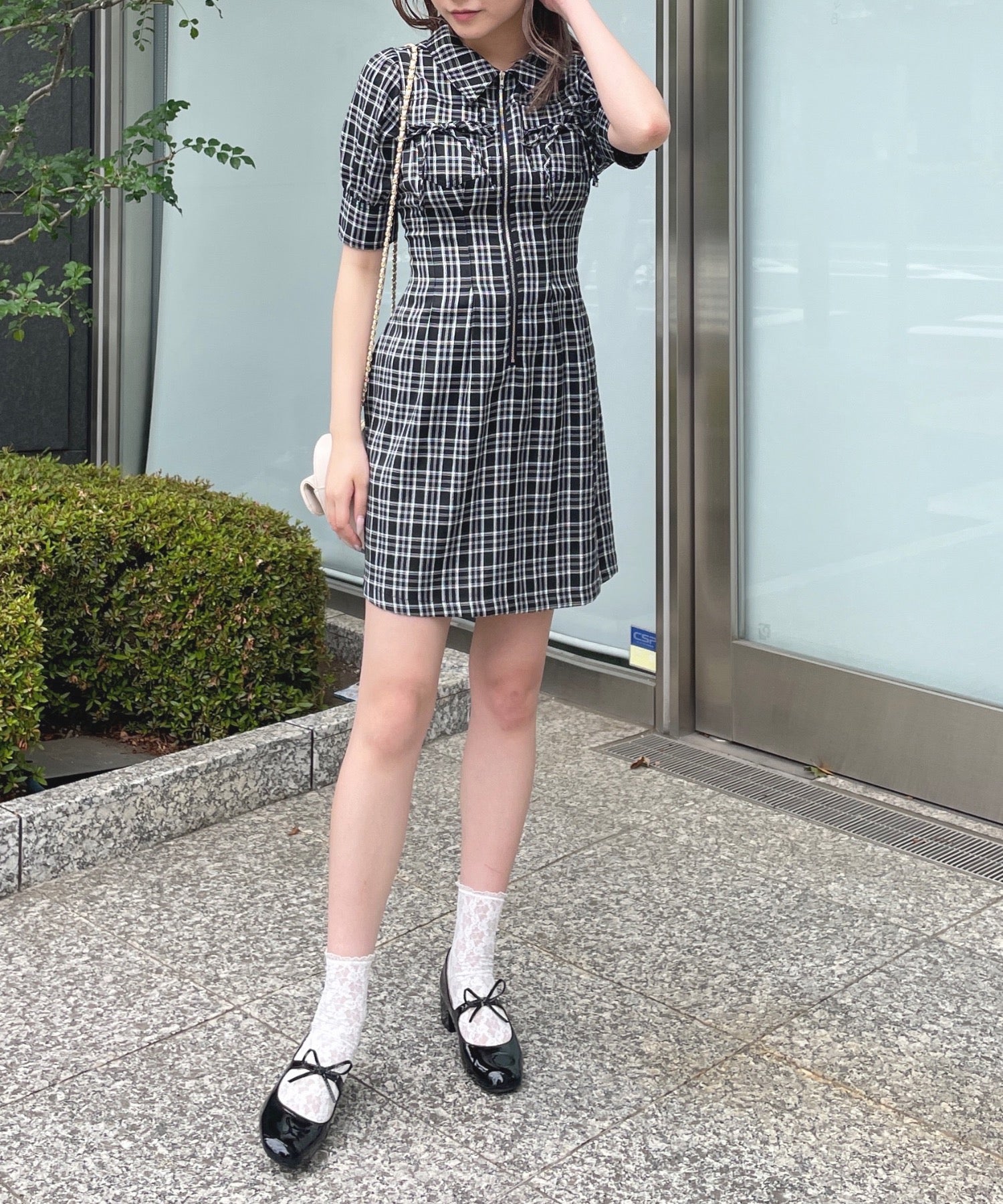 ・フロントのメタルジップが甘くなりすぎないリボンデザインのワンピースが登場♪