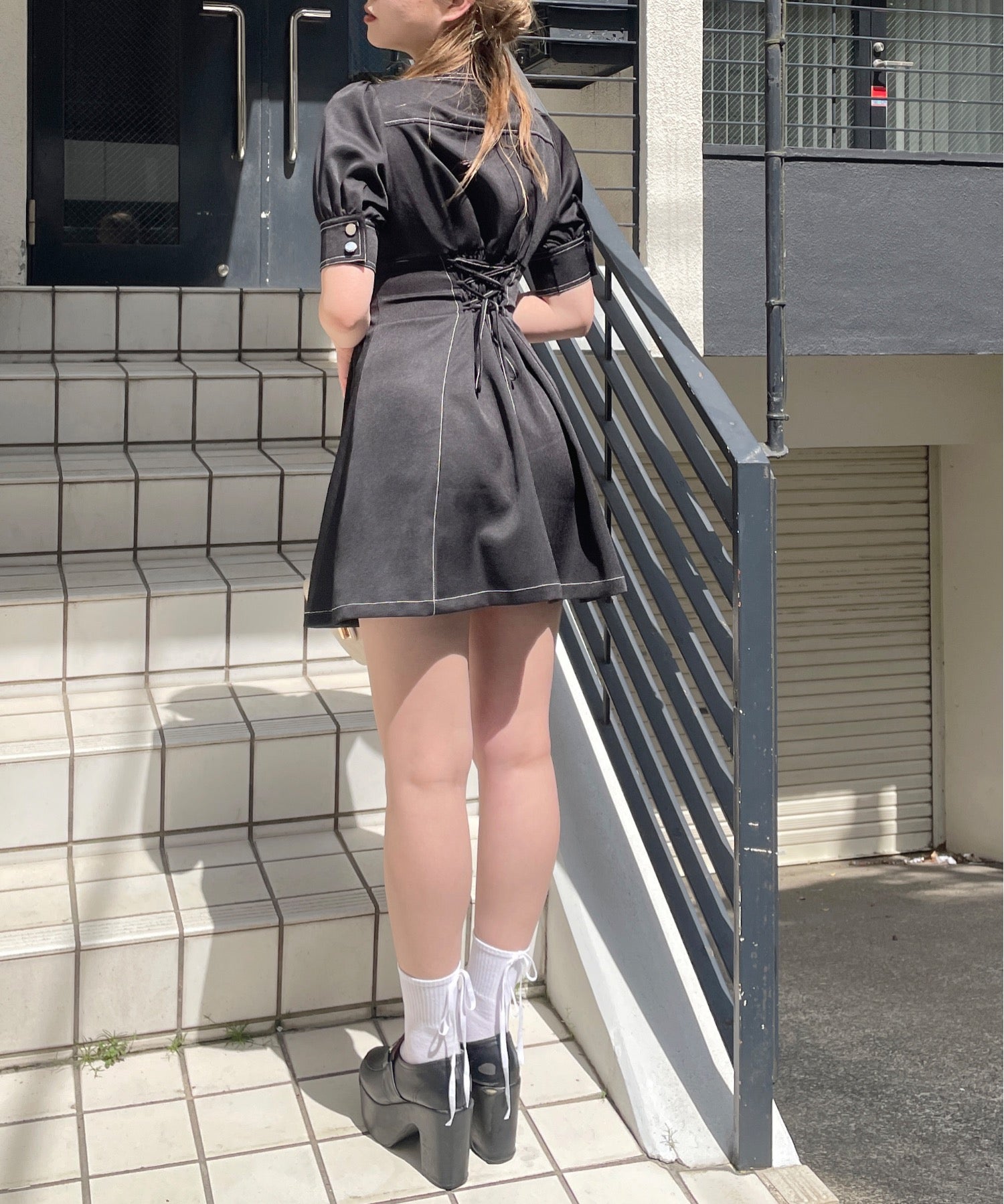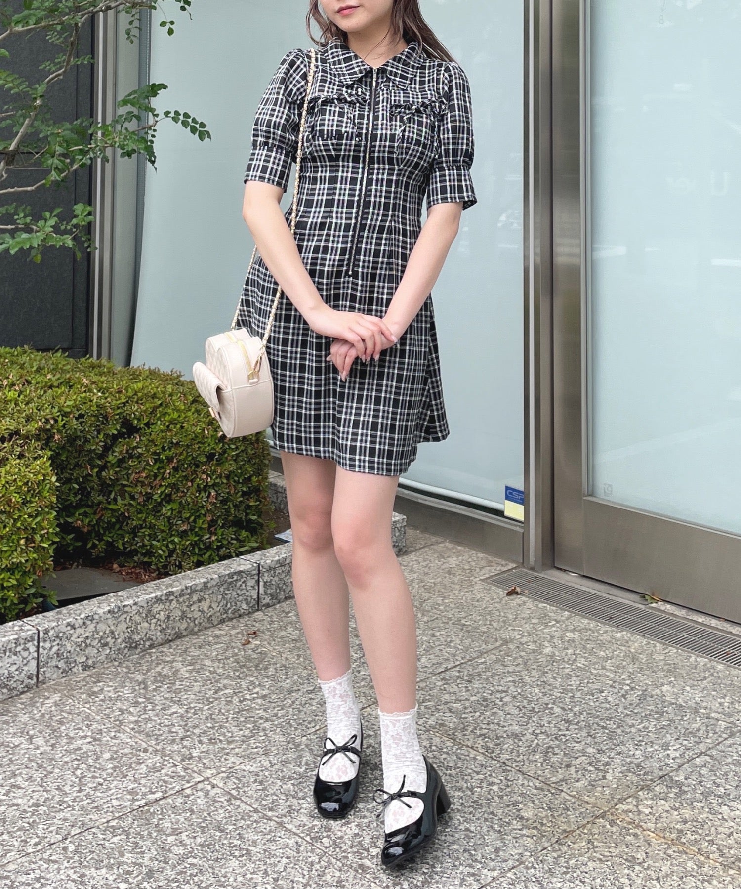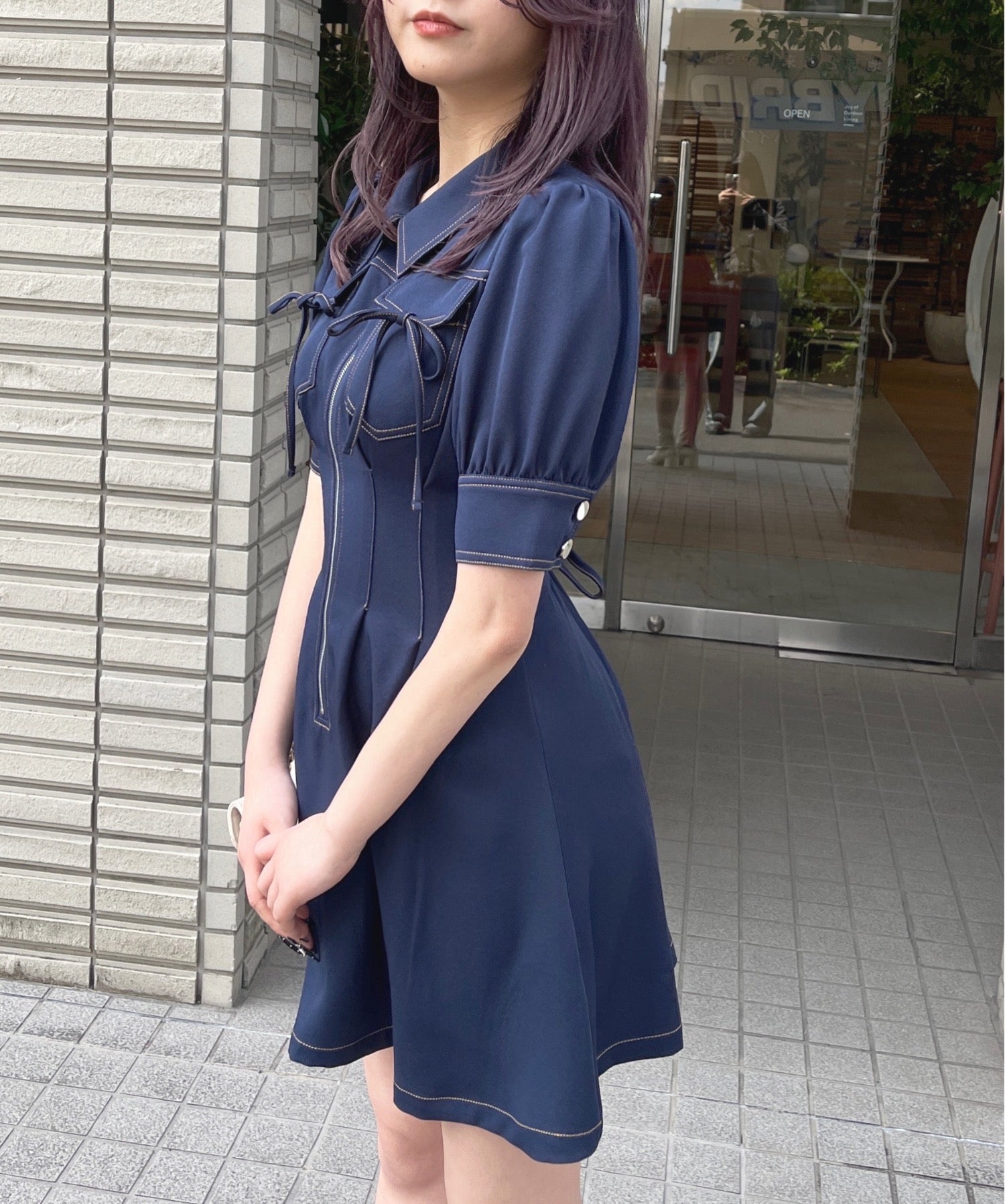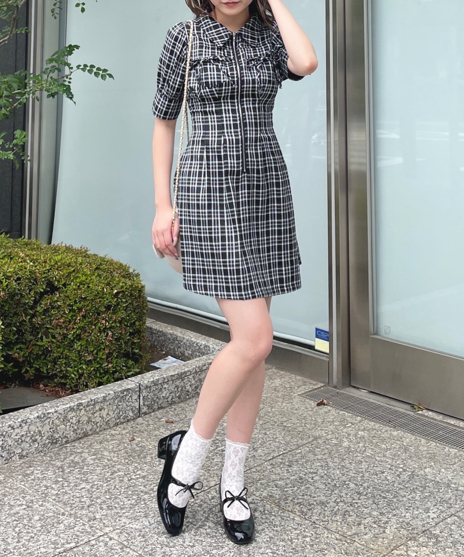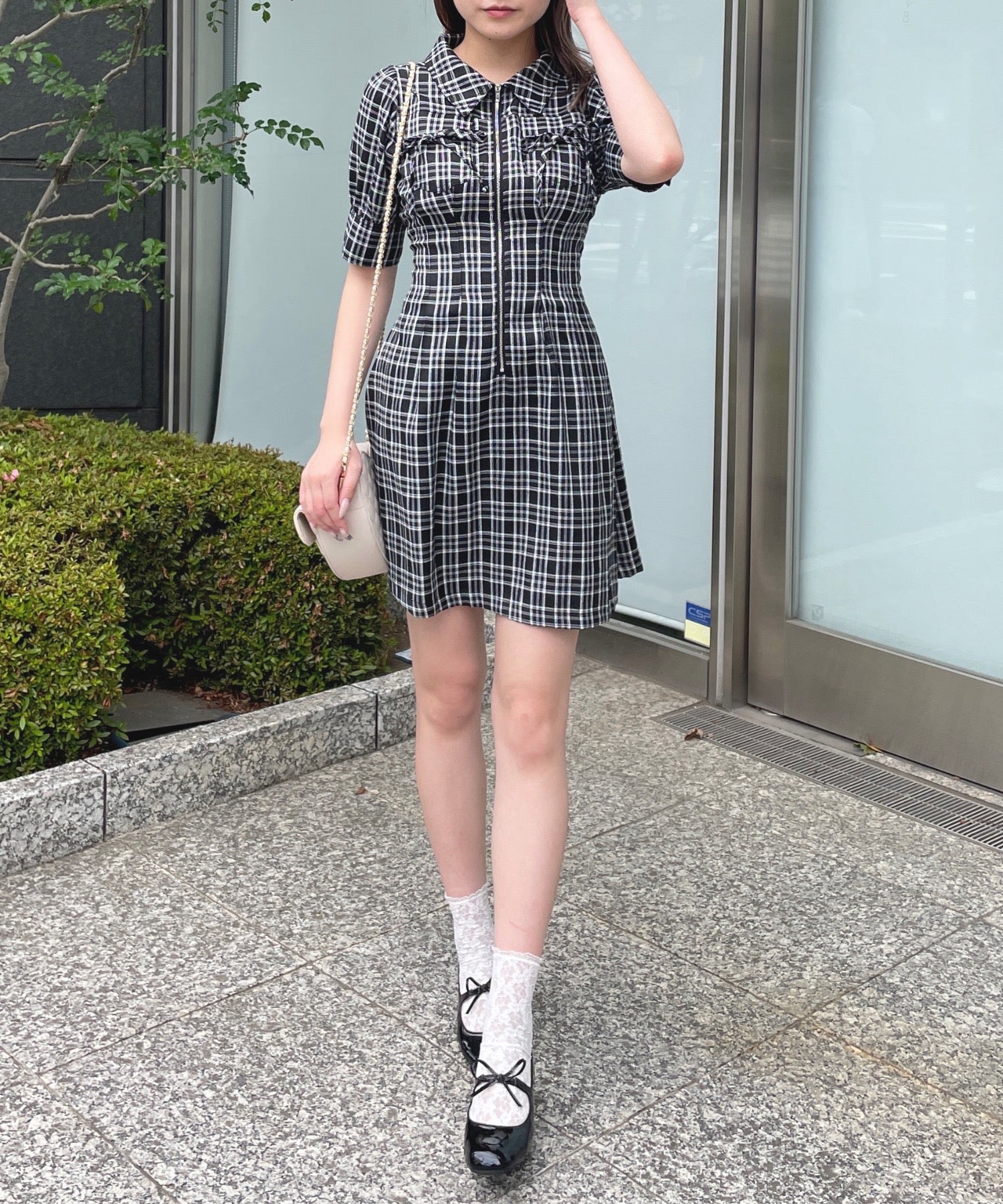 ・フロントのメタルジップが甘くなりすぎないリボンデザインのワンピースが登場♪