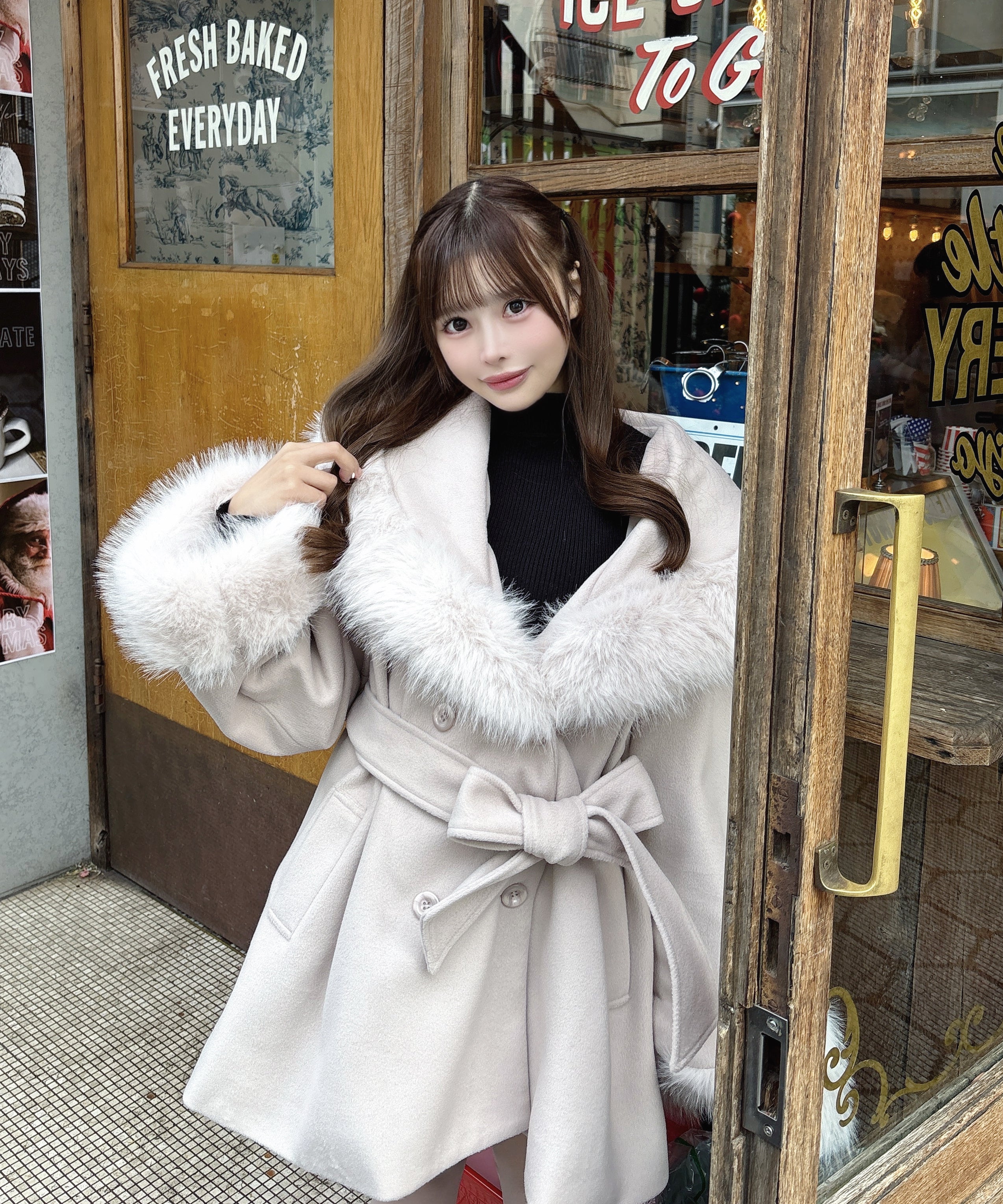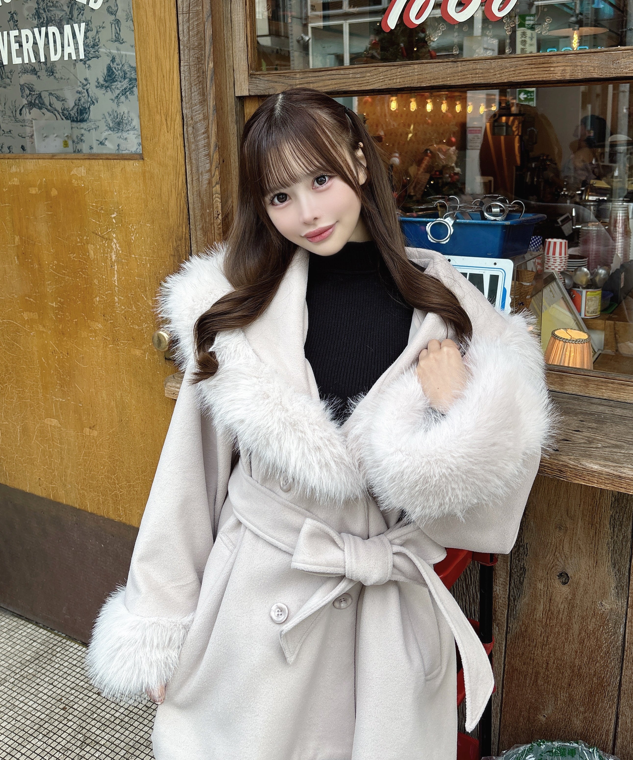 ・襟のファーのボリュームがコーデを一気に華やかにしてくれる高見えコート♡