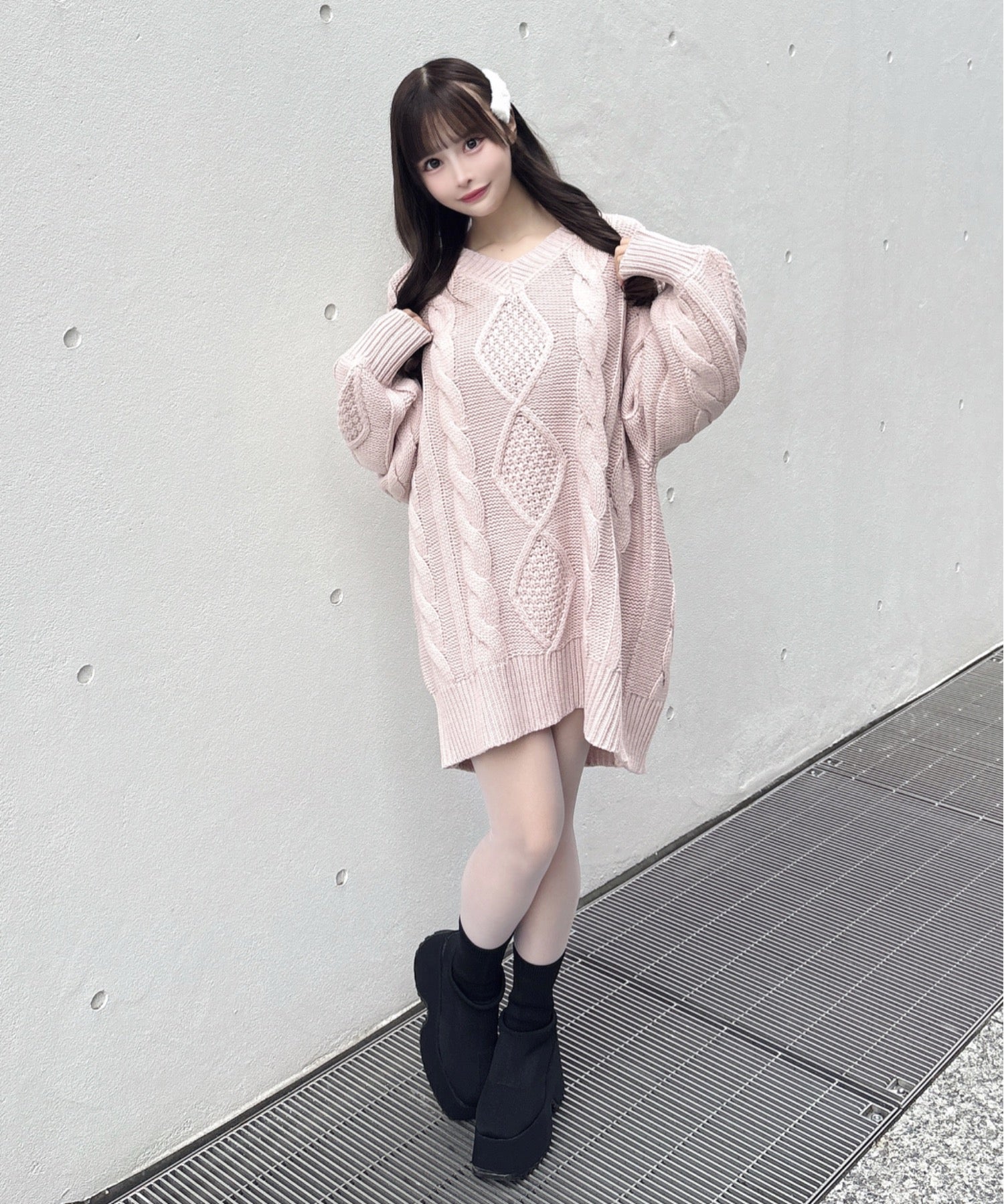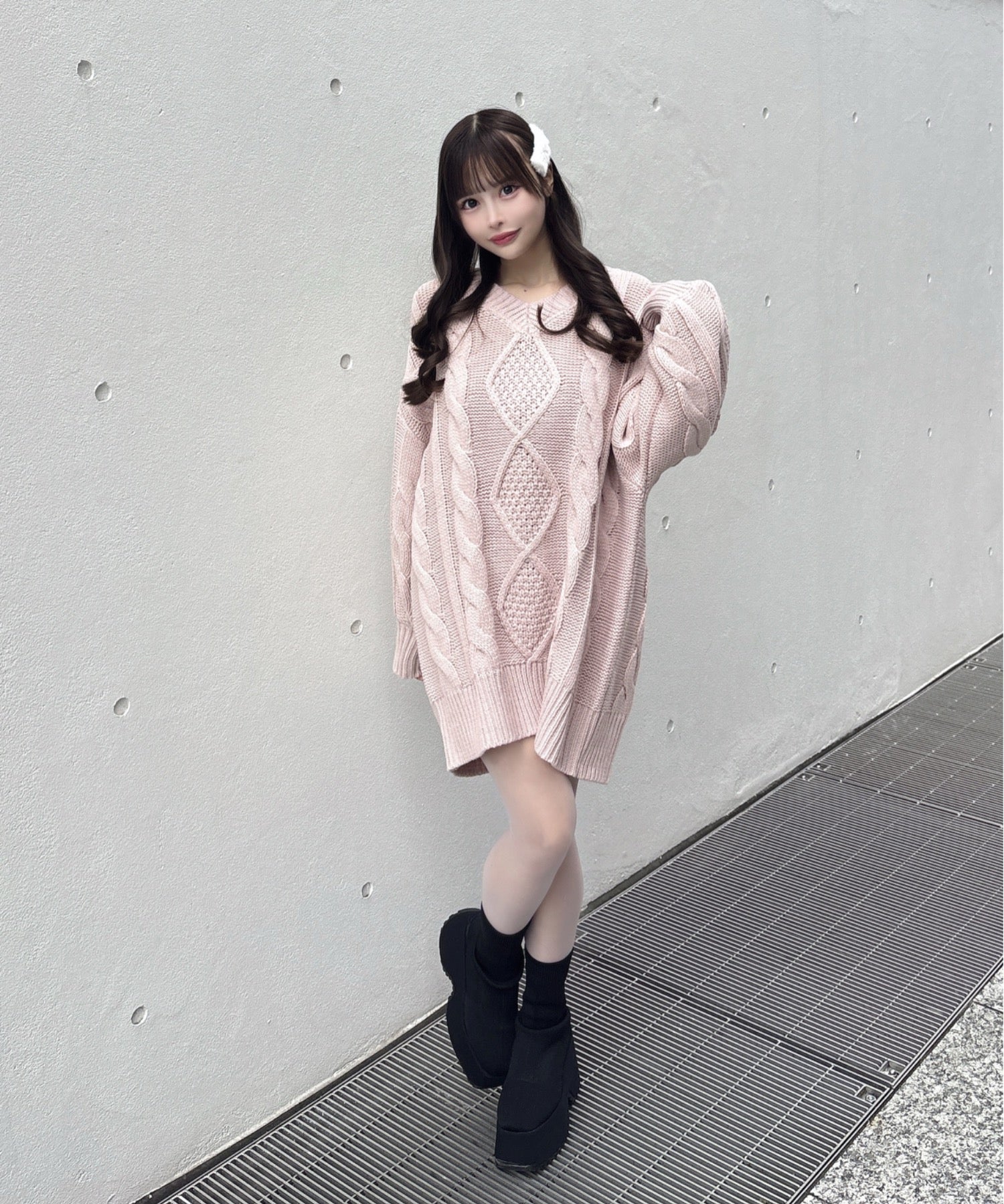 ・ケーブルデザインのゆるっとしたワンピースが可愛い