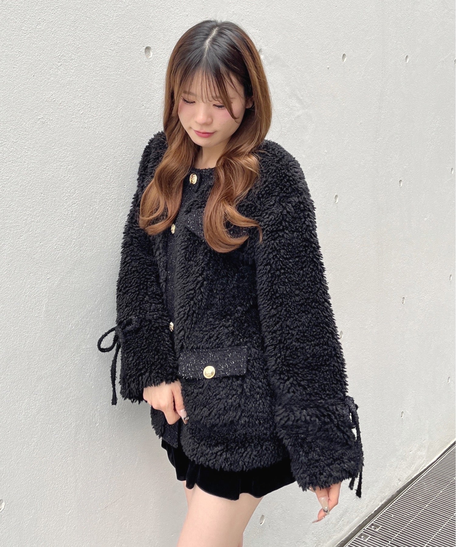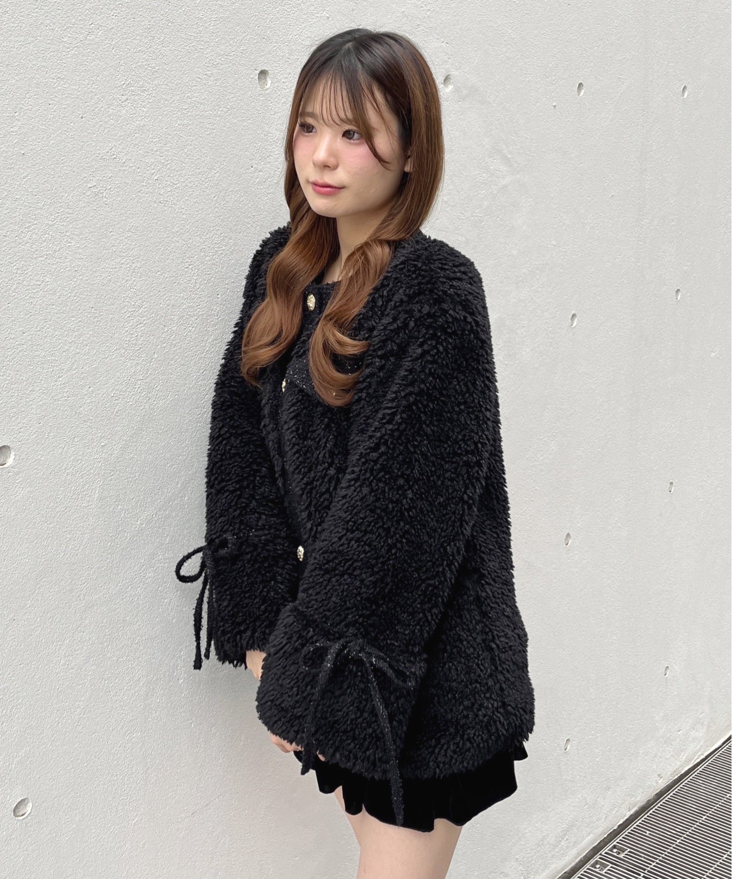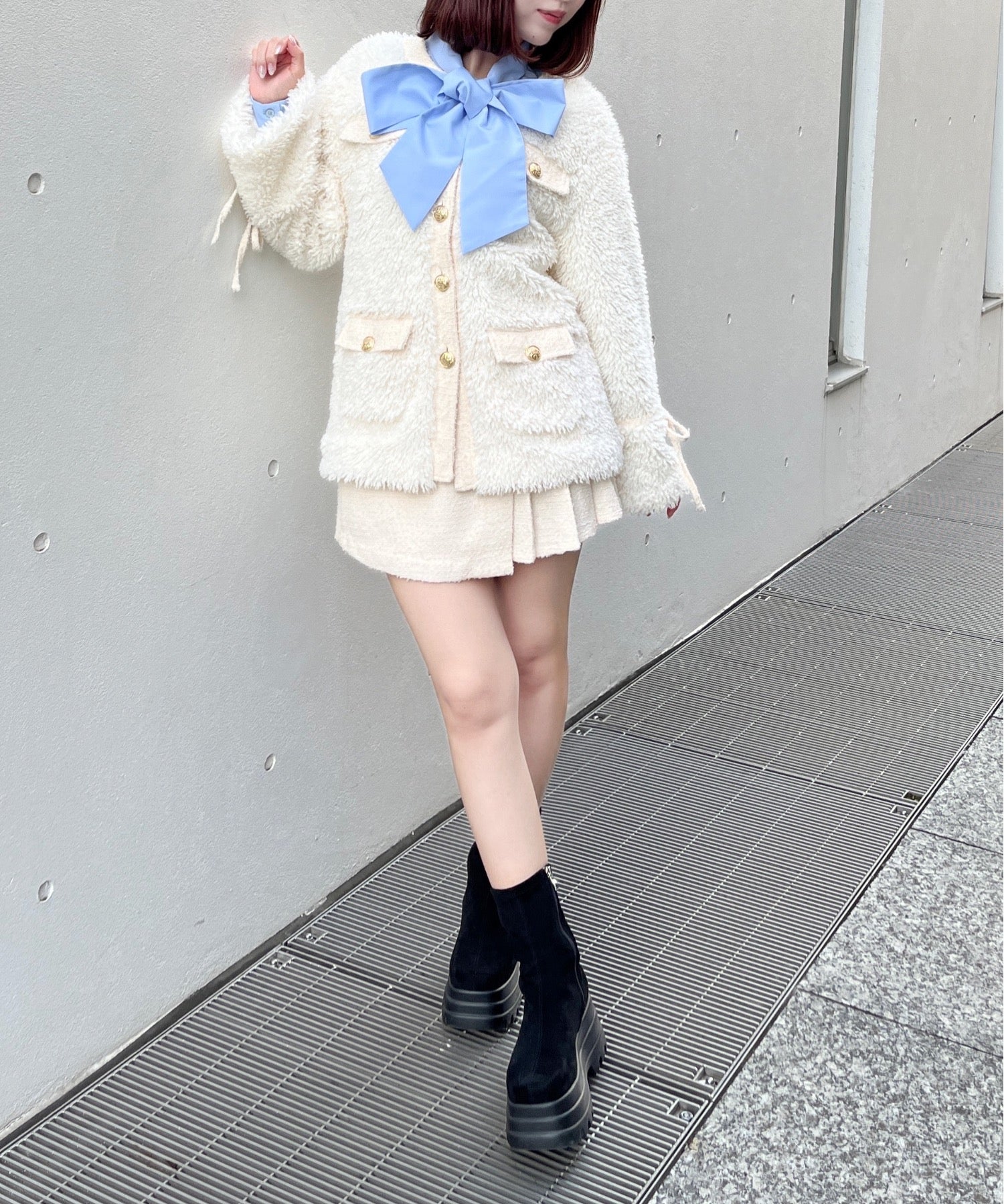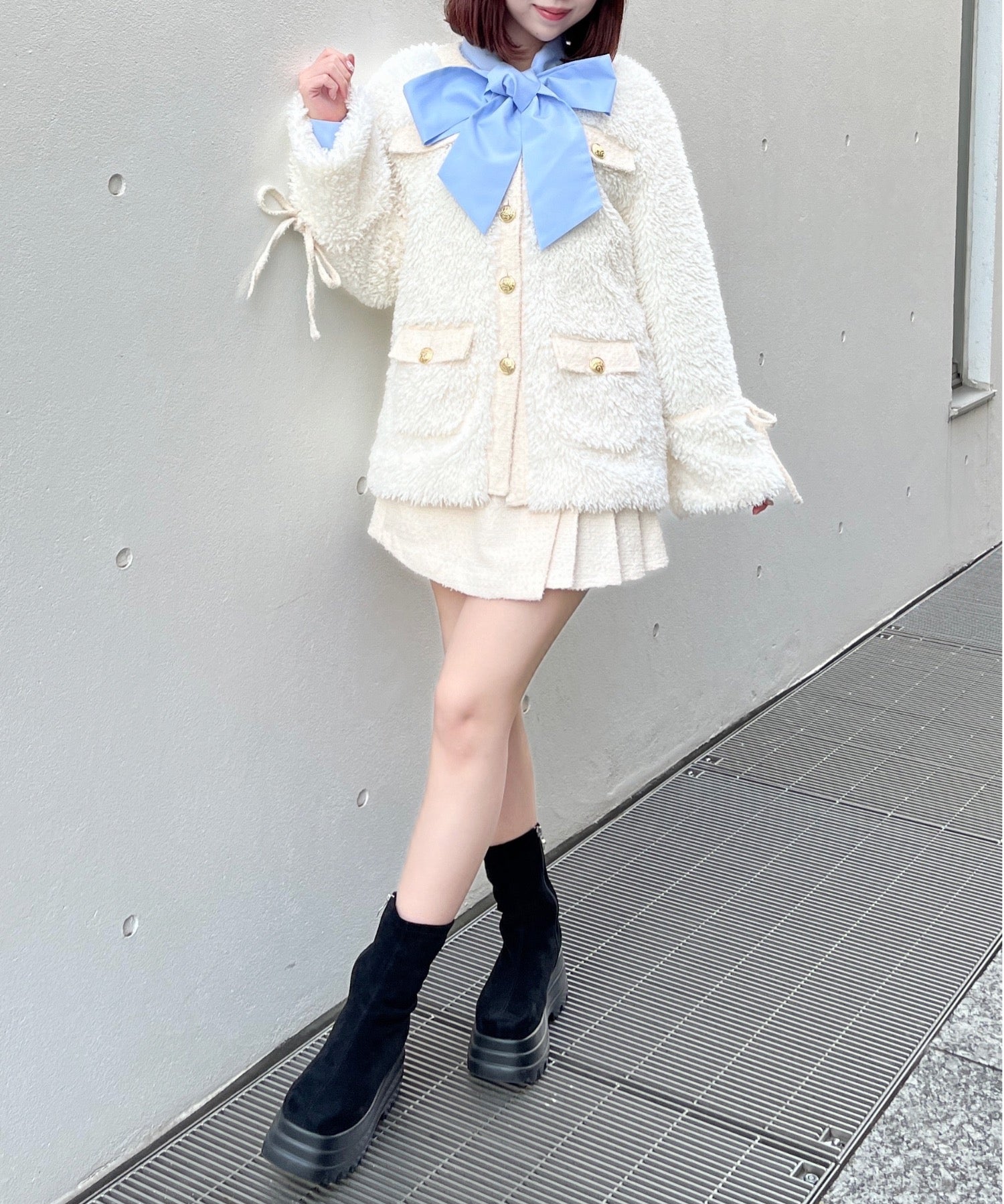 ・やや長めのアウターなので、ミニ丈のボトムスを裾からチラ見セするのが可愛い♡