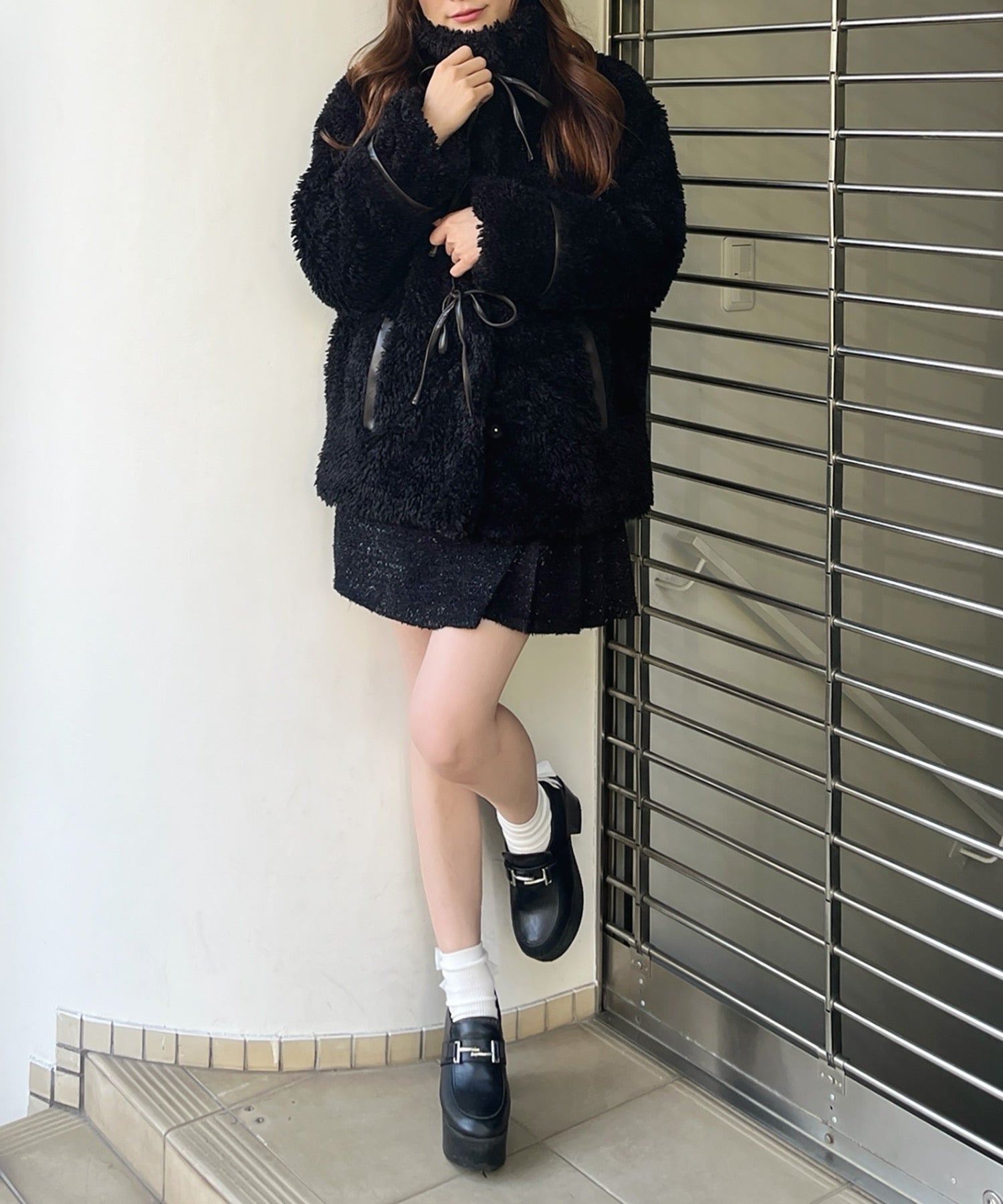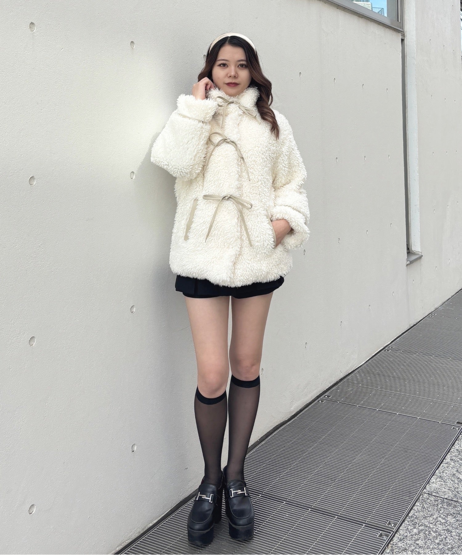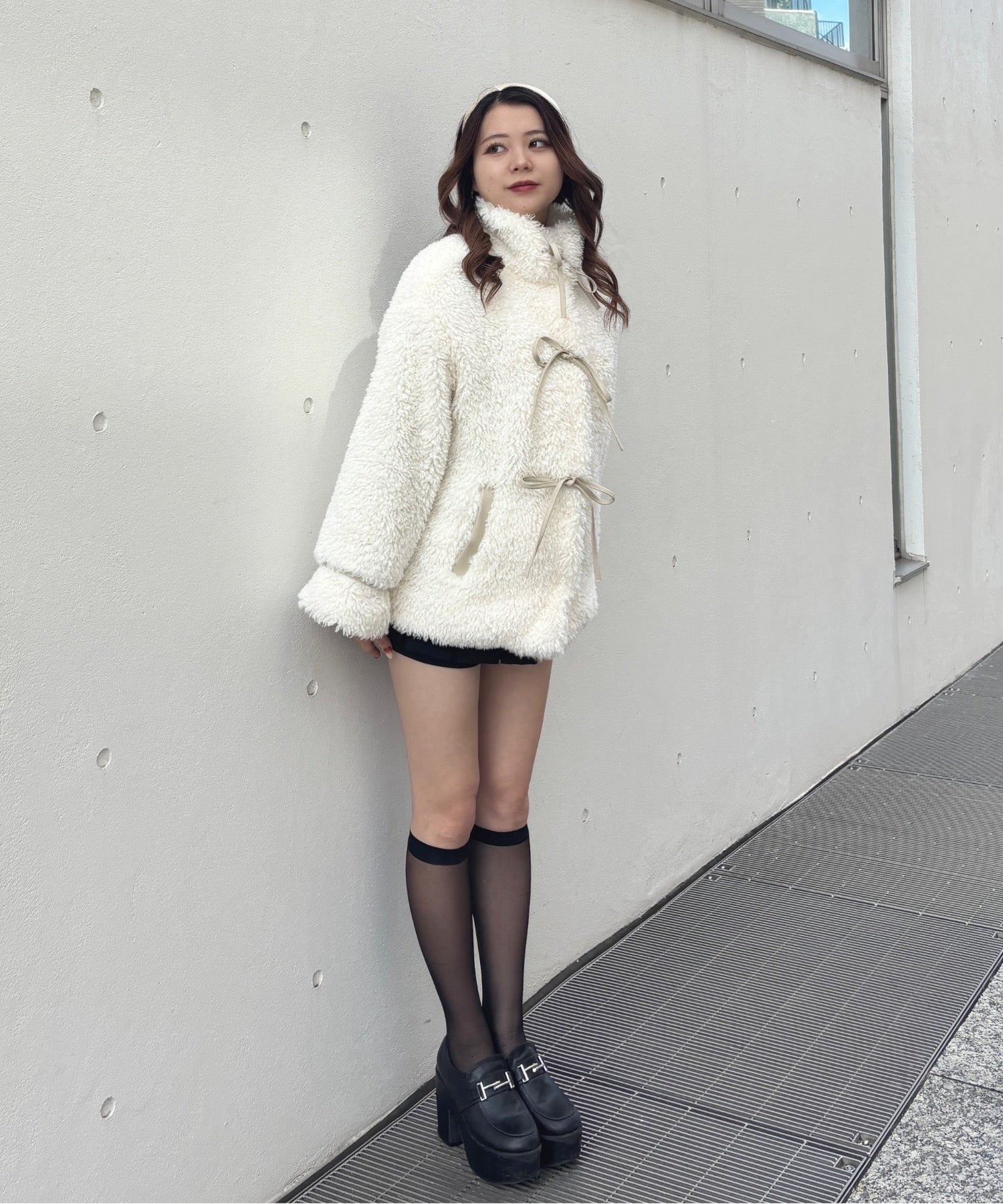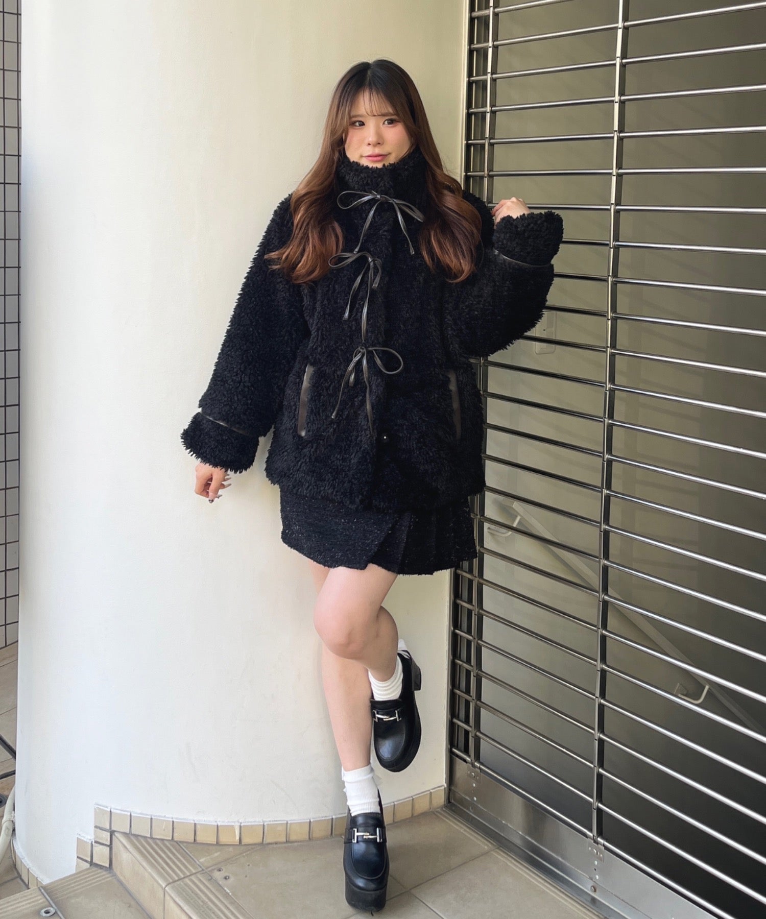 ・襟と袖のボリューム感あるファーがコーデを華やかにしてくれる♡