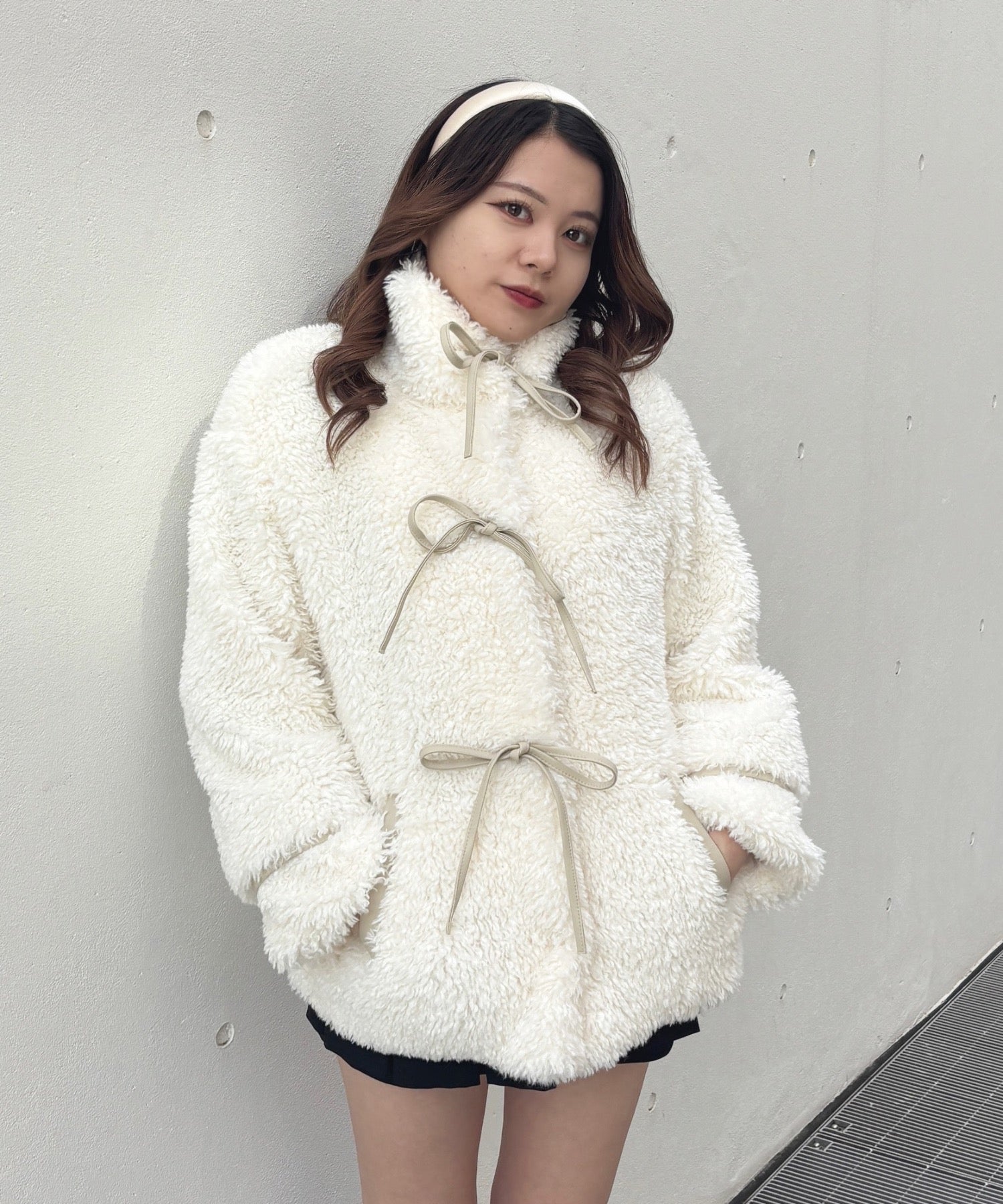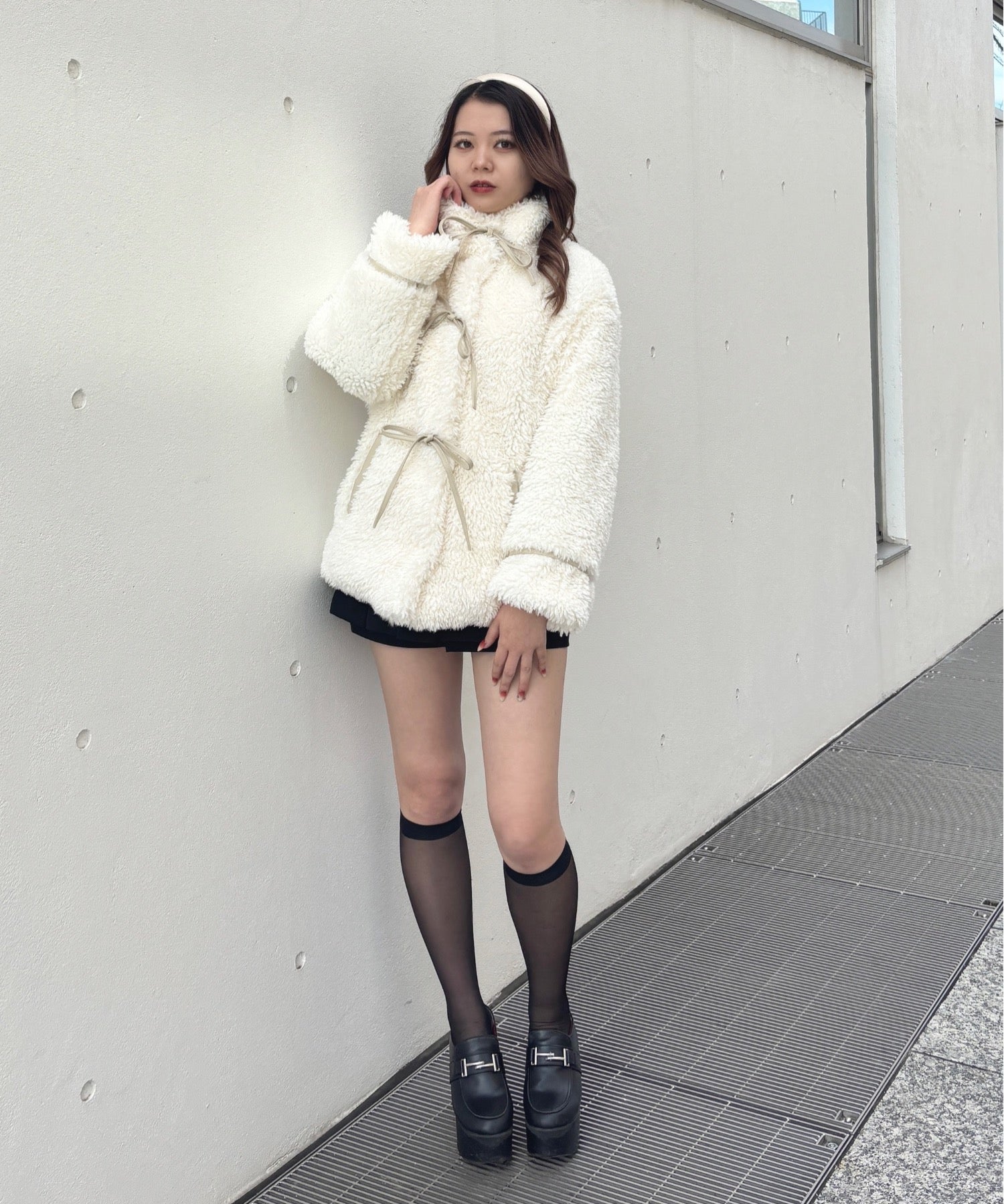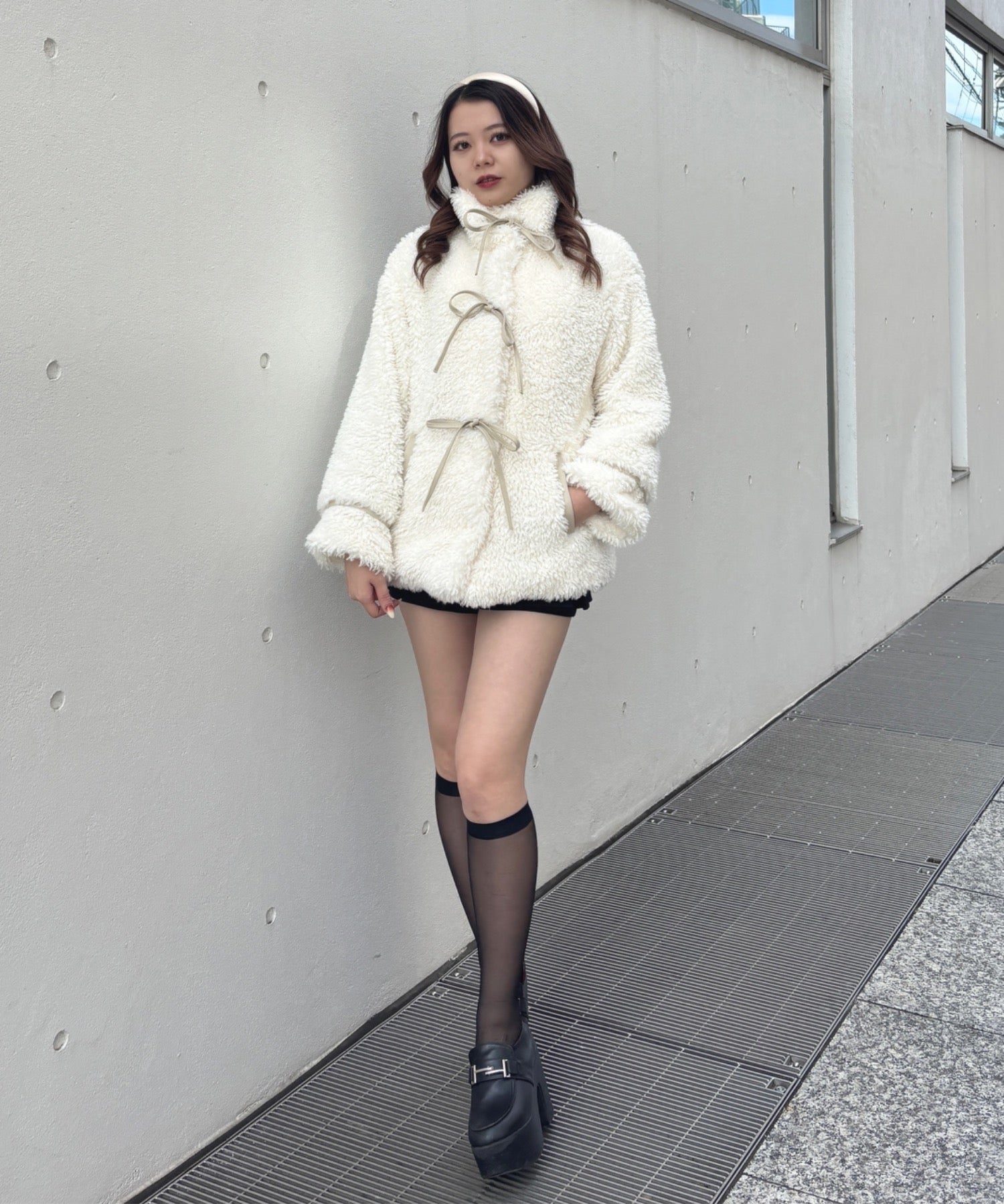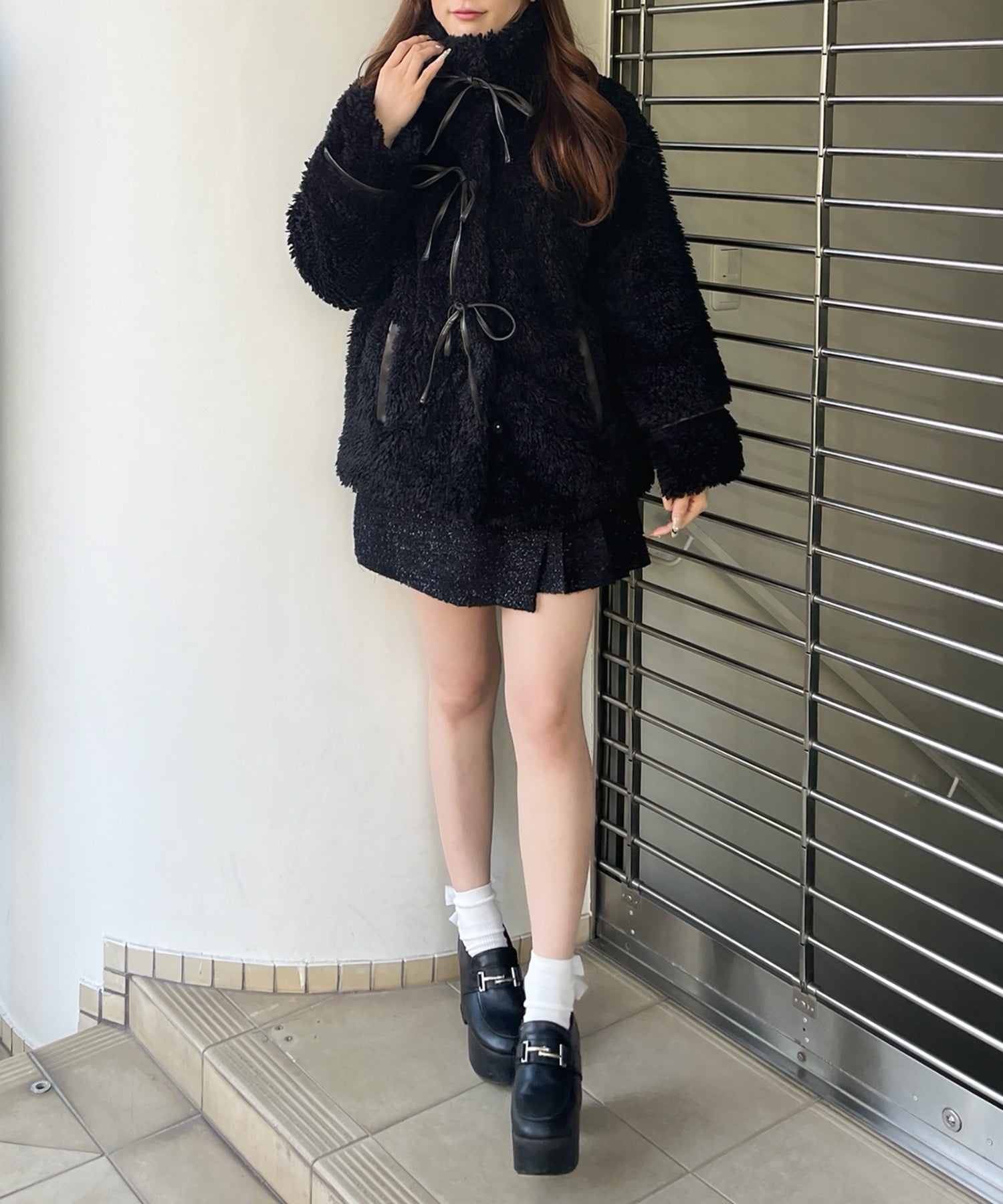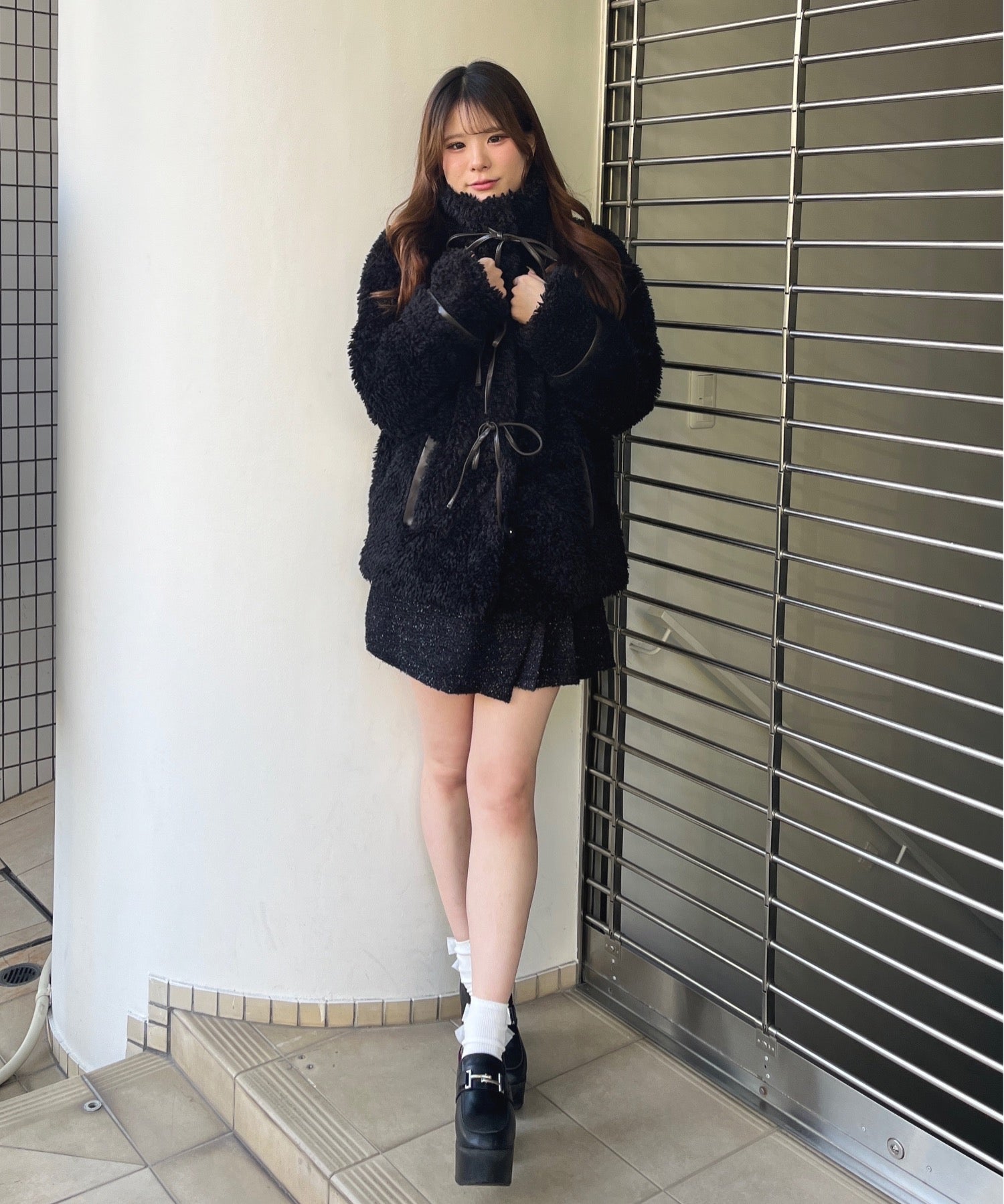 ・襟と袖のボリューム感あるファーがコーデを華やかにしてくれる♡