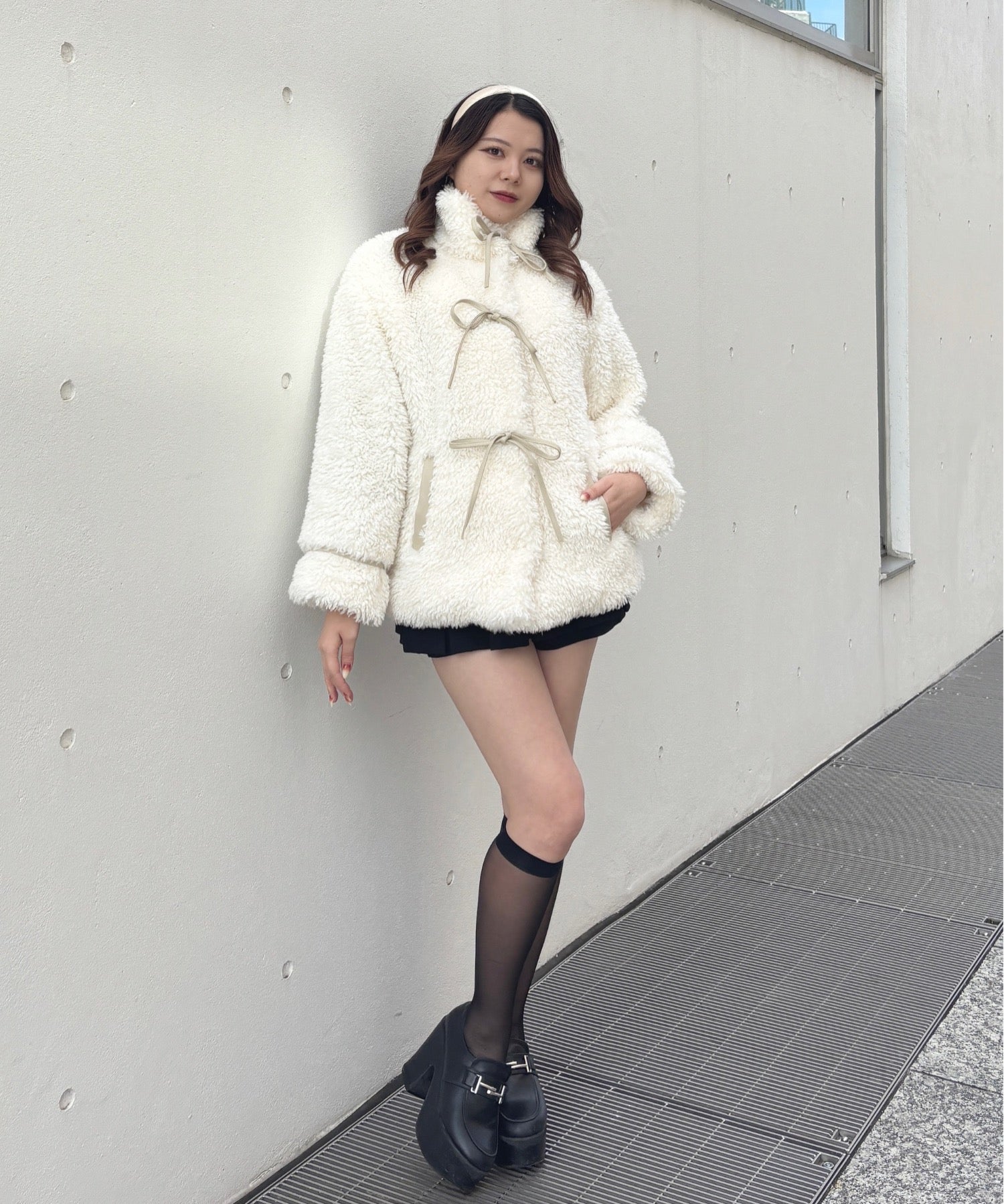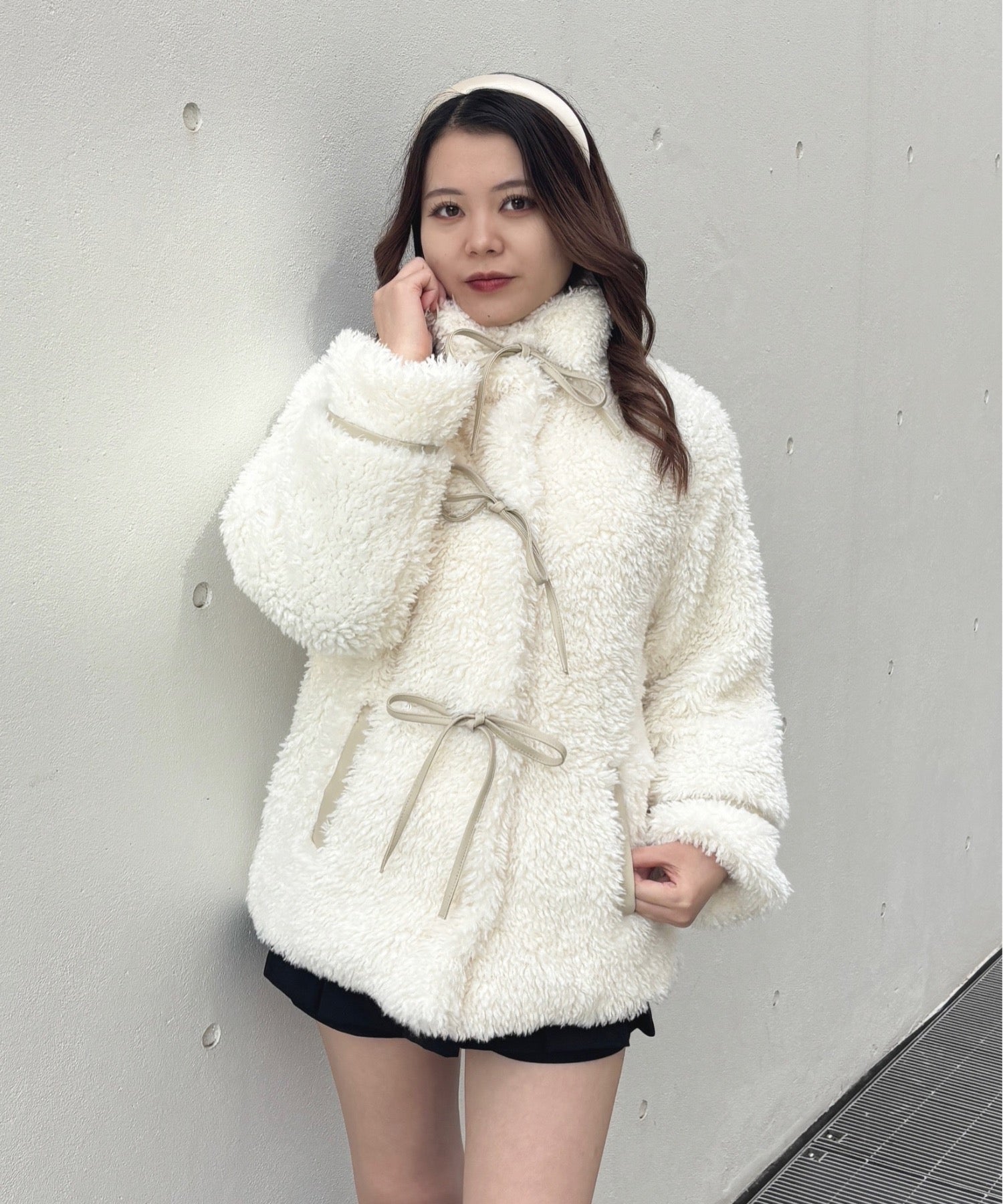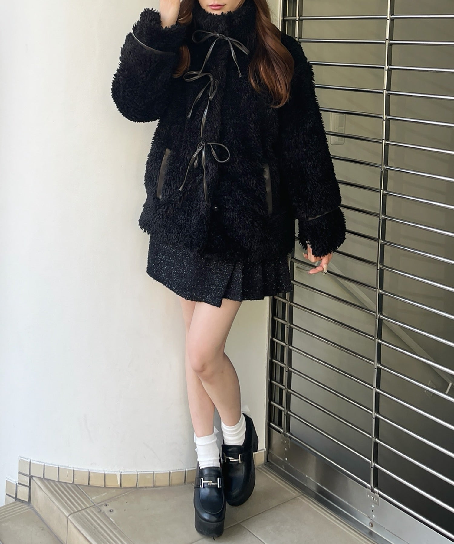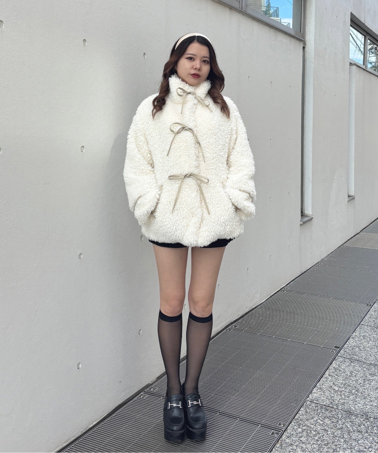 ・襟と袖のボリューム感あるファーがコーデを華やかにしてくれる♡